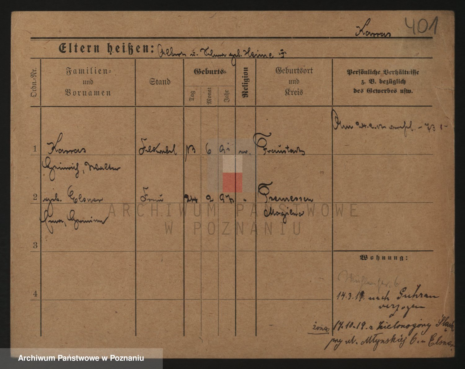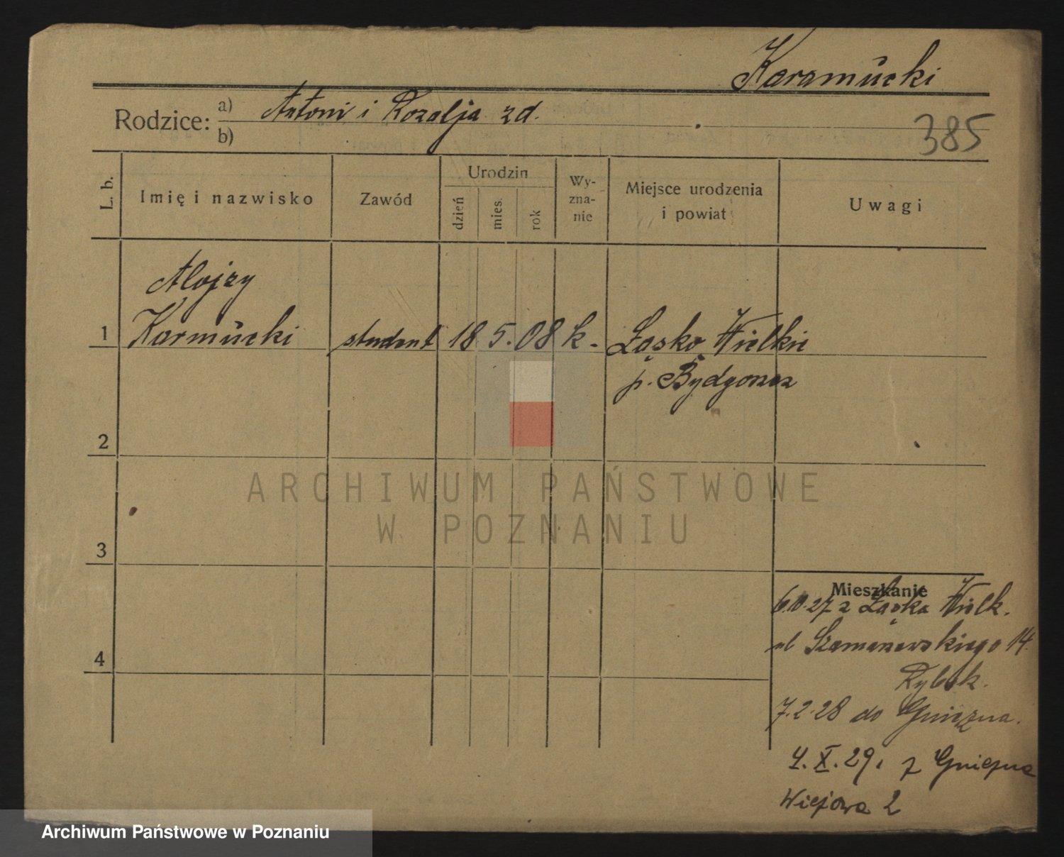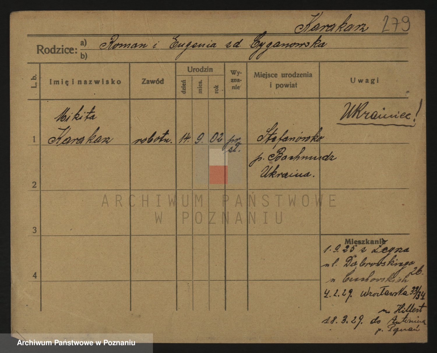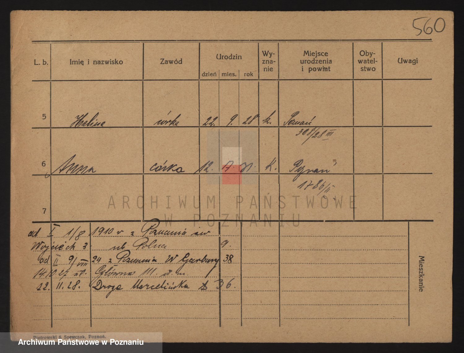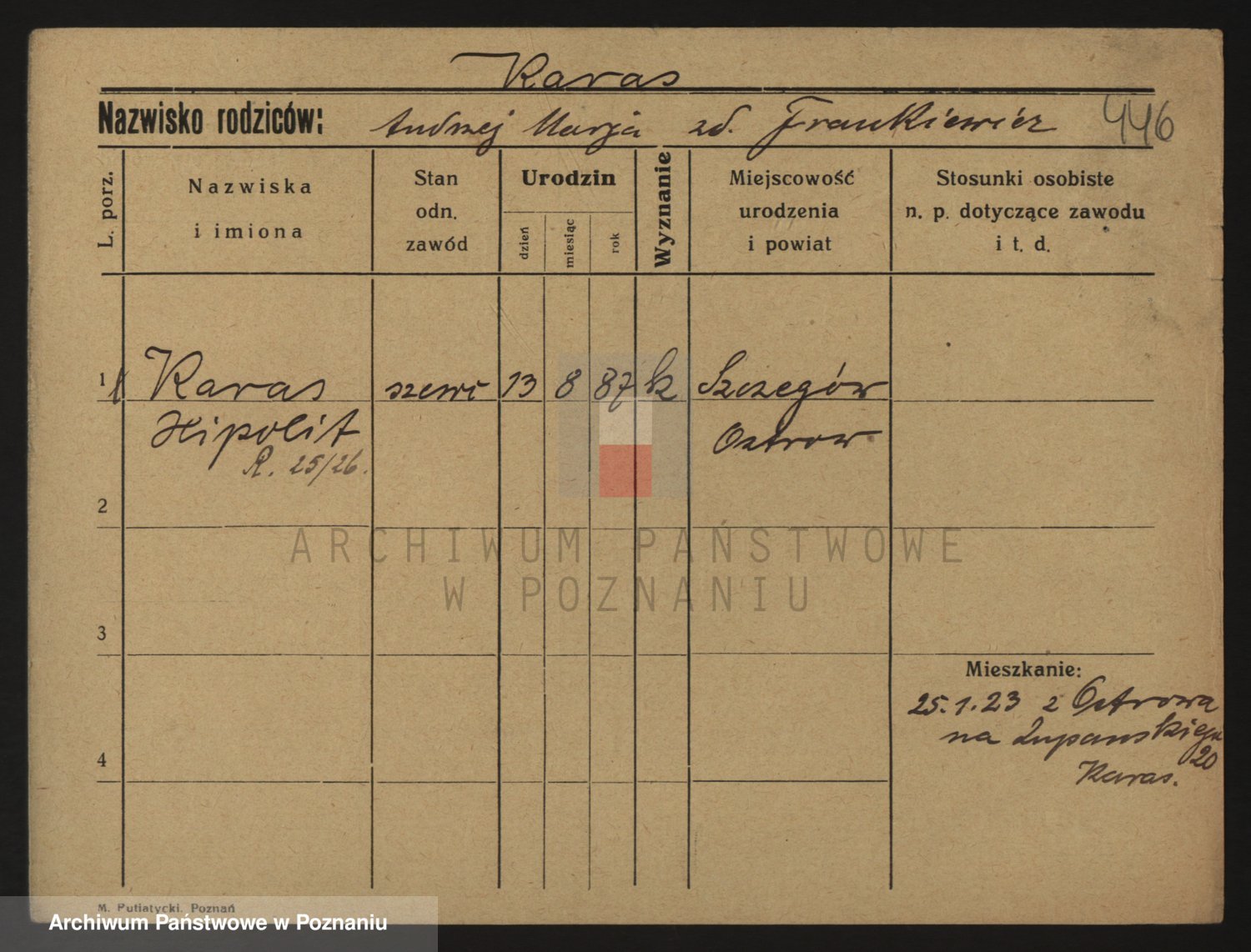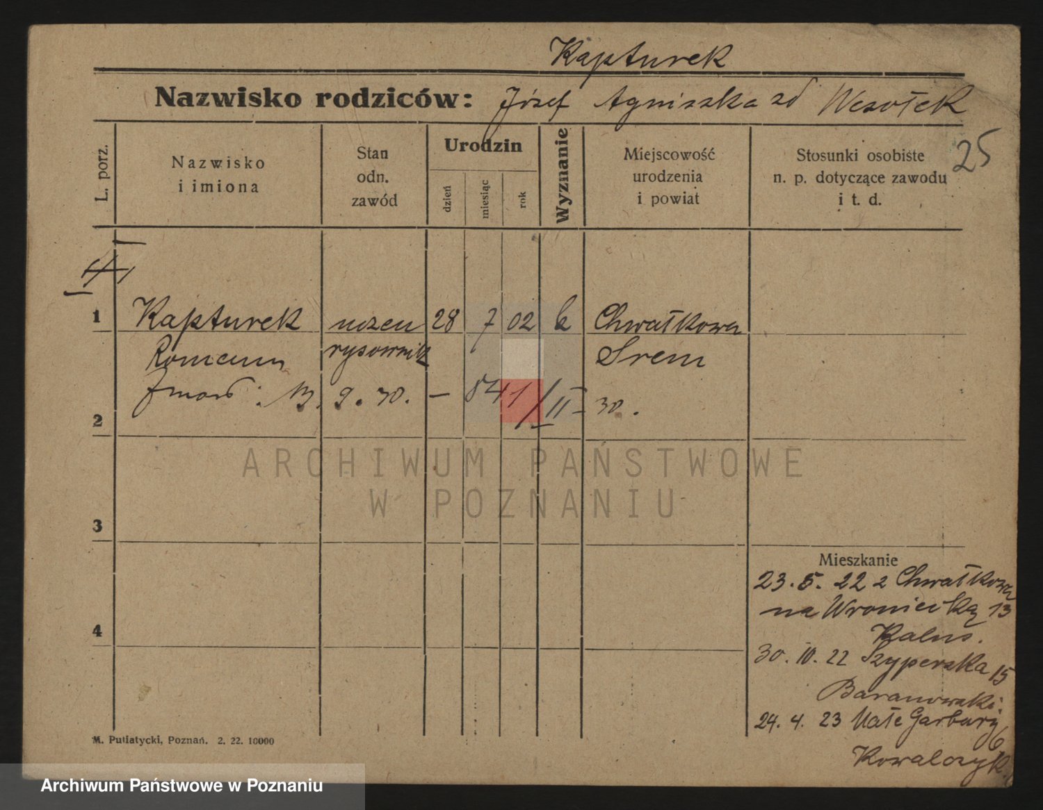 Podgląd karty osobowej dostępny jest po kliknięciu na nazwisko lub ikonkę karty. Można dokonywać powiększenia (ikony na górze) lub przechodzić między kolejnymi skanami (strzałki po bokach).
