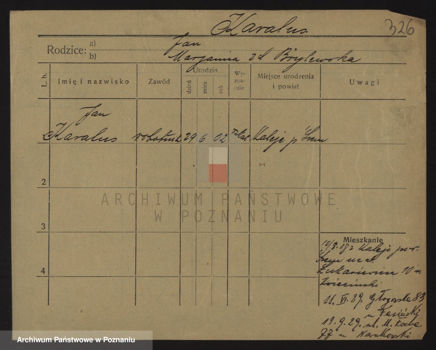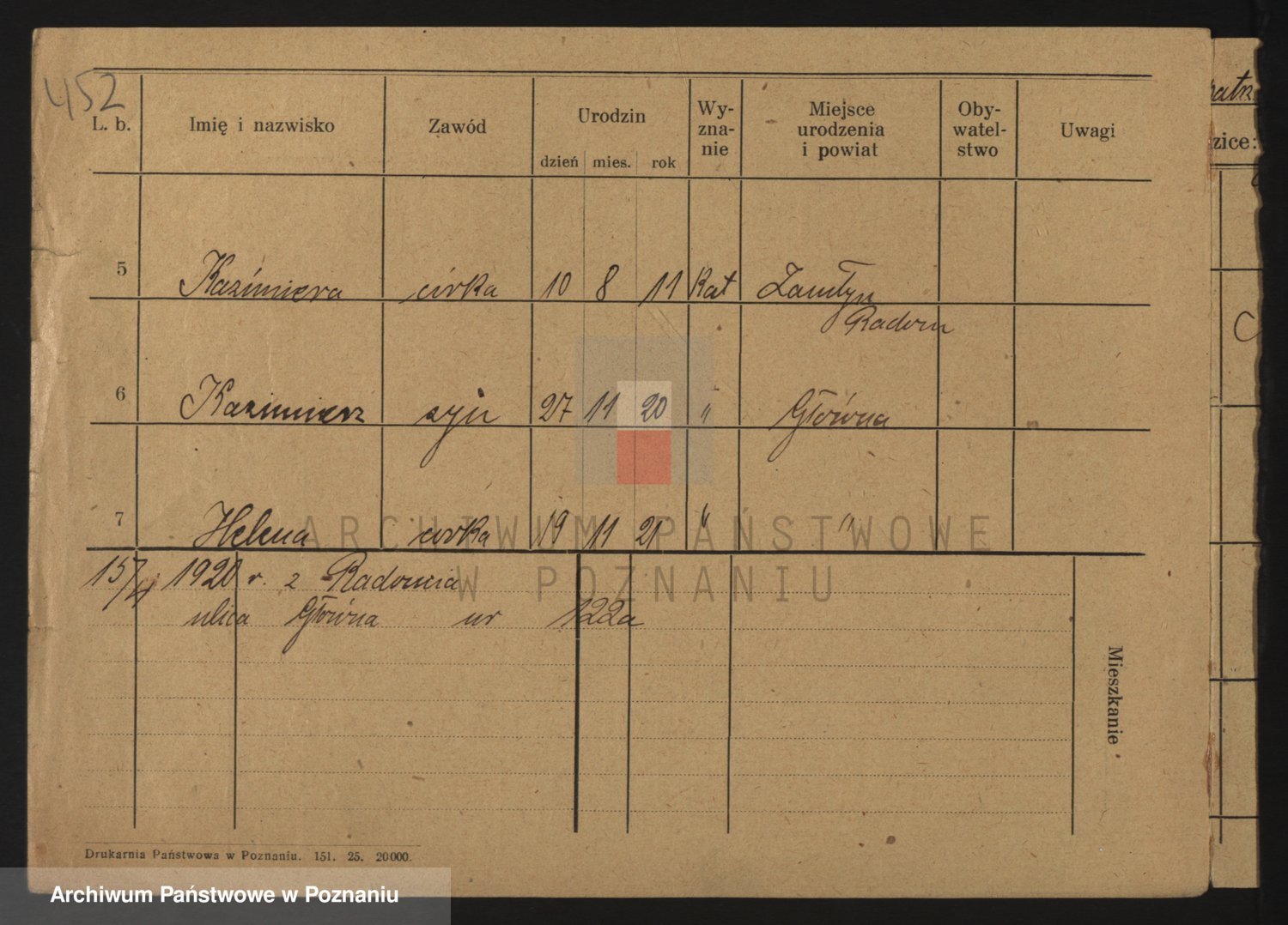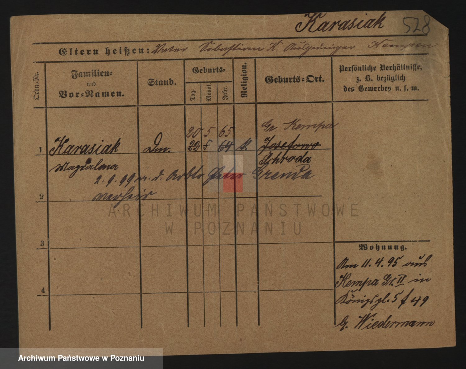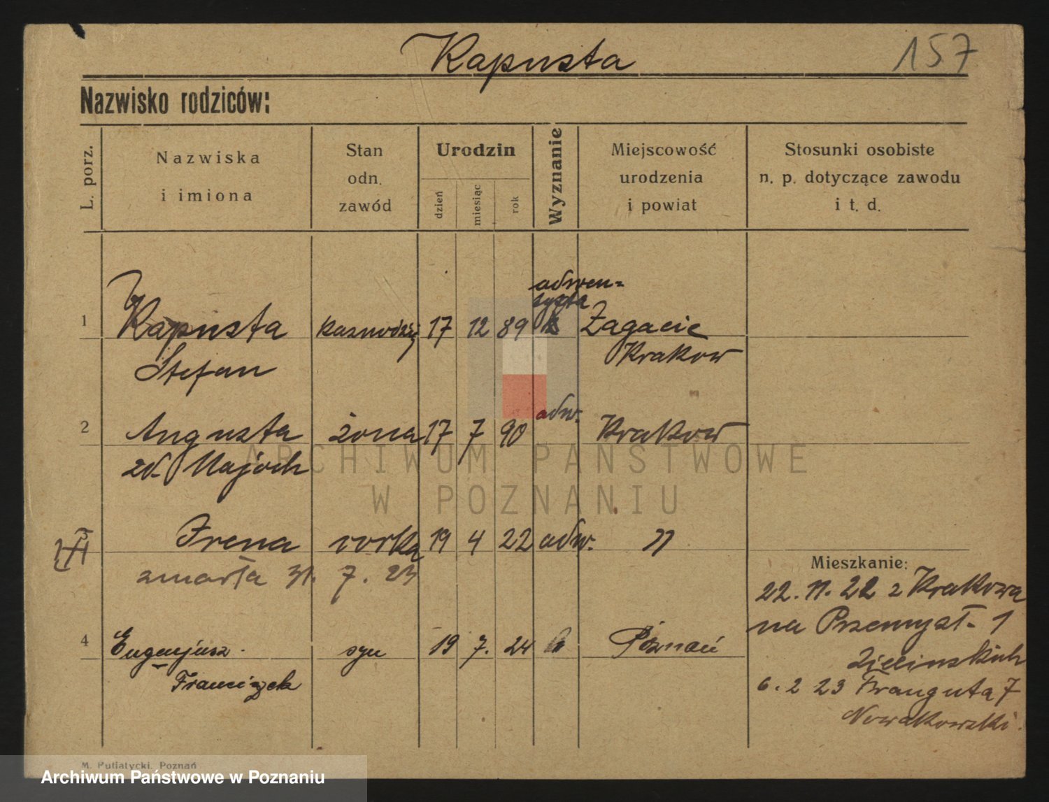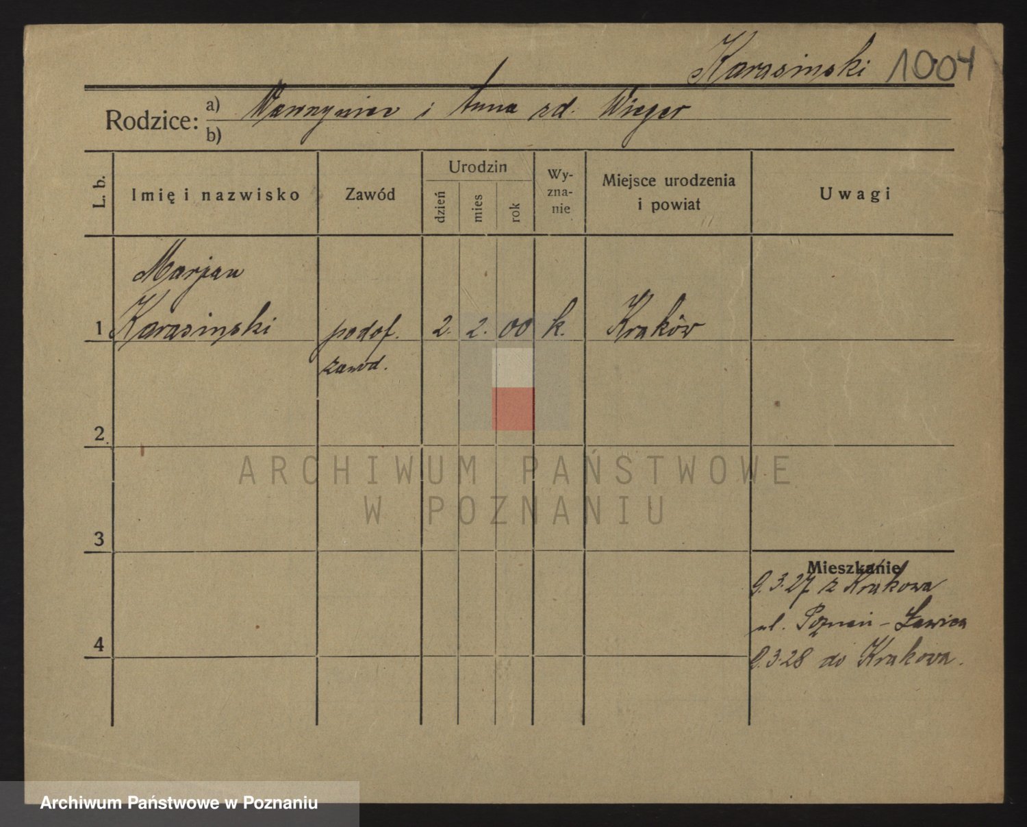 Podgląd karty osobowej dostępny jest po kliknięciu na nazwisko lub ikonkę karty. Można dokonywać powiększenia (ikony na górze) lub przechodzić między kolejnymi skanami (strzałki po bokach).