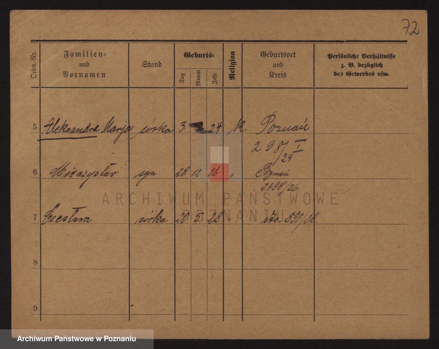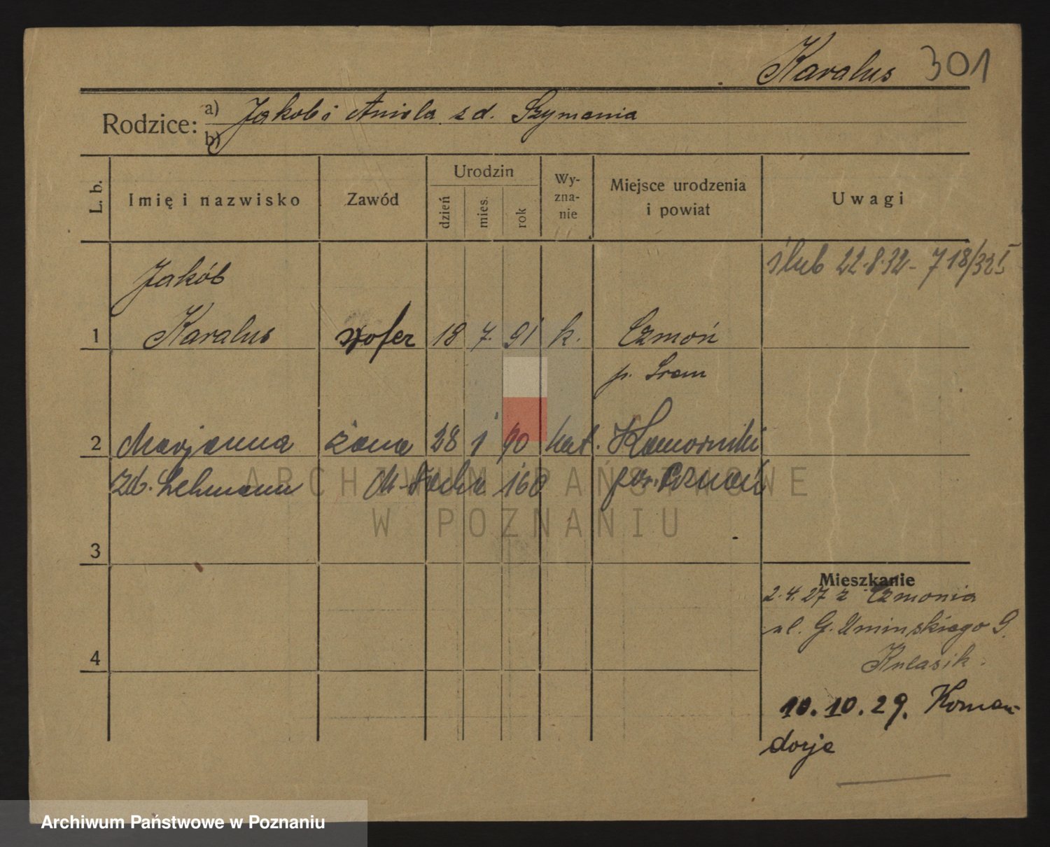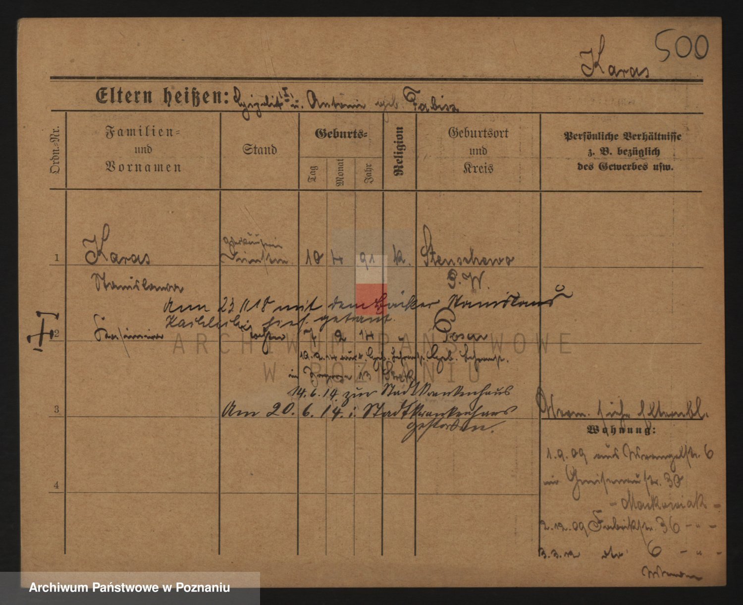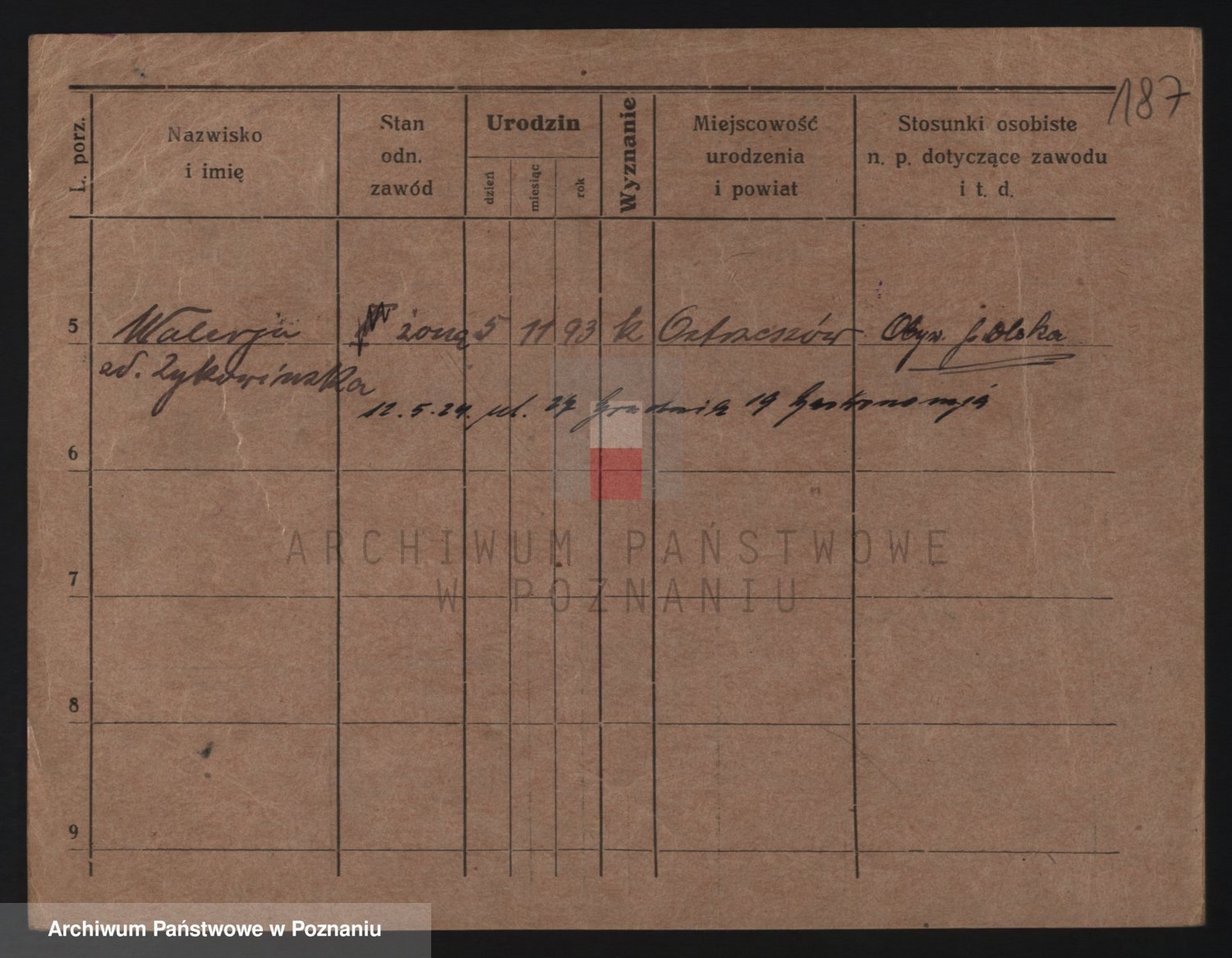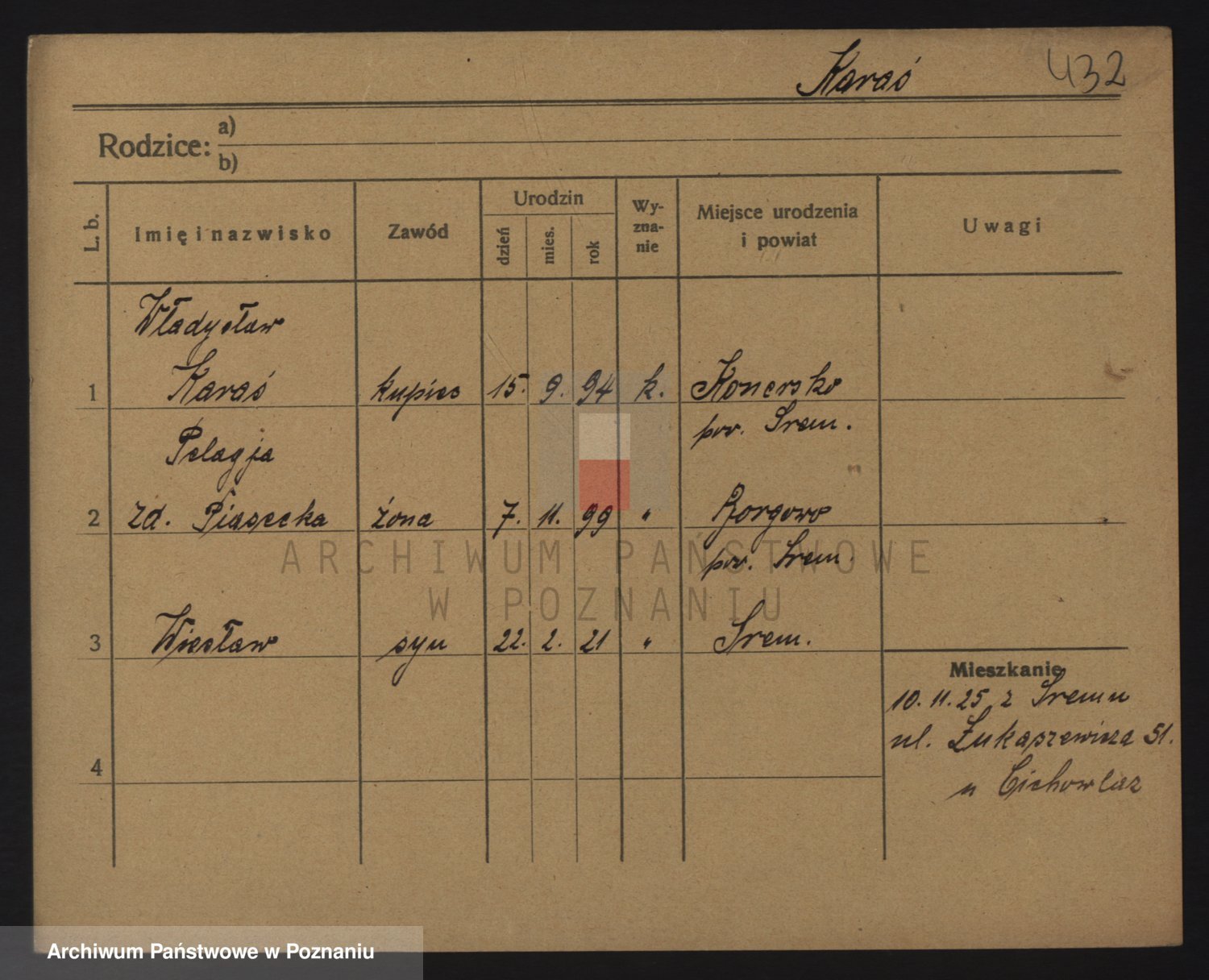 Podgląd karty osobowej dostępny jest po kliknięciu na nazwisko lub ikonkę karty. Można dokonywać powiększenia (ikony na górze) lub przechodzić między kolejnymi skanami (strzałki po bokach).