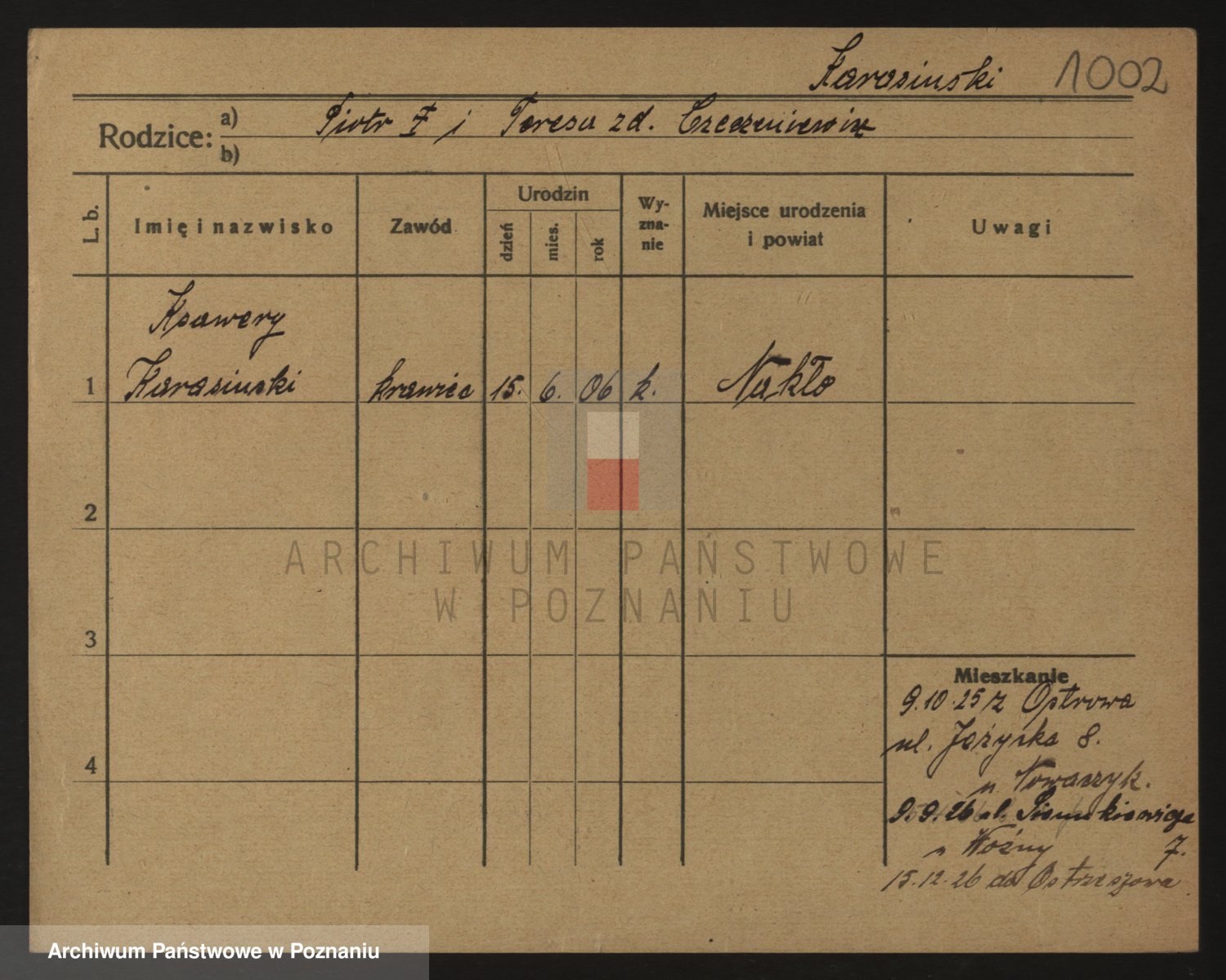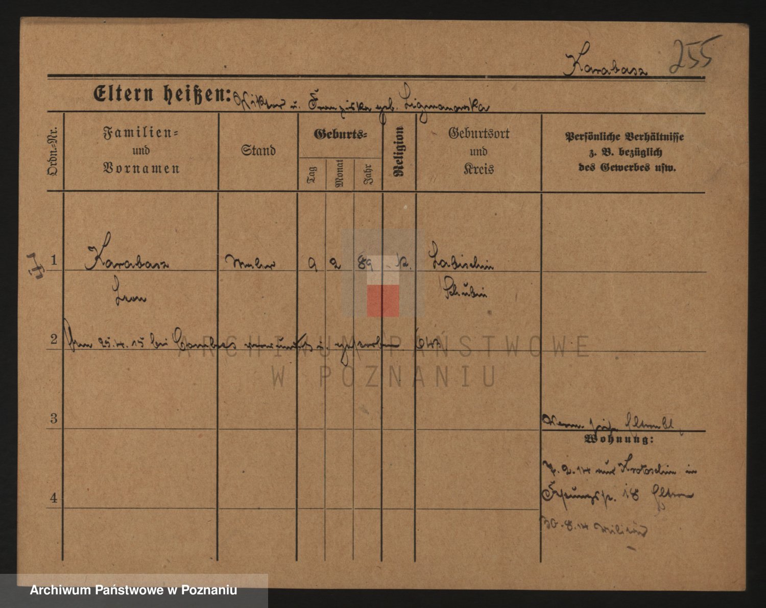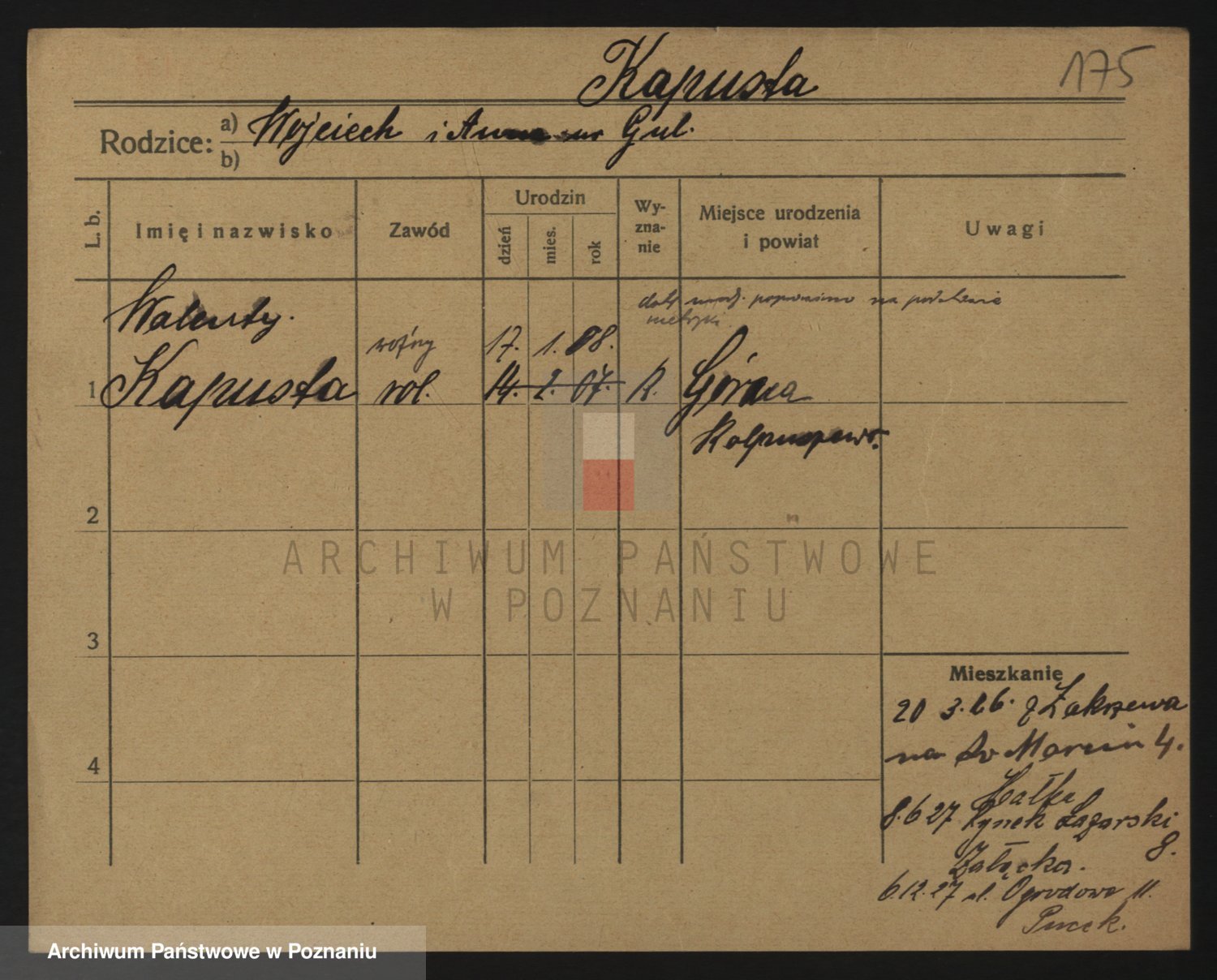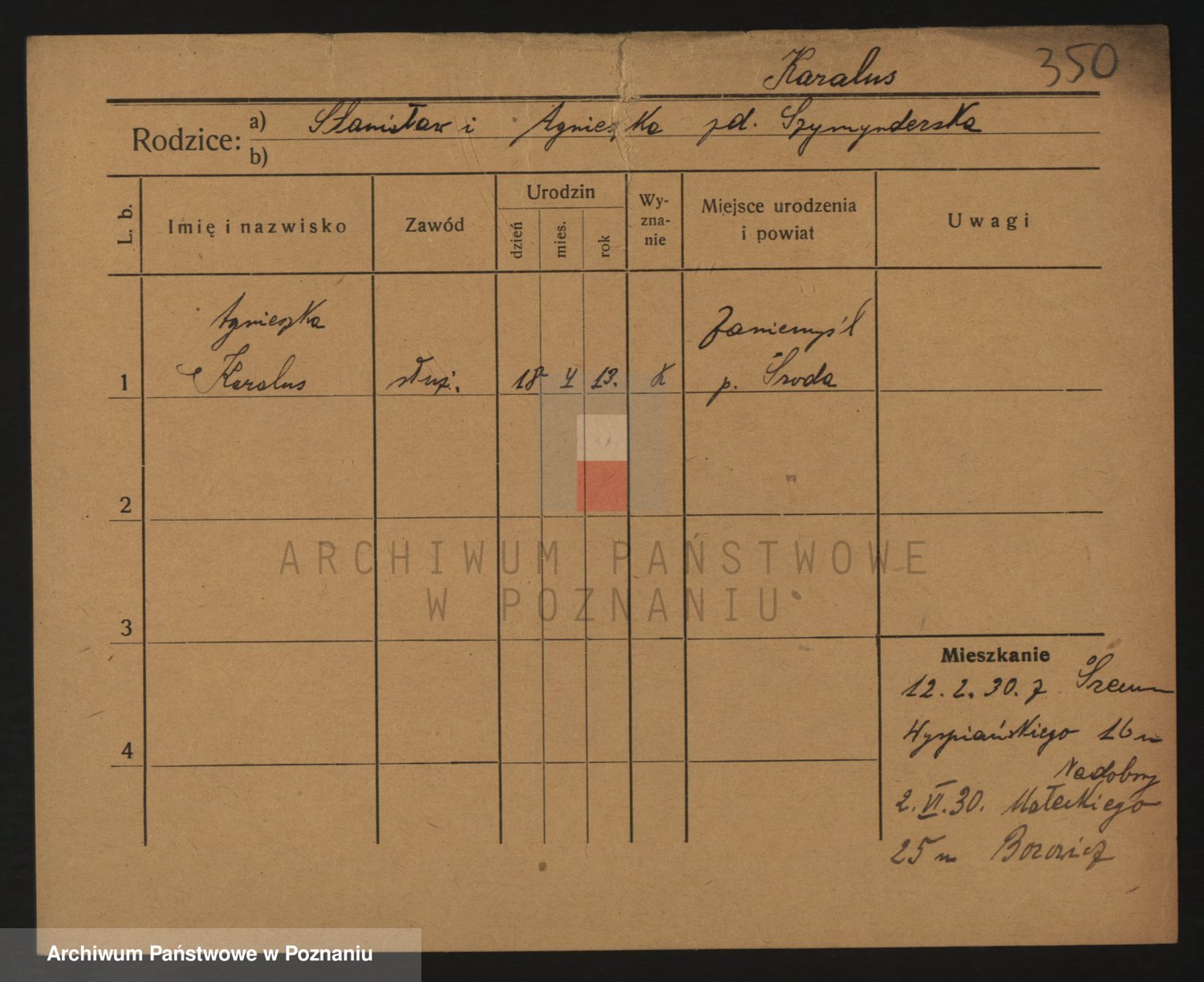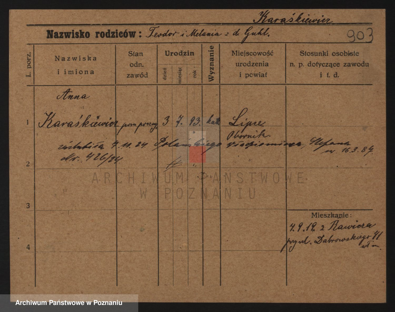 Podgląd karty osobowej dostępny jest po kliknięciu na nazwisko lub ikonkę karty. Można dokonywać powiększenia (ikony na górze) lub przechodzić między kolejnymi skanami (strzałki po bokach).