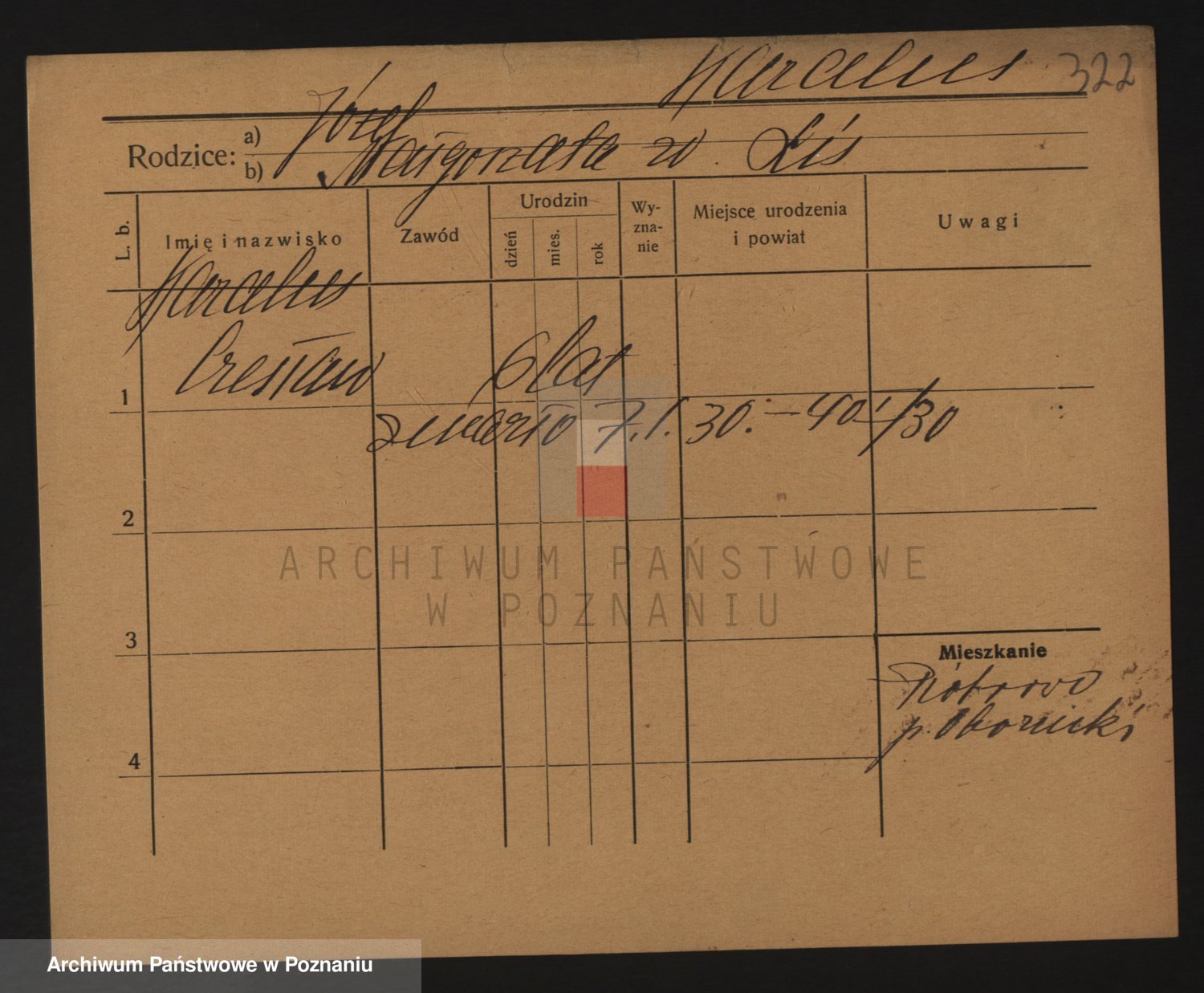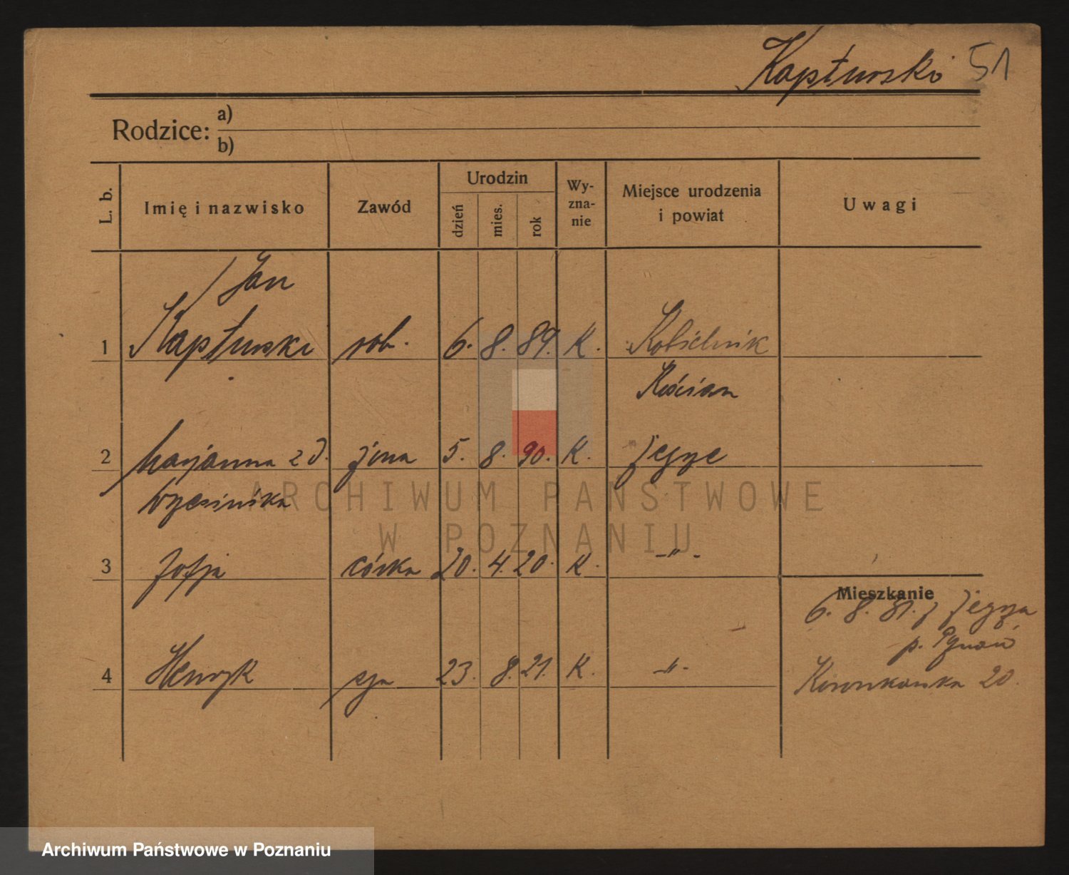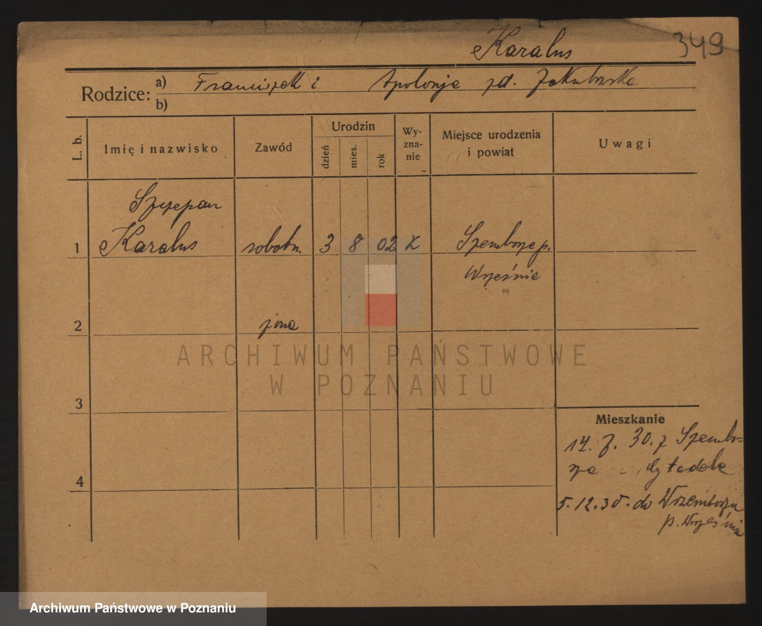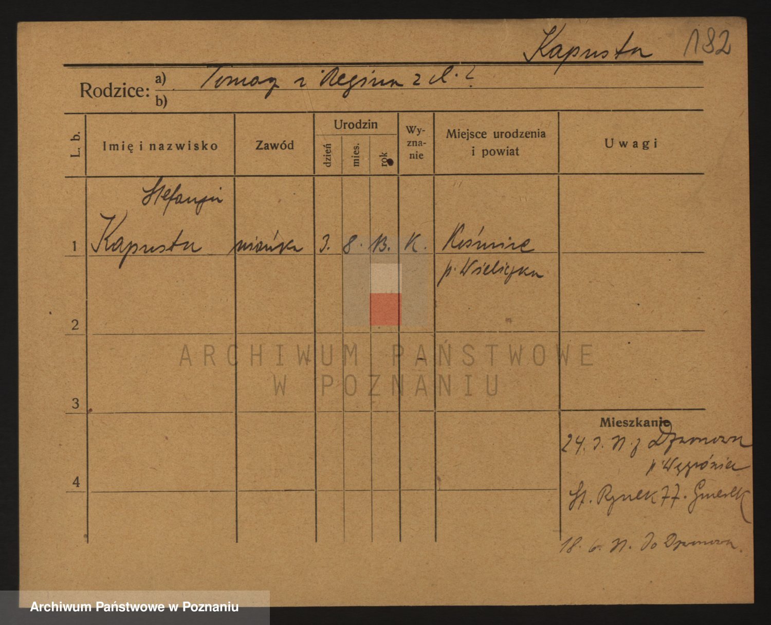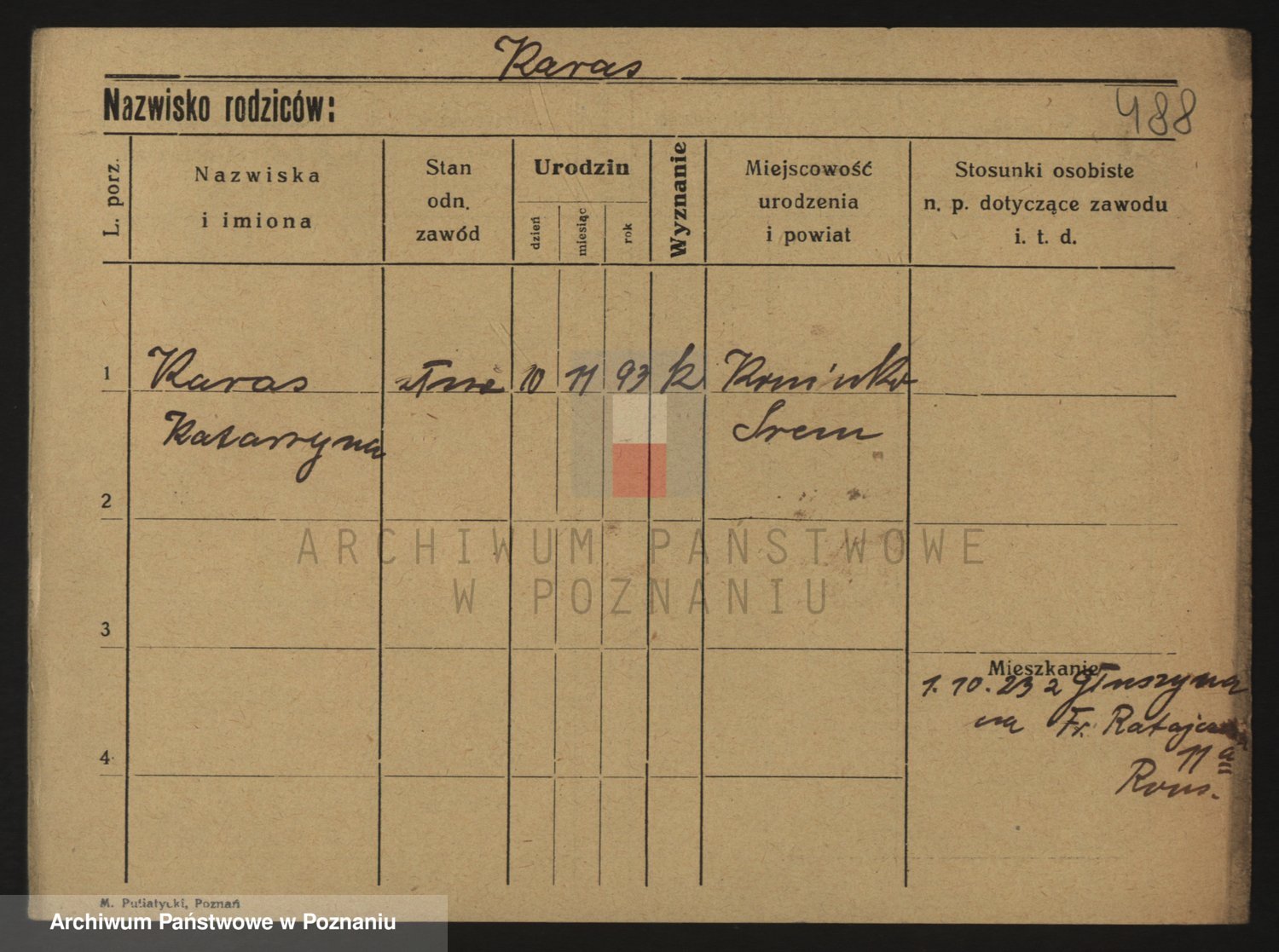 Podgląd karty osobowej dostępny jest po kliknięciu na nazwisko lub ikonkę karty. Można dokonywać powiększenia (ikony na górze) lub przechodzić między kolejnymi skanami (strzałki po bokach).