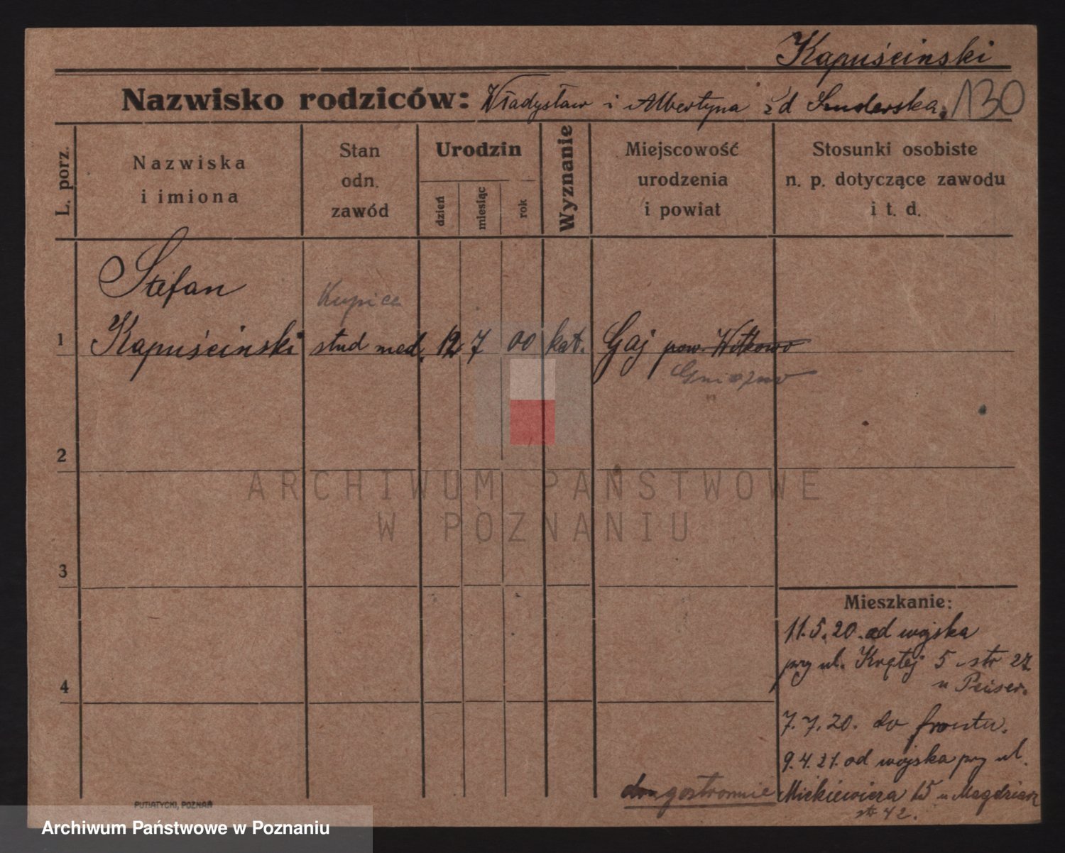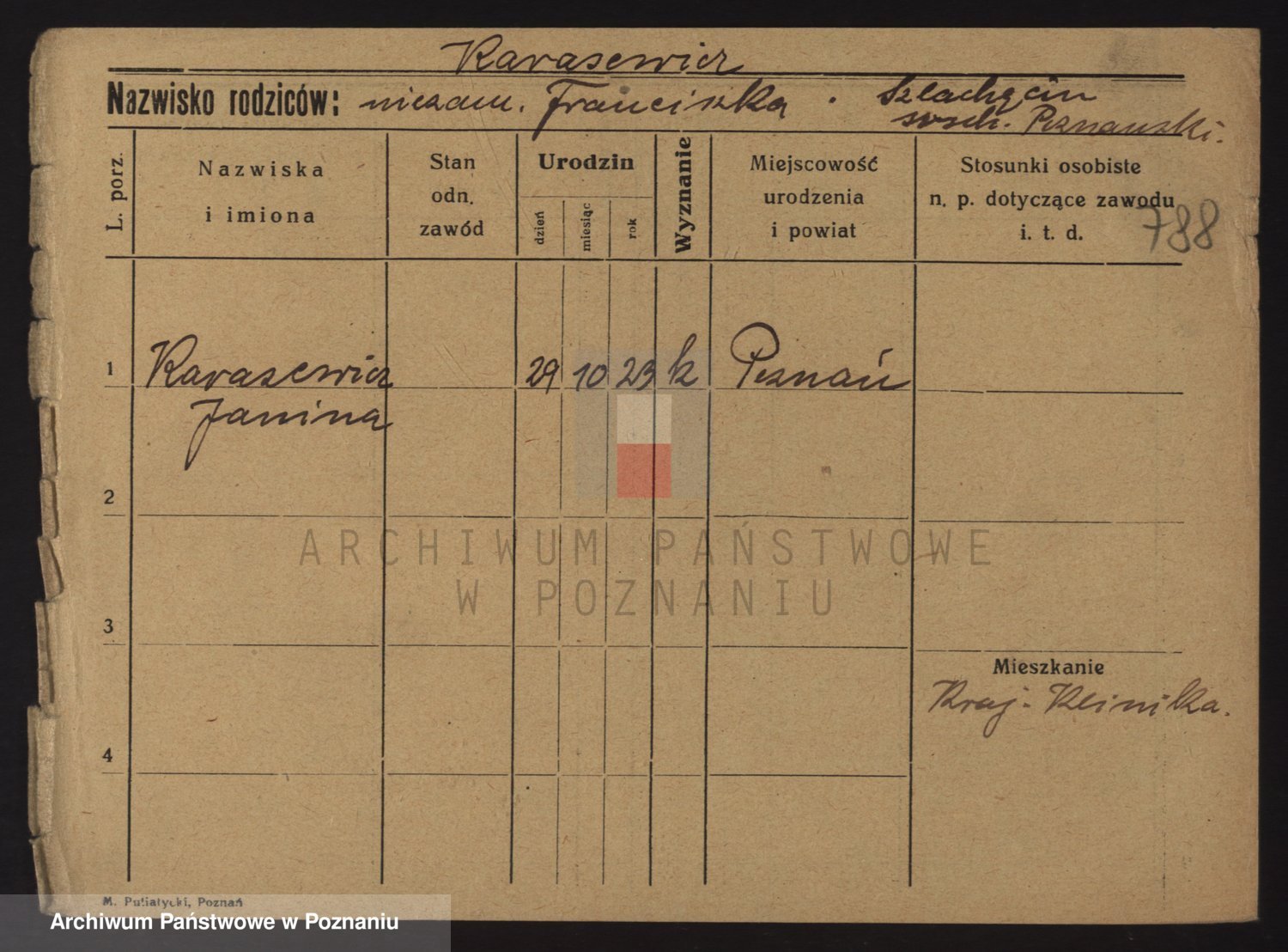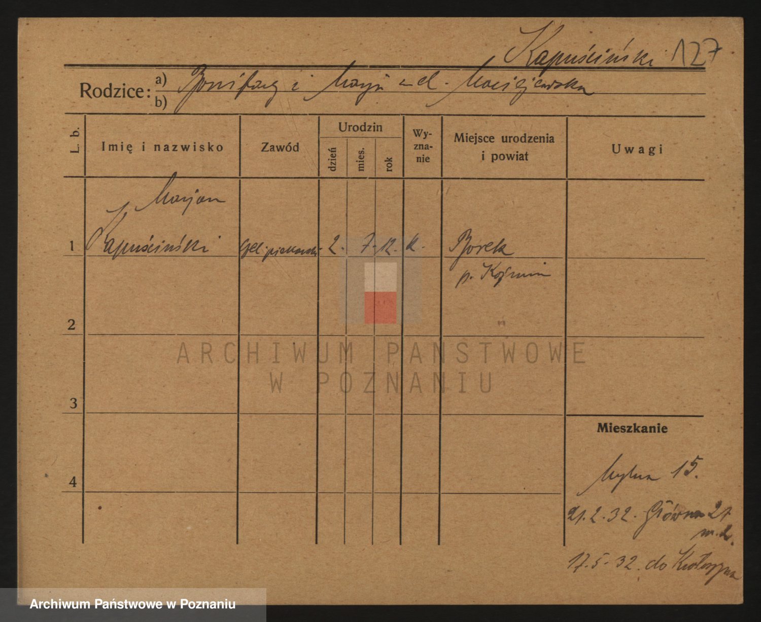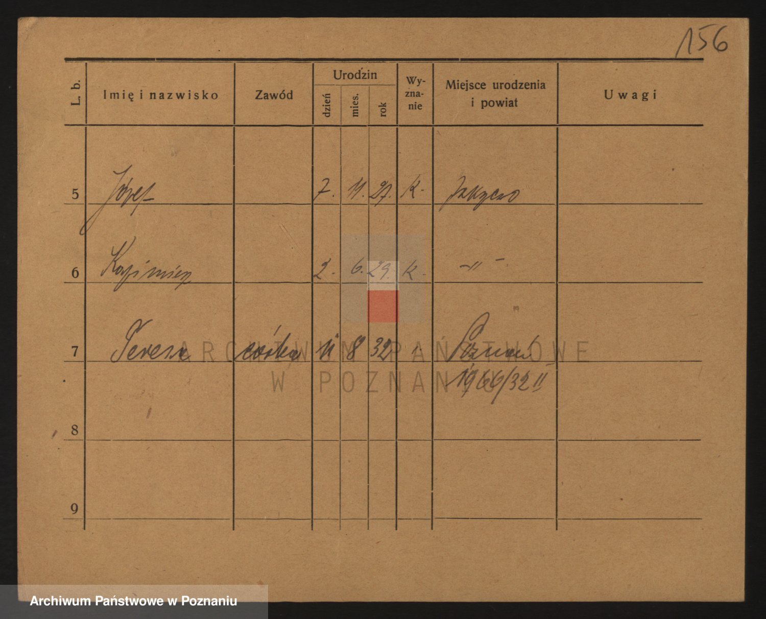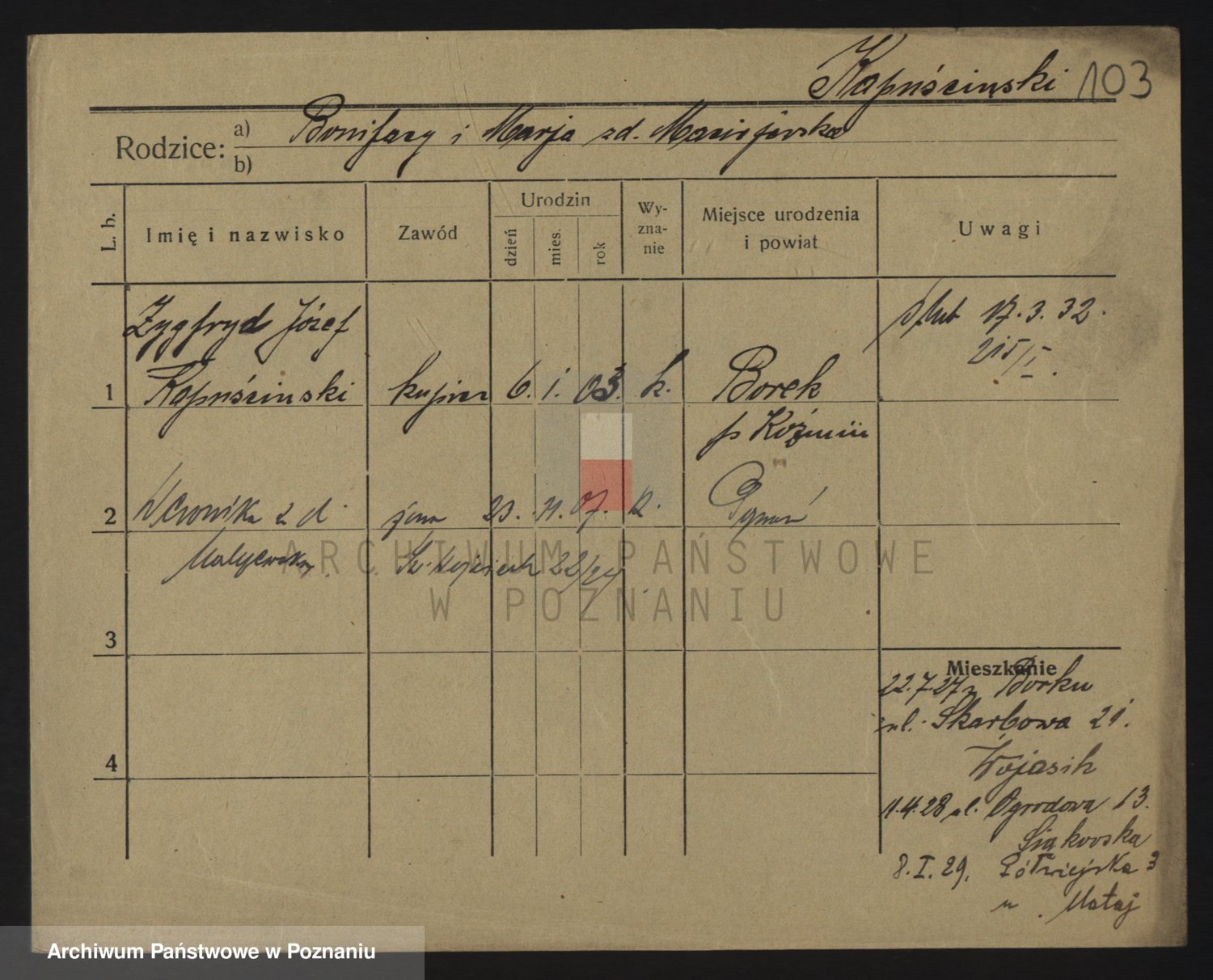 Podgląd karty osobowej dostępny jest po kliknięciu na nazwisko lub ikonkę karty. Można dokonywać powiększenia (ikony na górze) lub przechodzić między kolejnymi skanami (strzałki po bokach).