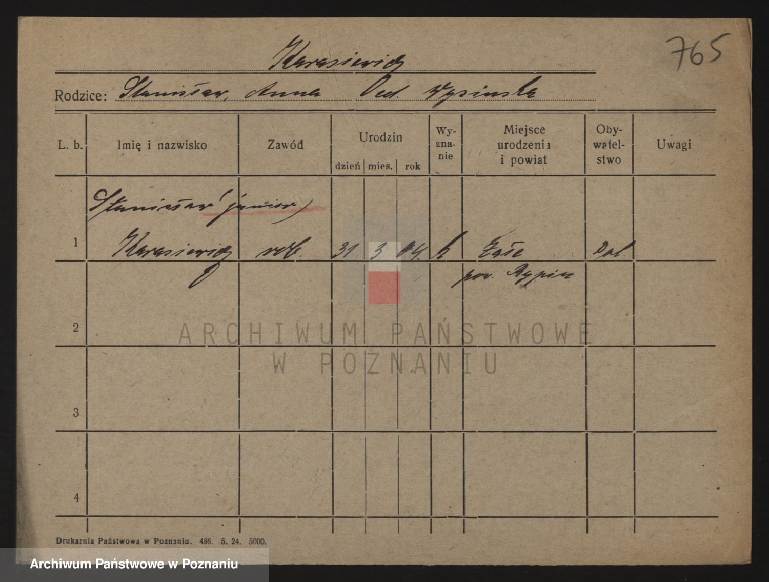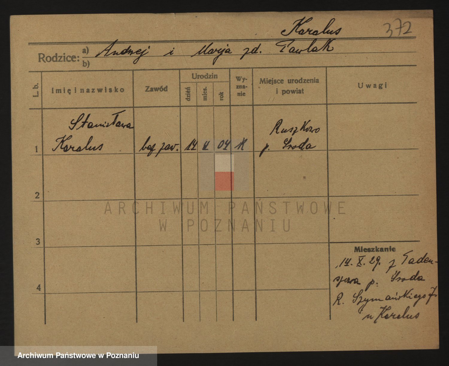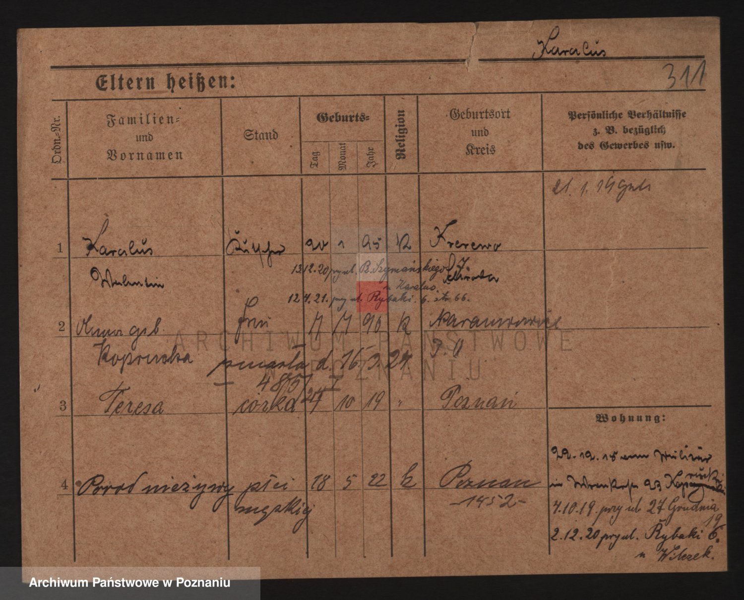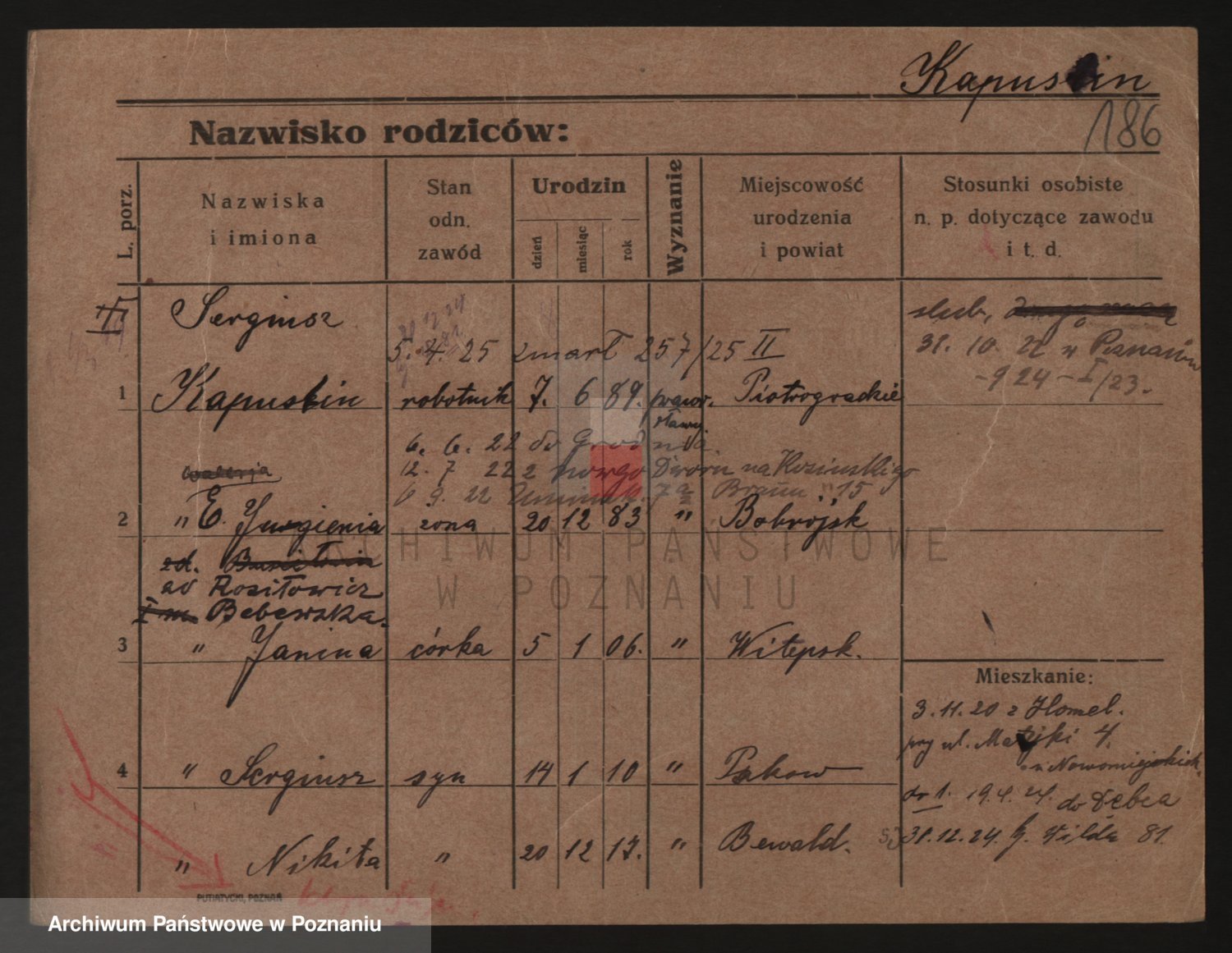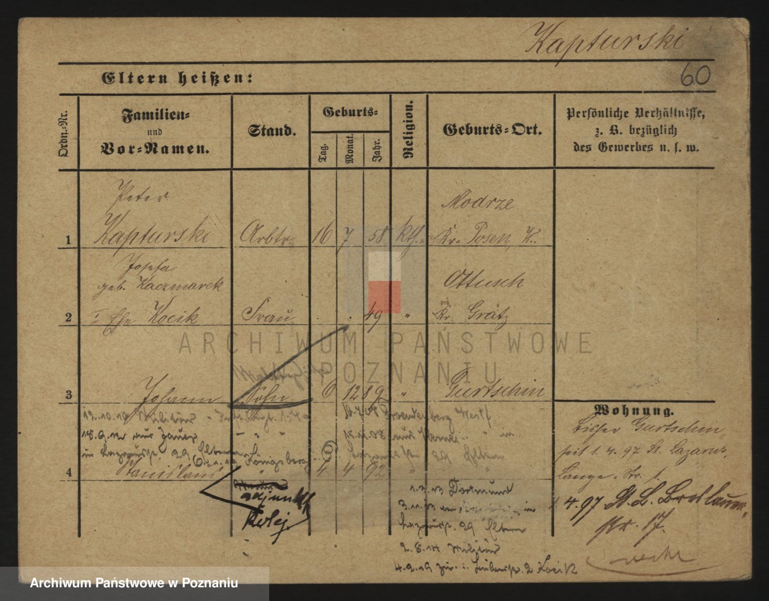Podgląd karty osobowej dostępny jest po kliknięciu na nazwisko lub ikonkę karty. Można dokonywać powiększenia (ikony na górze) lub przechodzić między kolejnymi skanami (strzałki po bokach).