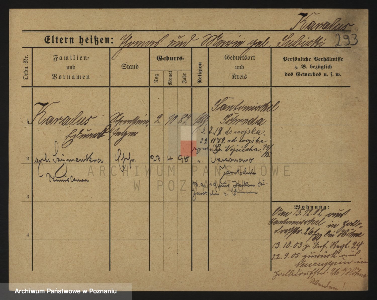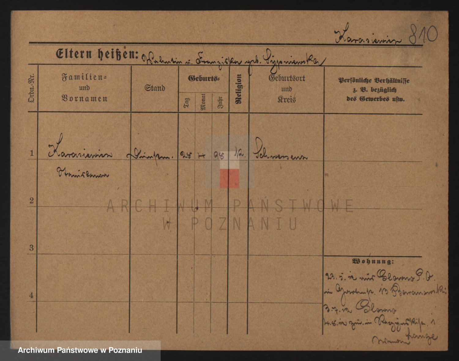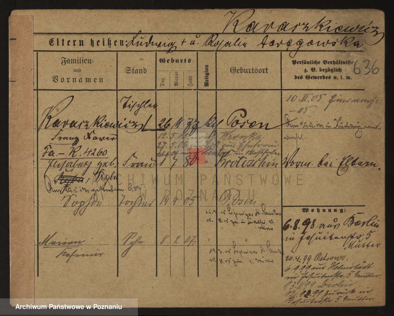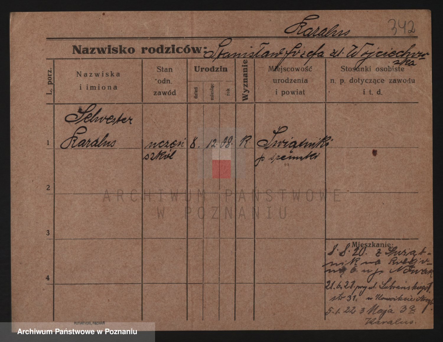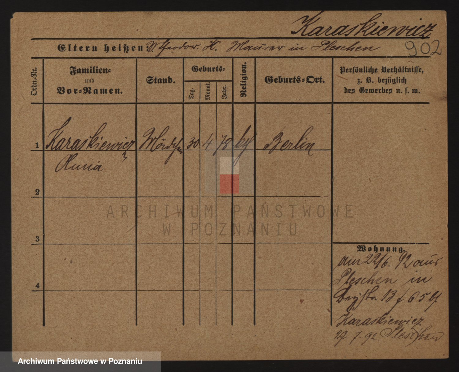 Podgląd karty osobowej dostępny jest po kliknięciu na nazwisko lub ikonkę karty. Można dokonywać powiększenia (ikony na górze) lub przechodzić między kolejnymi skanami (strzałki po bokach).