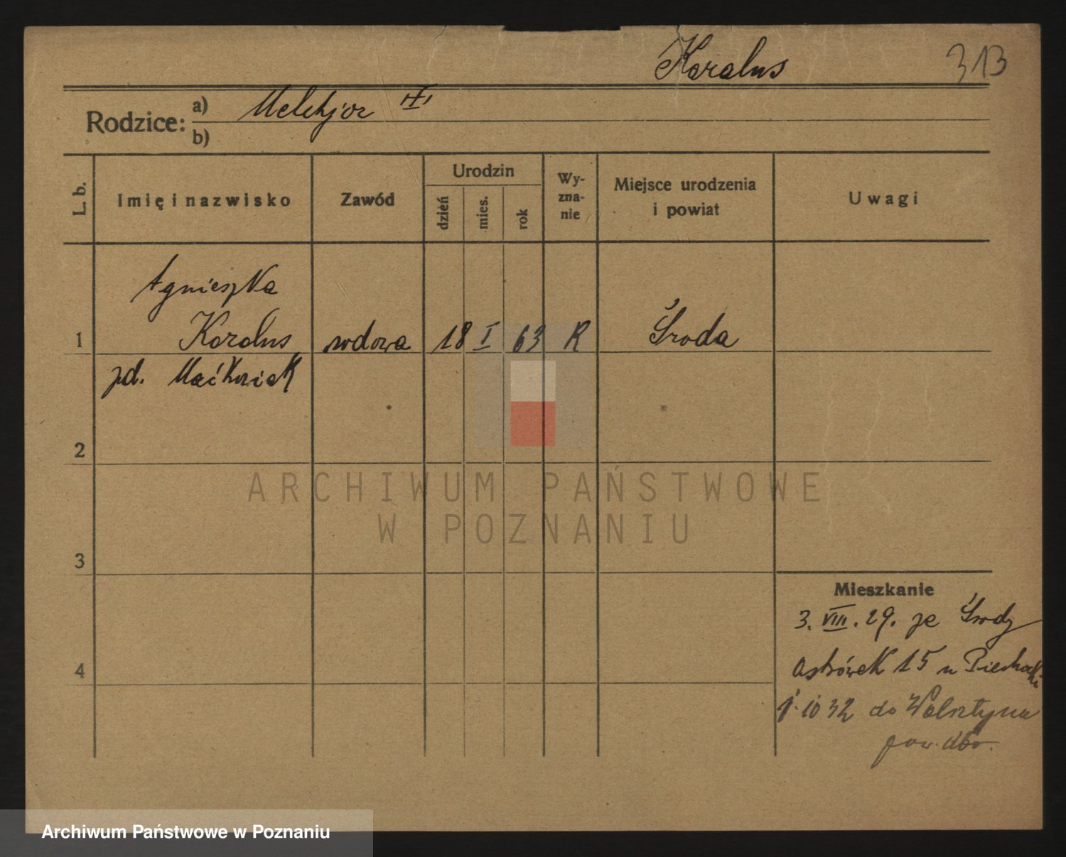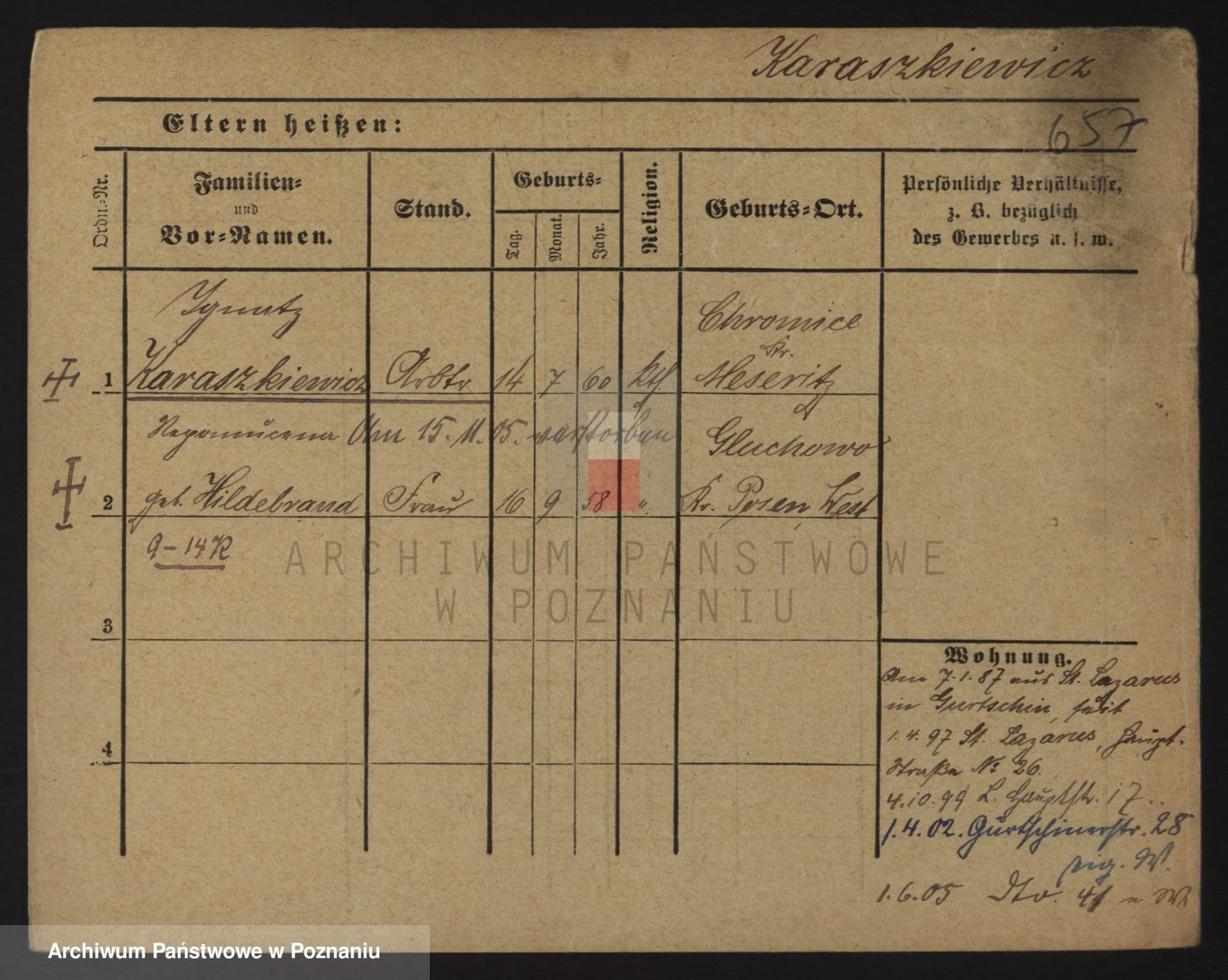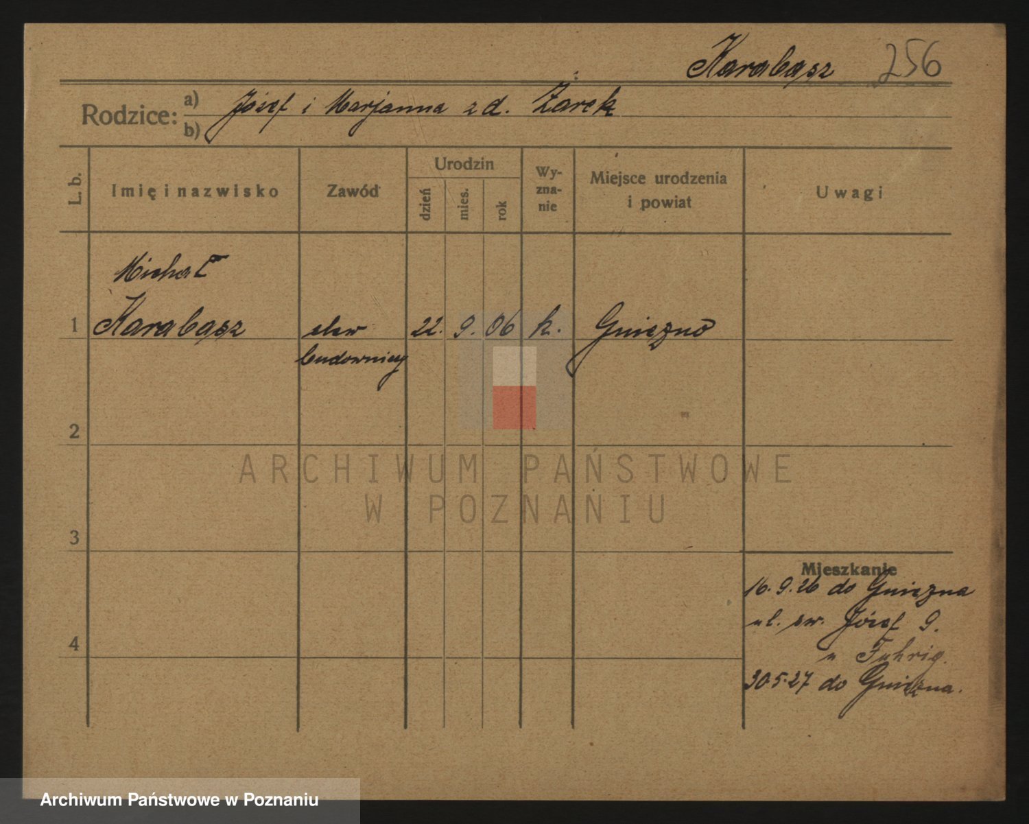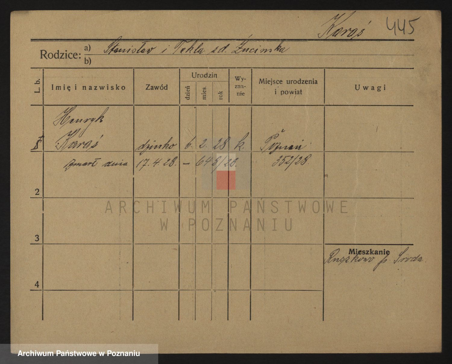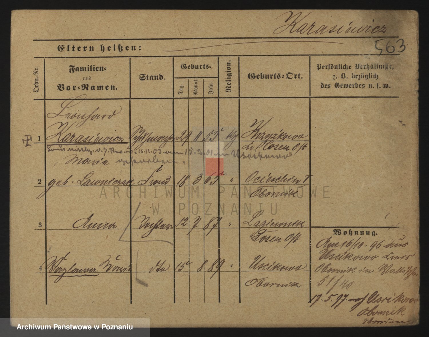 Podgląd karty osobowej dostępny jest po kliknięciu na nazwisko lub ikonkę karty. Można dokonywać powiększenia (ikony na górze) lub przechodzić między kolejnymi skanami (strzałki po bokach).