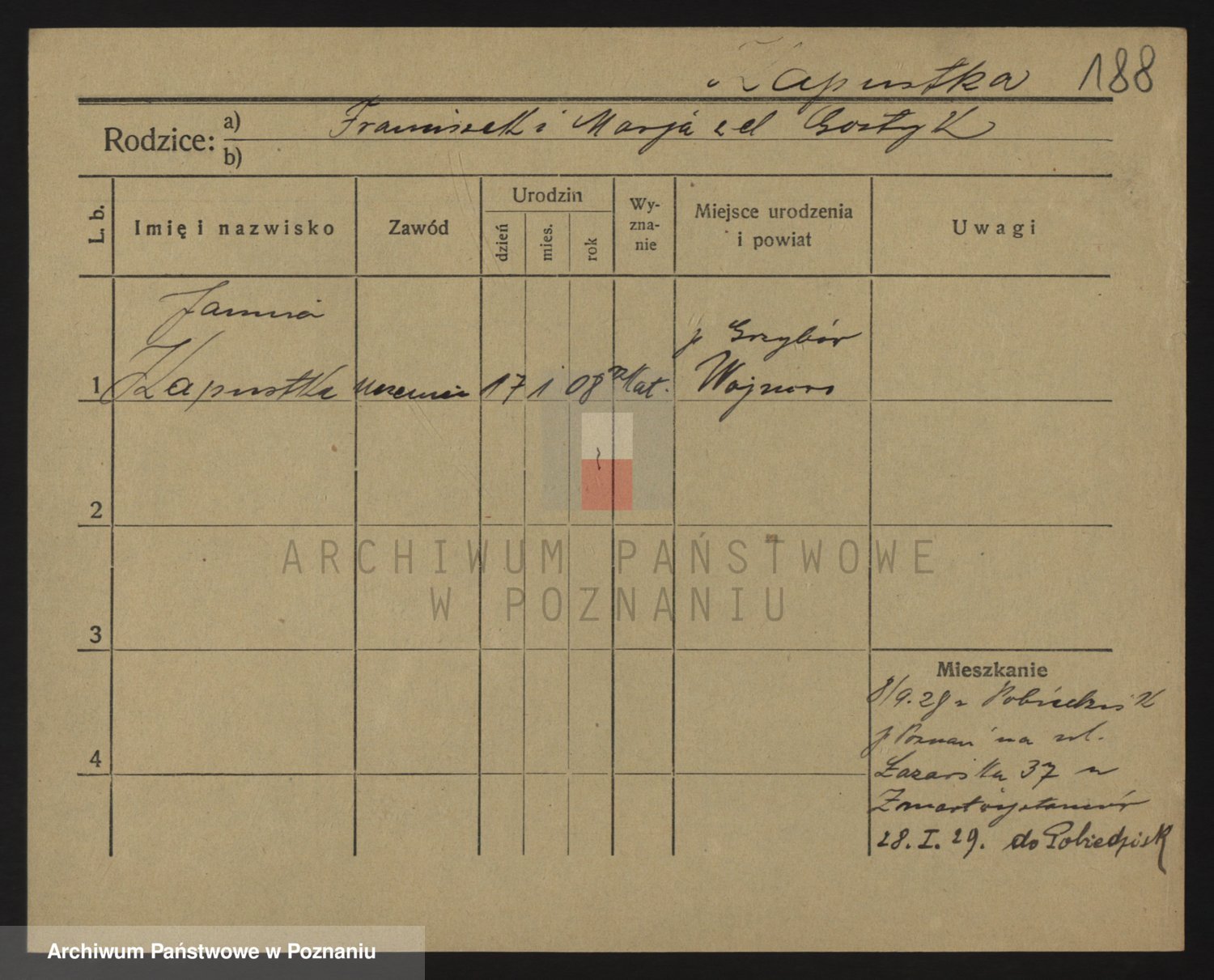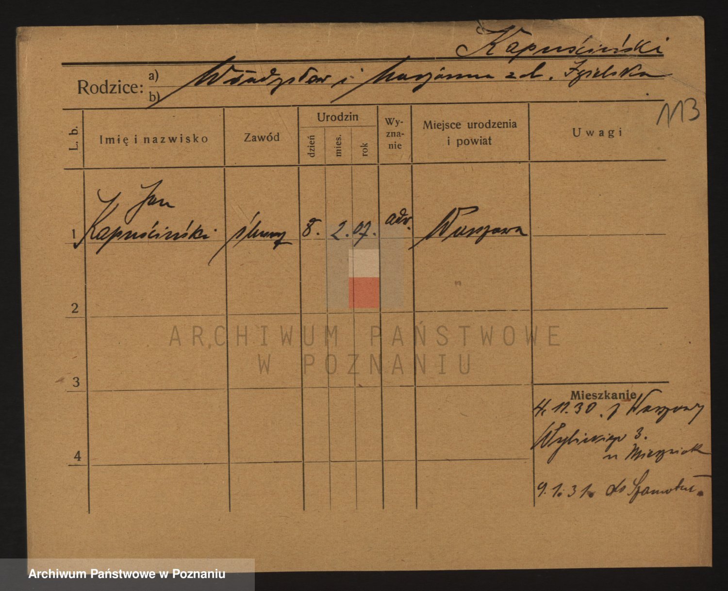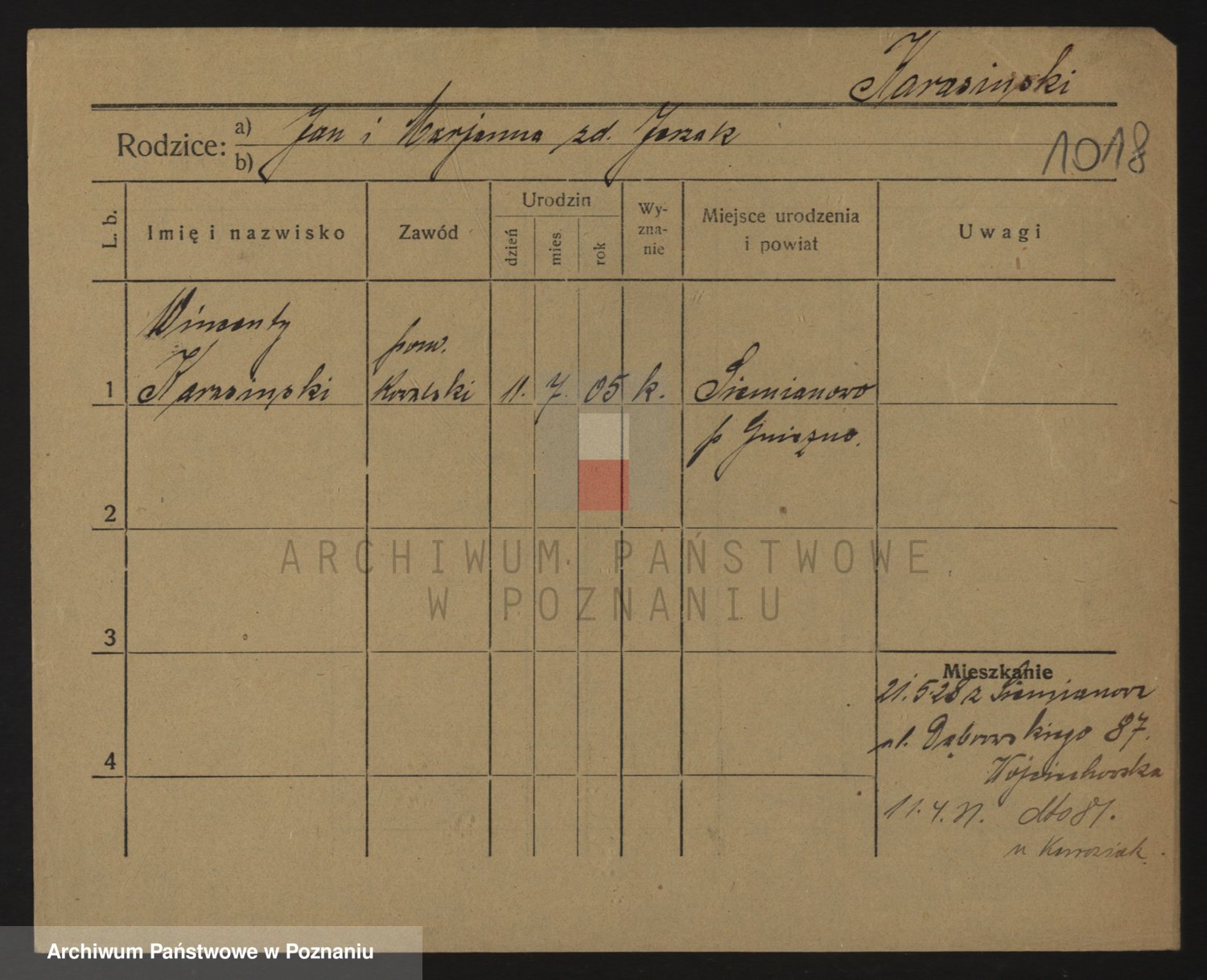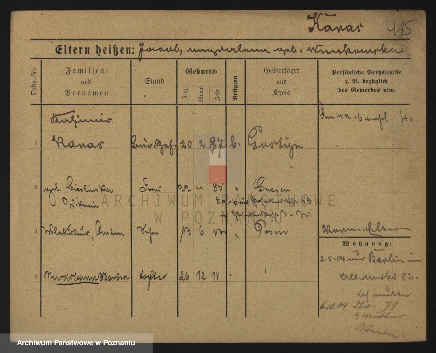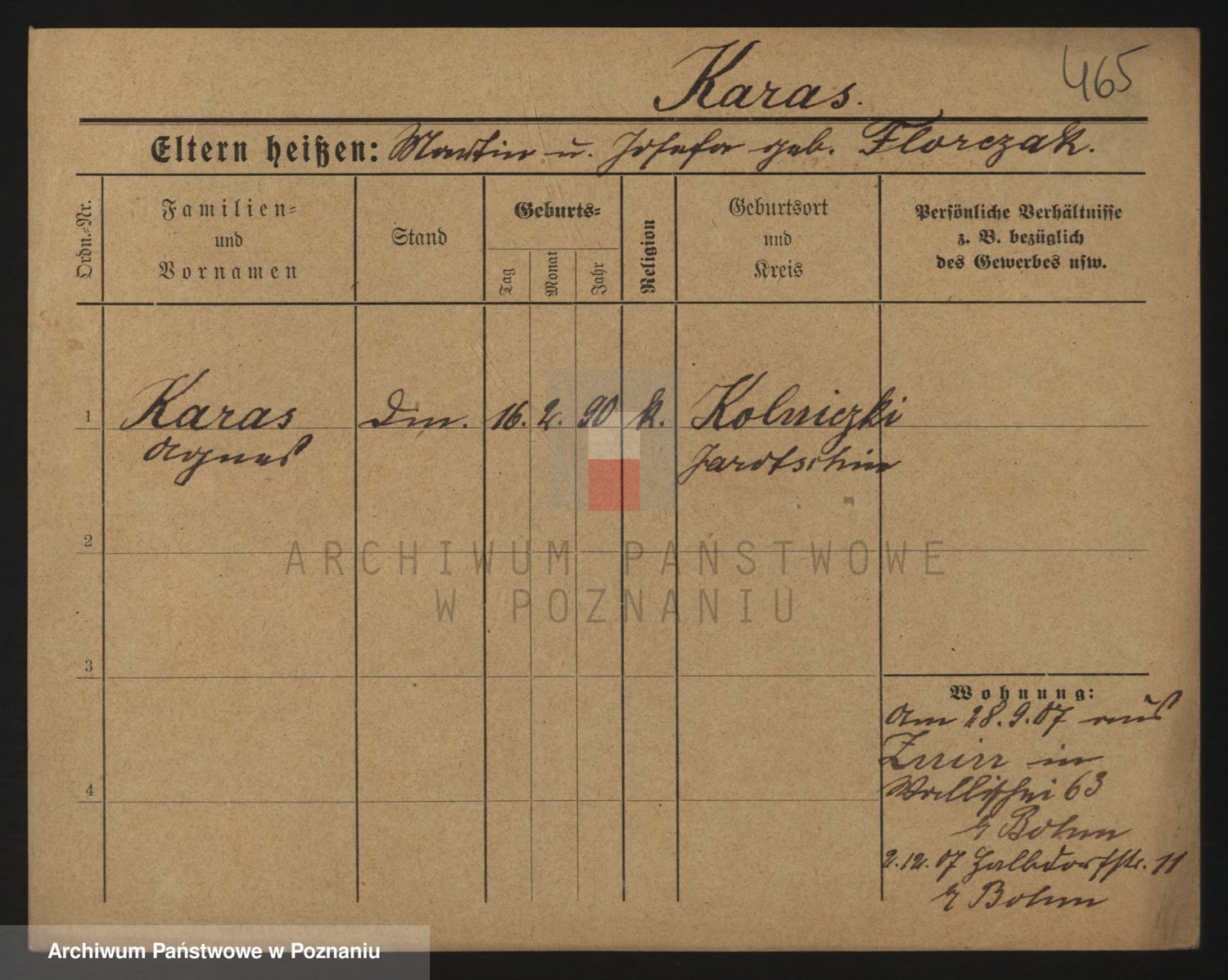 Podgląd karty osobowej dostępny jest po kliknięciu na nazwisko lub ikonkę karty. Można dokonywać powiększenia (ikony na górze) lub przechodzić między kolejnymi skanami (strzałki po bokach).