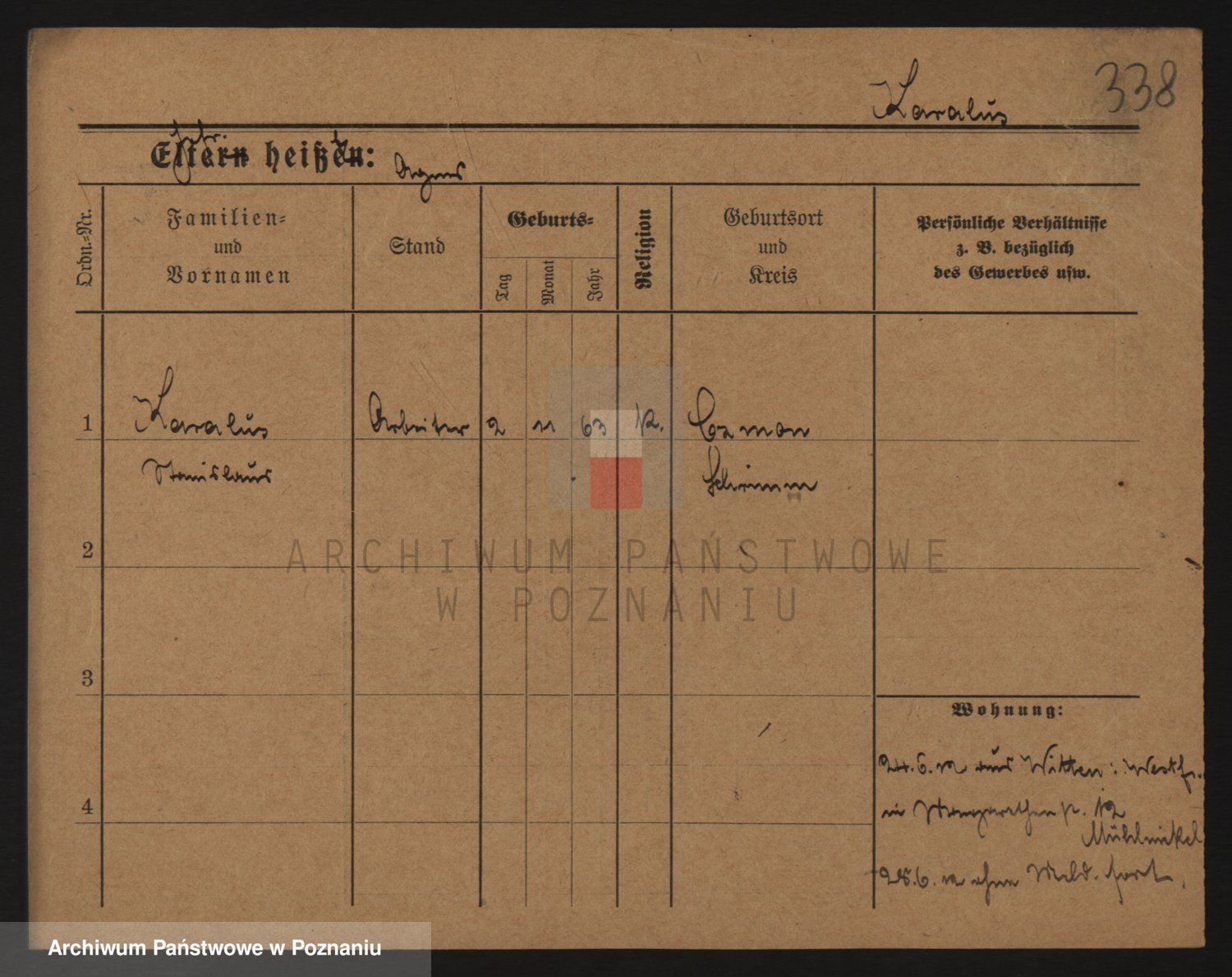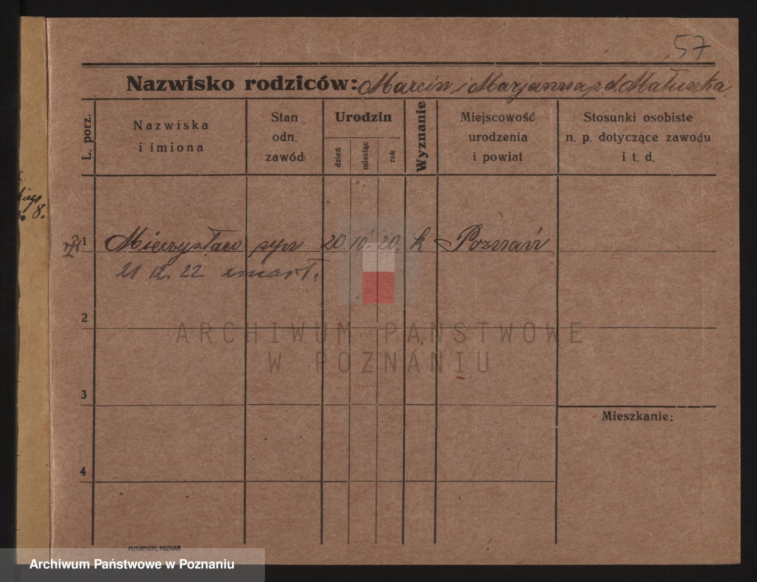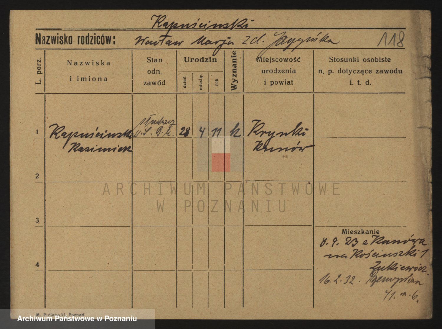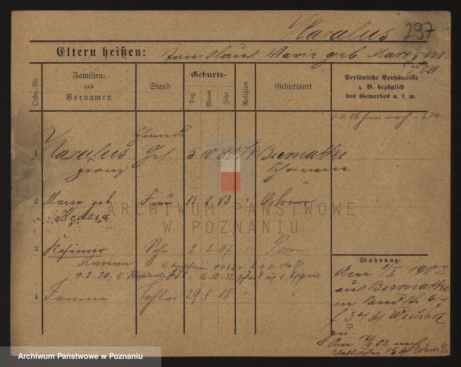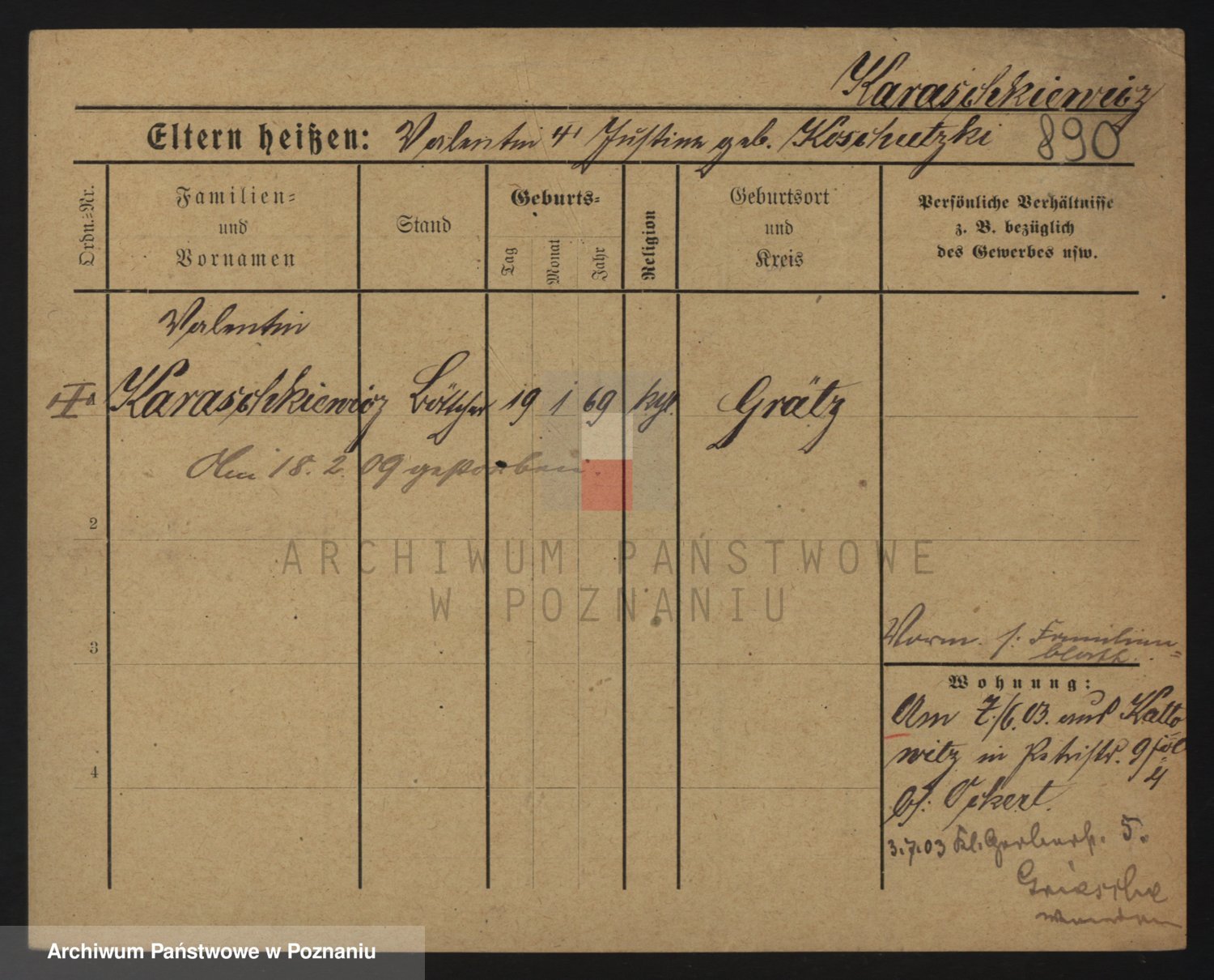 Podgląd karty osobowej dostępny jest po kliknięciu na nazwisko lub ikonkę karty. Można dokonywać powiększenia (ikony na górze) lub przechodzić między kolejnymi skanami (strzałki po bokach).