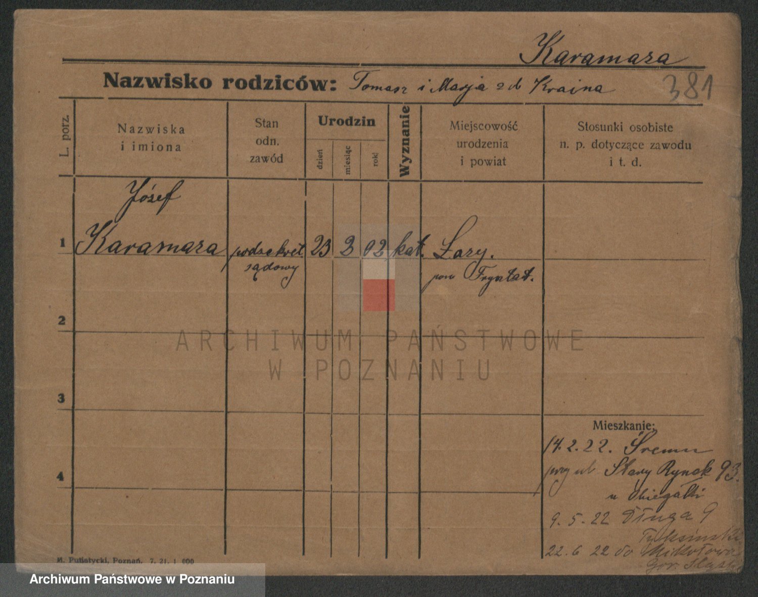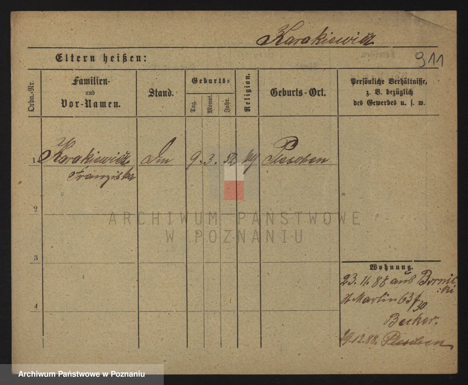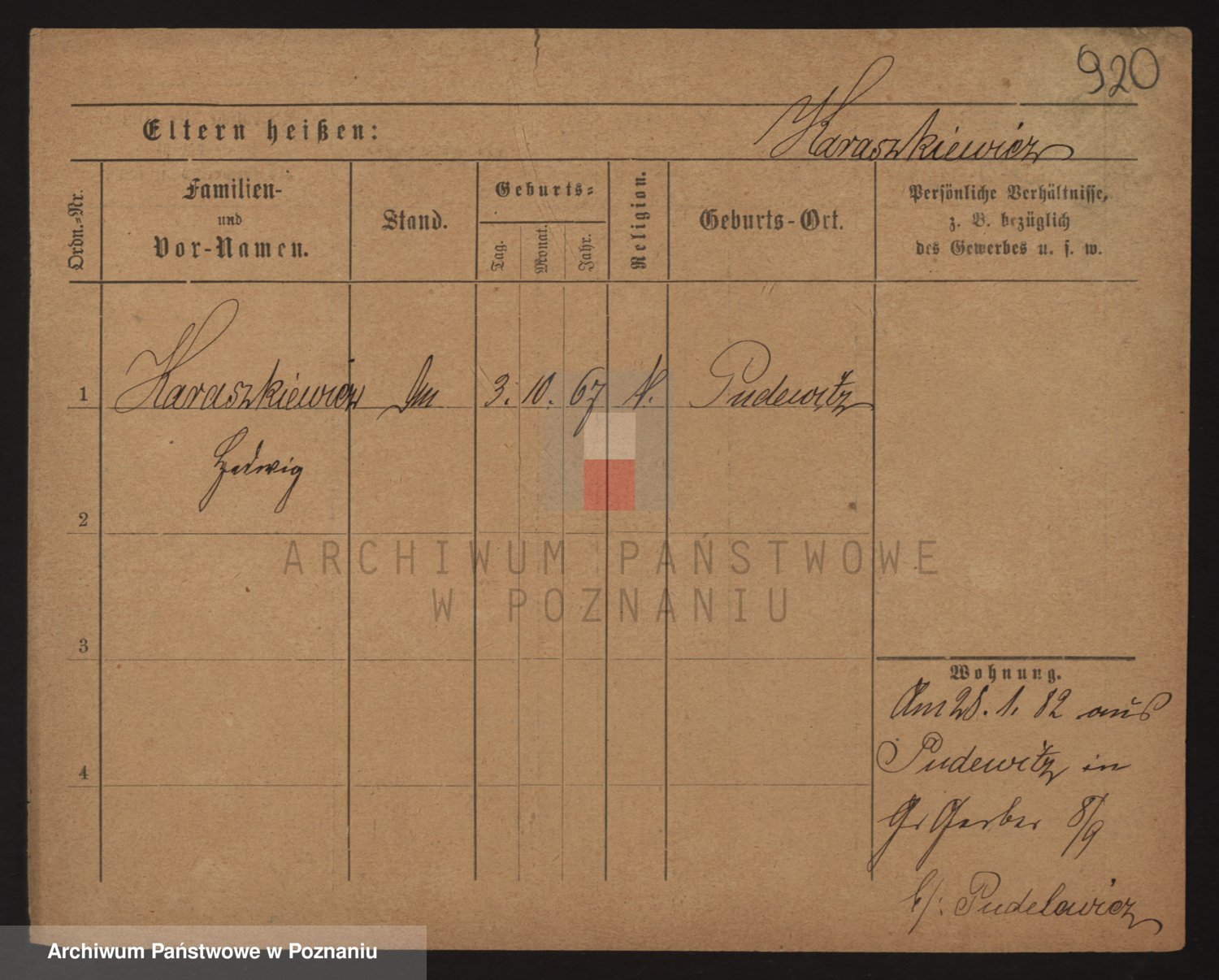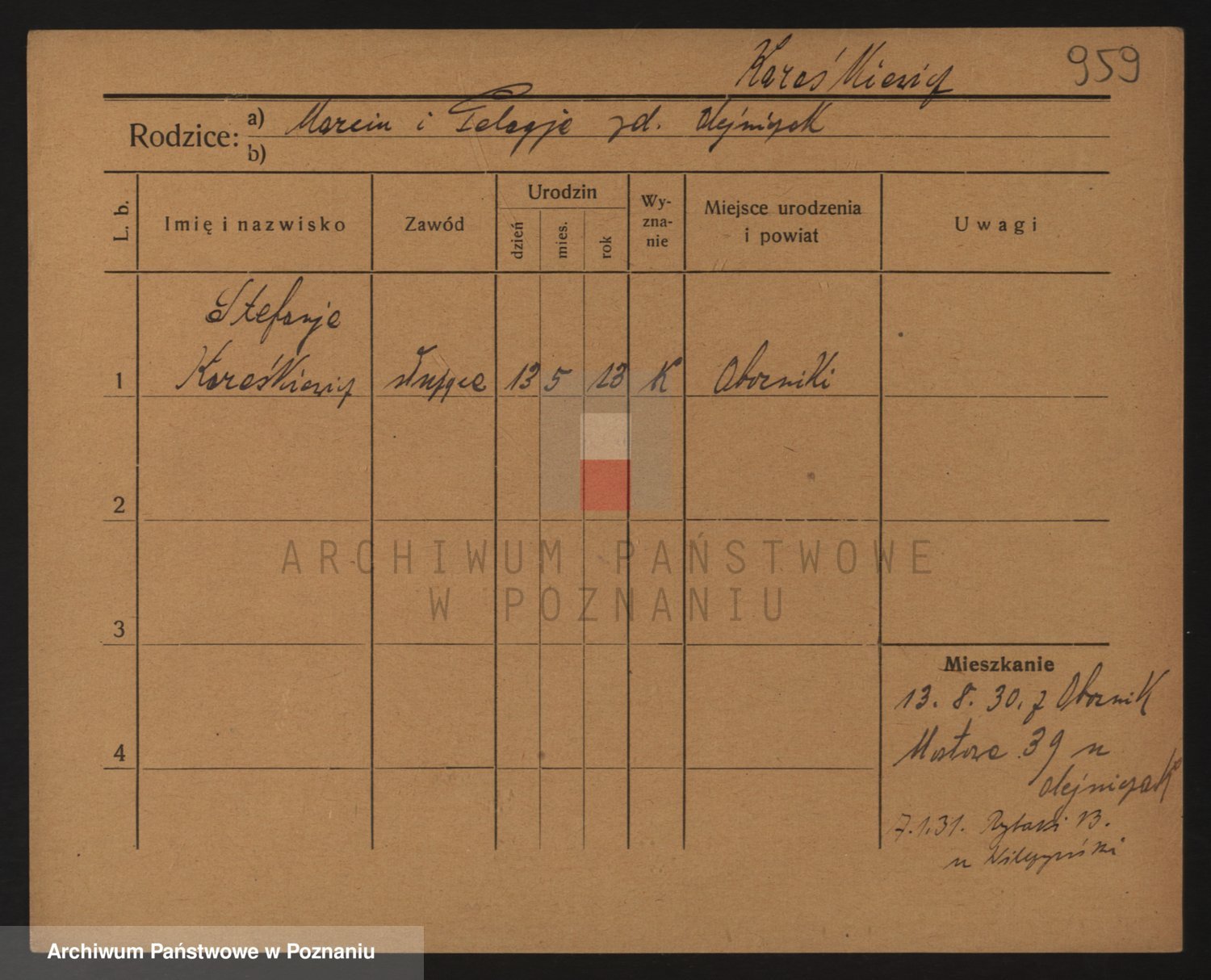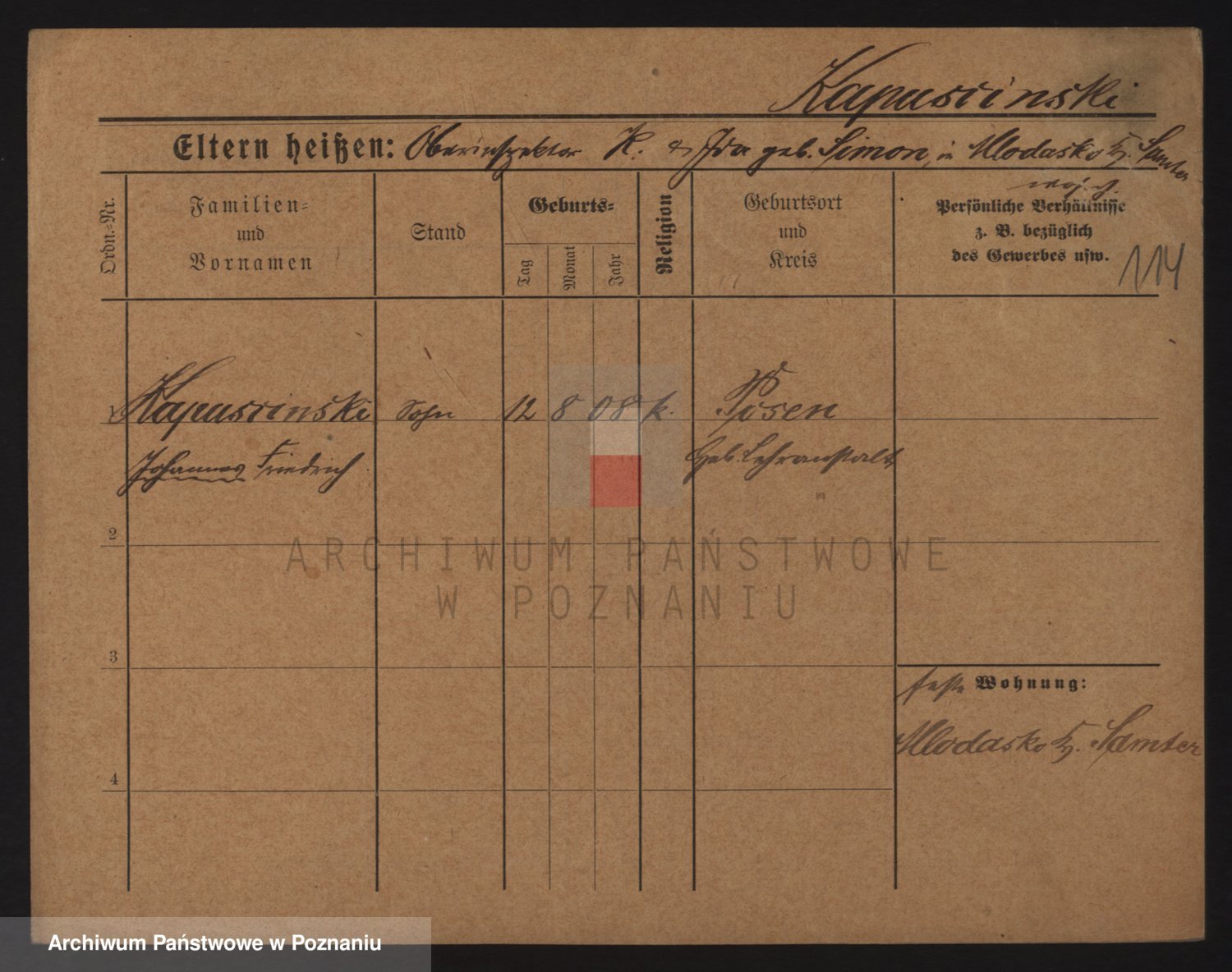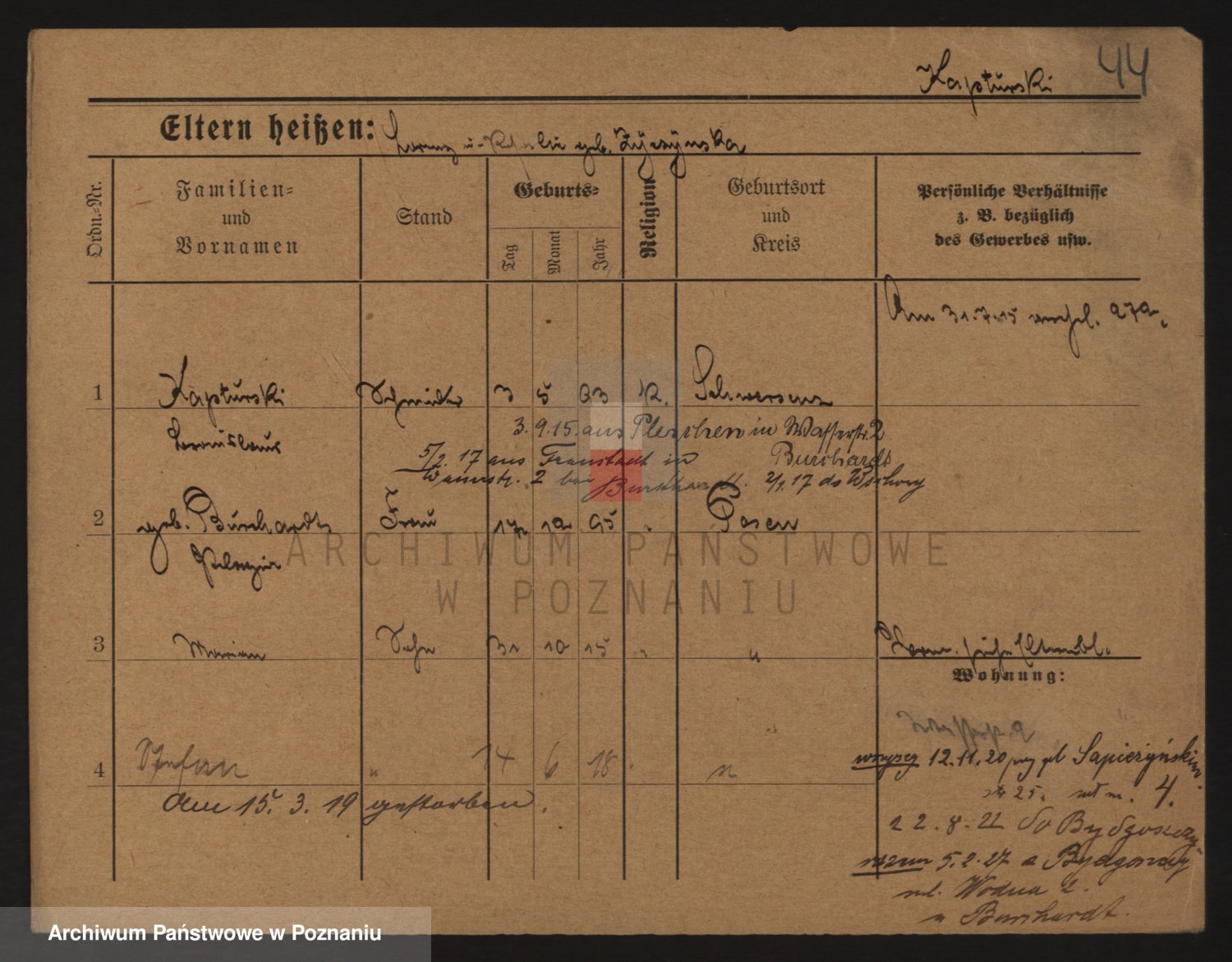 Podgląd karty osobowej dostępny jest po kliknięciu na nazwisko lub ikonkę karty. Można dokonywać powiększenia (ikony na górze) lub przechodzić między kolejnymi skanami (strzałki po bokach).