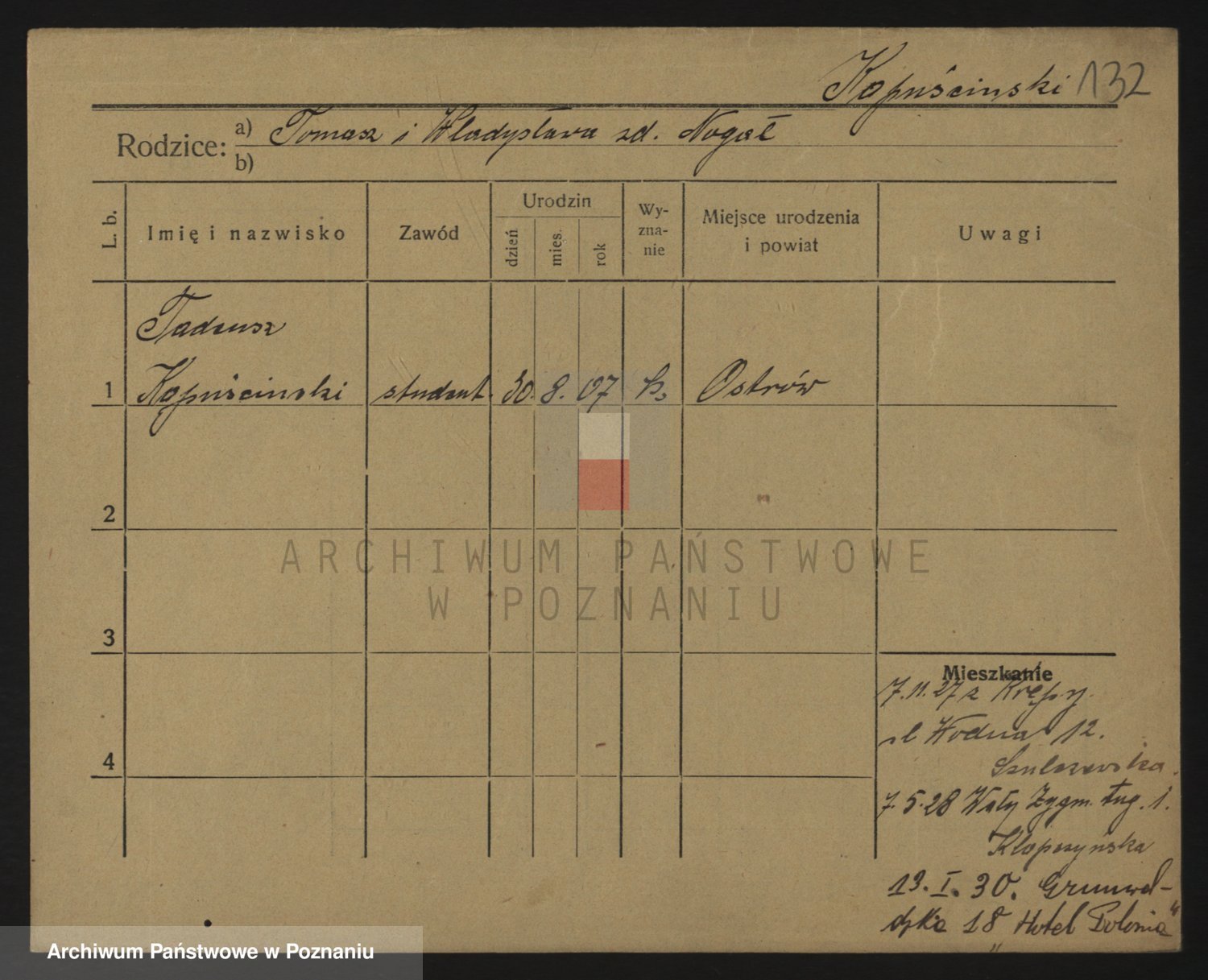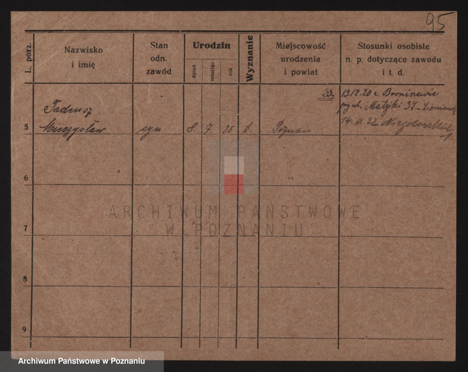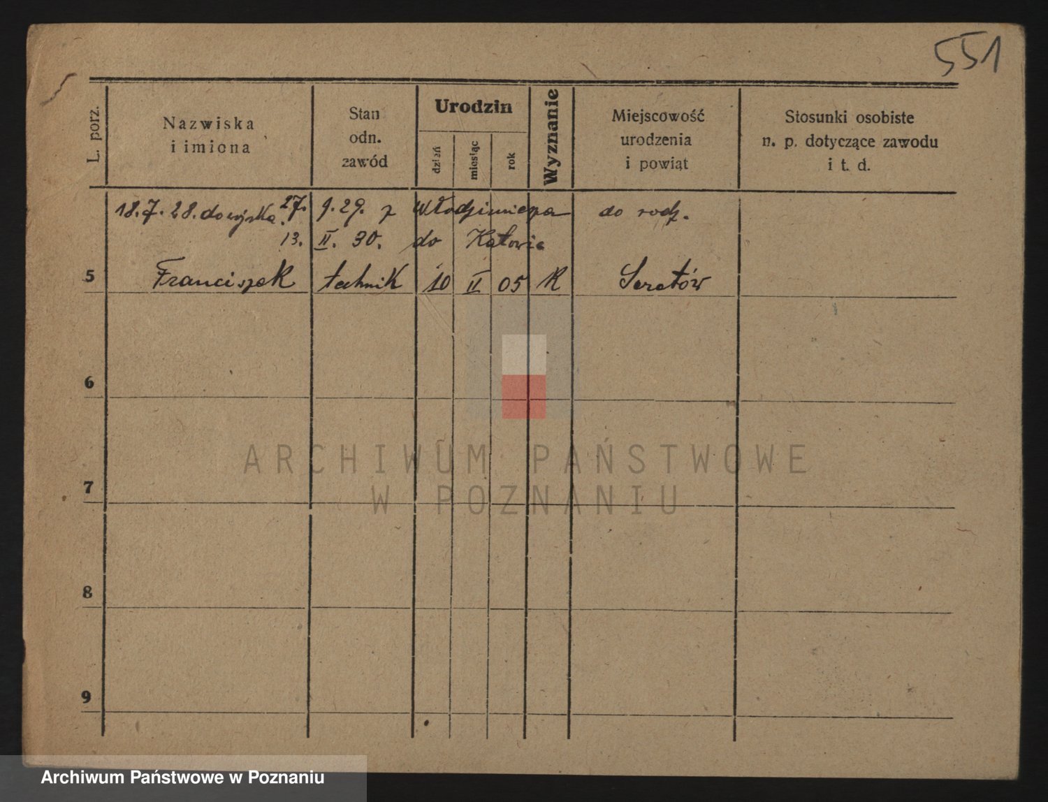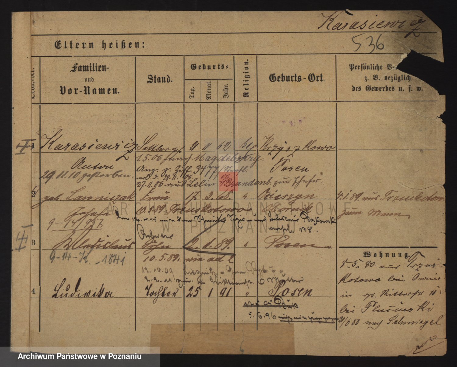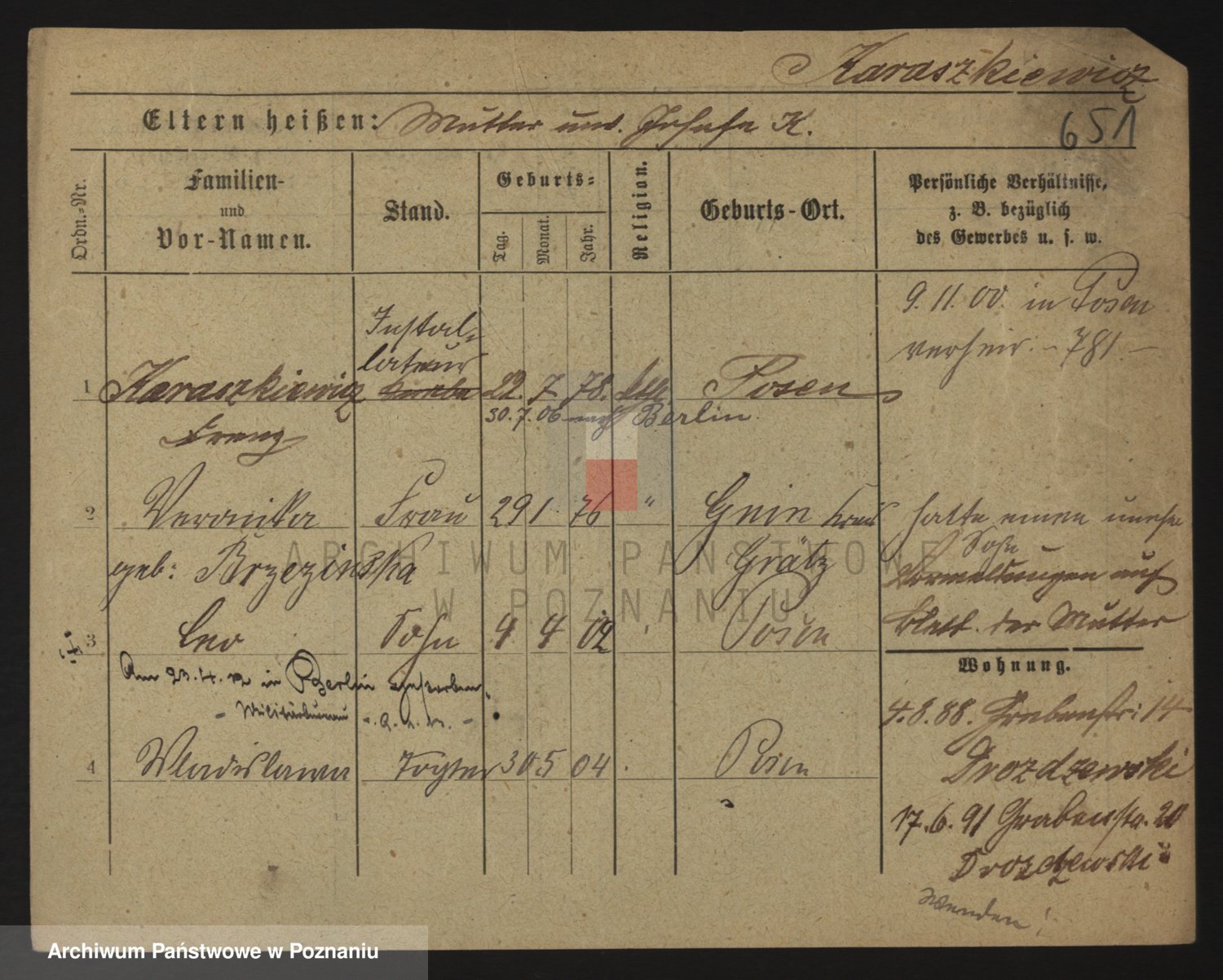 Podgląd karty osobowej dostępny jest po kliknięciu na nazwisko lub ikonkę karty. Można dokonywać powiększenia (ikony na górze) lub przechodzić między kolejnymi skanami (strzałki po bokach).