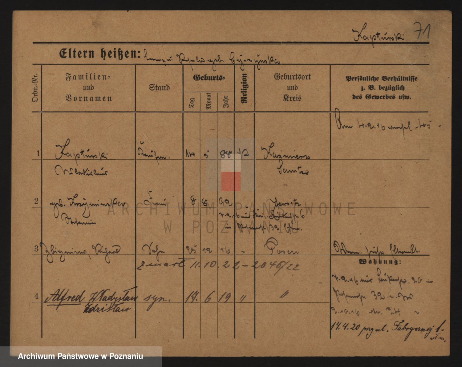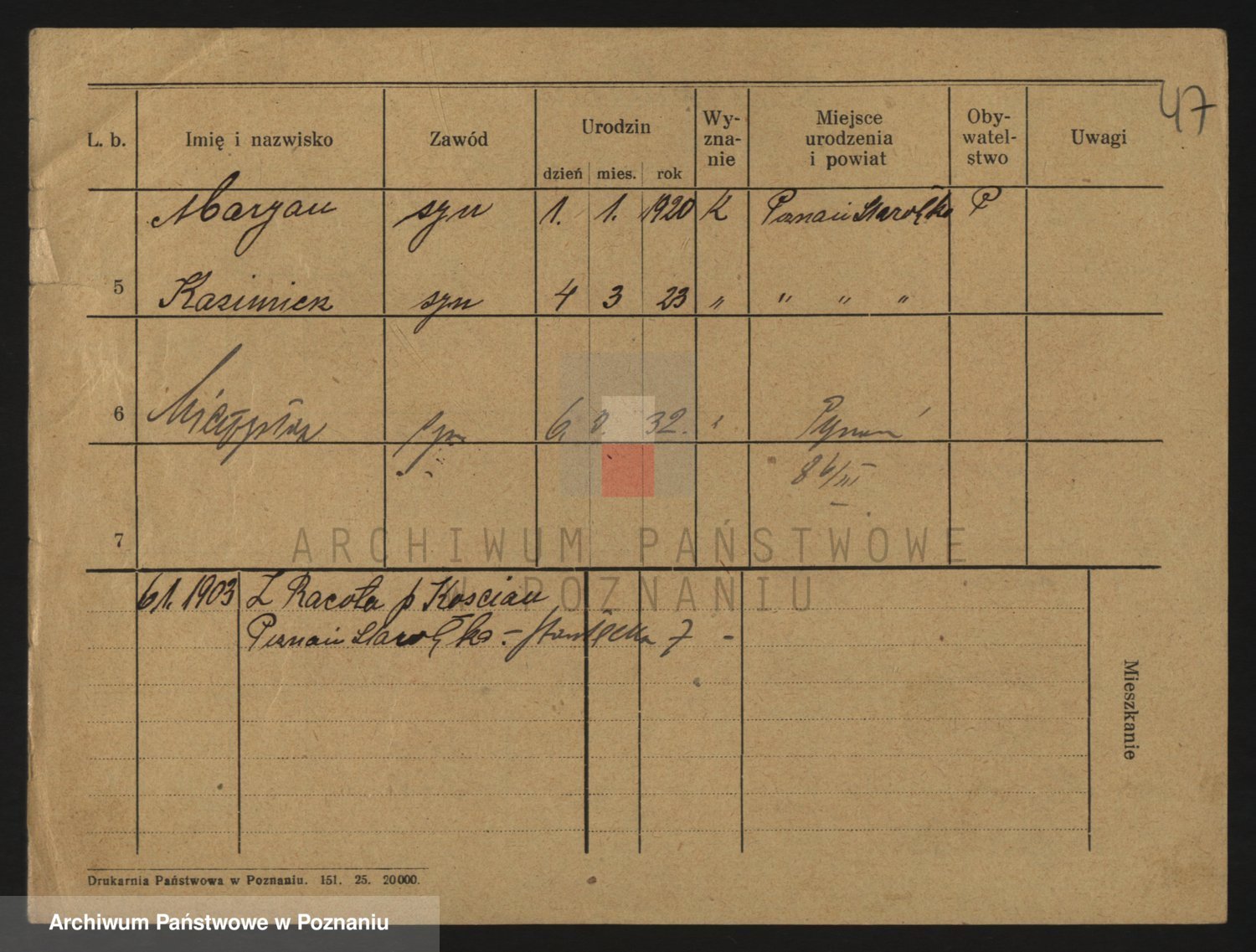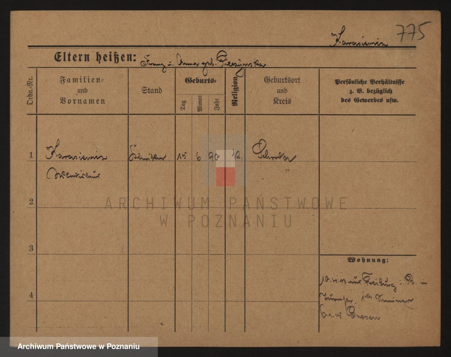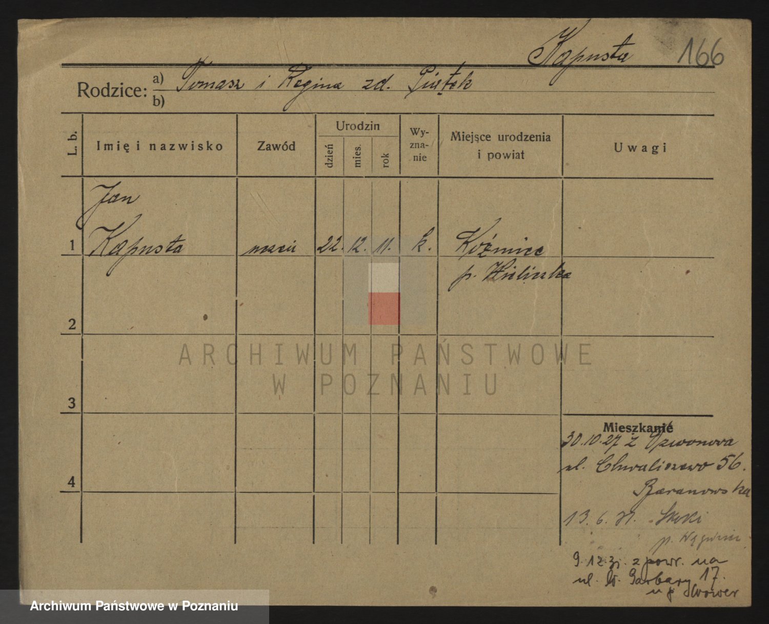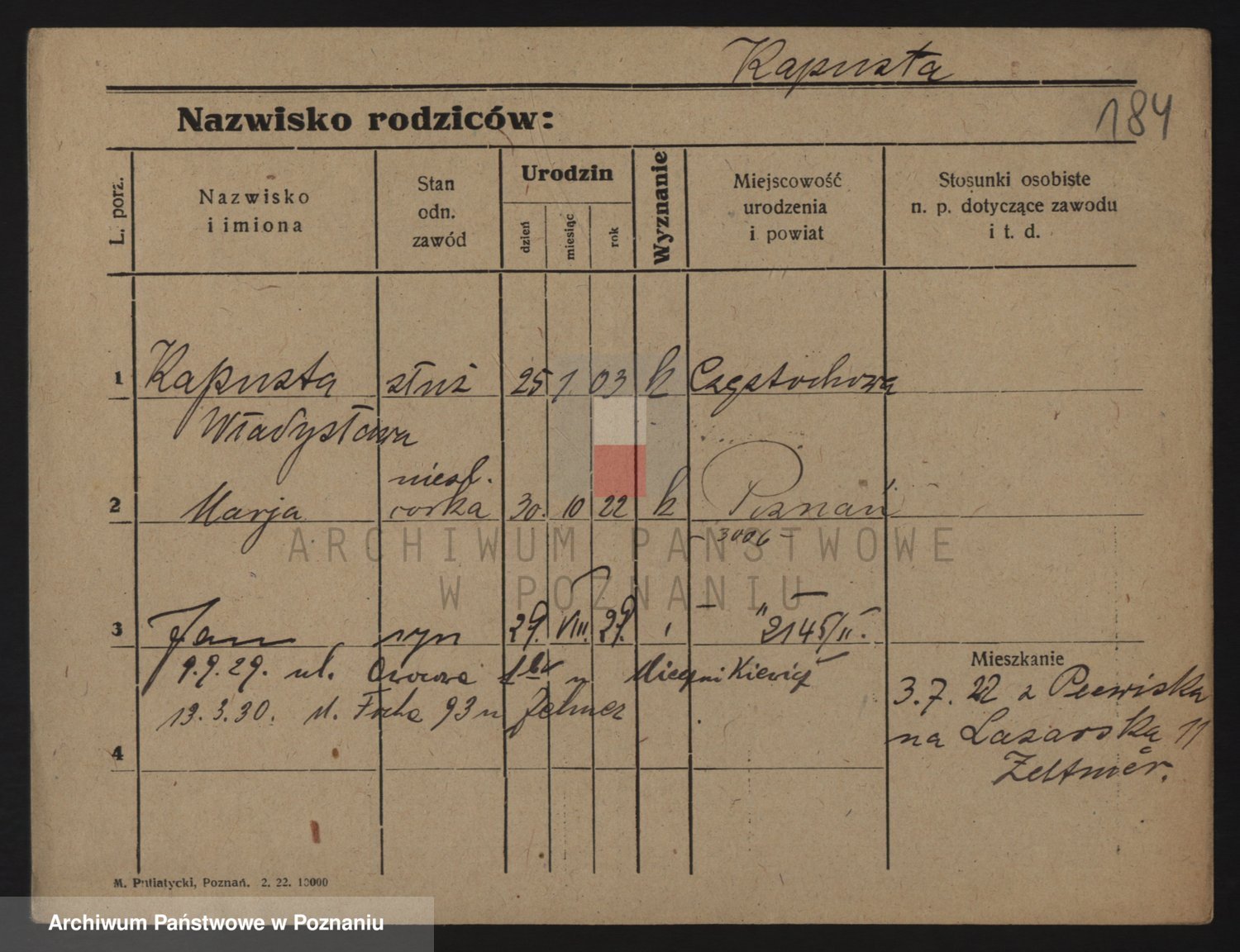 Podgląd karty osobowej dostępny jest po kliknięciu na nazwisko lub ikonkę karty. Można dokonywać powiększenia (ikony na górze) lub przechodzić między kolejnymi skanami (strzałki po bokach).