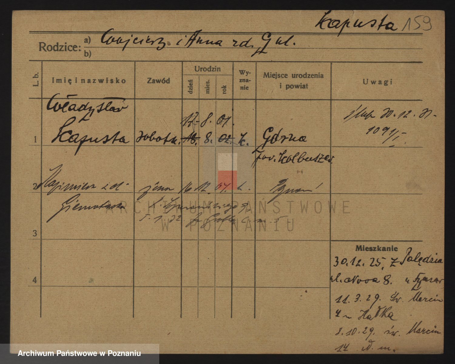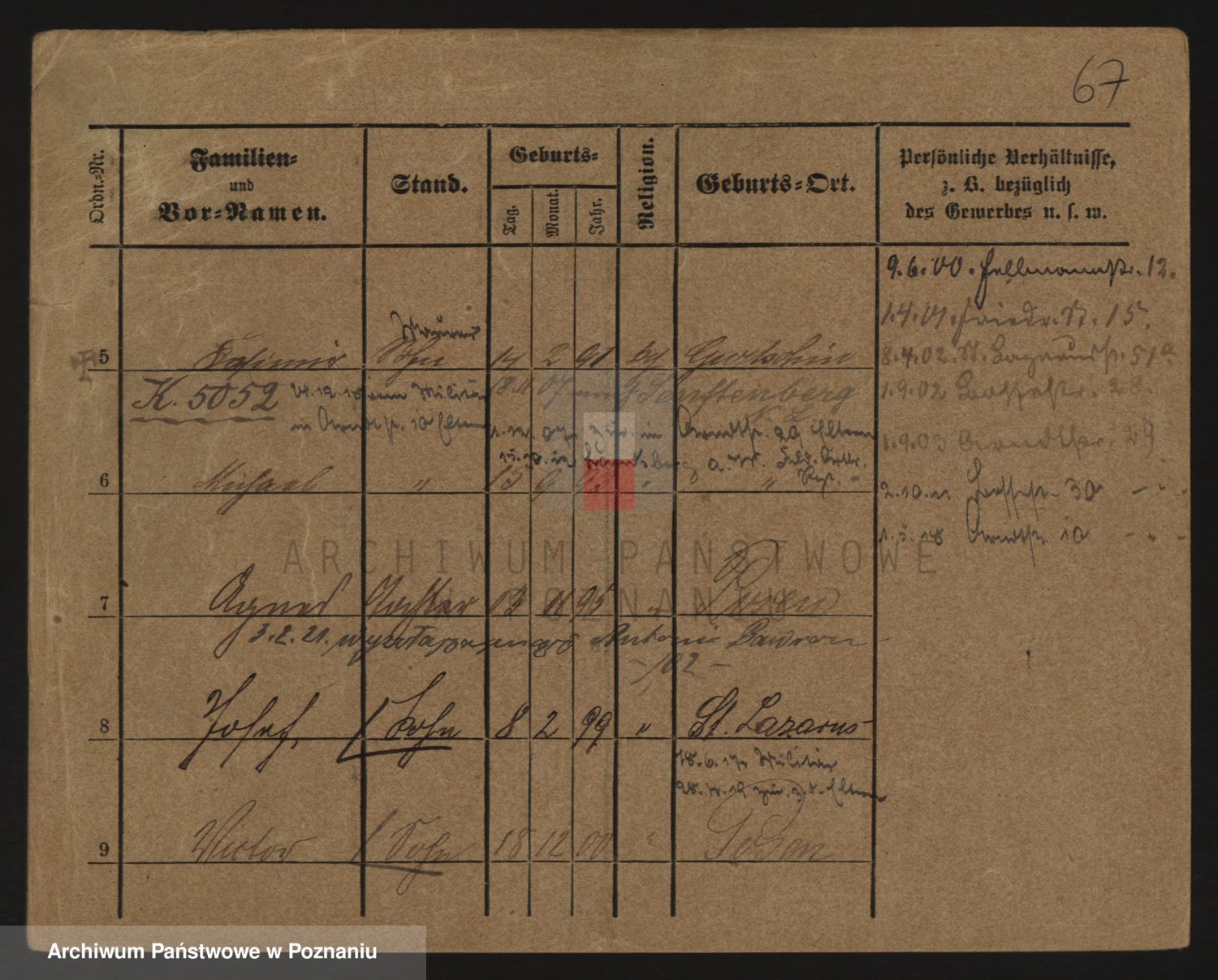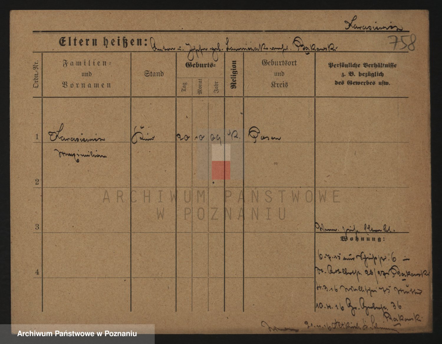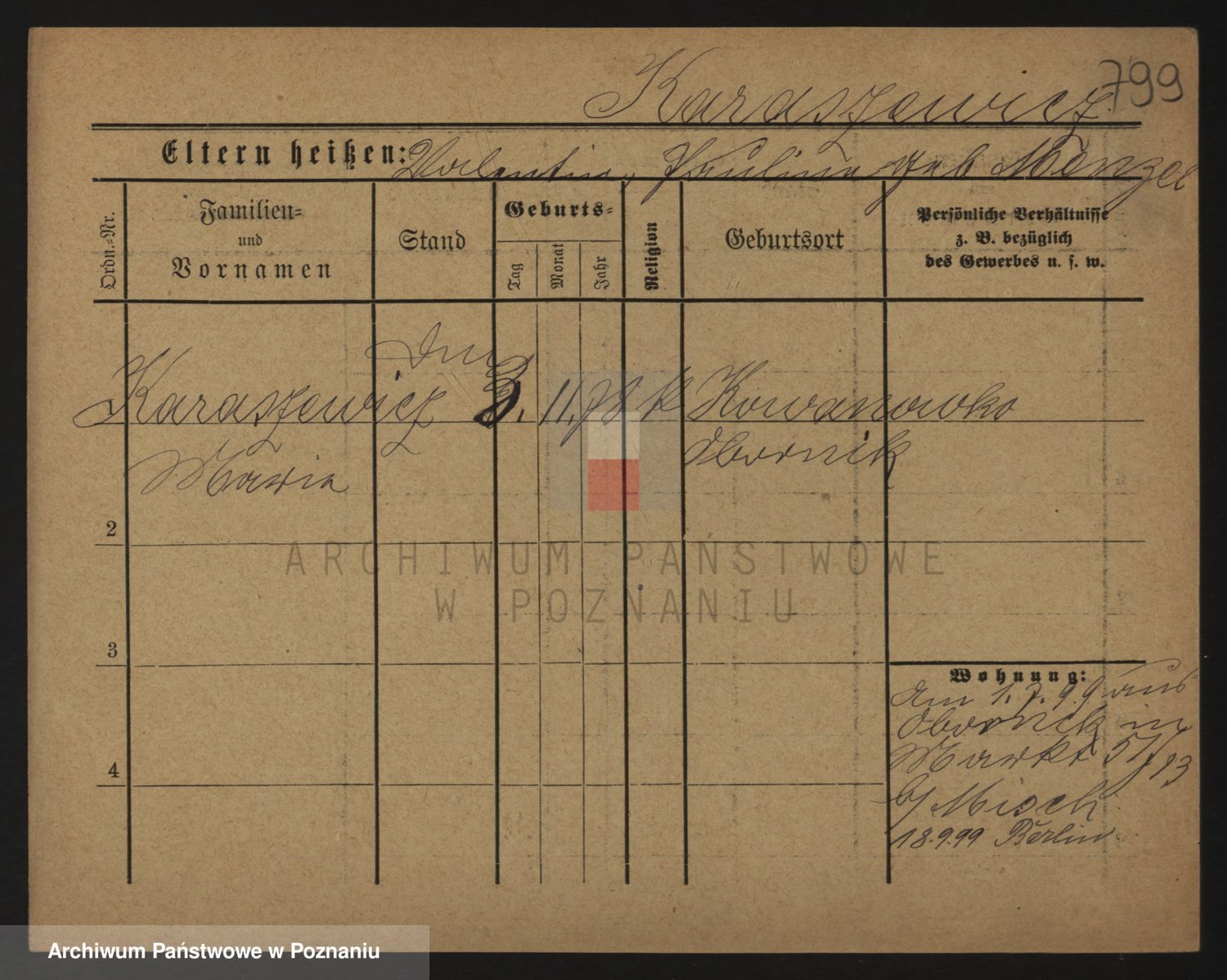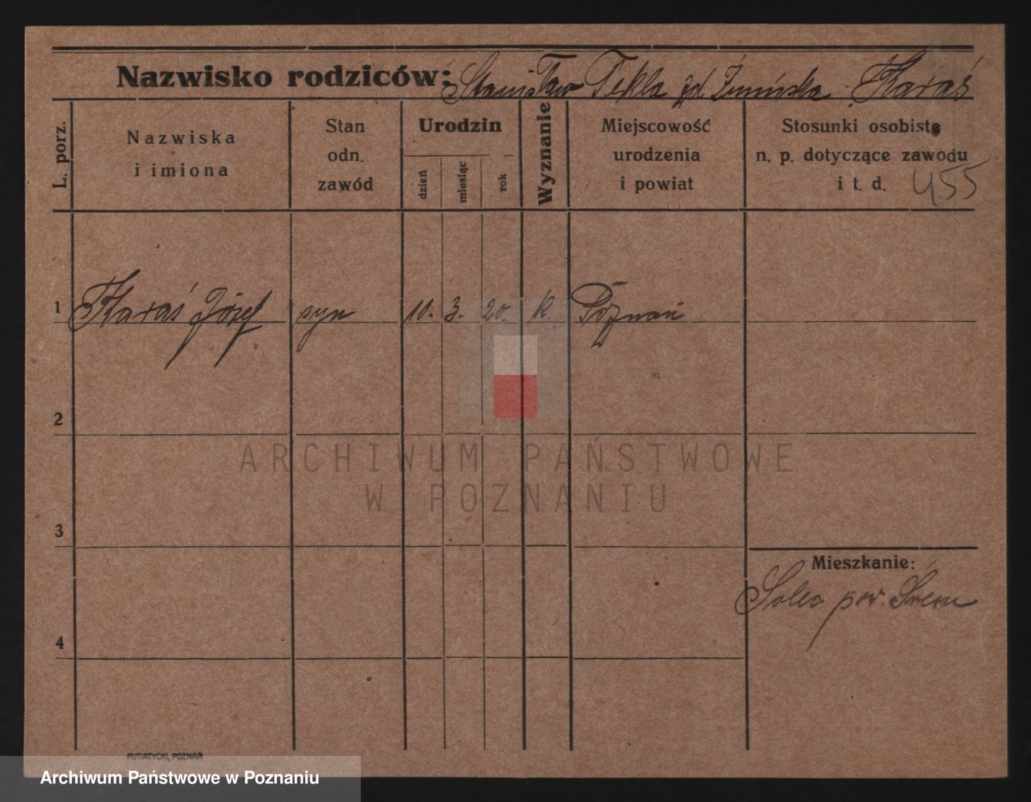 Podgląd karty osobowej dostępny jest po kliknięciu na nazwisko lub ikonkę karty. Można dokonywać powiększenia (ikony na górze) lub przechodzić między kolejnymi skanami (strzałki po bokach).