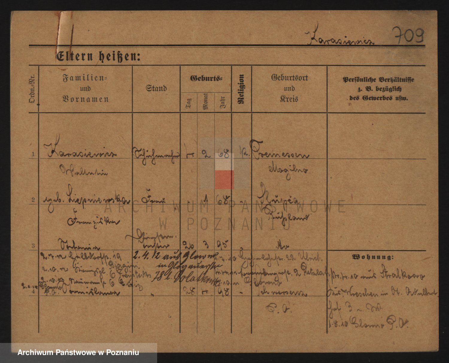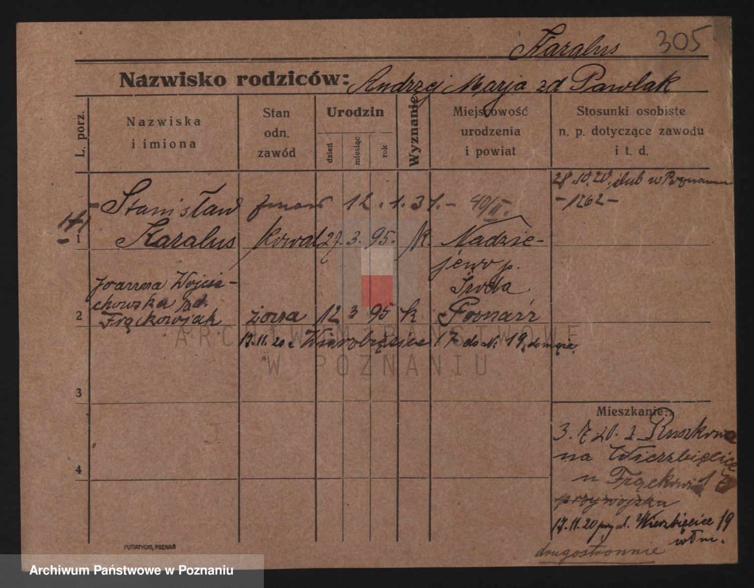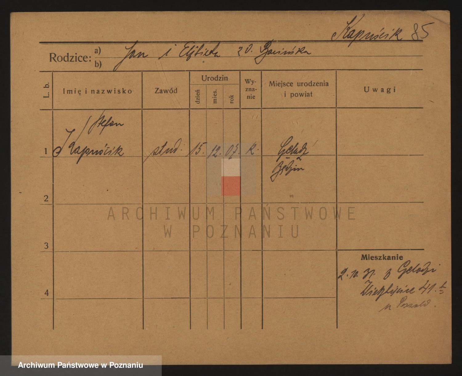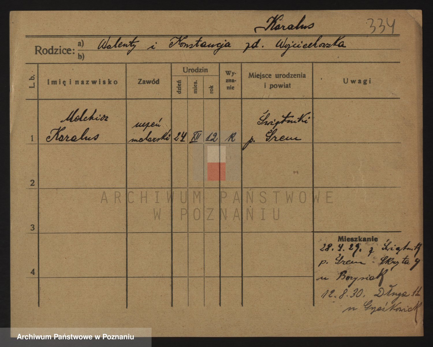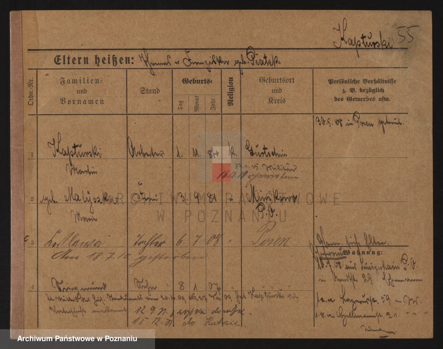Podgląd karty osobowej dostępny jest po kliknięciu na nazwisko lub ikonkę karty. Można dokonywać powiększenia (ikony na górze) lub przechodzić między kolejnymi skanami (strzałki po bokach).