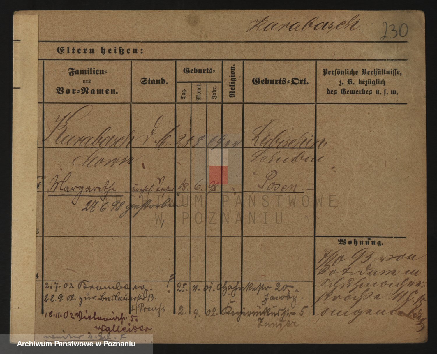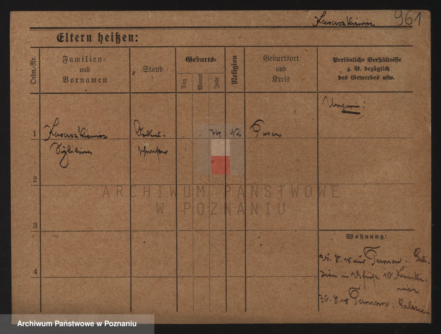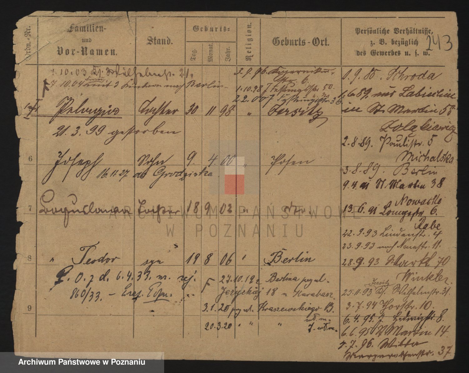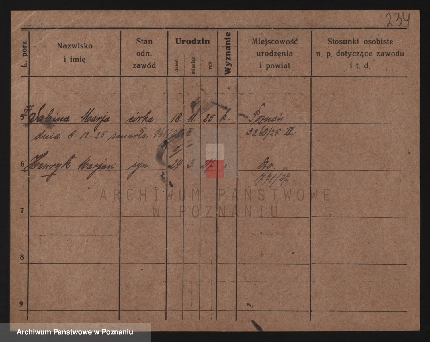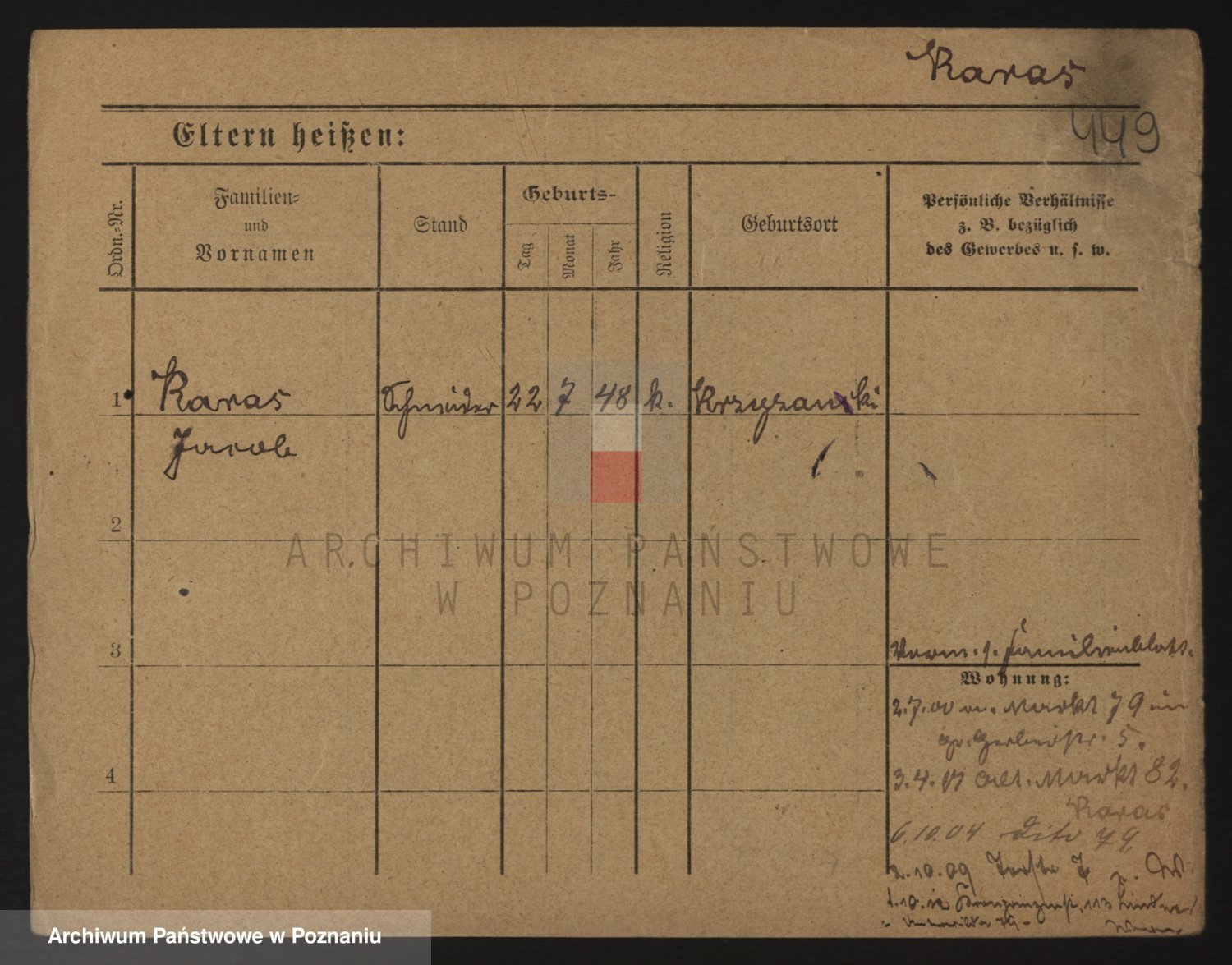 Podgląd karty osobowej dostępny jest po kliknięciu na nazwisko lub ikonkę karty. Można dokonywać powiększenia (ikony na górze) lub przechodzić między kolejnymi skanami (strzałki po bokach).