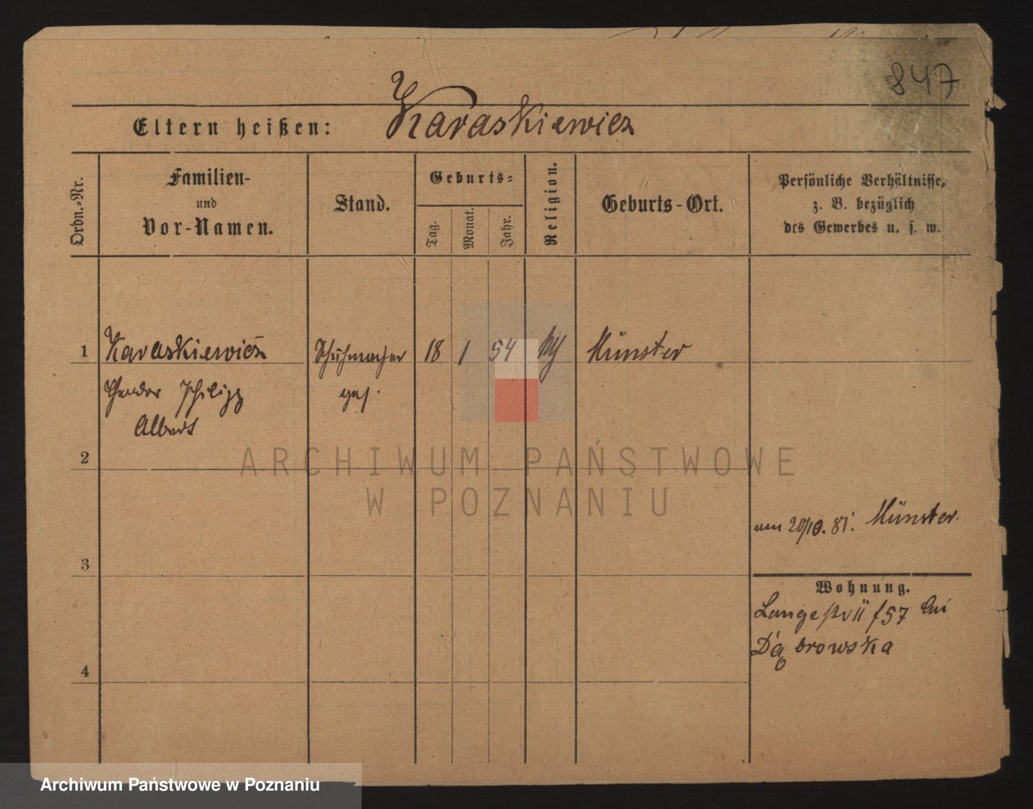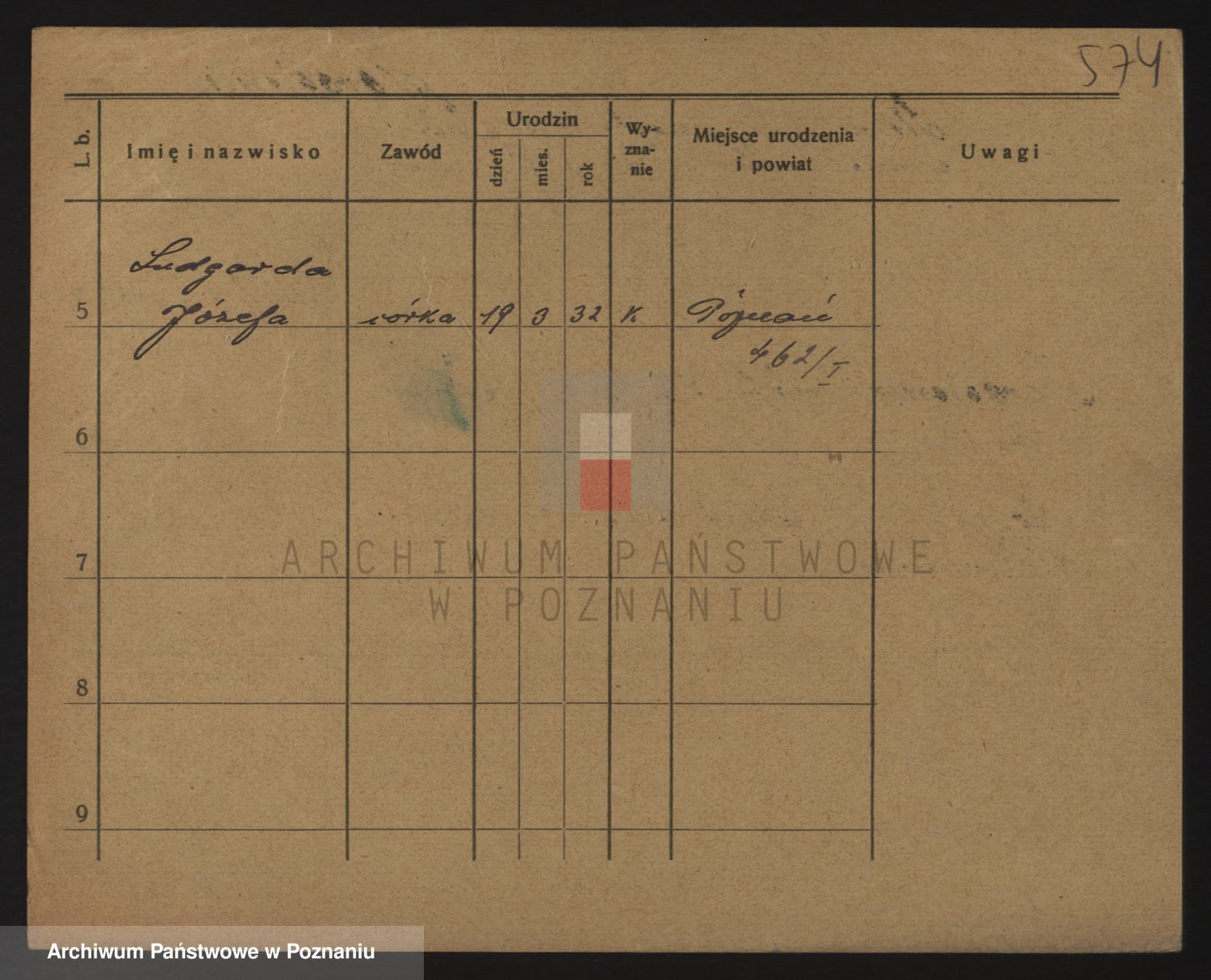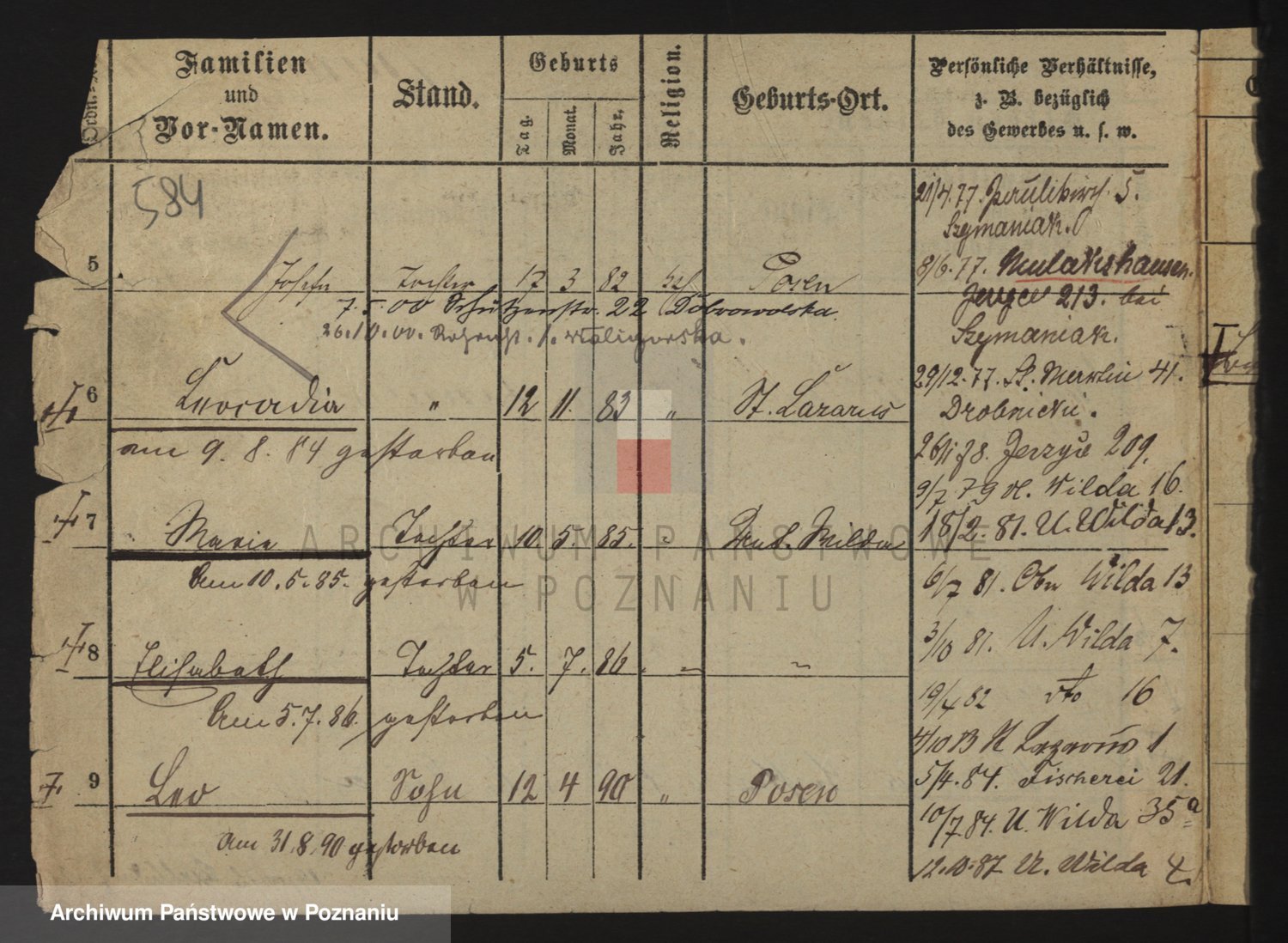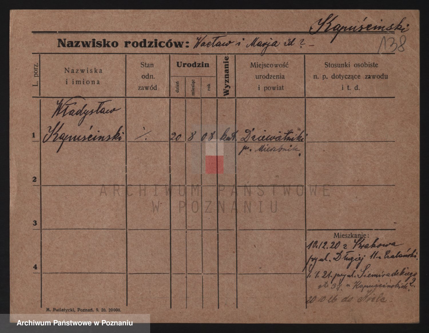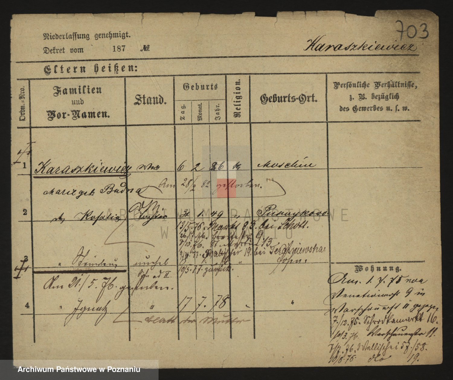 Podgląd karty osobowej dostępny jest po kliknięciu na nazwisko lub ikonkę karty. Można dokonywać powiększenia (ikony na górze) lub przechodzić między kolejnymi skanami (strzałki po bokach).