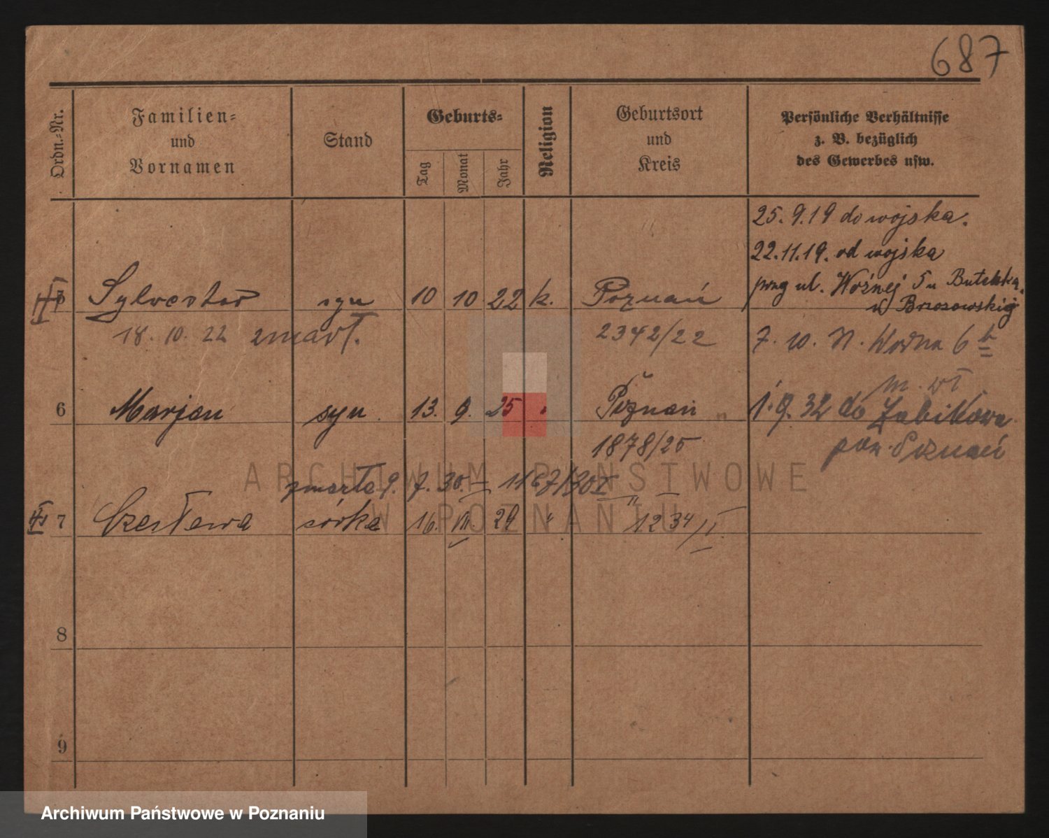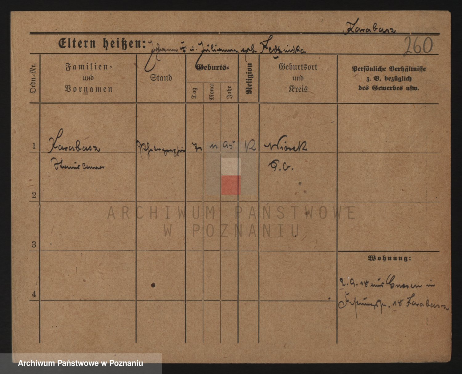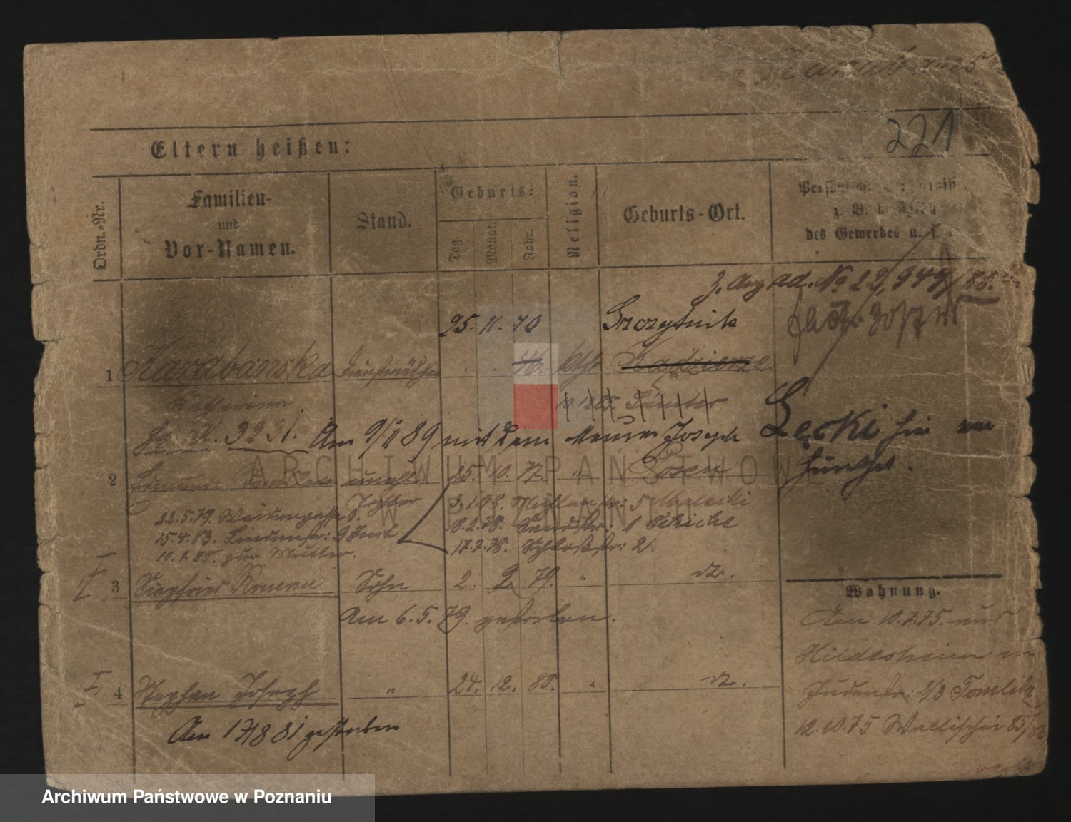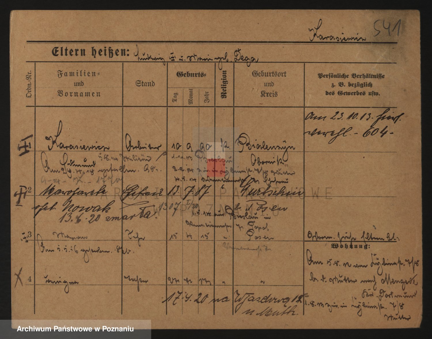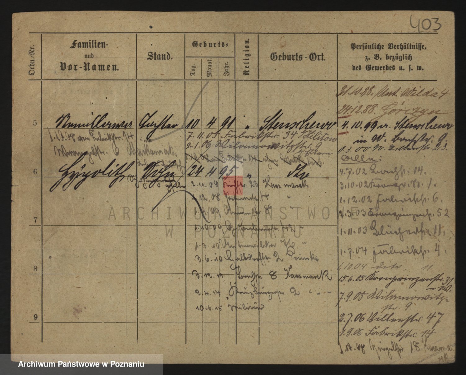 Podgląd karty osobowej dostępny jest po kliknięciu na nazwisko lub ikonkę karty. Można dokonywać powiększenia (ikony na górze) lub przechodzić między kolejnymi skanami (strzałki po bokach).
