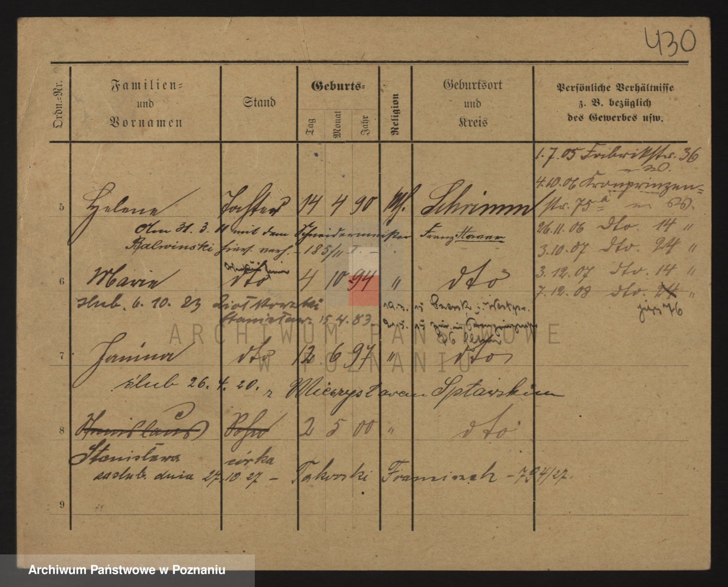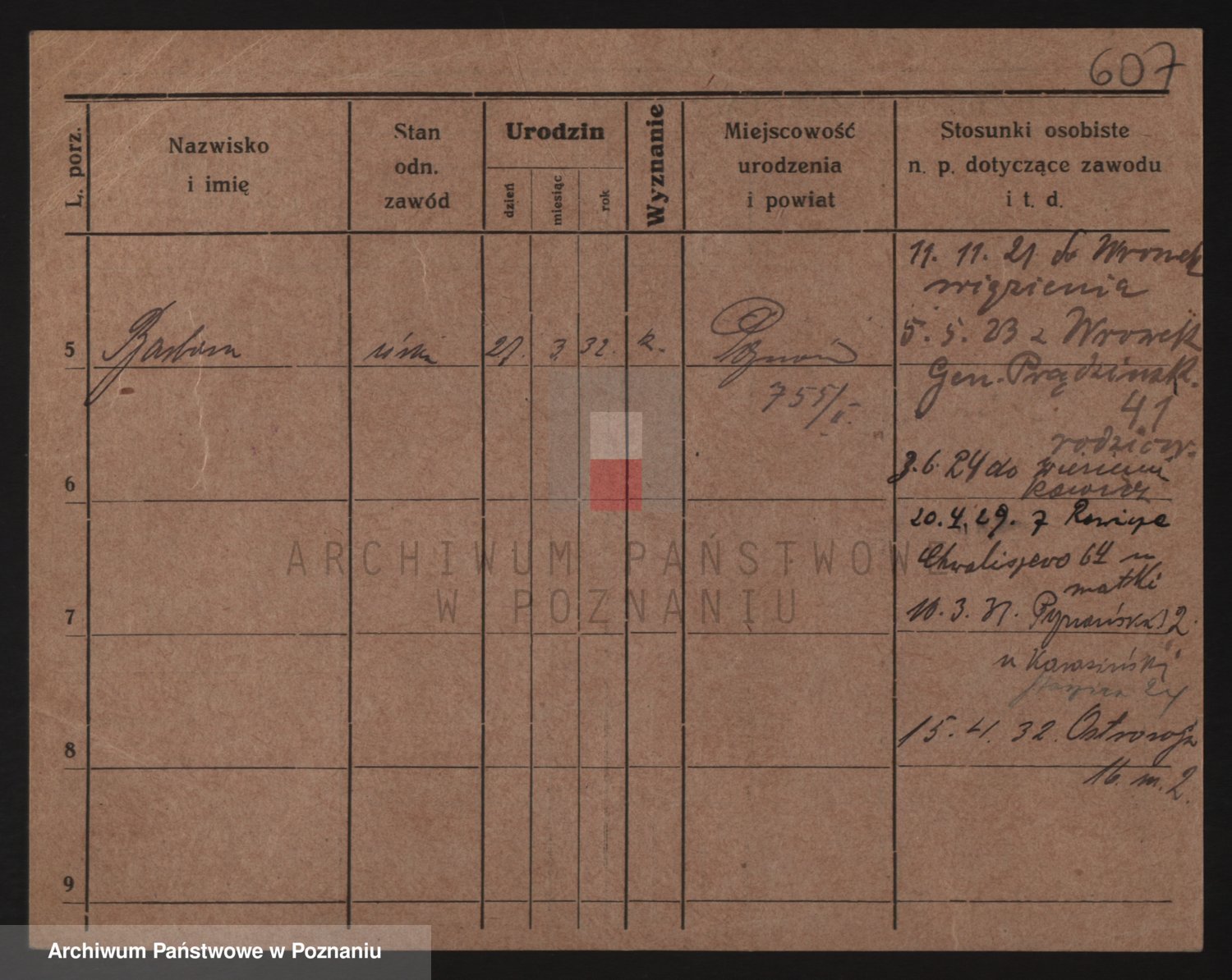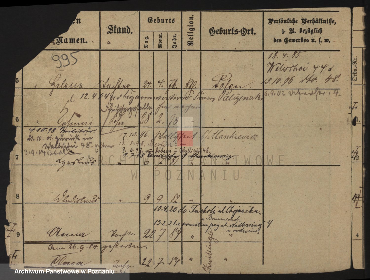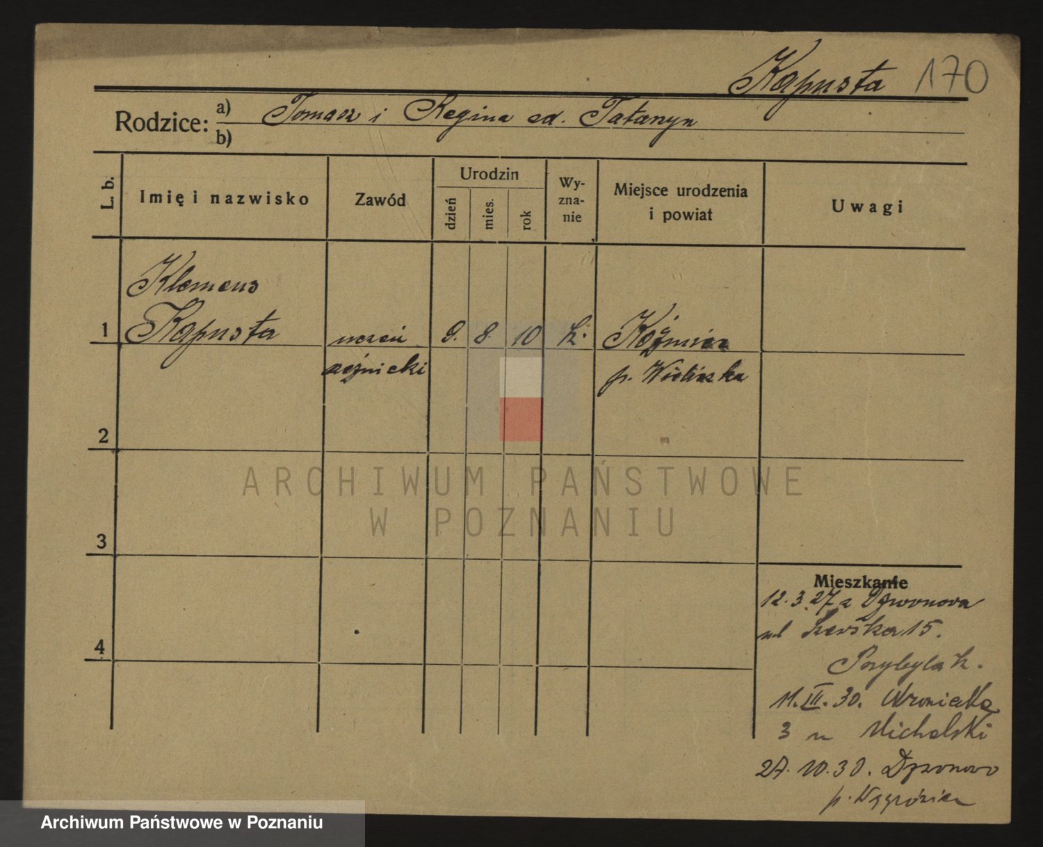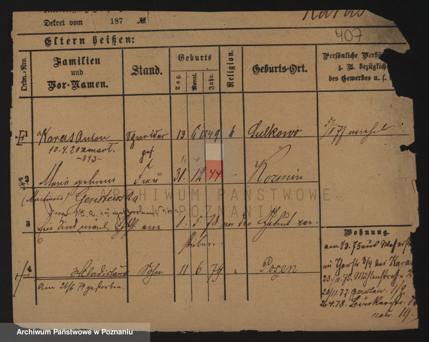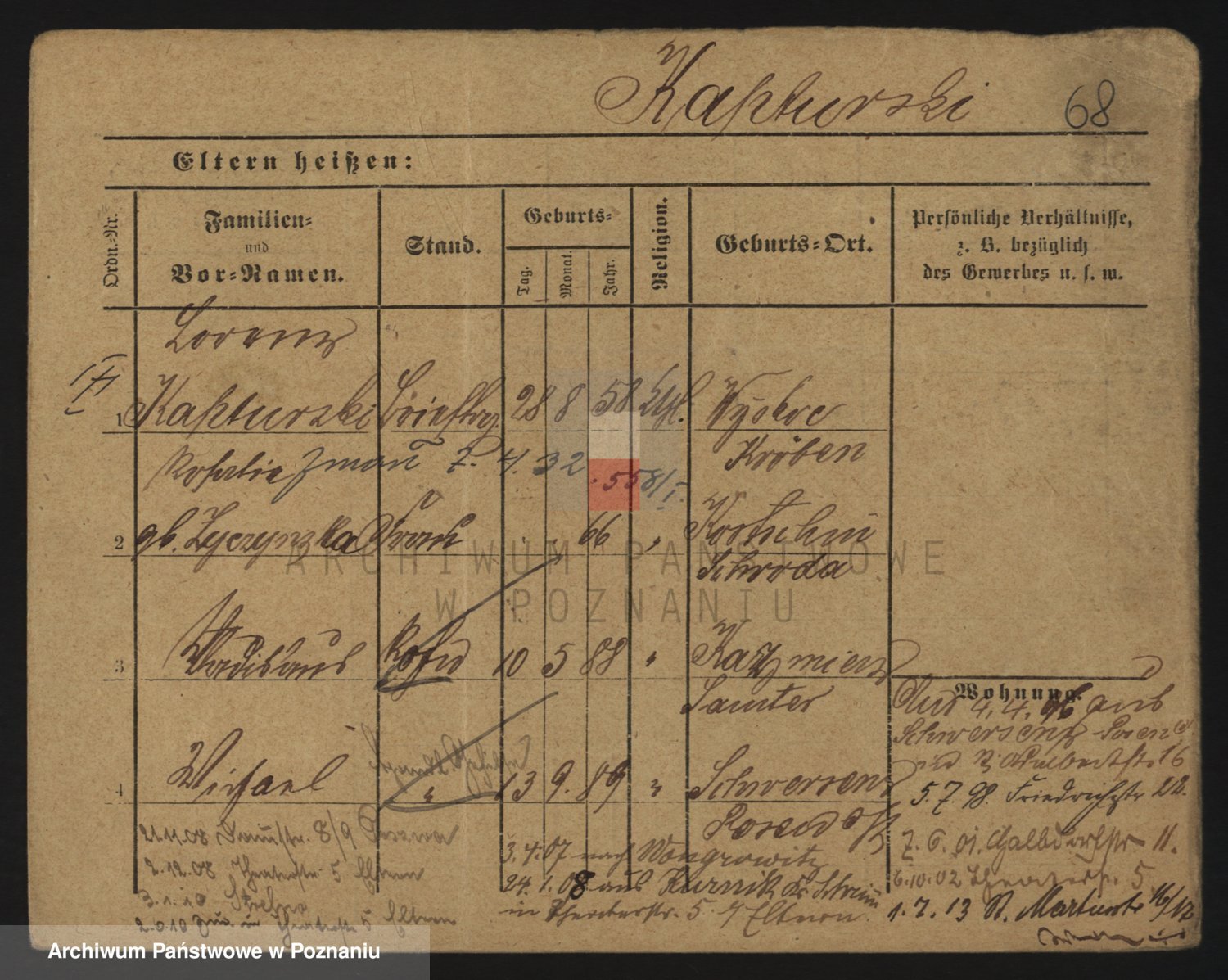 Podgląd karty osobowej dostępny jest po kliknięciu na nazwisko lub ikonkę karty. Można dokonywać powiększenia (ikony na górze) lub przechodzić między kolejnymi skanami (strzałki po bokach).