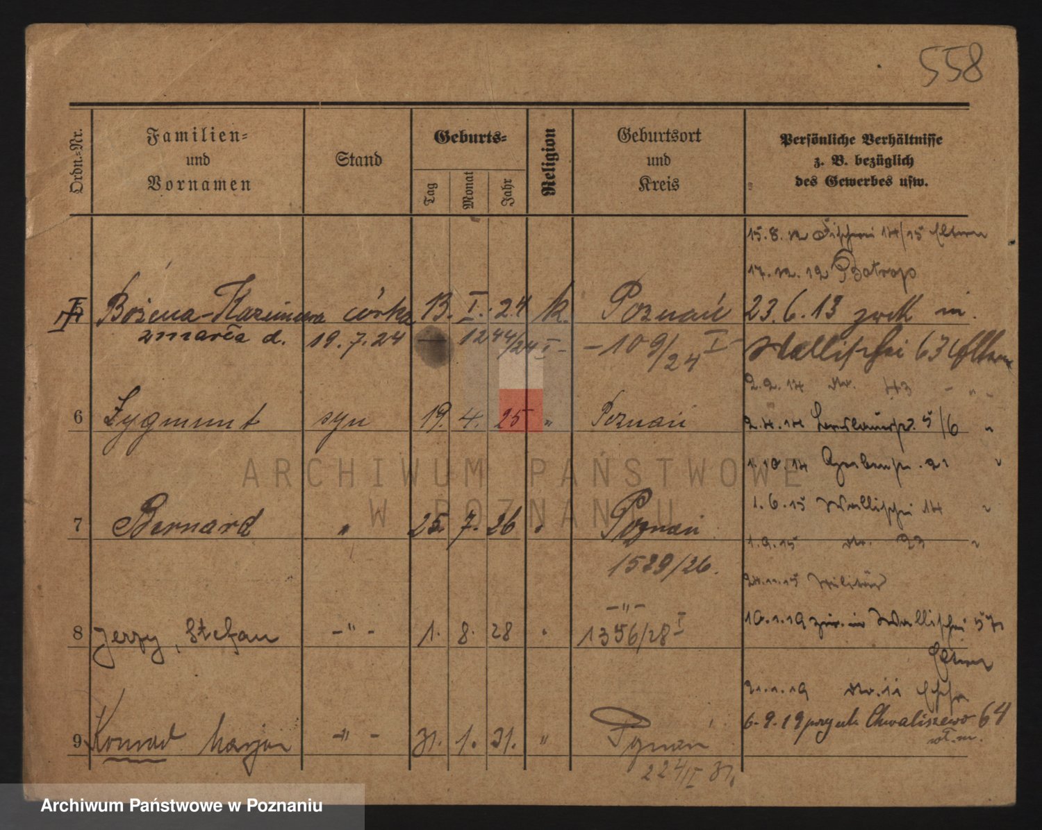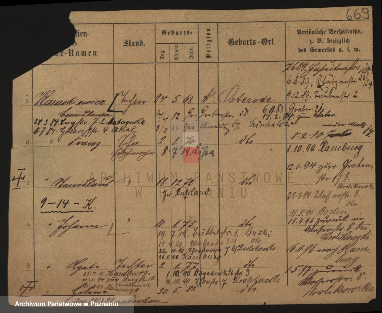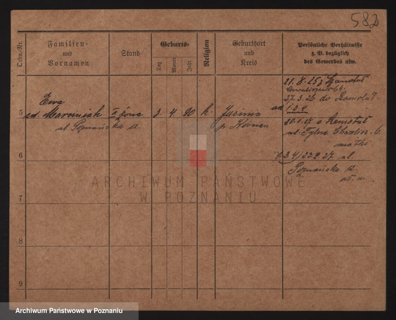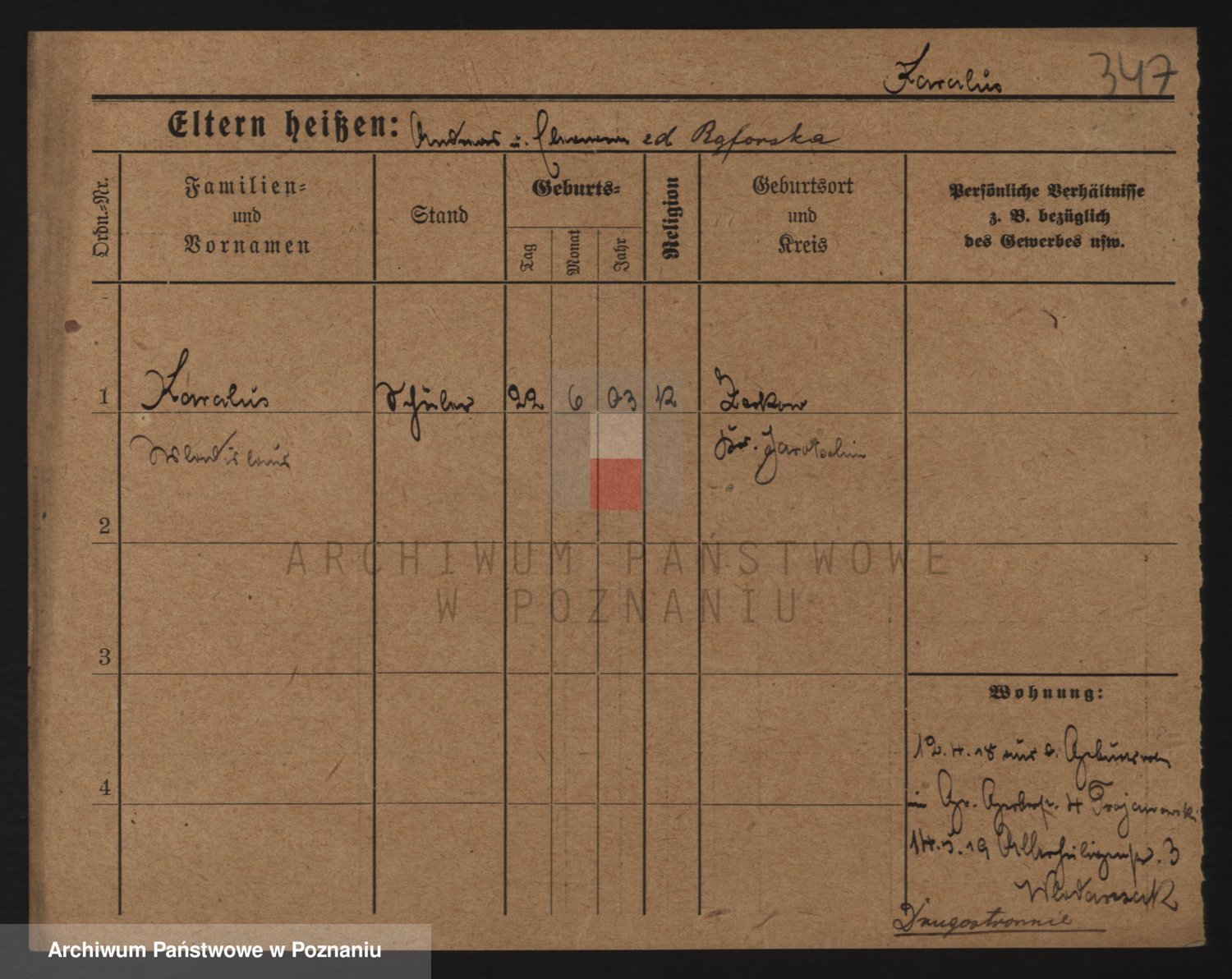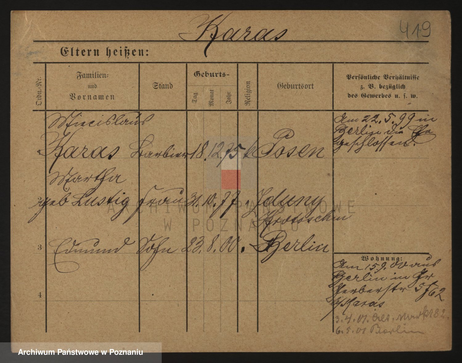 Podgląd karty osobowej dostępny jest po kliknięciu na nazwisko lub ikonkę karty. Można dokonywać powiększenia (ikony na górze) lub przechodzić między kolejnymi skanami (strzałki po bokach).