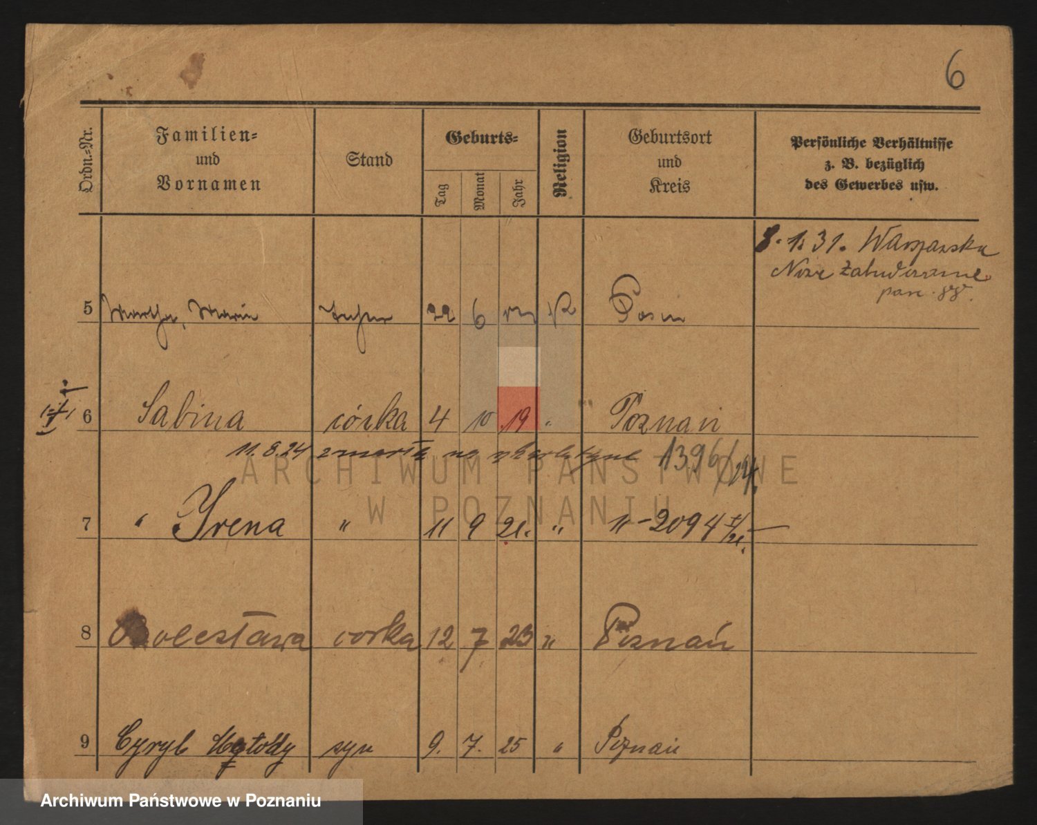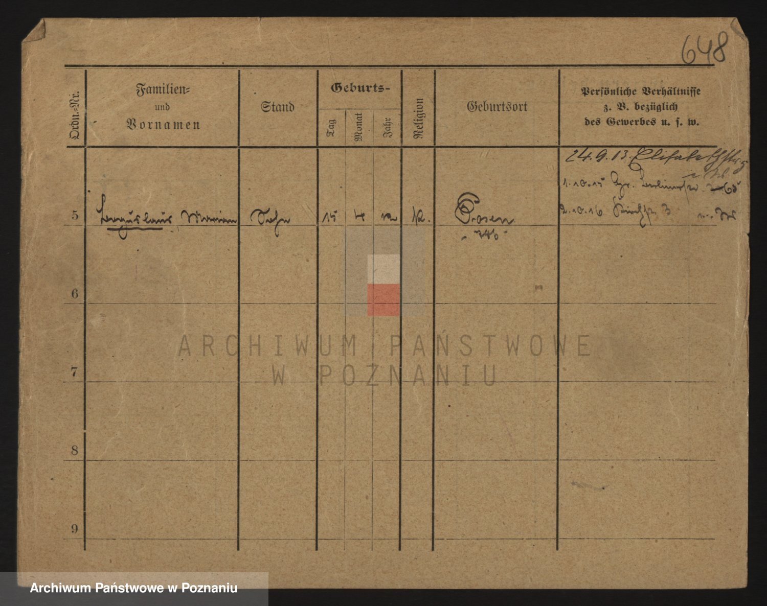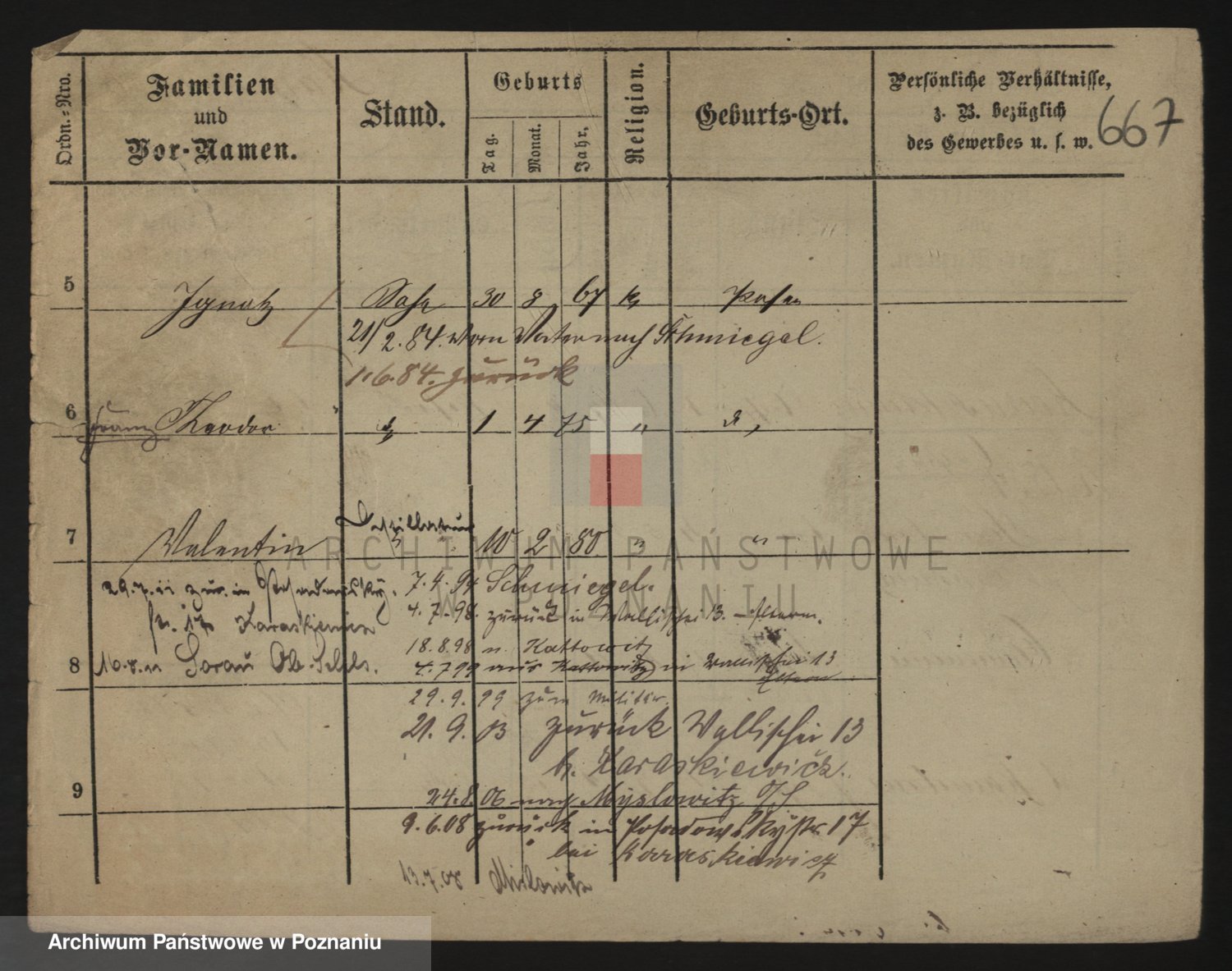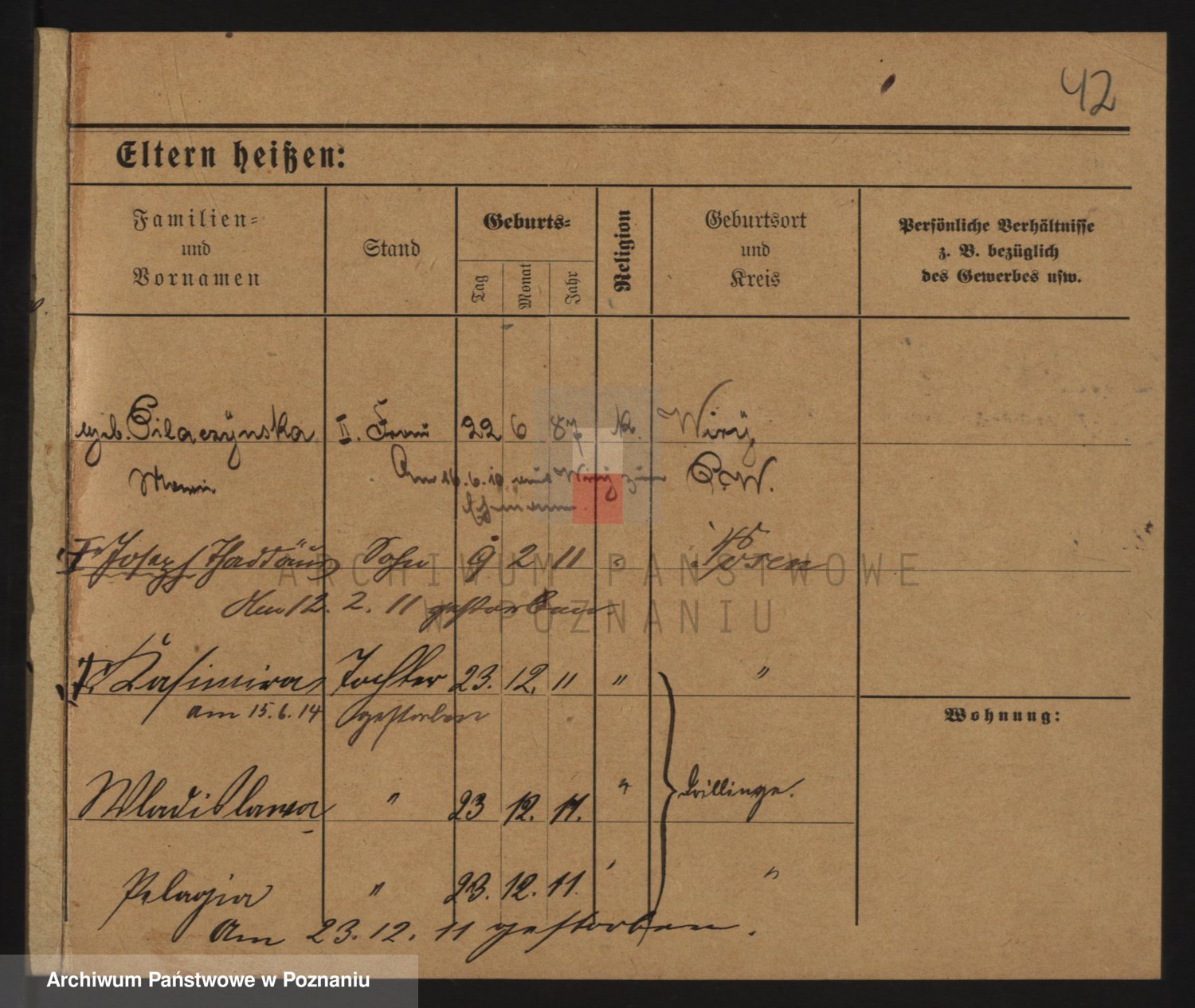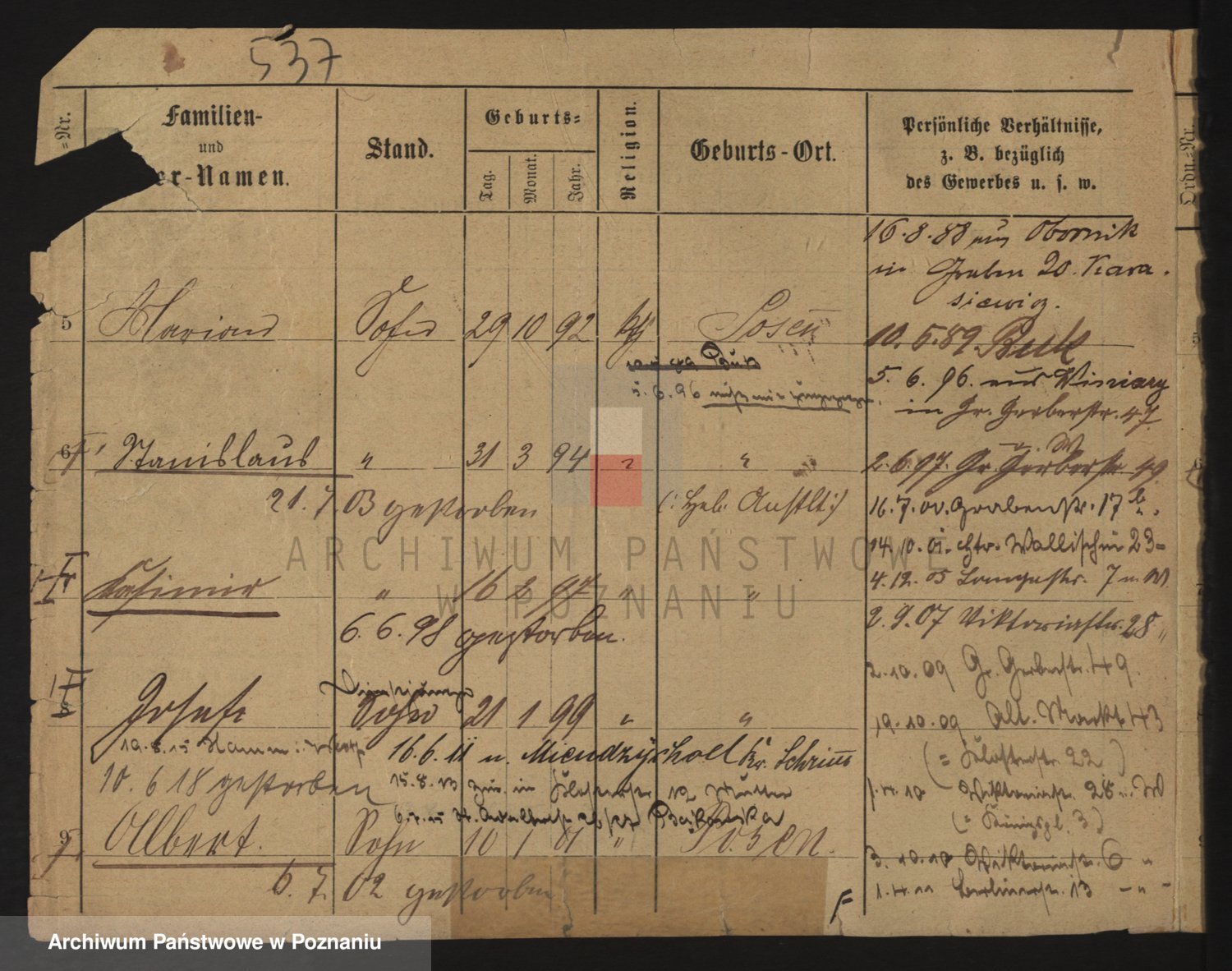 Podgląd karty osobowej dostępny jest po kliknięciu na nazwisko lub ikonkę karty. Można dokonywać powiększenia (ikony na górze) lub przechodzić między kolejnymi skanami (strzałki po bokach).