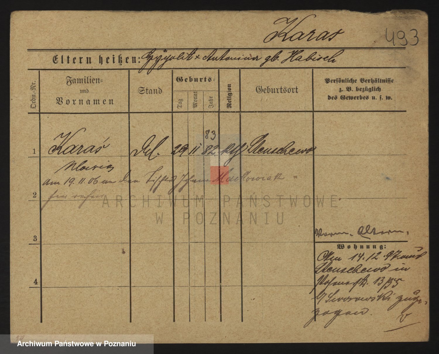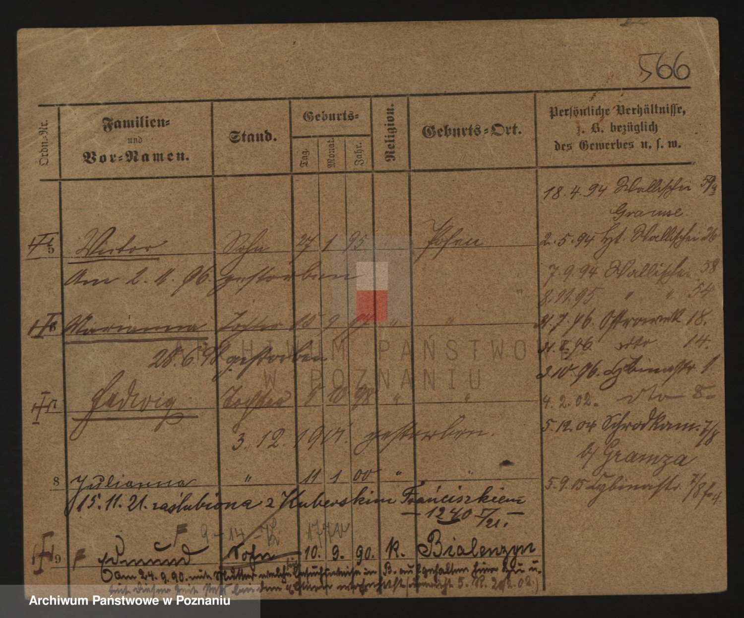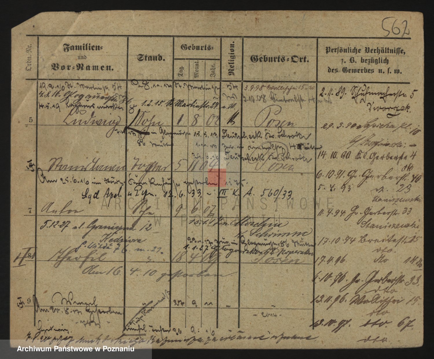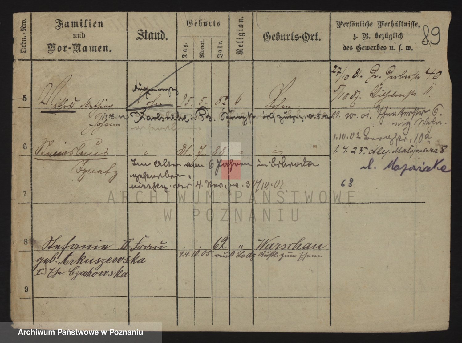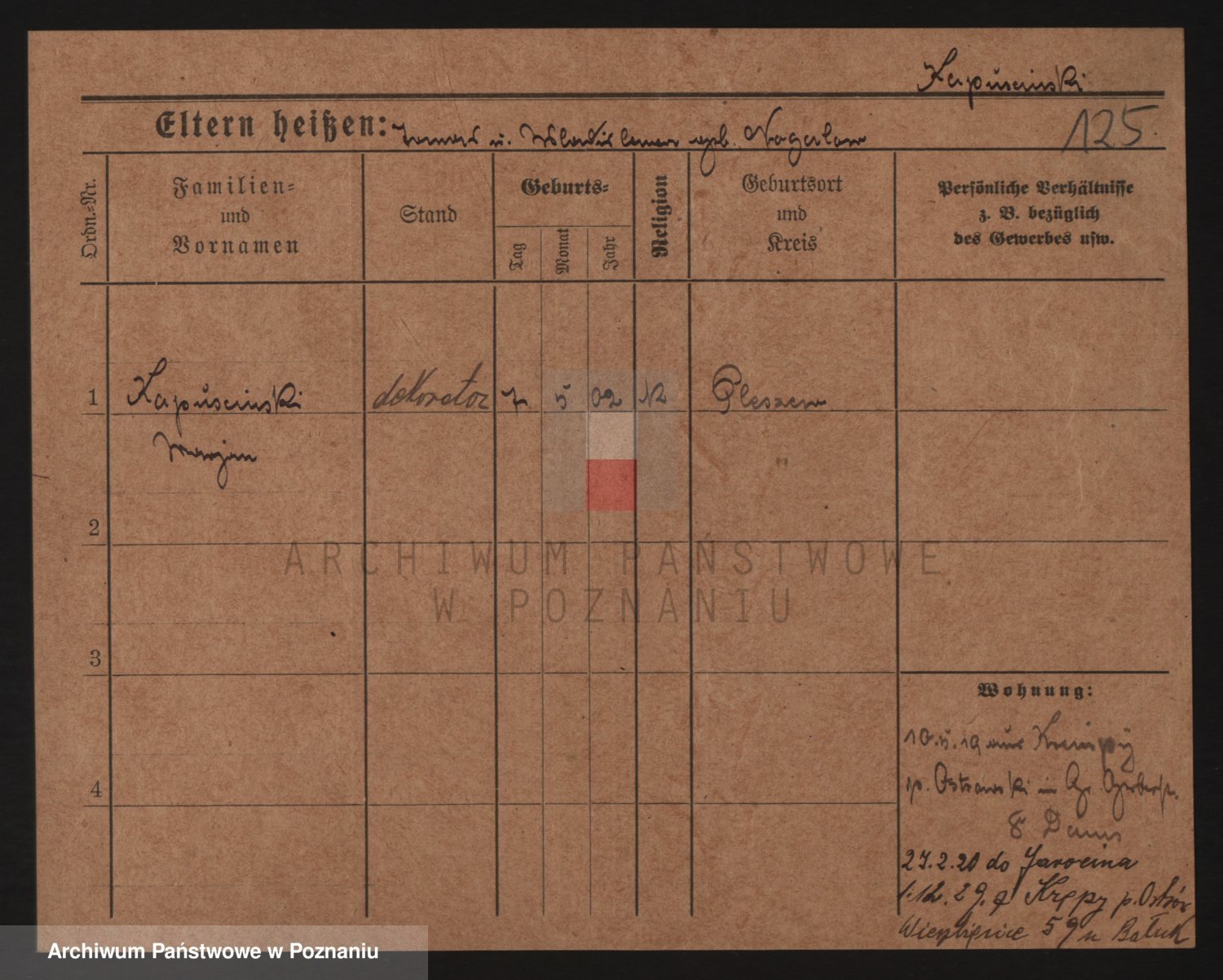 Podgląd karty osobowej dostępny jest po kliknięciu na nazwisko lub ikonkę karty. Można dokonywać powiększenia (ikony na górze) lub przechodzić między kolejnymi skanami (strzałki po bokach).