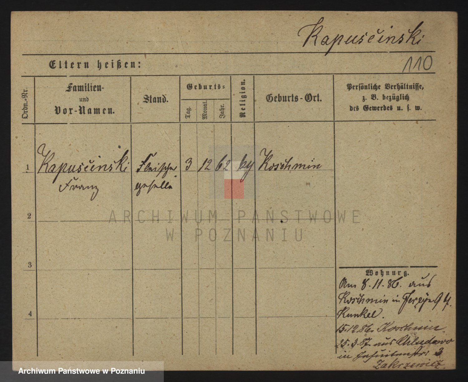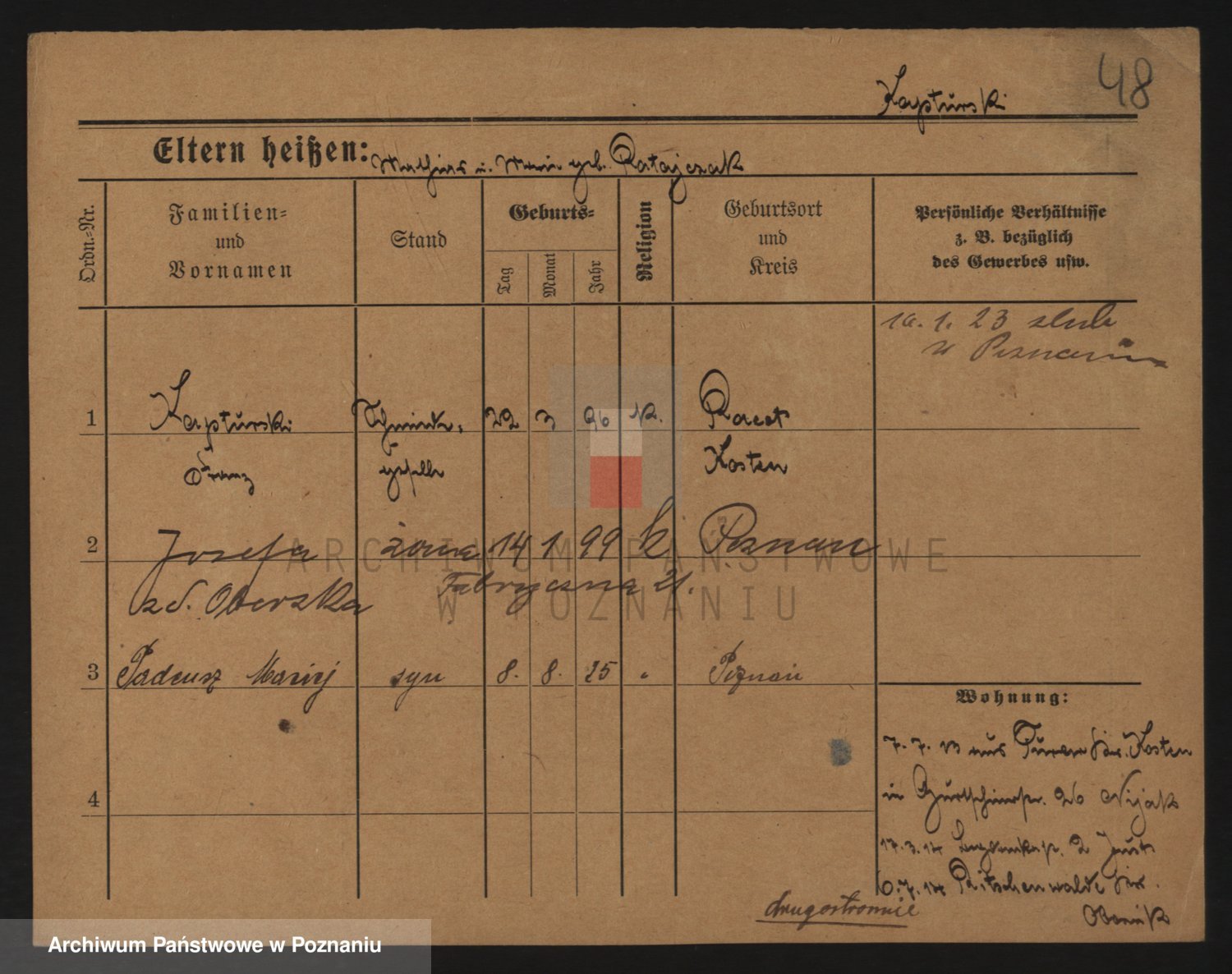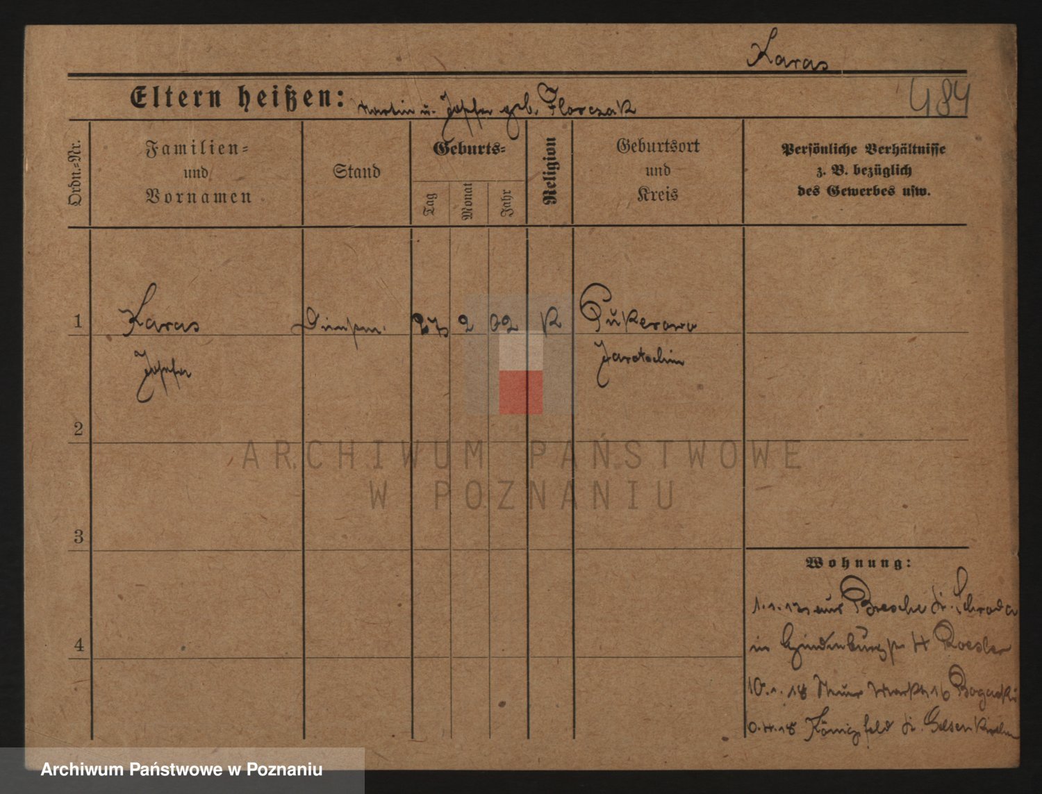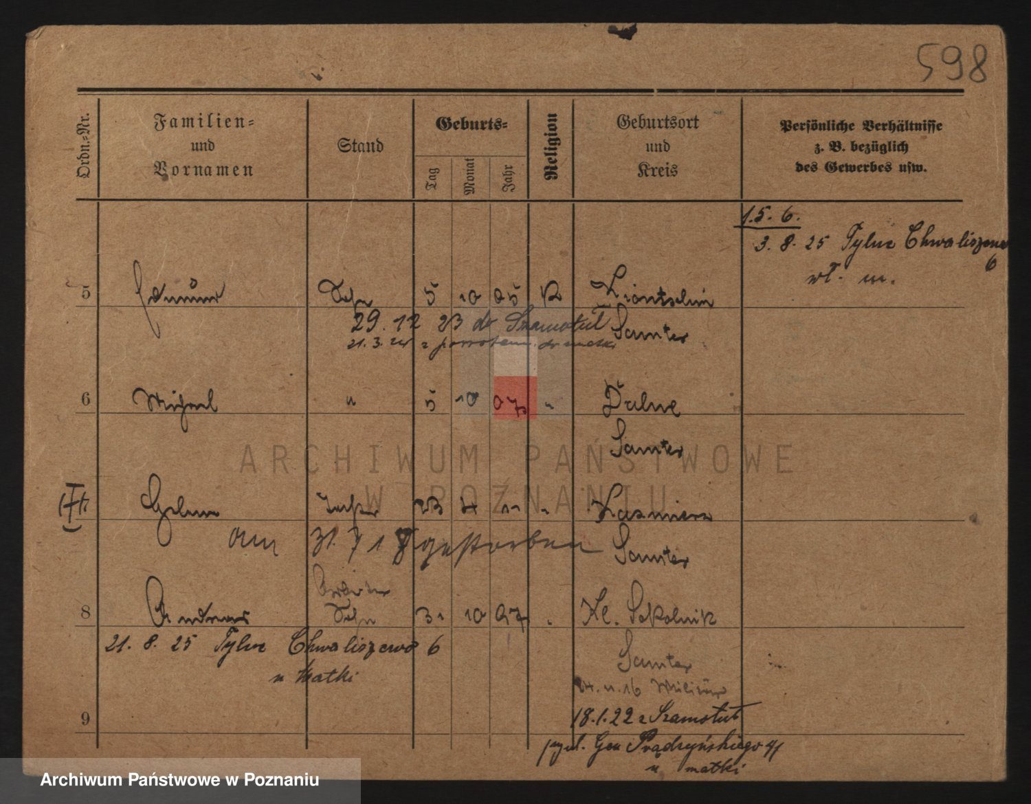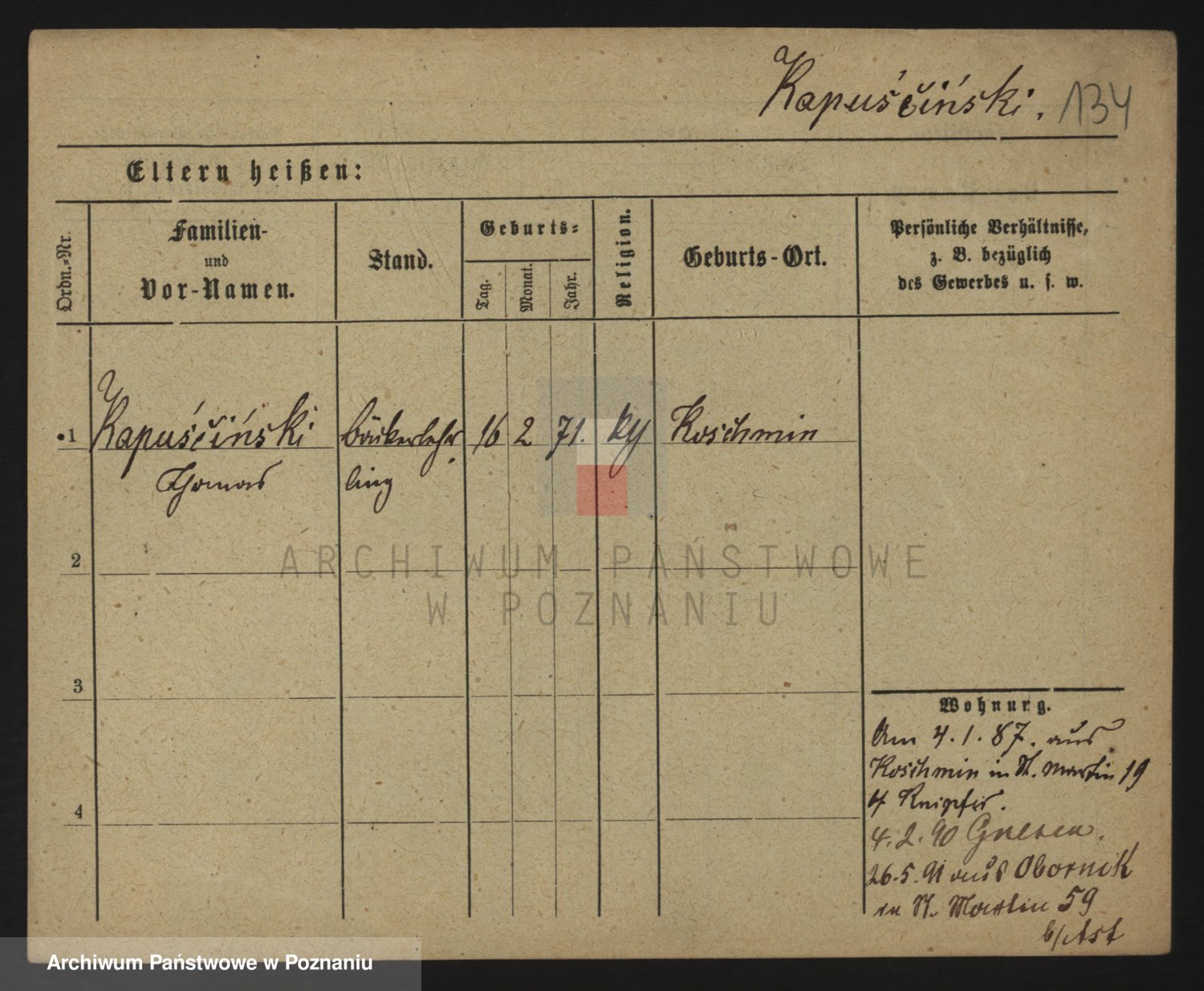 Podgląd karty osobowej dostępny jest po kliknięciu na nazwisko lub ikonkę karty. Można dokonywać powiększenia (ikony na górze) lub przechodzić między kolejnymi skanami (strzałki po bokach).