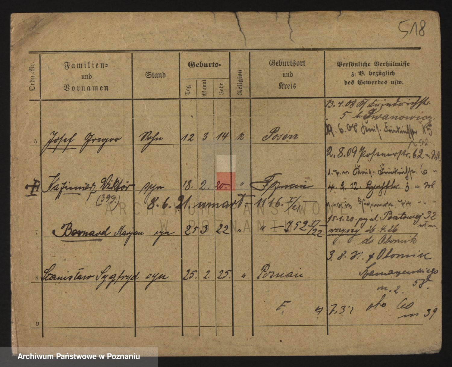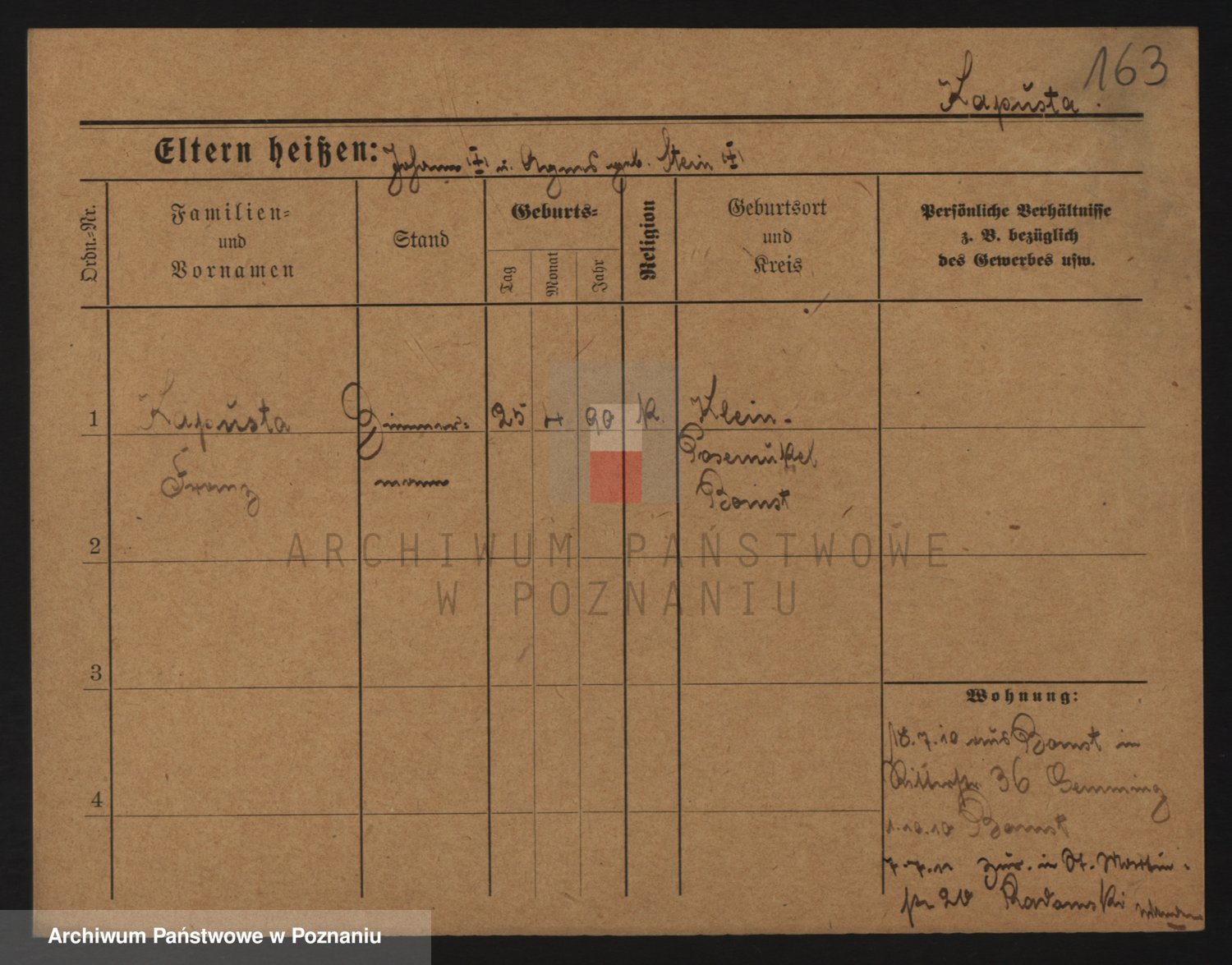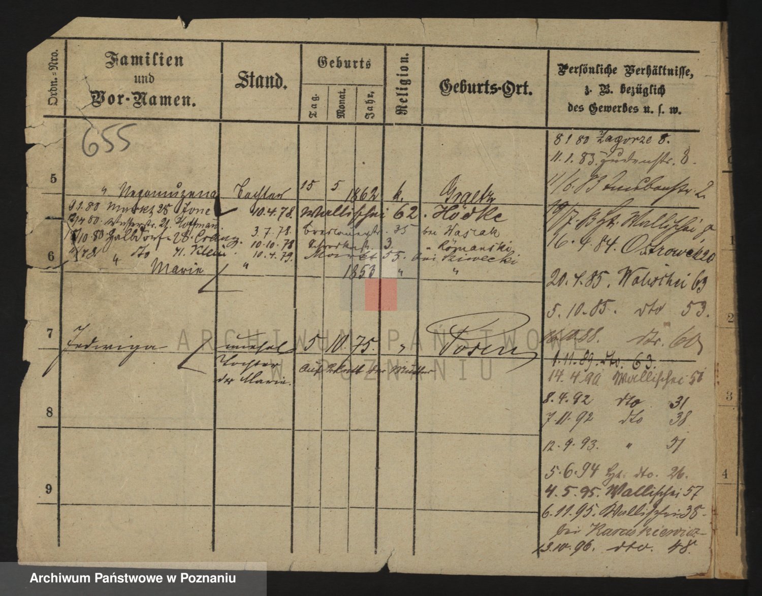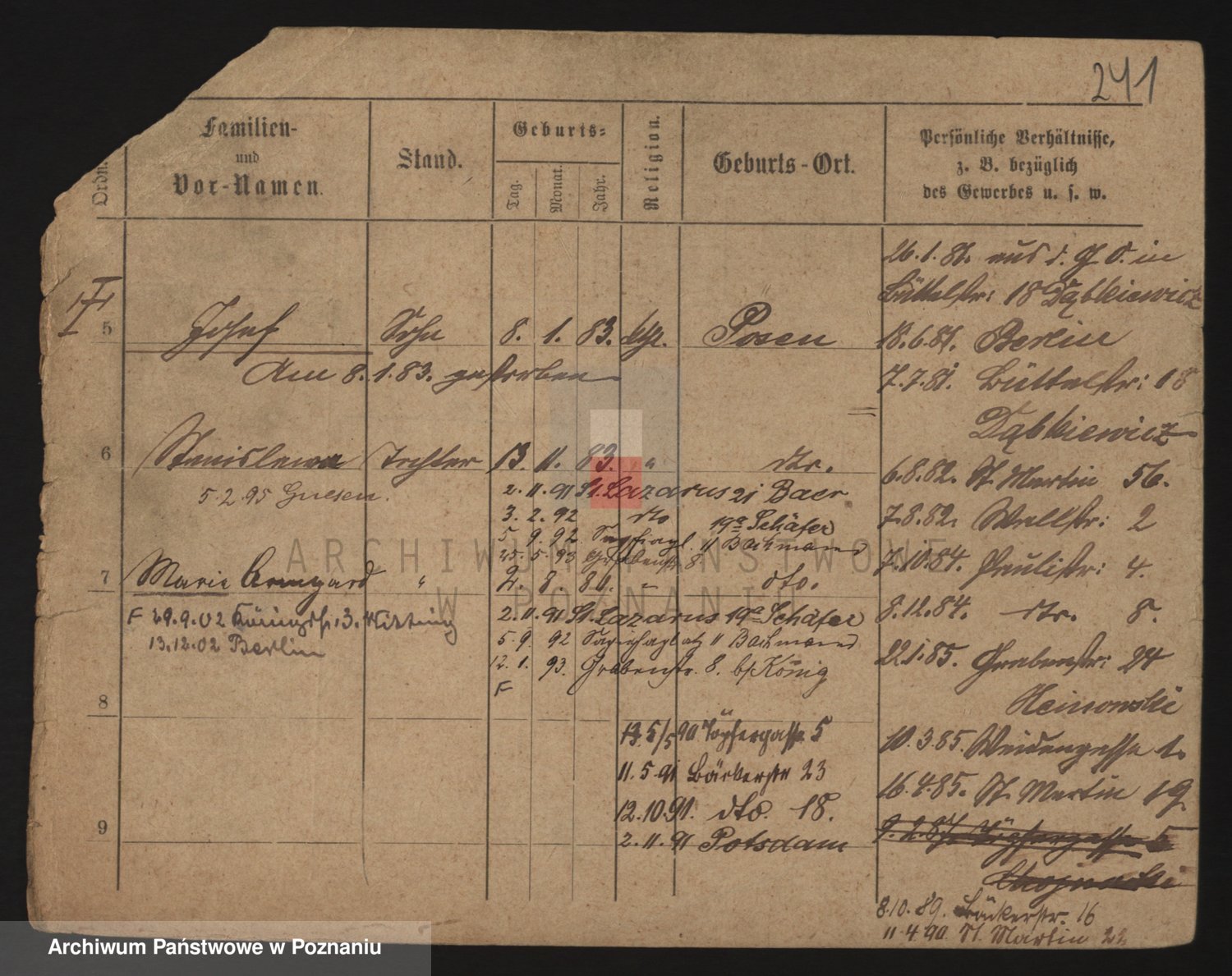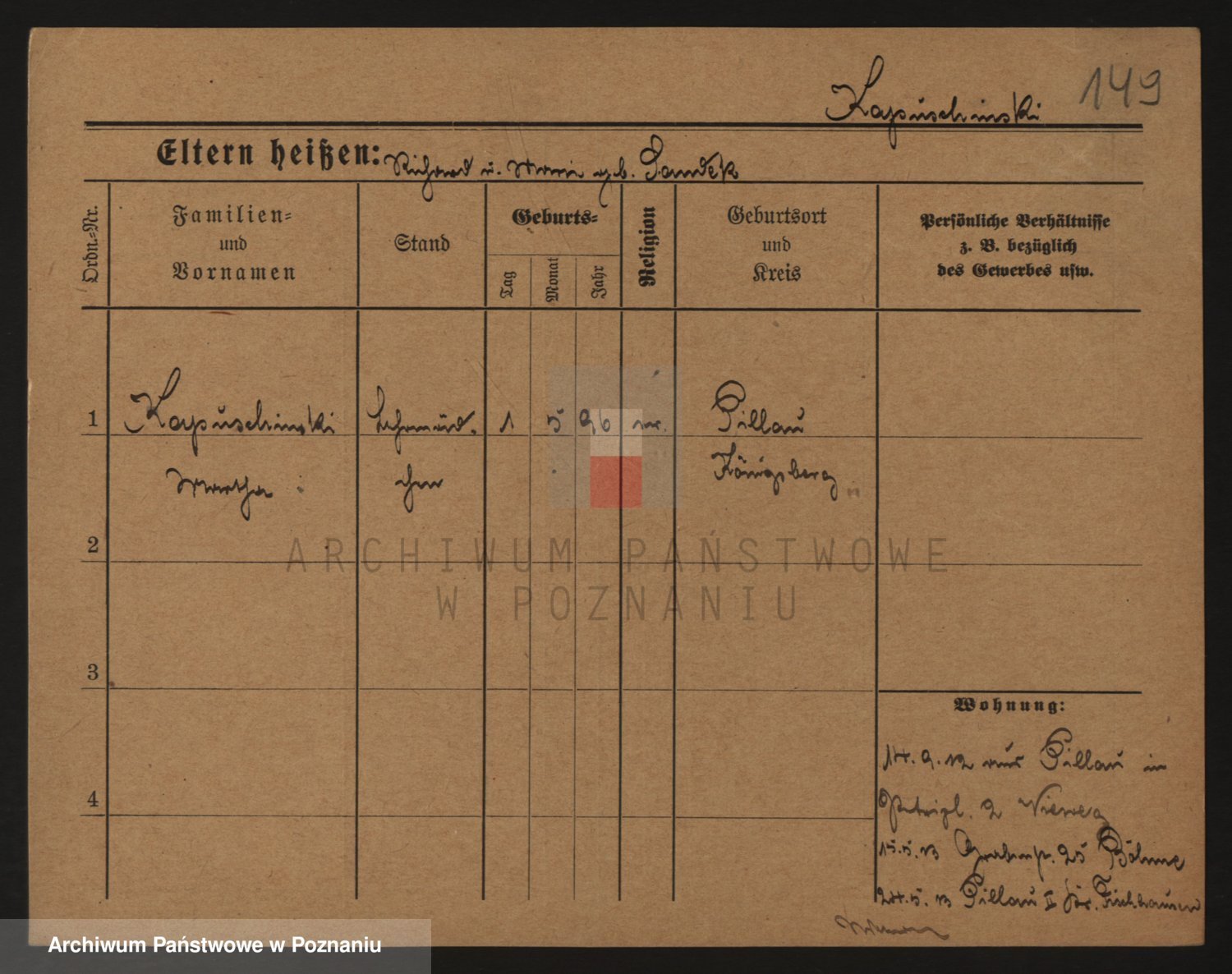 Podgląd karty osobowej dostępny jest po kliknięciu na nazwisko lub ikonkę karty. Można dokonywać powiększenia (ikony na górze) lub przechodzić między kolejnymi skanami (strzałki po bokach).