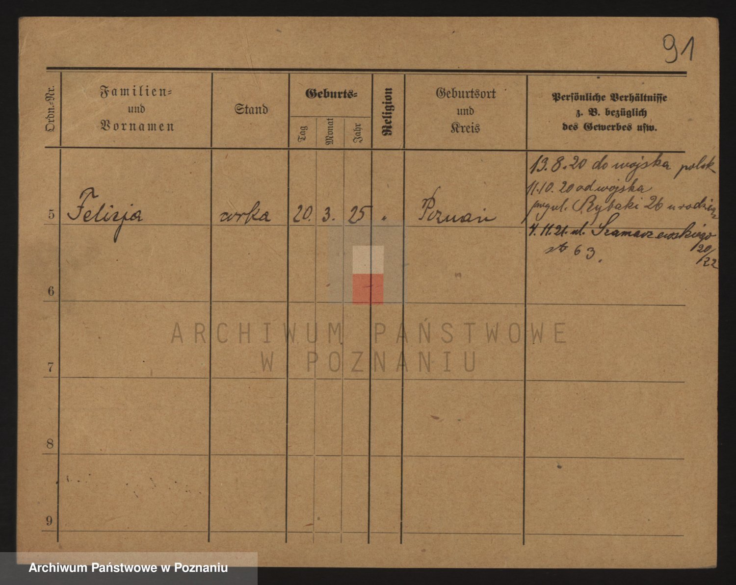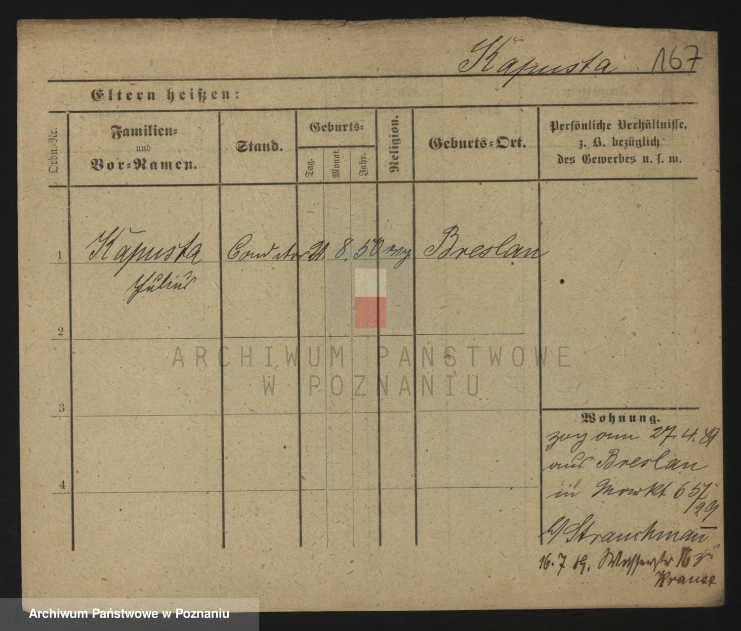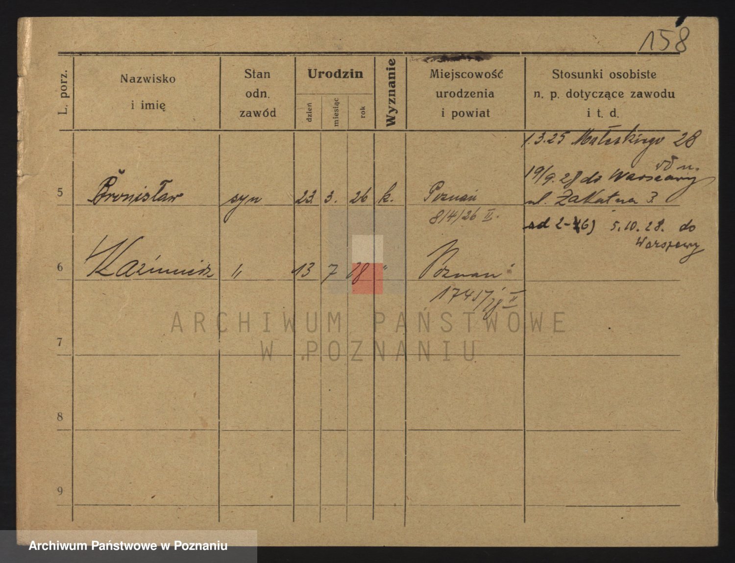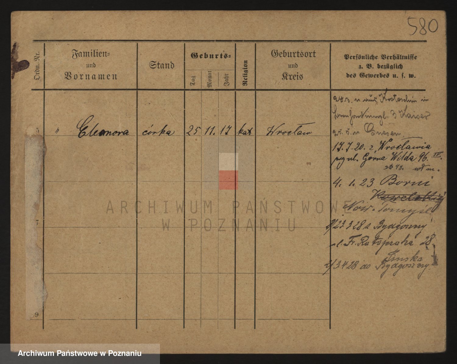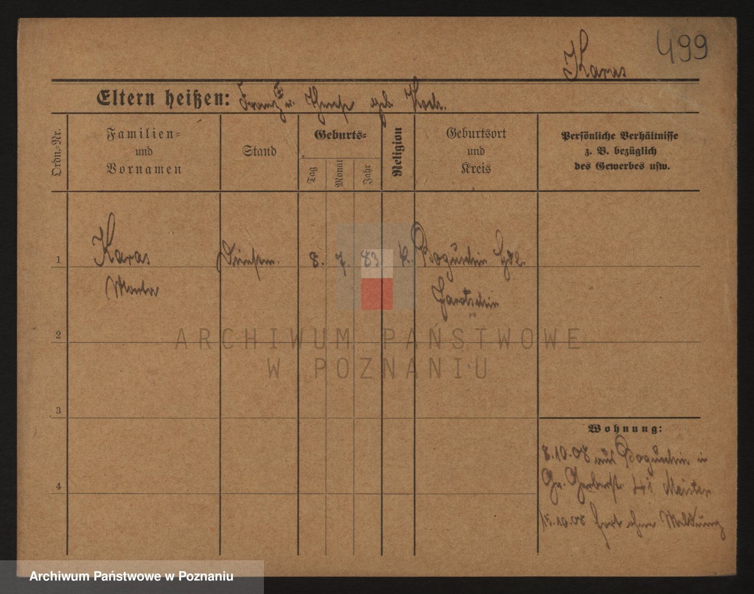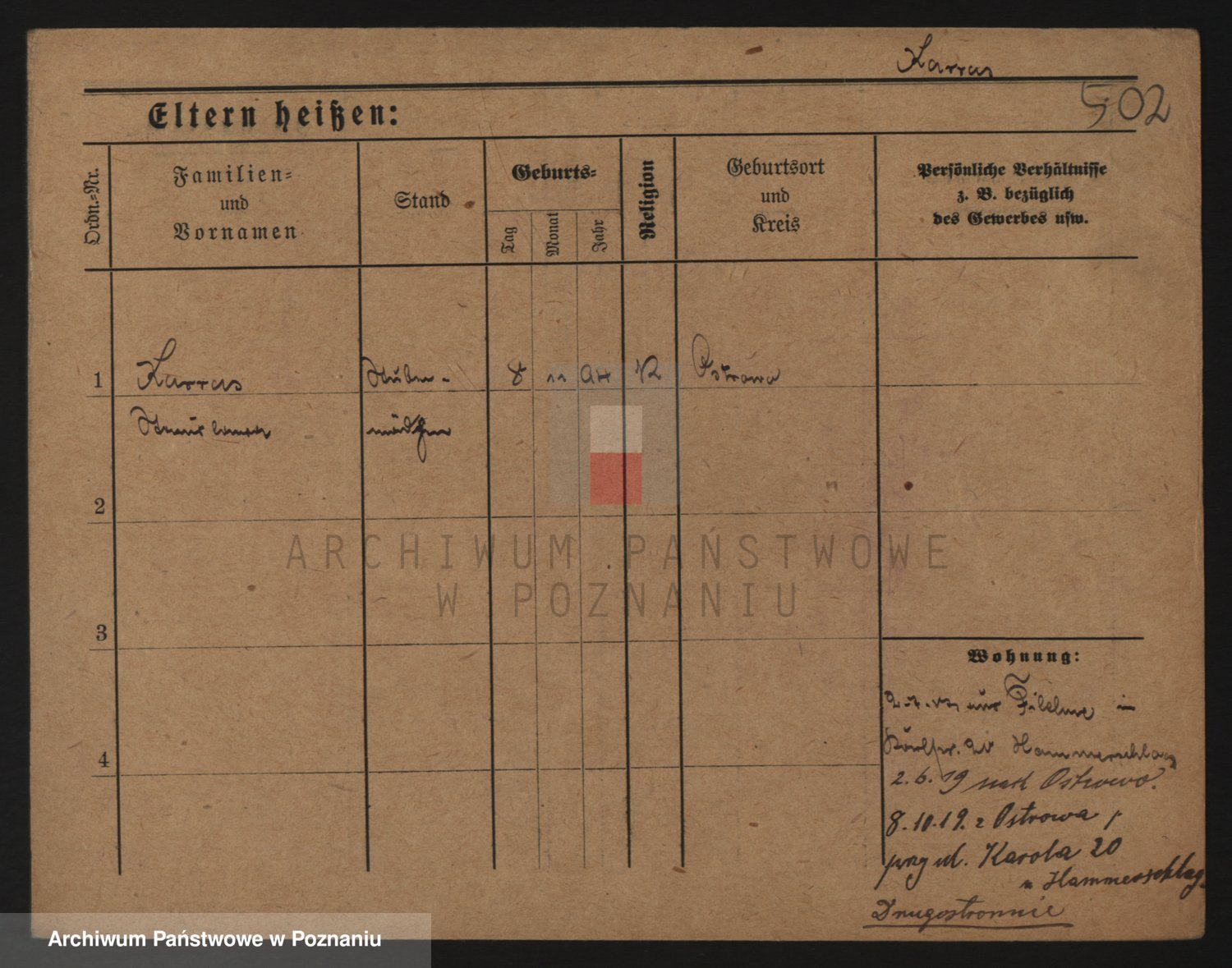 Podgląd karty osobowej dostępny jest po kliknięciu na nazwisko lub ikonkę karty. Można dokonywać powiększenia (ikony na górze) lub przechodzić między kolejnymi skanami (strzałki po bokach).