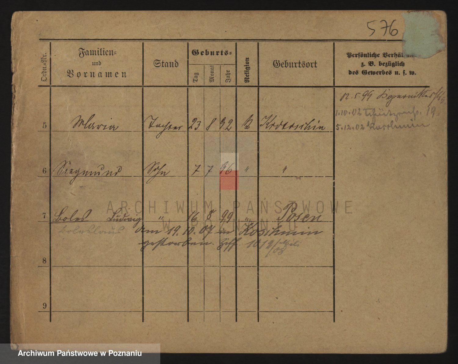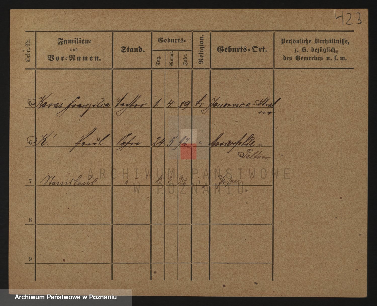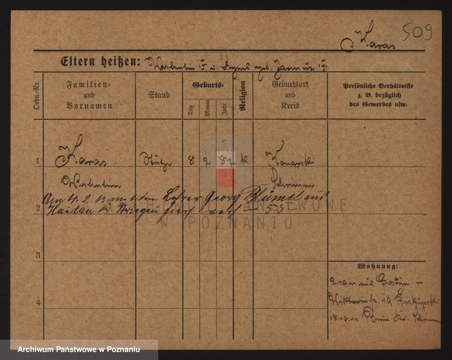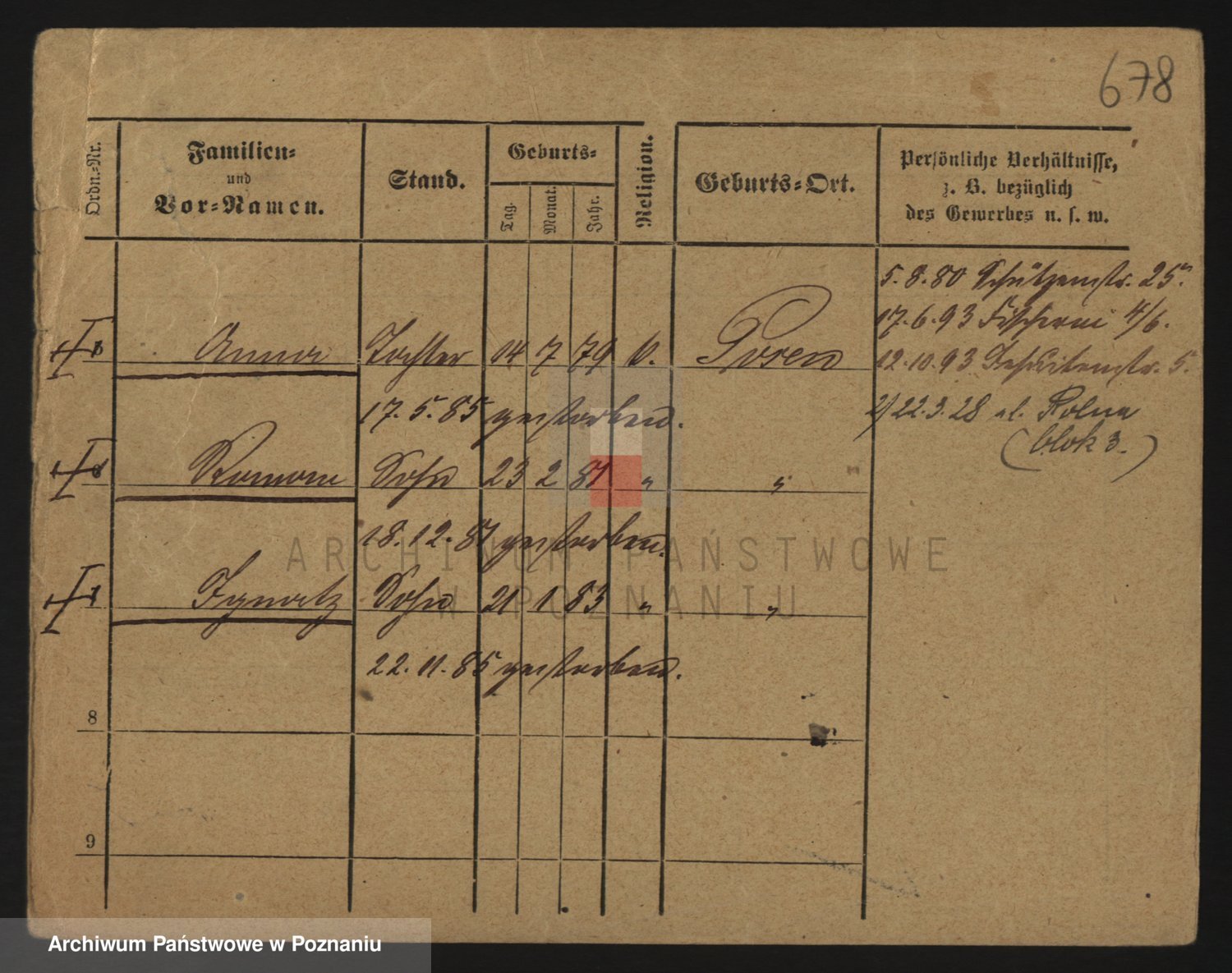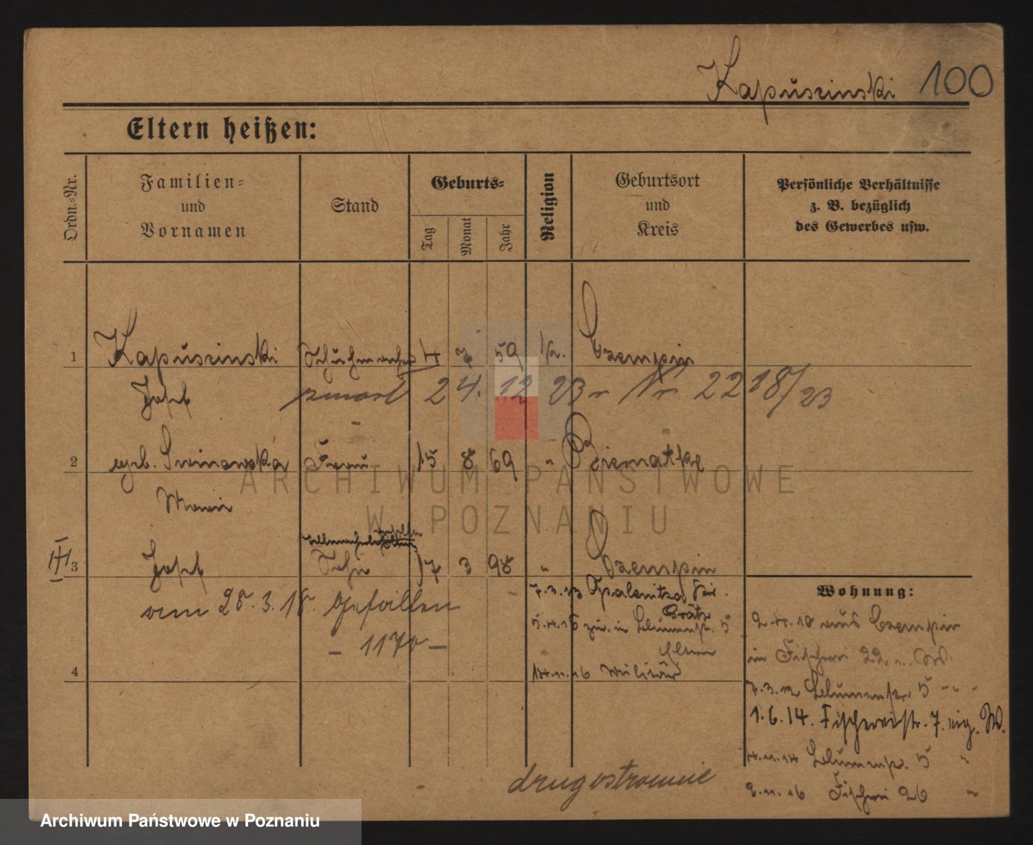 Podgląd karty osobowej dostępny jest po kliknięciu na nazwisko lub ikonkę karty. Można dokonywać powiększenia (ikony na górze) lub przechodzić między kolejnymi skanami (strzałki po bokach).