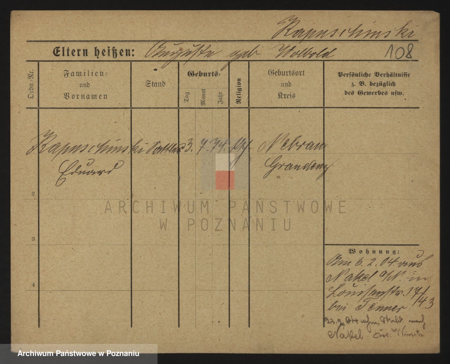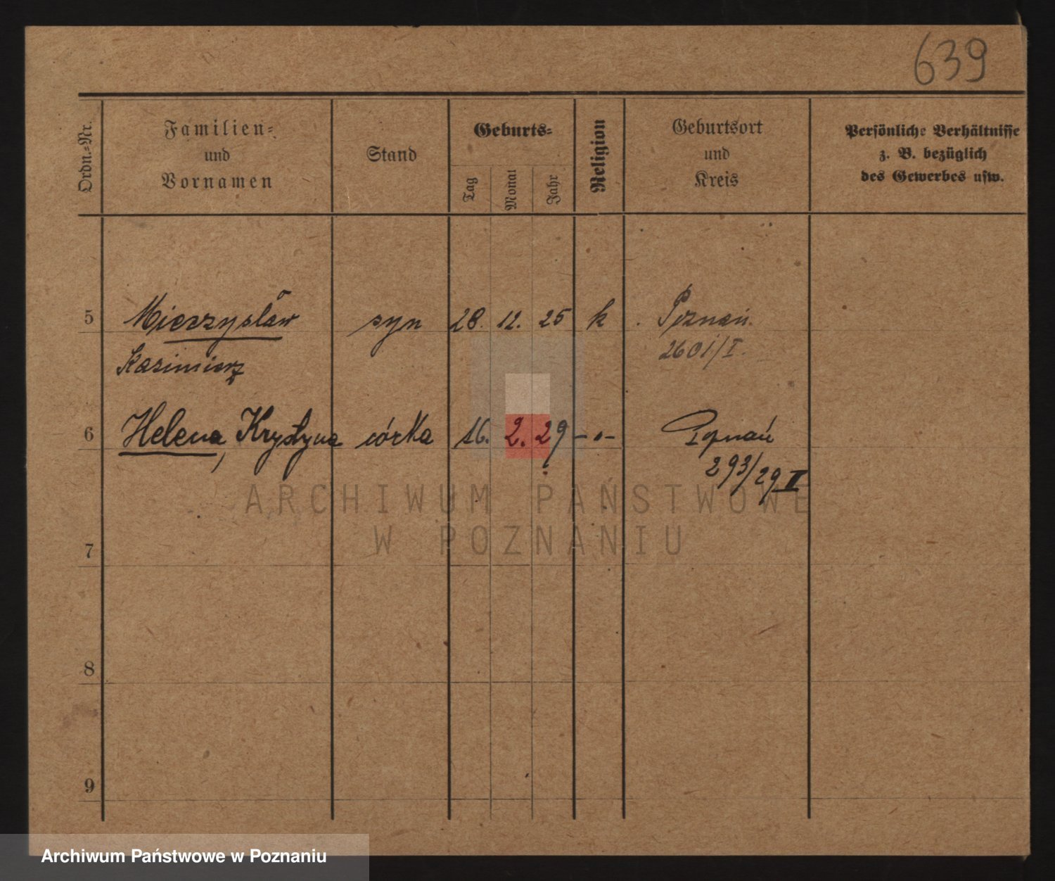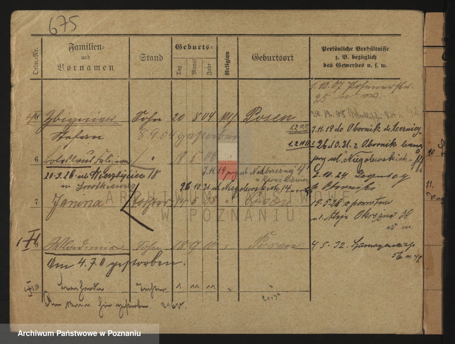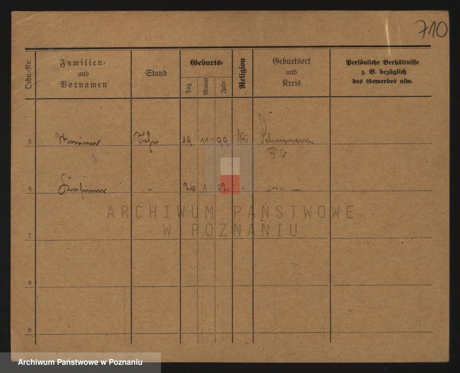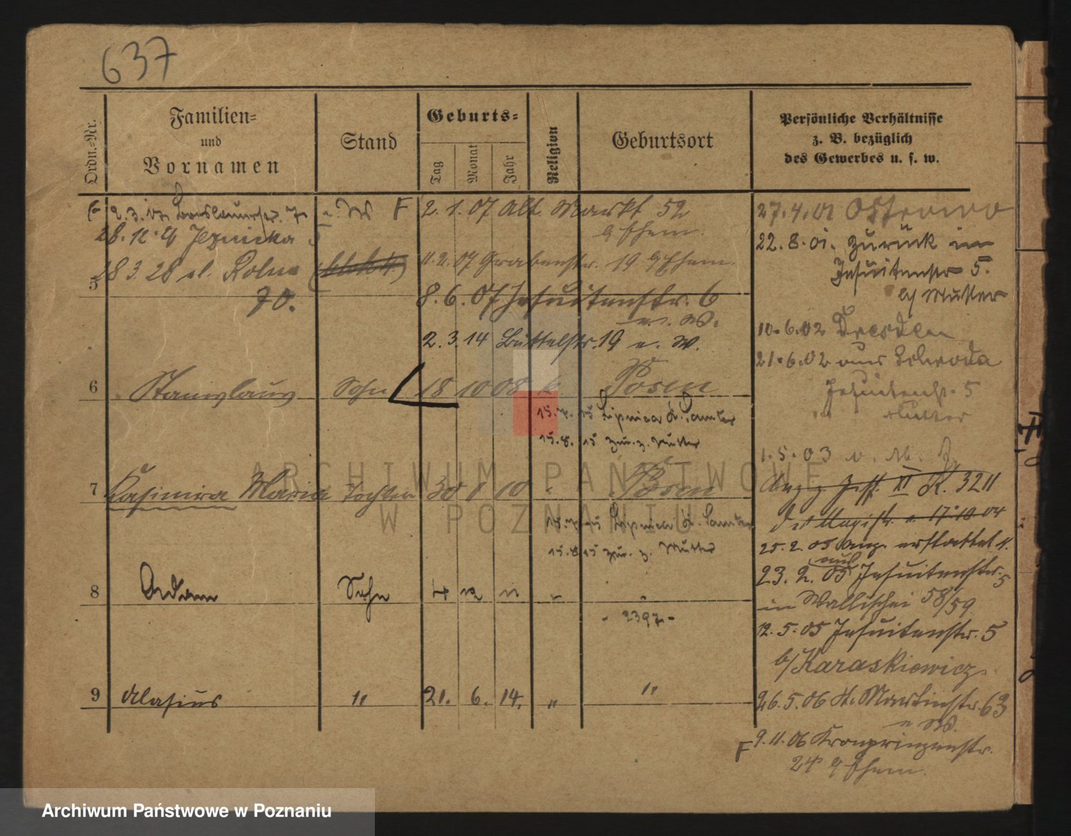 Podgląd karty osobowej dostępny jest po kliknięciu na nazwisko lub ikonkę karty. Można dokonywać powiększenia (ikony na górze) lub przechodzić między kolejnymi skanami (strzałki po bokach).