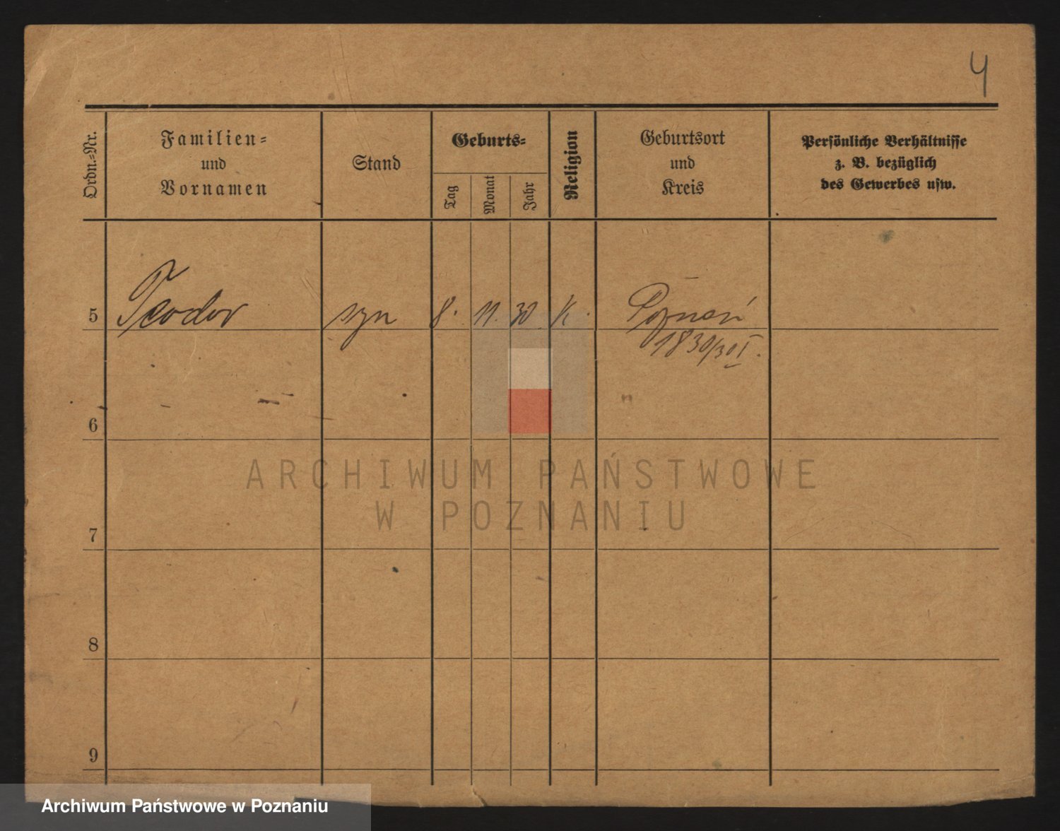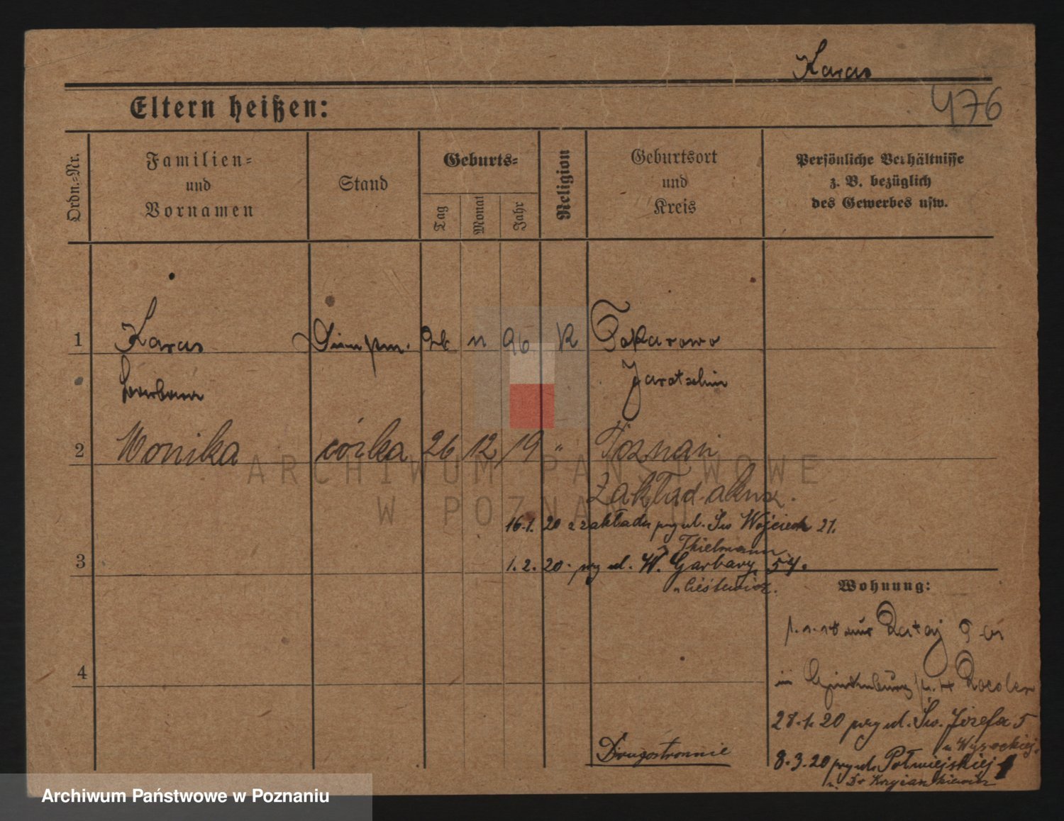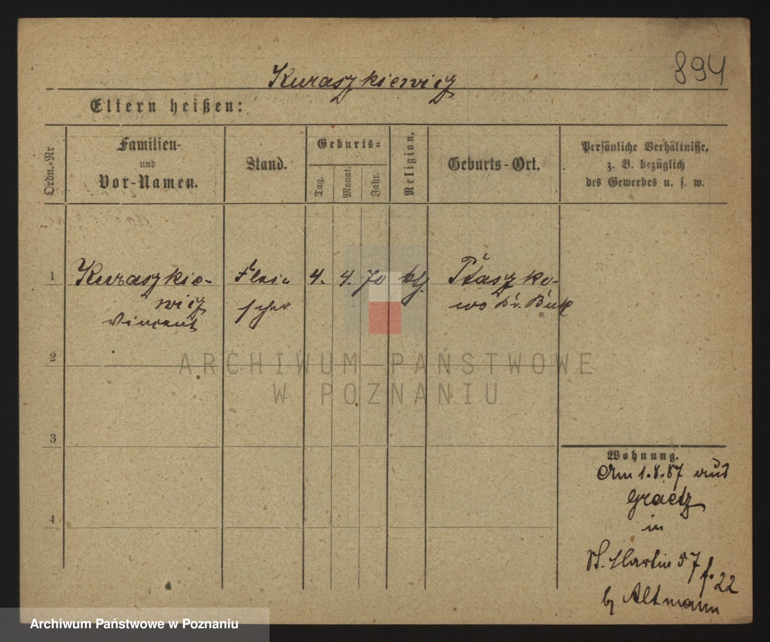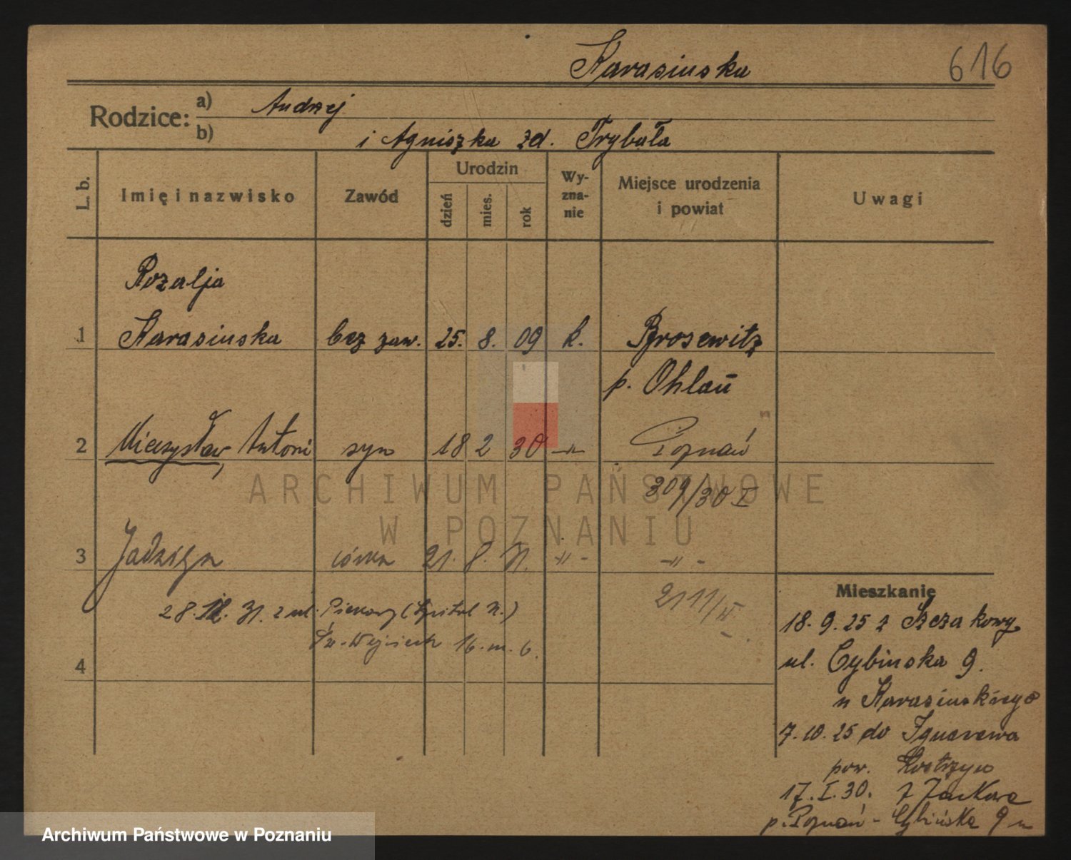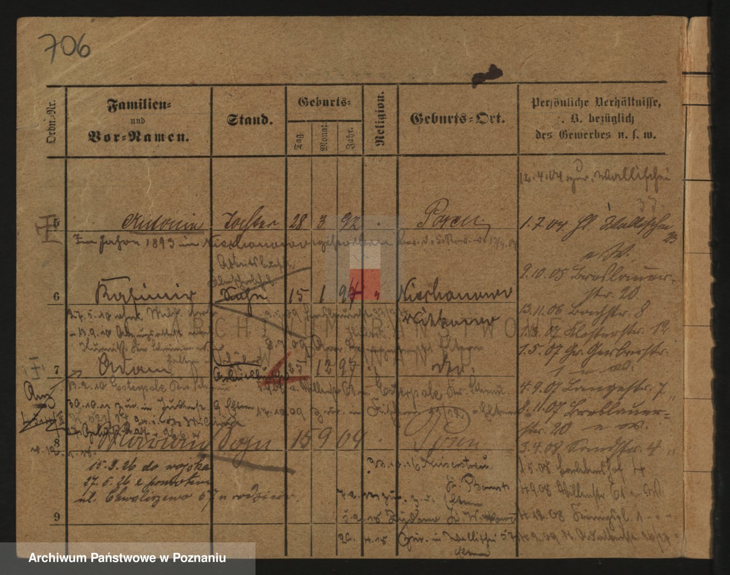 Podgląd karty osobowej dostępny jest po kliknięciu na nazwisko lub ikonkę karty. Można dokonywać powiększenia (ikony na górze) lub przechodzić między kolejnymi skanami (strzałki po bokach).