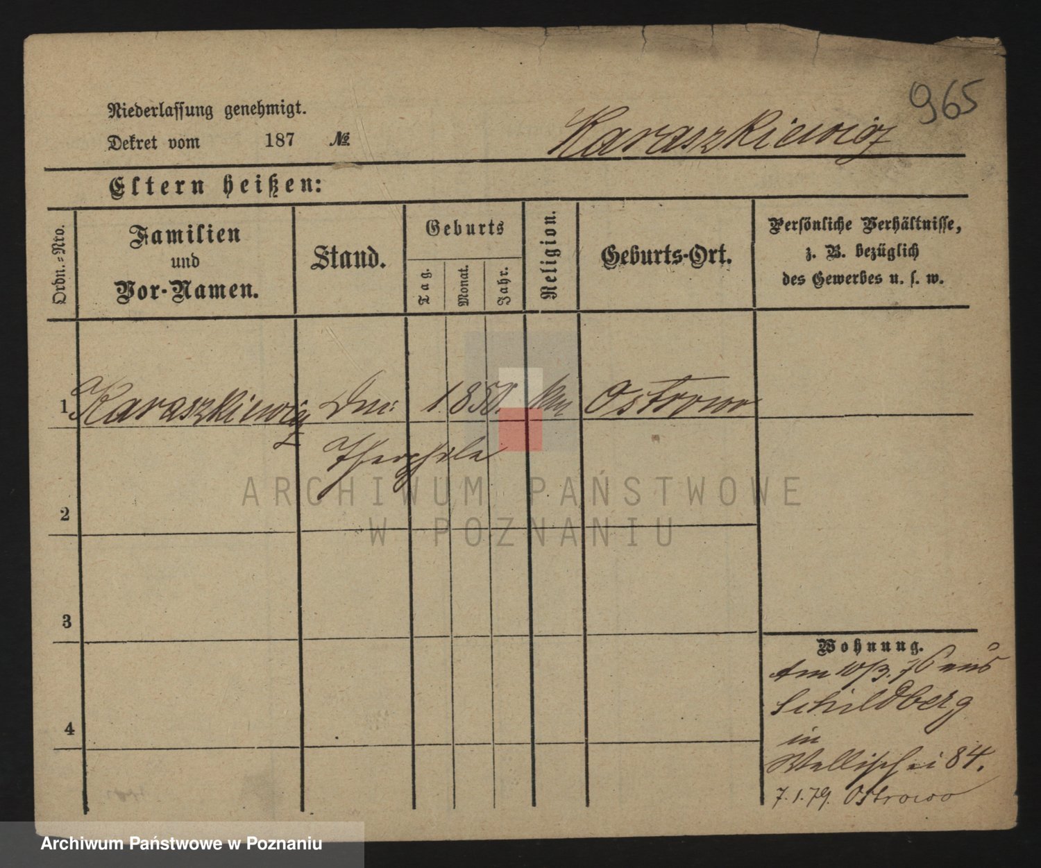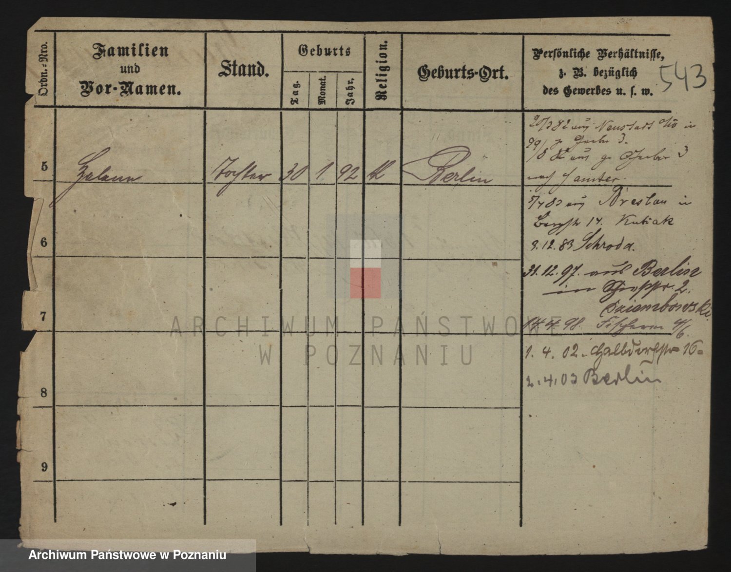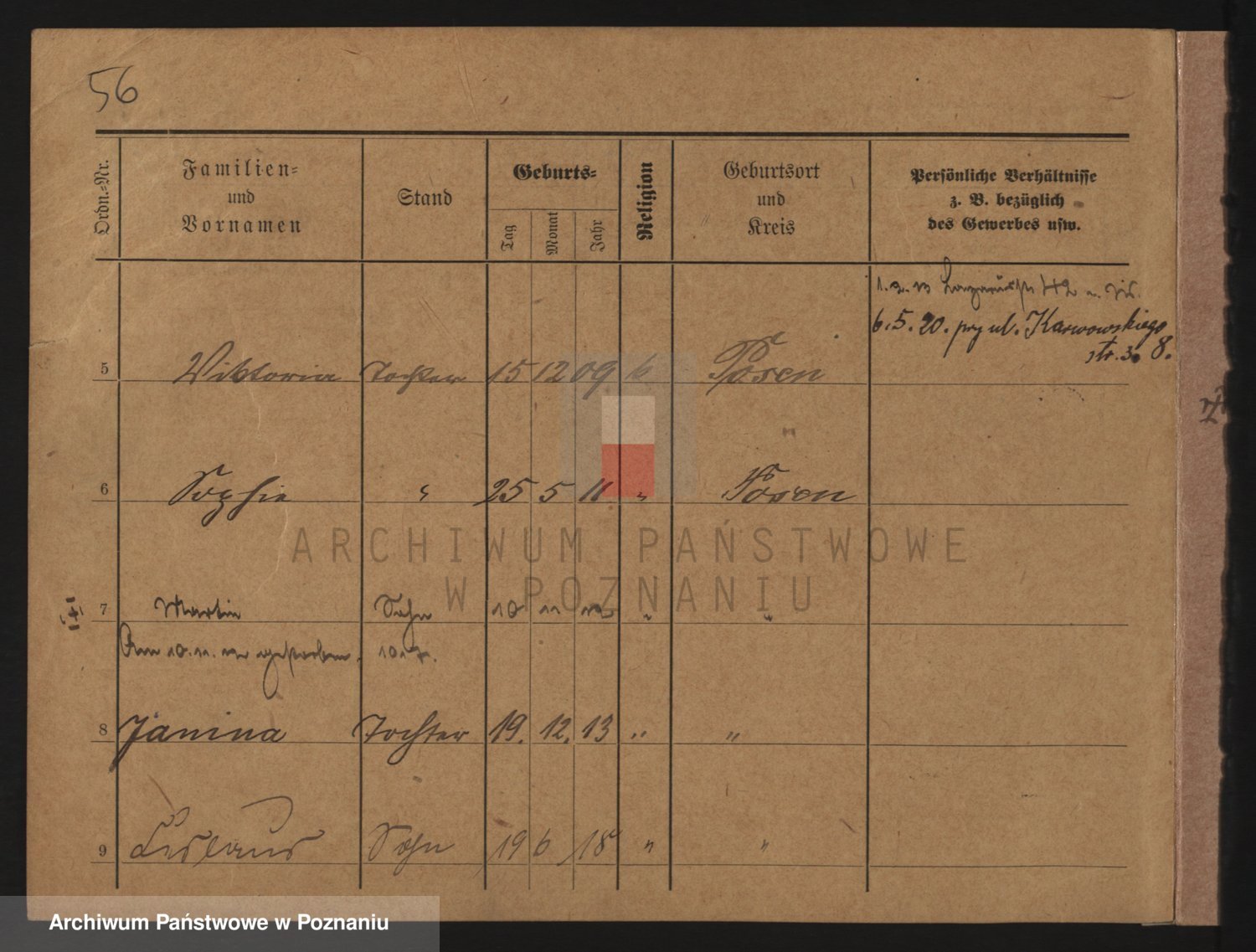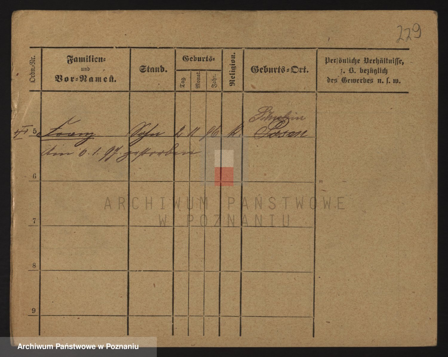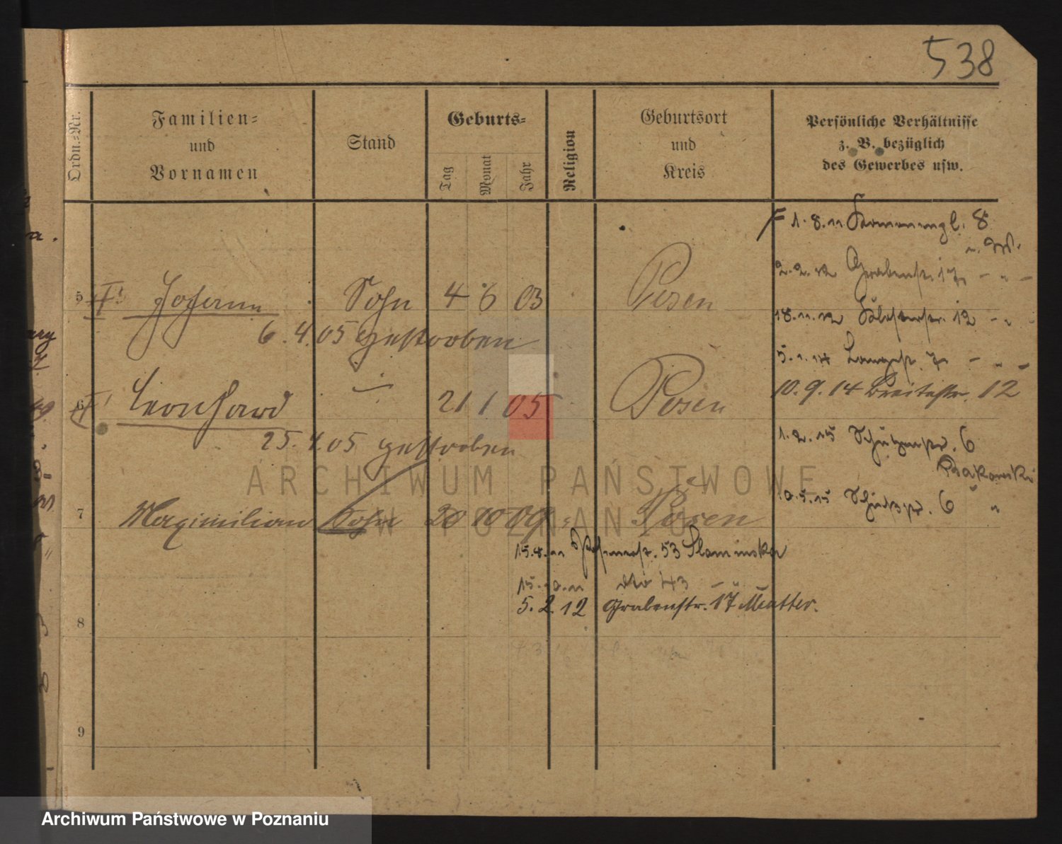 Podgląd karty osobowej dostępny jest po kliknięciu na nazwisko lub ikonkę karty. Można dokonywać powiększenia (ikony na górze) lub przechodzić między kolejnymi skanami (strzałki po bokach).