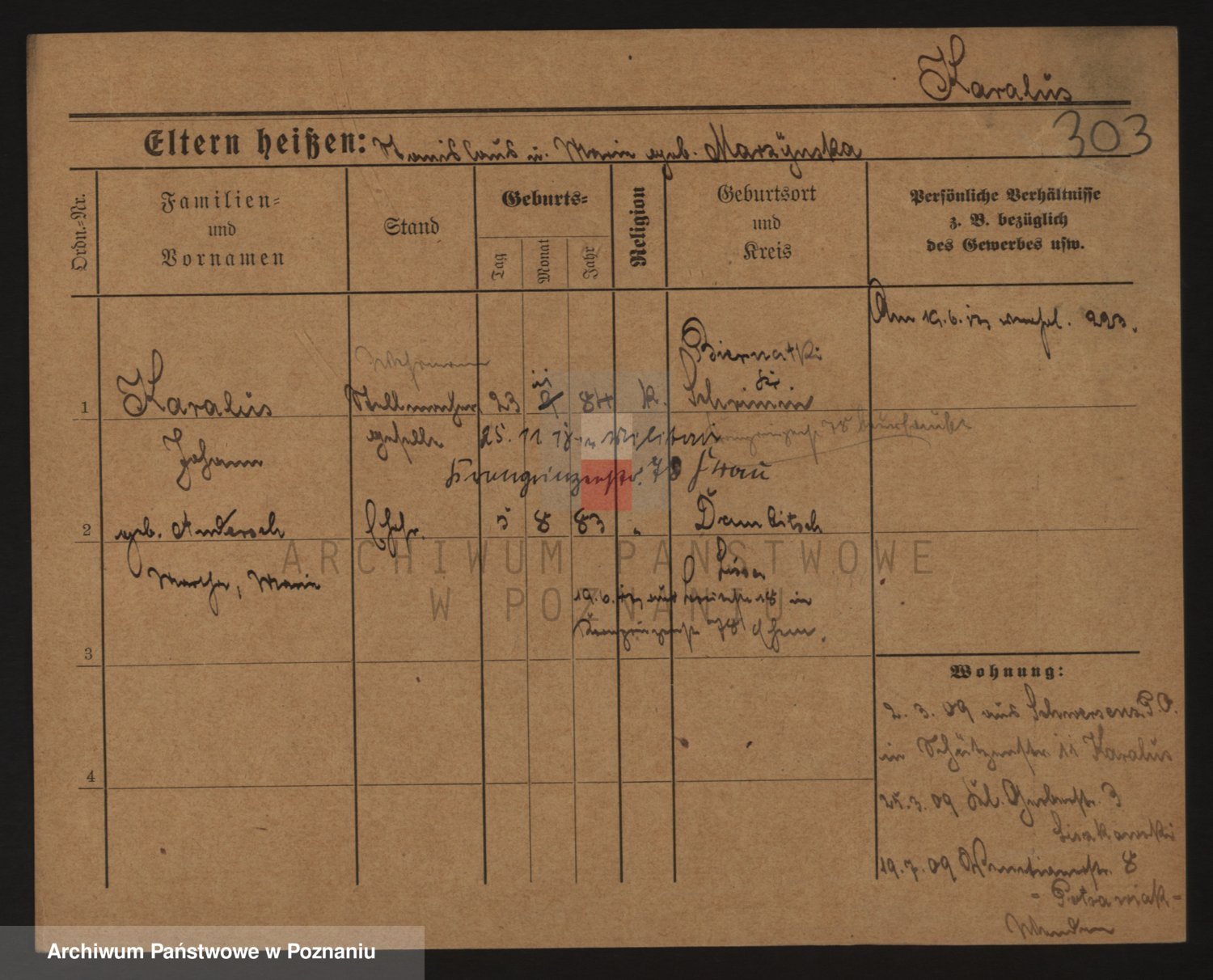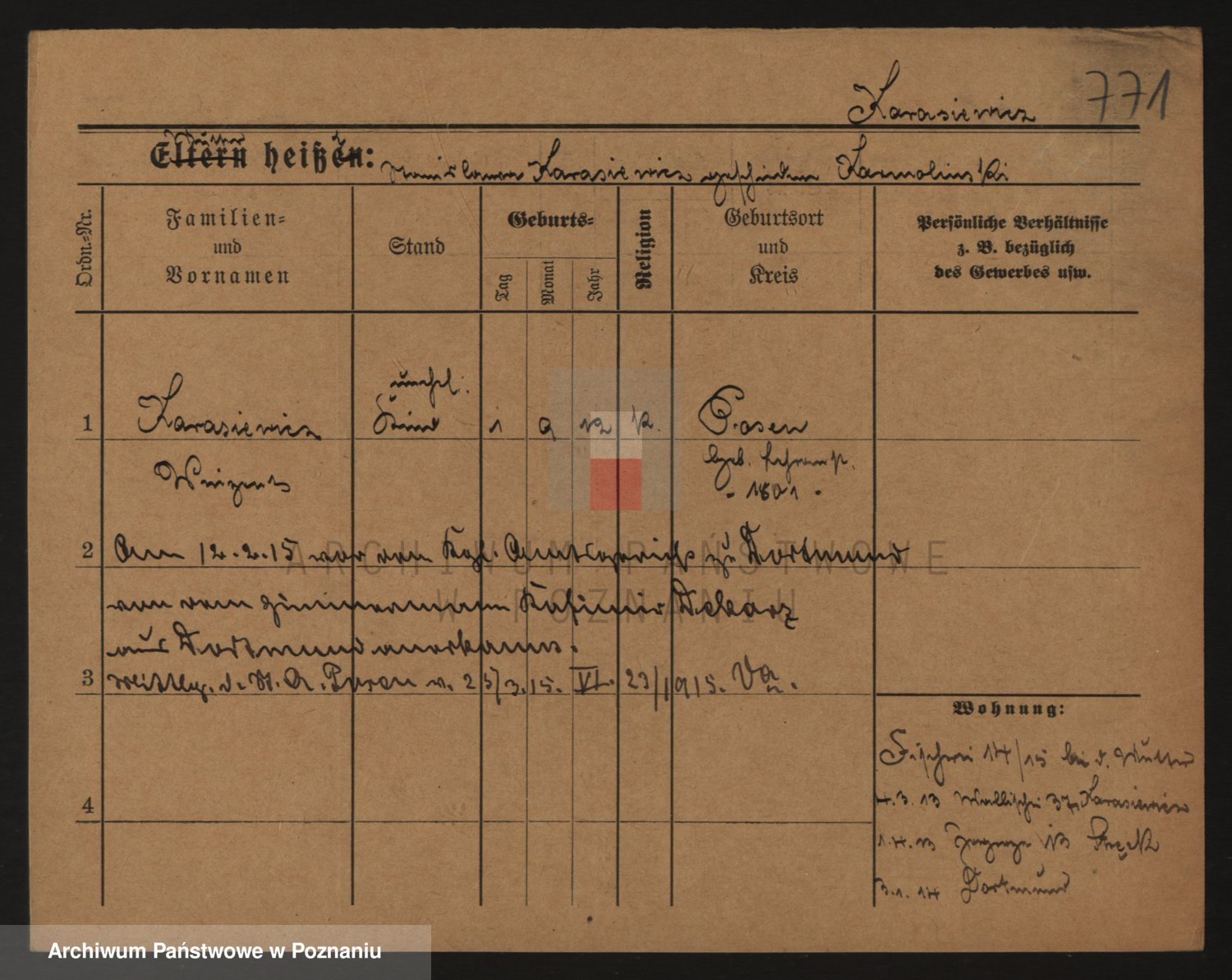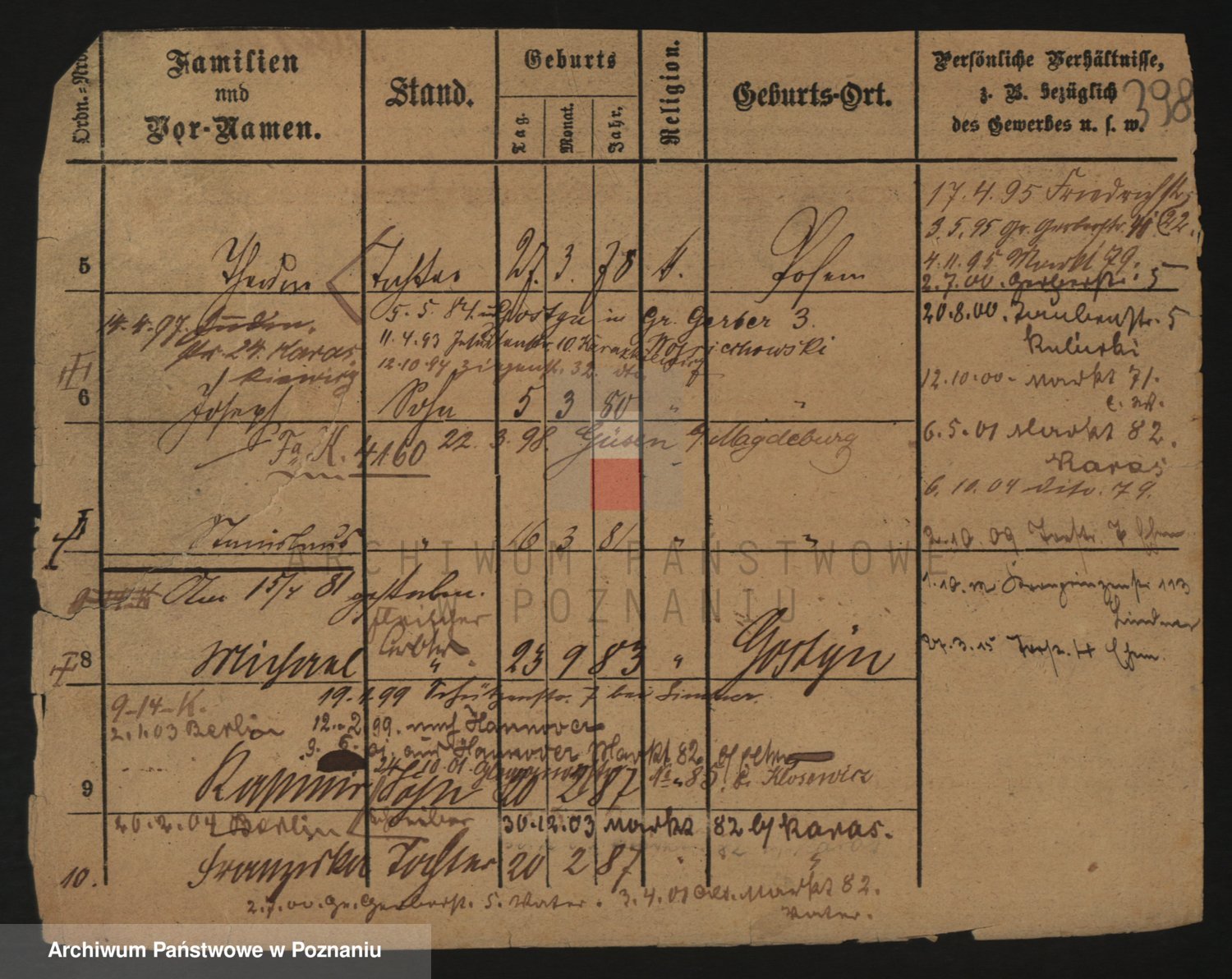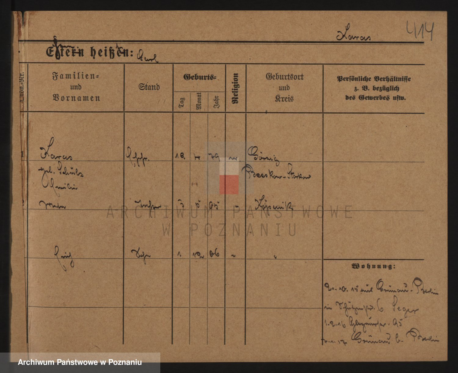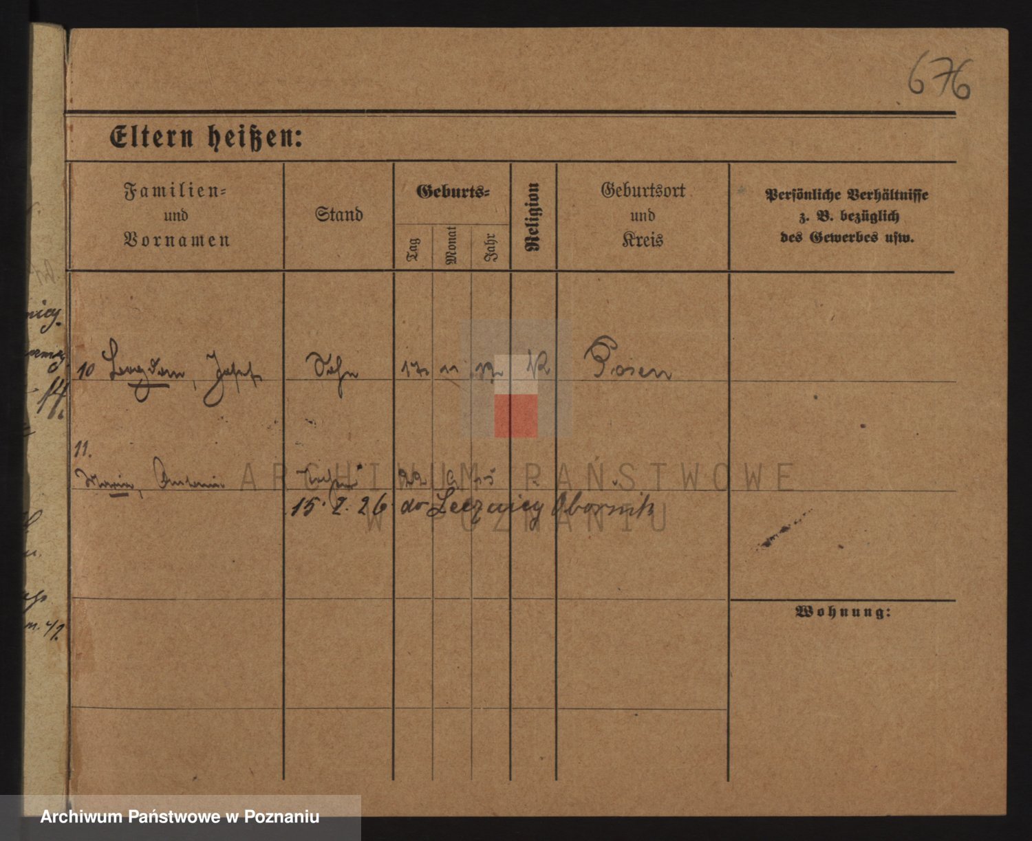 Podgląd karty osobowej dostępny jest po kliknięciu na nazwisko lub ikonkę karty. Można dokonywać powiększenia (ikony na górze) lub przechodzić między kolejnymi skanami (strzałki po bokach).