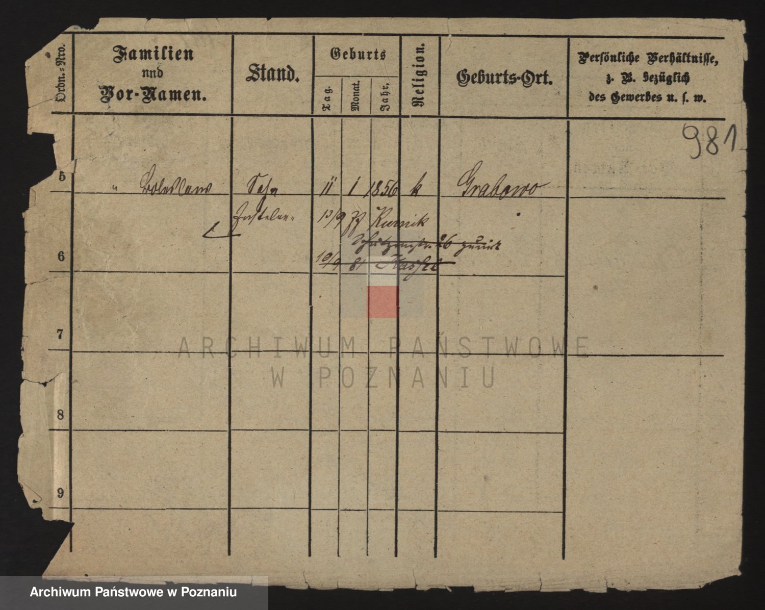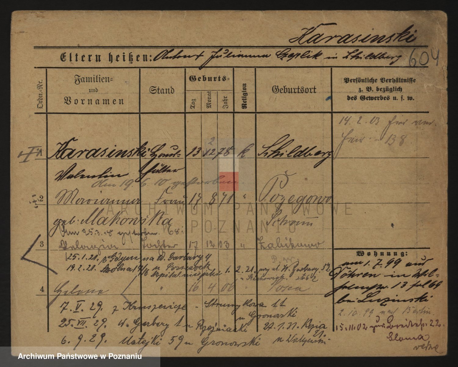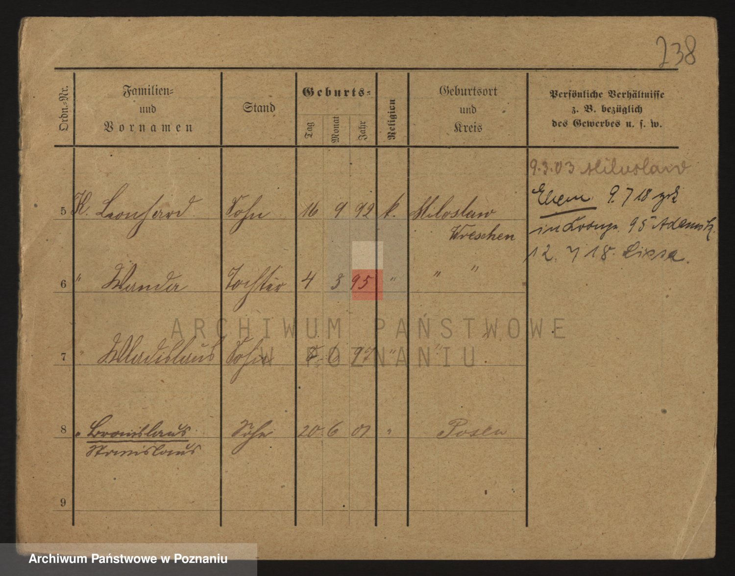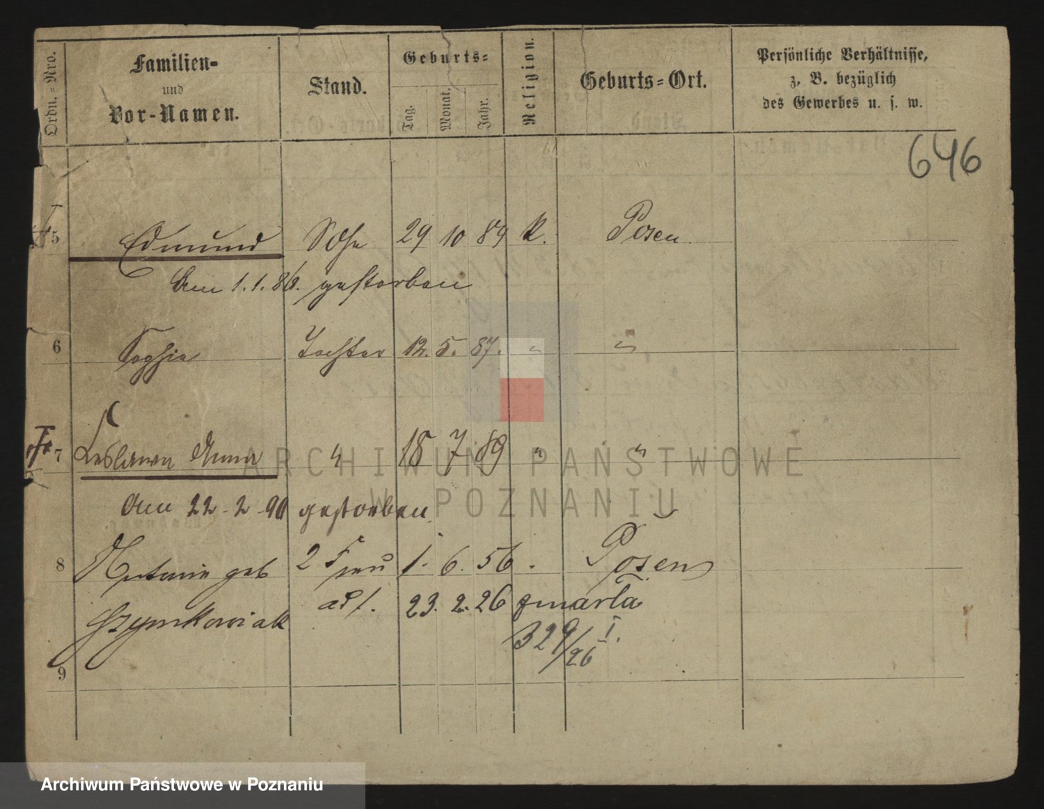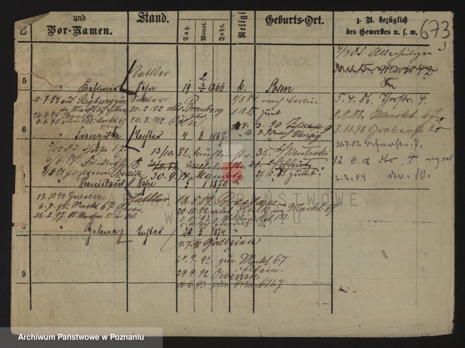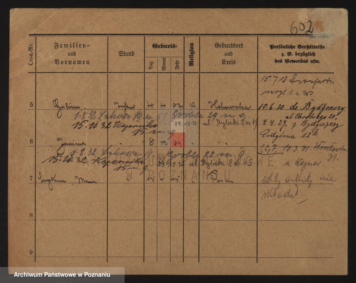 Podgląd karty osobowej dostępny jest po kliknięciu na nazwisko lub ikonkę karty. Można dokonywać powiększenia (ikony na górze) lub przechodzić między kolejnymi skanami (strzałki po bokach).