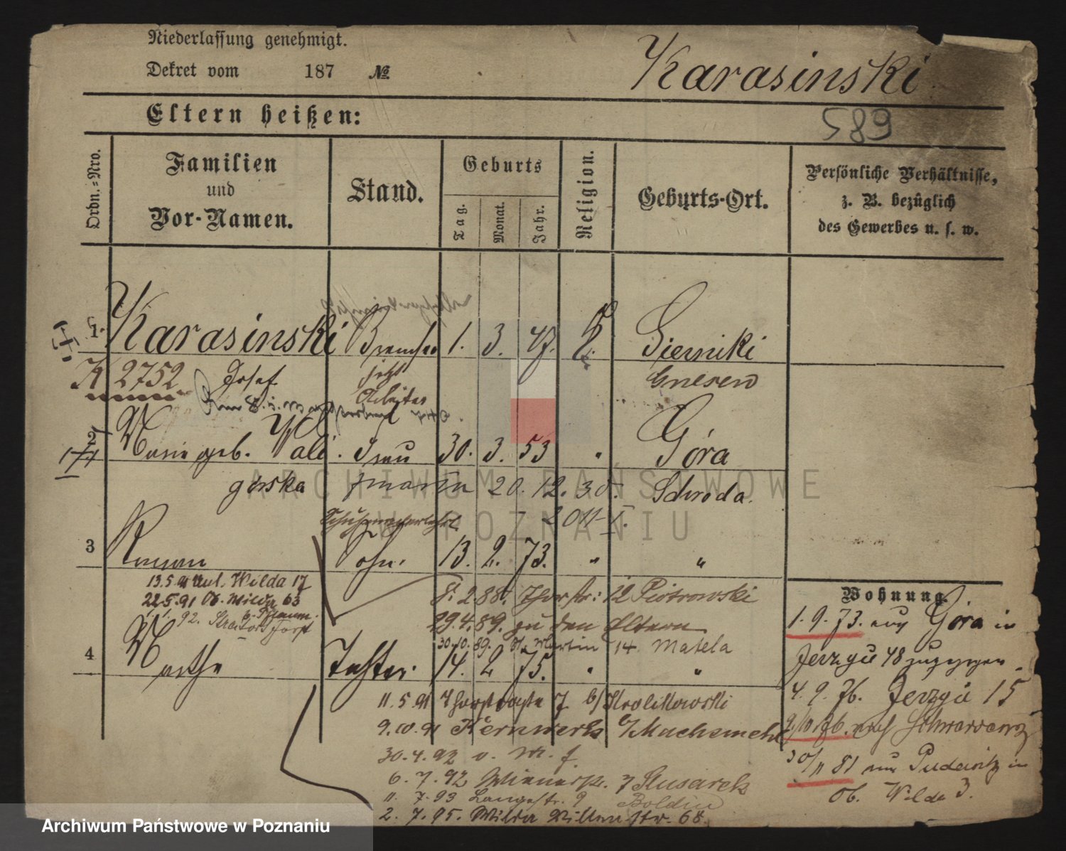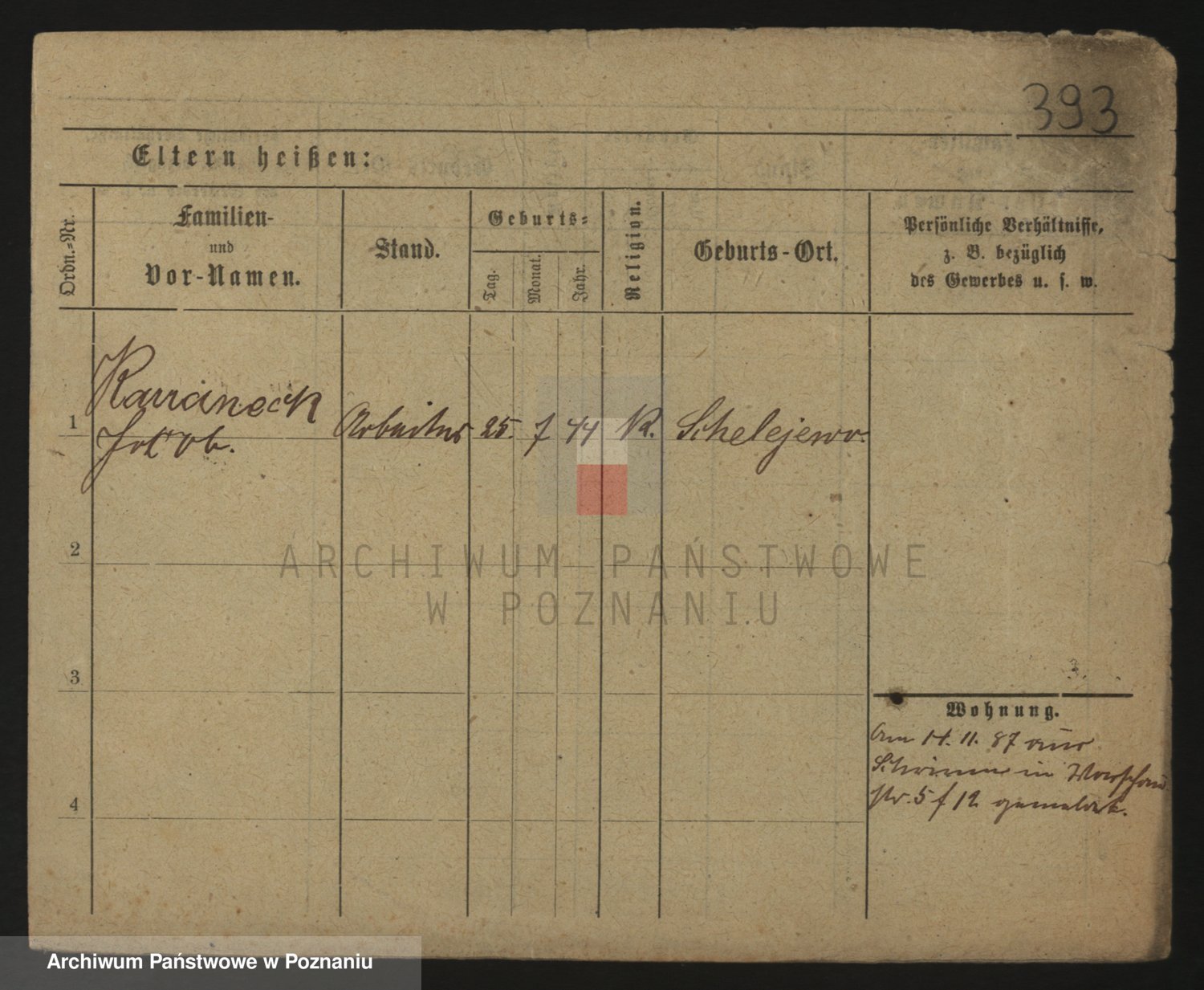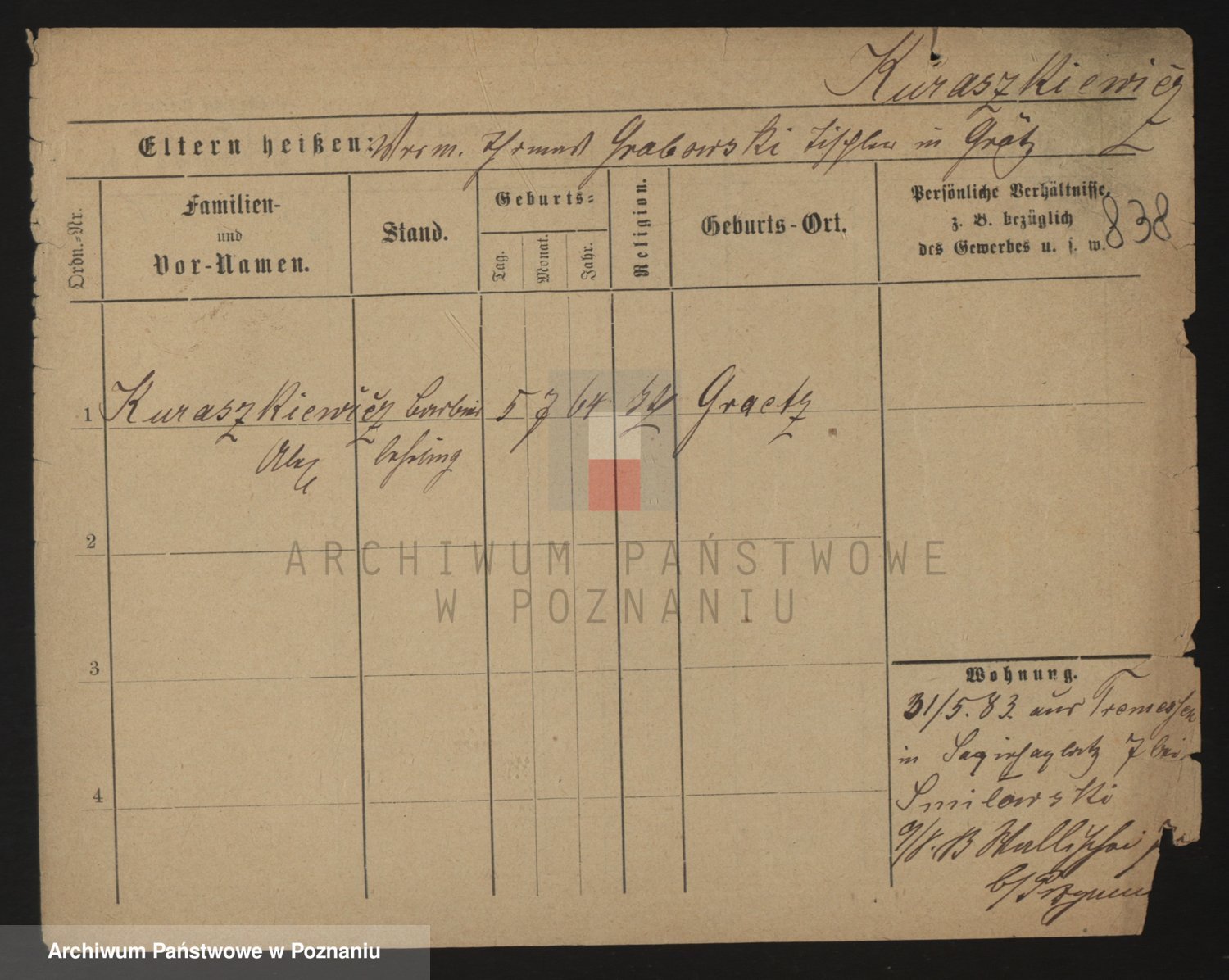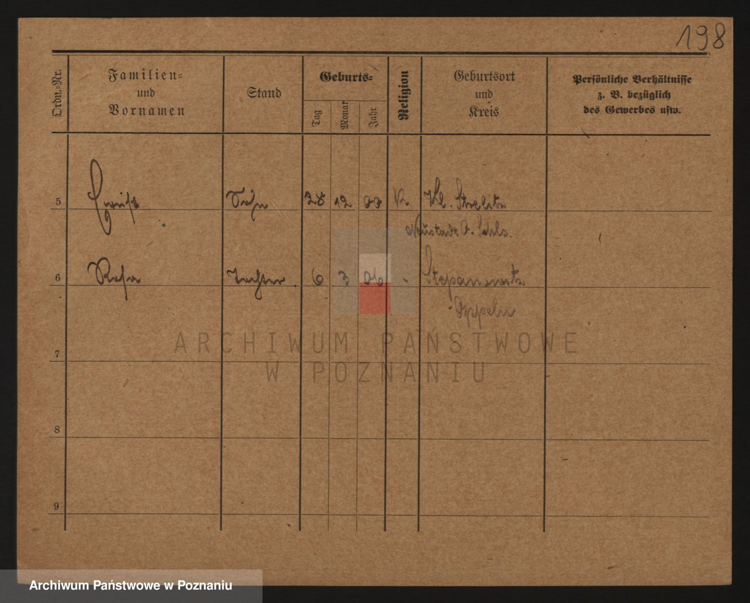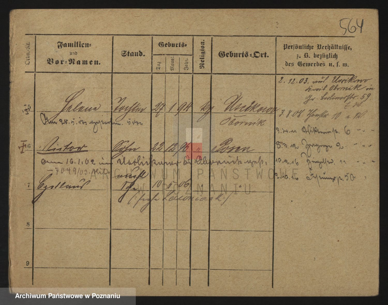 Podgląd karty osobowej dostępny jest po kliknięciu na nazwisko lub ikonkę karty. Można dokonywać powiększenia (ikony na górze) lub przechodzić między kolejnymi skanami (strzałki po bokach).