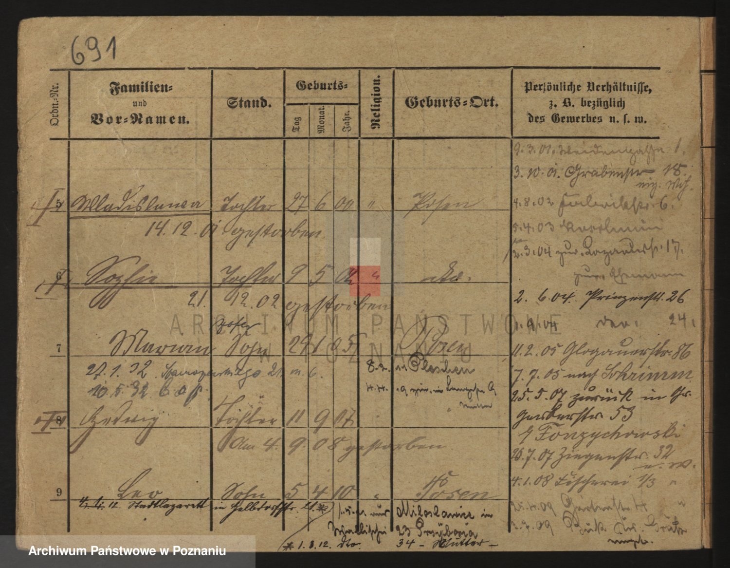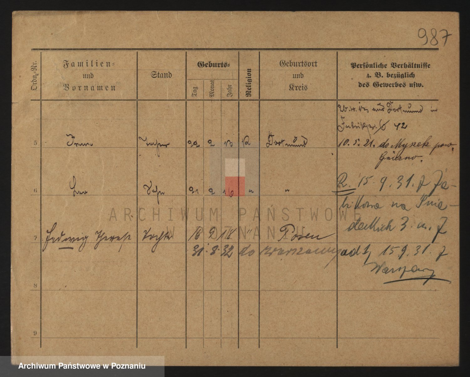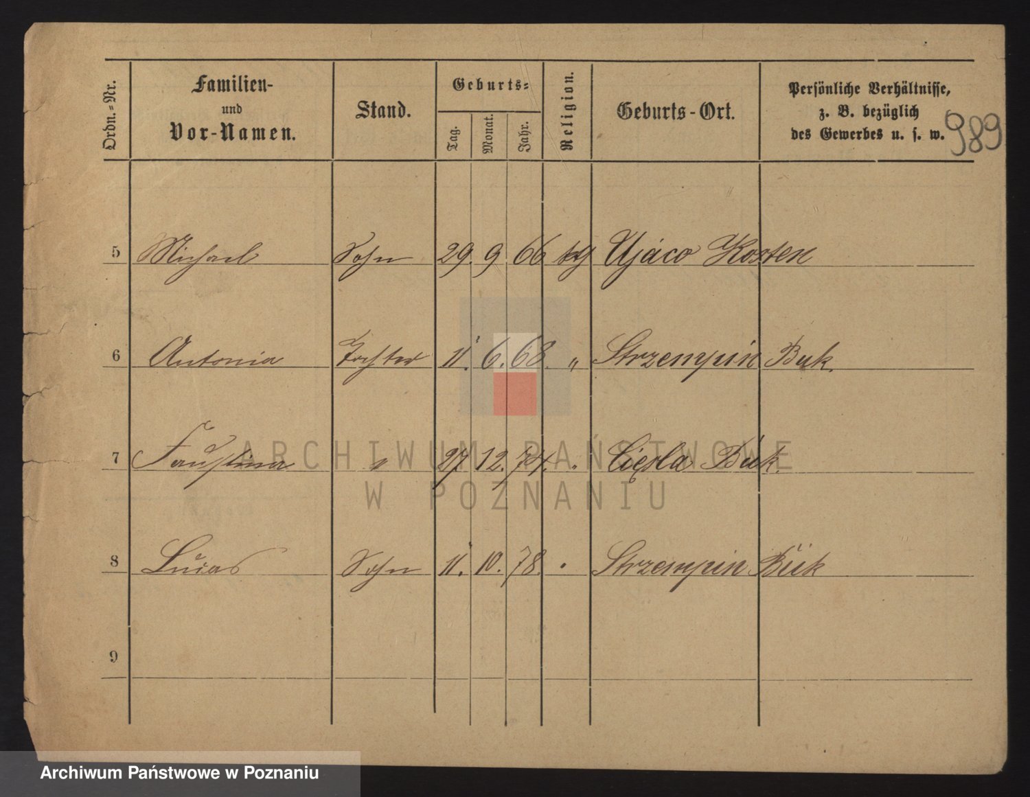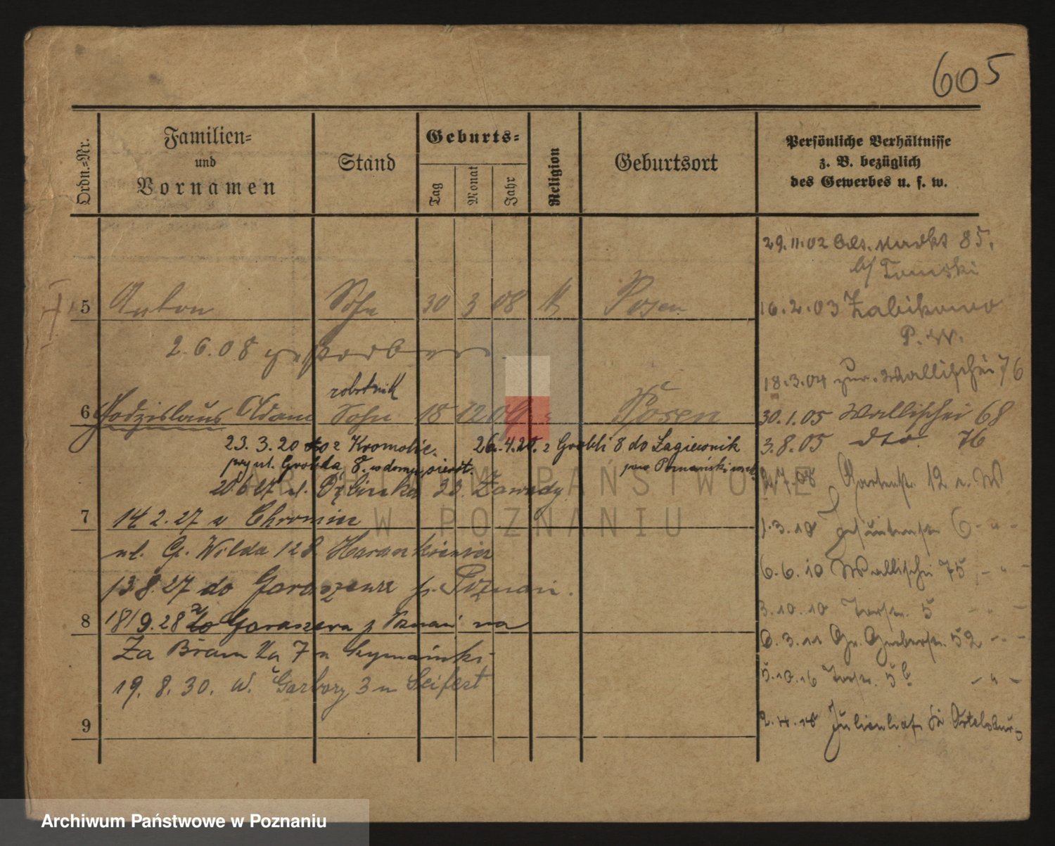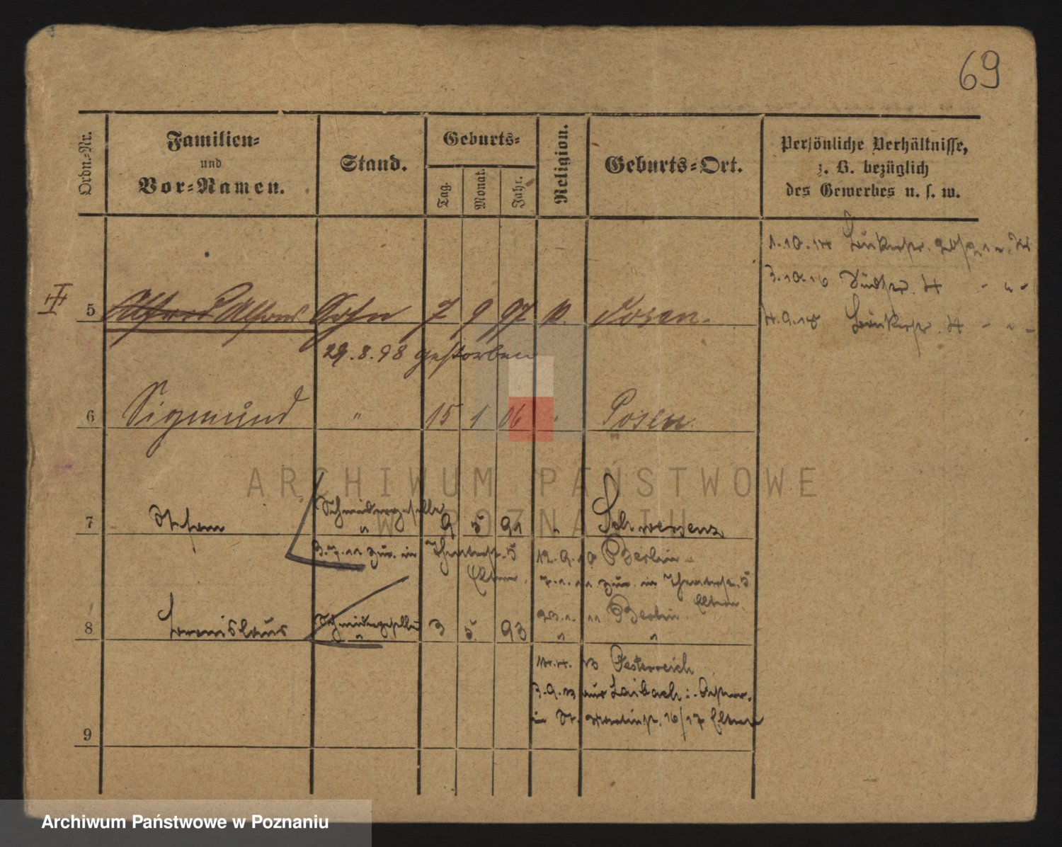 Podgląd karty osobowej dostępny jest po kliknięciu na nazwisko lub ikonkę karty. Można dokonywać powiększenia (ikony na górze) lub przechodzić między kolejnymi skanami (strzałki po bokach).