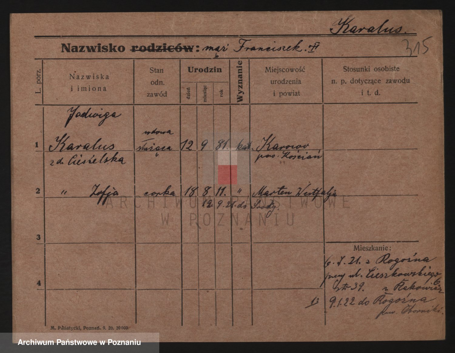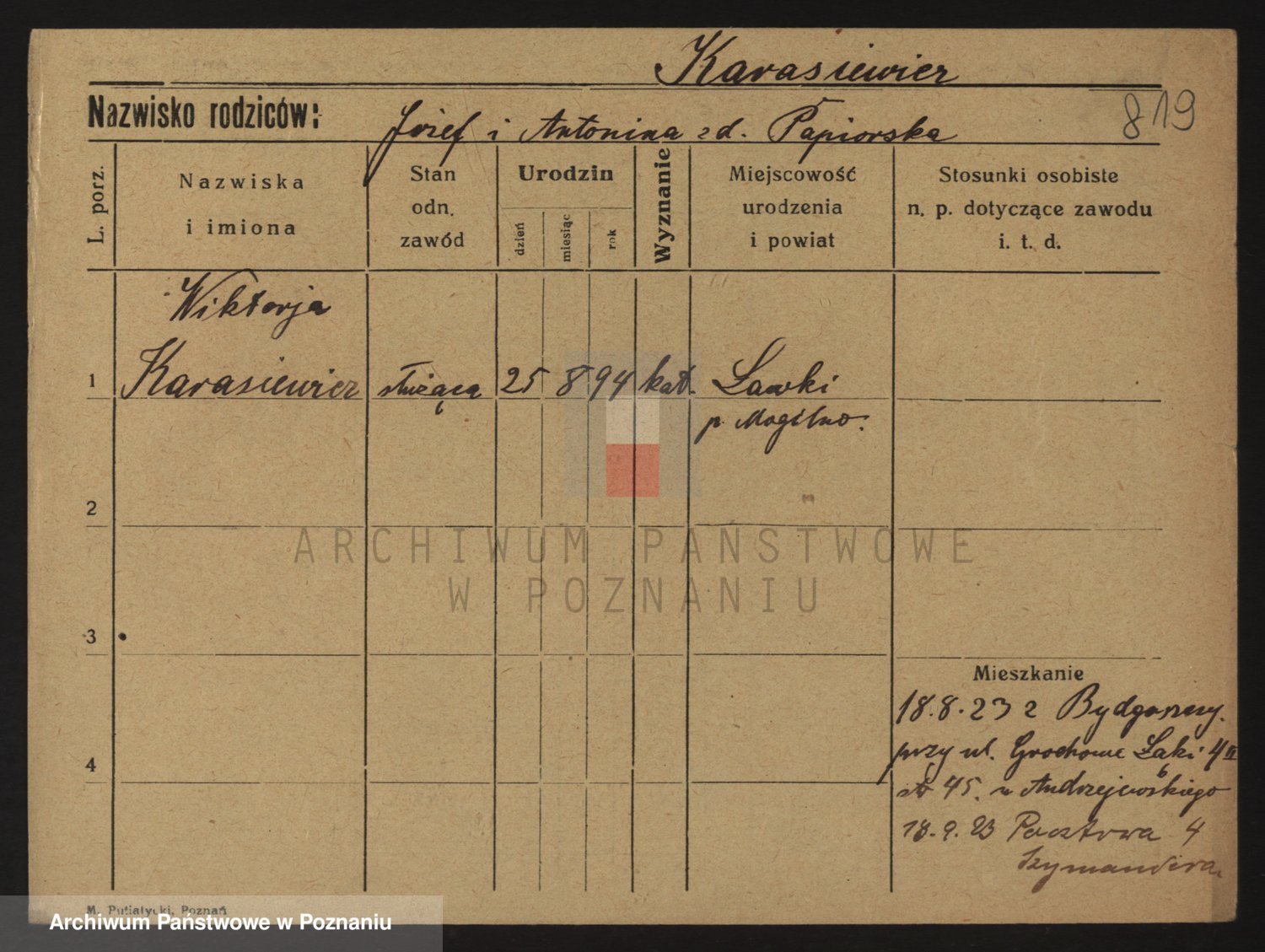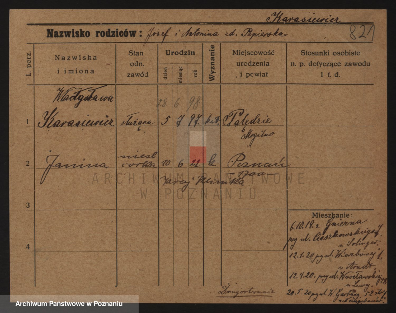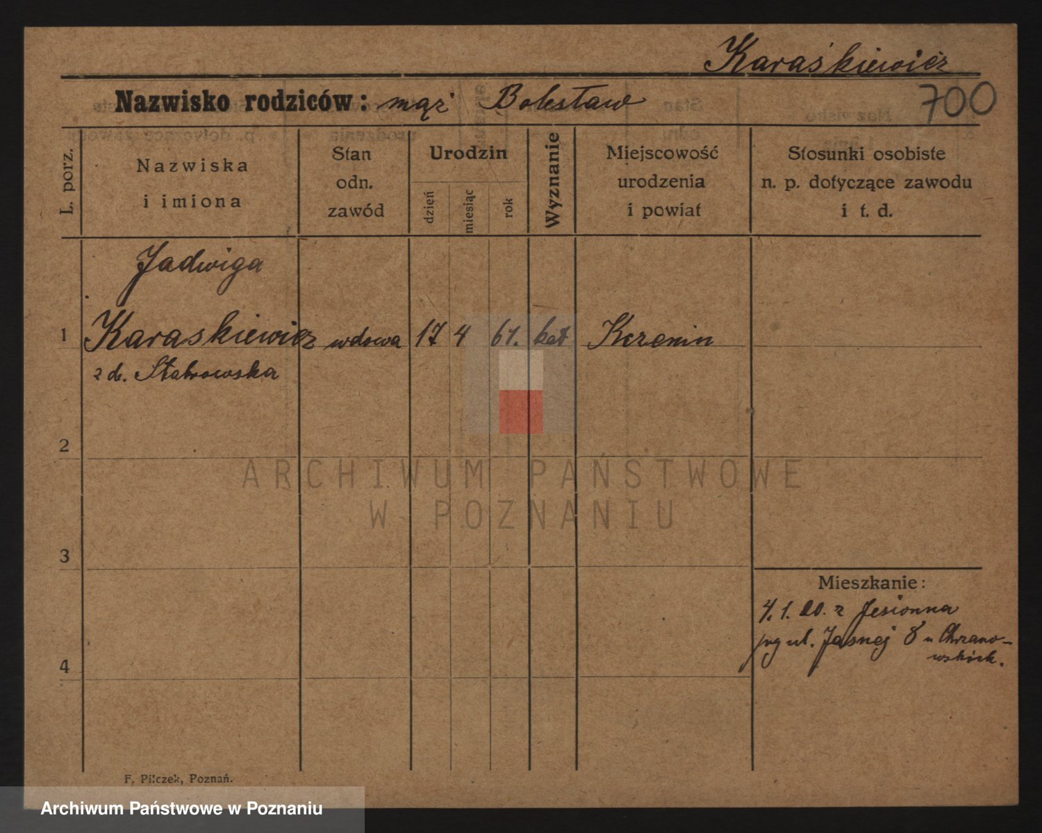 Karaszewski z d. Witoslawski I voto Dykier, Leona
