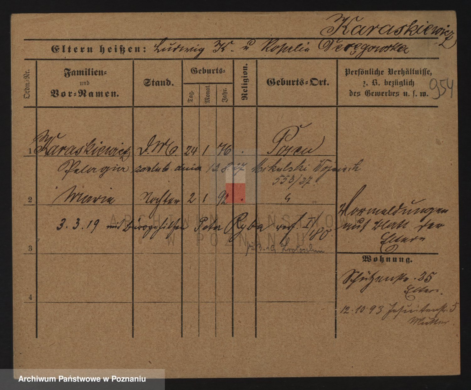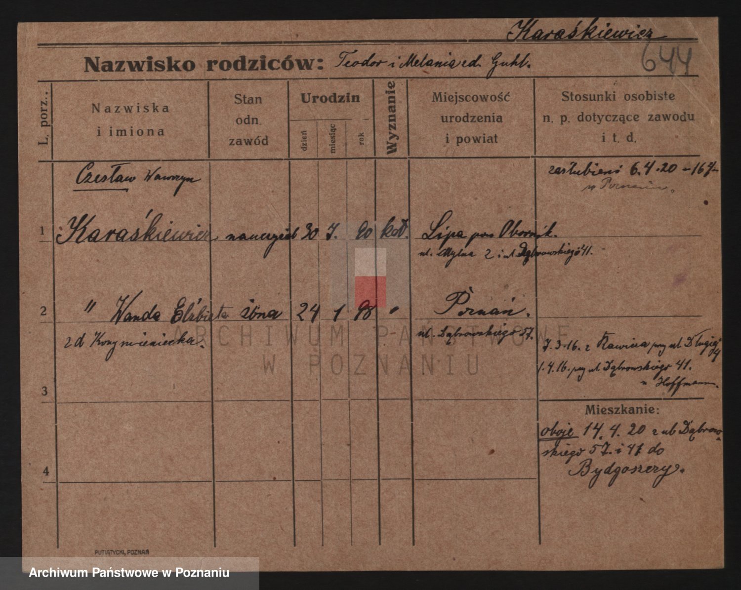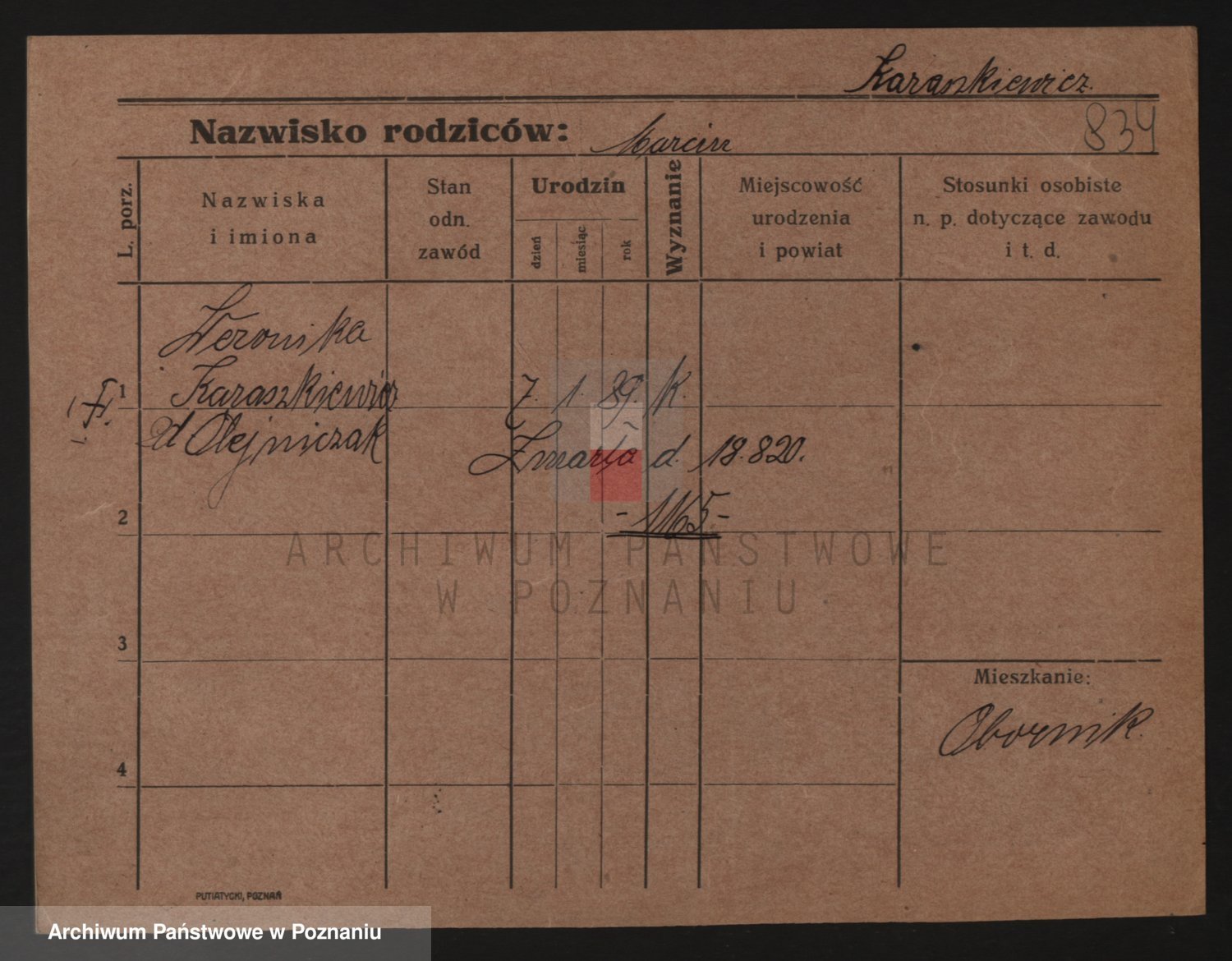 Karaszewski z d. Witoslawski I voto Dykier, Leona