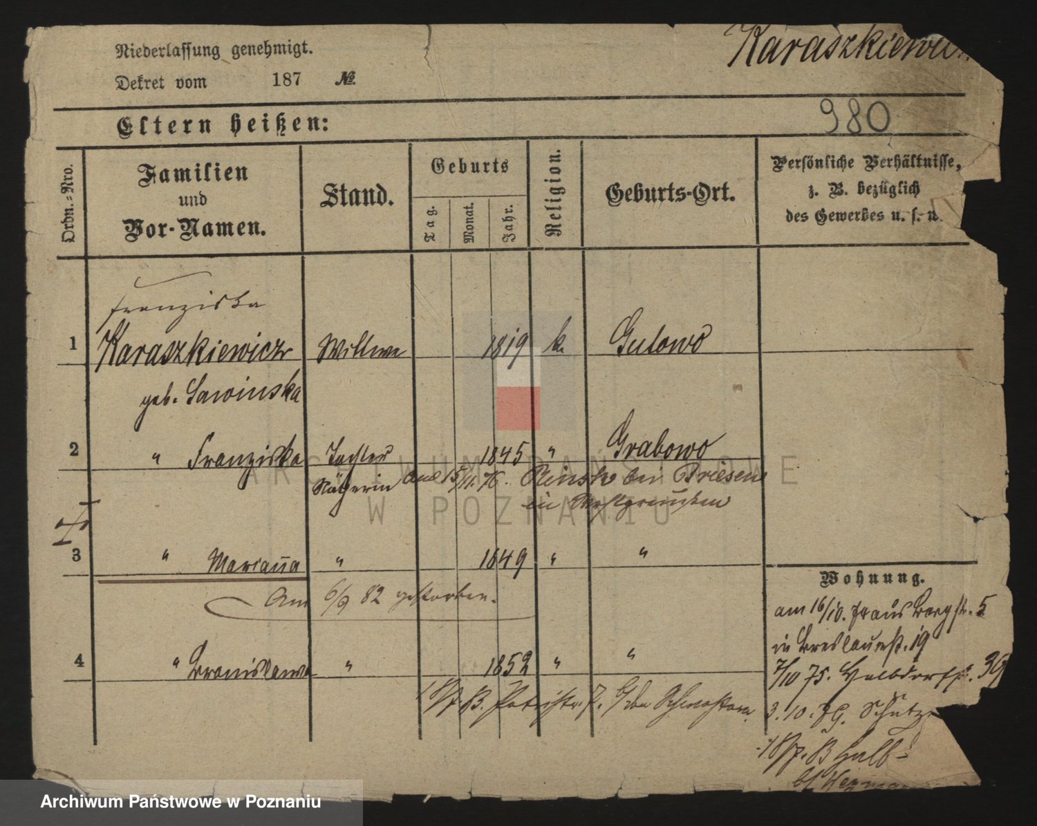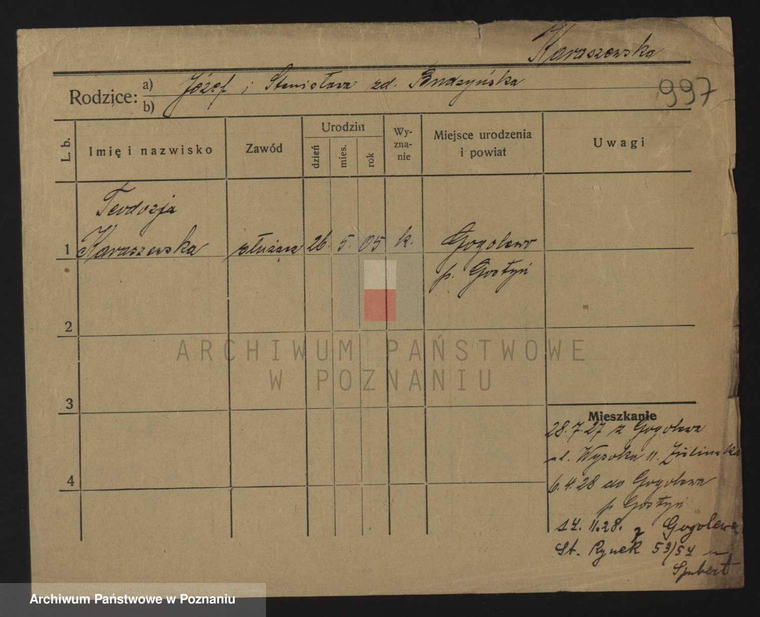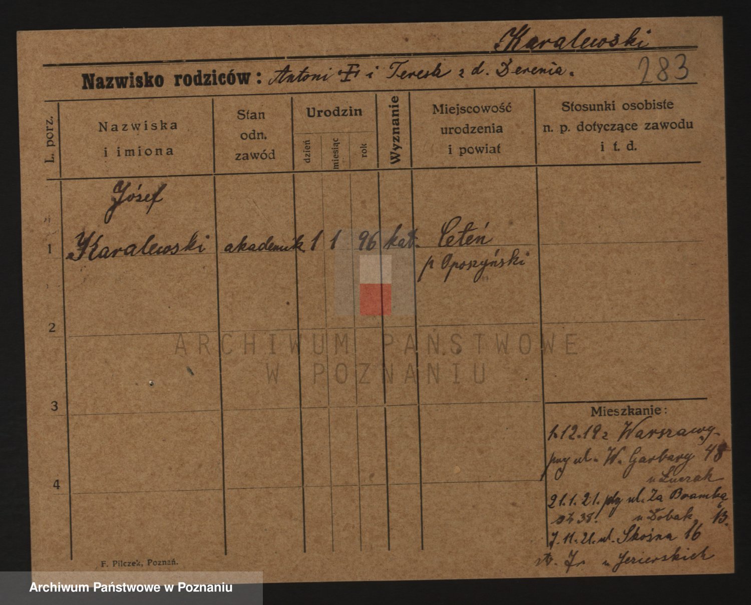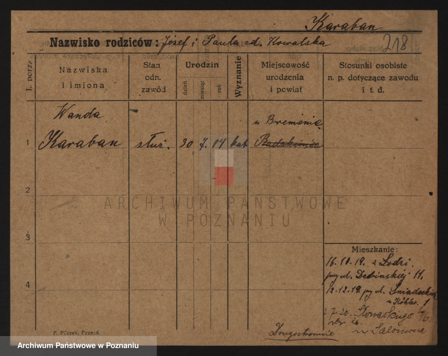 Karaszewski z d. Witoslawski I voto Dykier, Leona