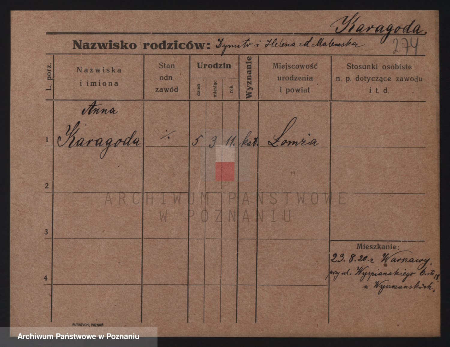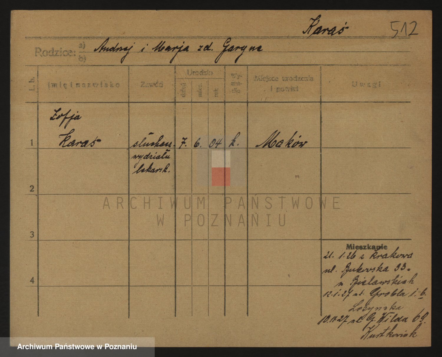 Karasińska, Zofja