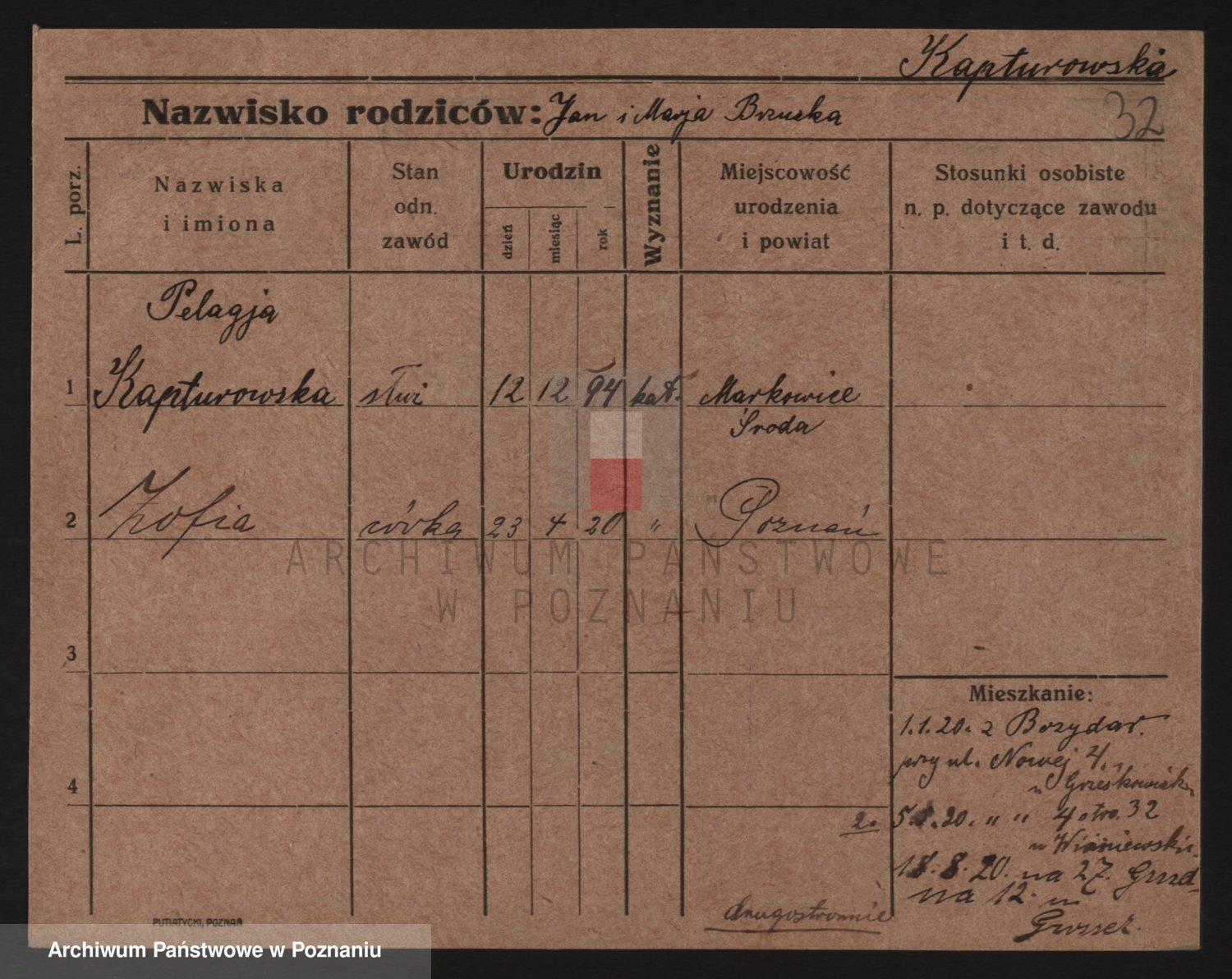 Kapturowska, Pelagja