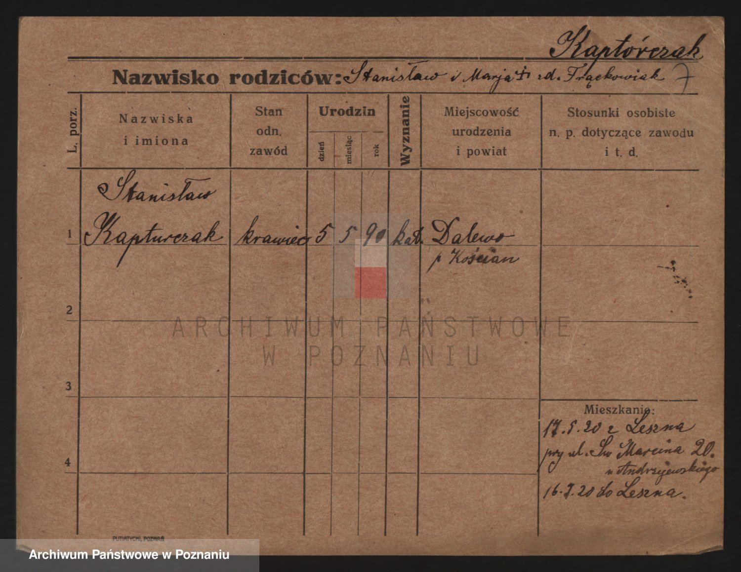 Kapturzak, Stanislaus