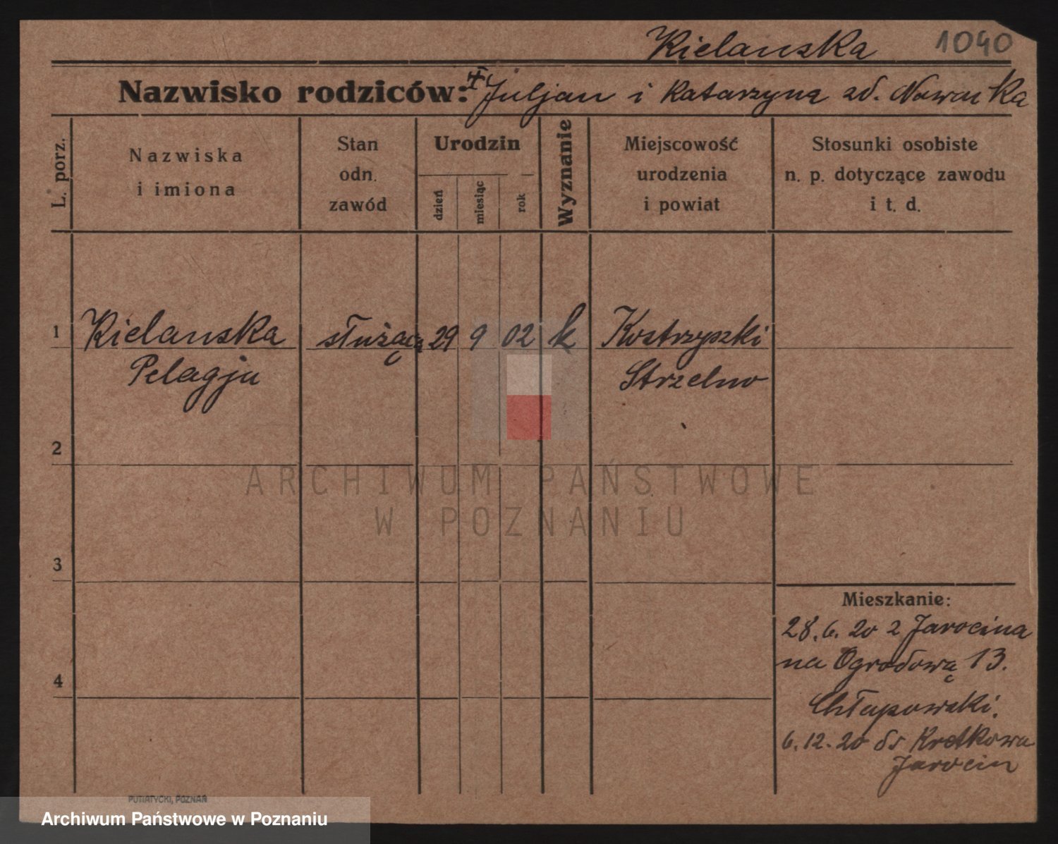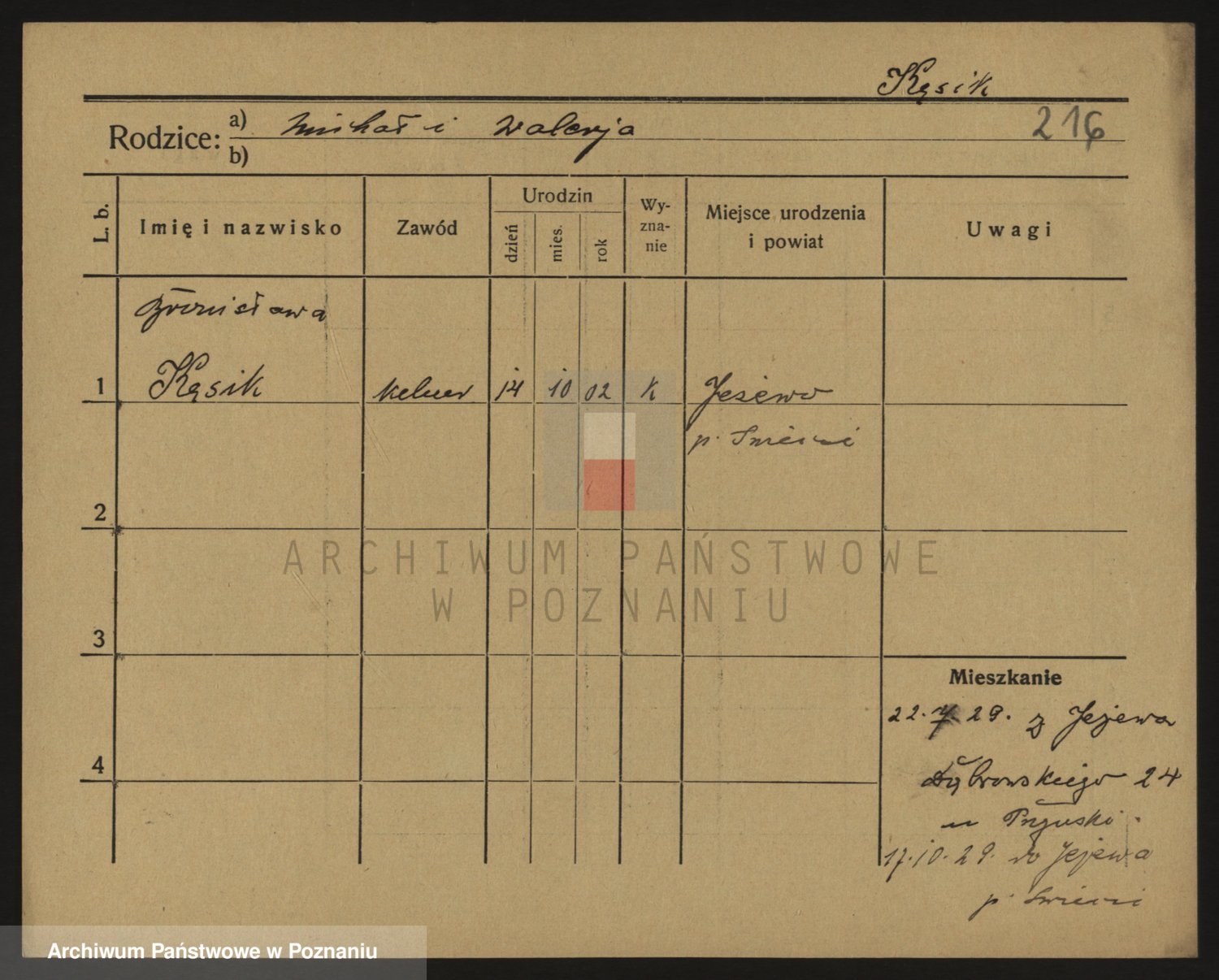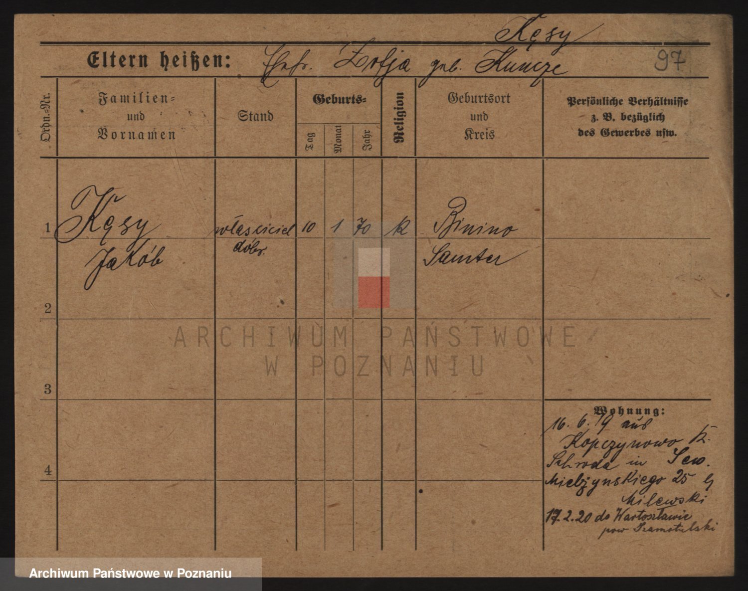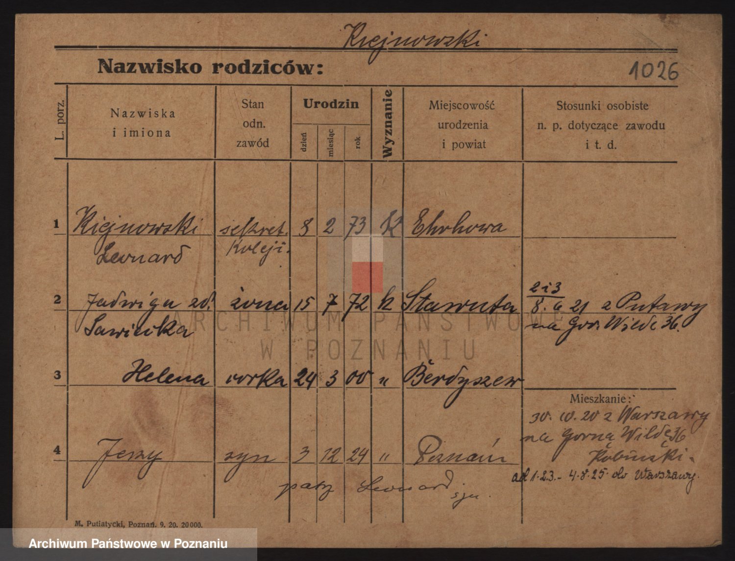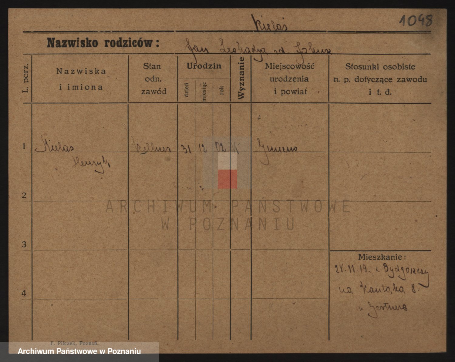 Podgląd karty osobowej dostępny jest po kliknięciu na nazwisko lub ikonkę karty. Można dokonywać powiększenia (ikony na górze) lub przechodzić między kolejnymi skanami (strzałki po bokach).