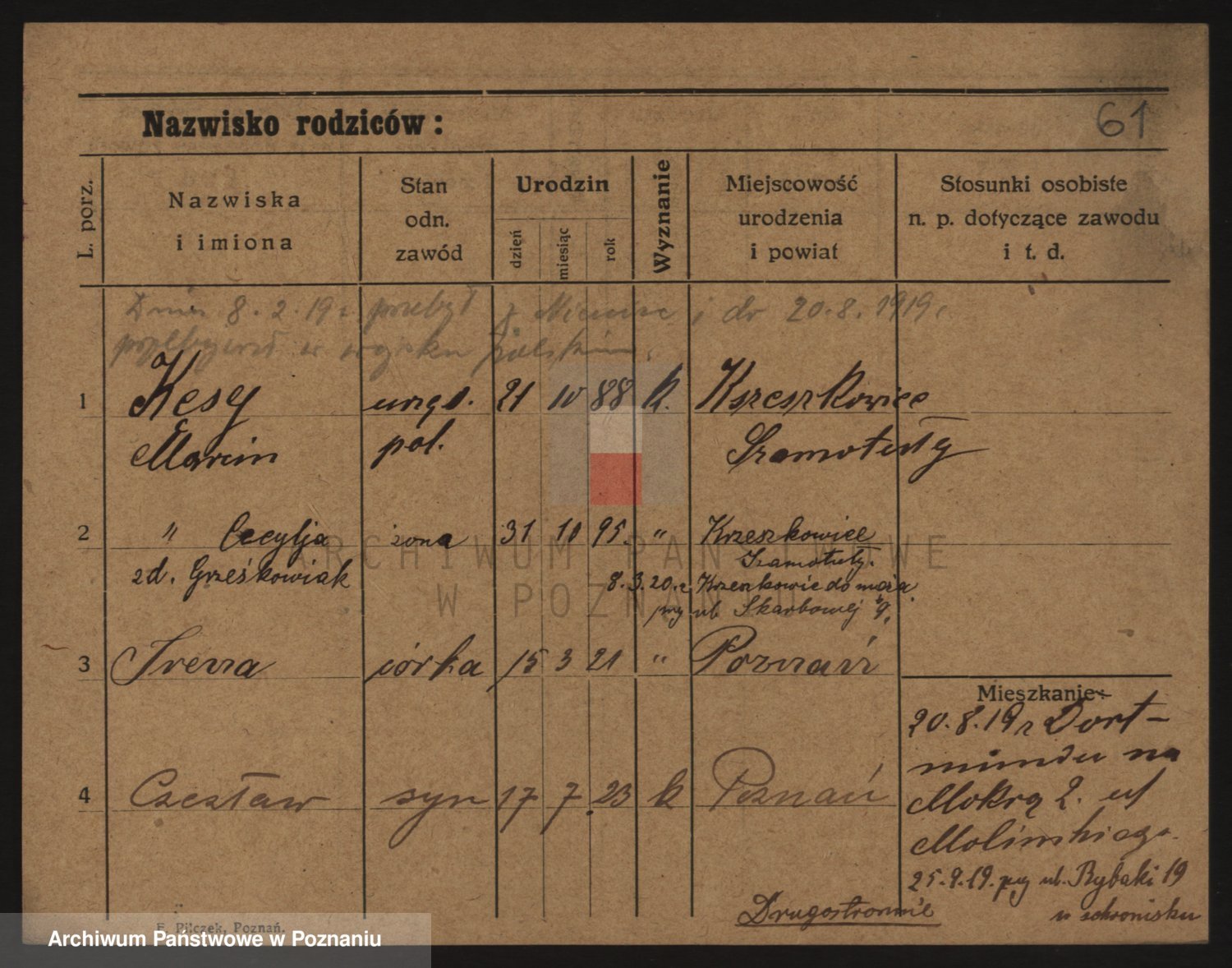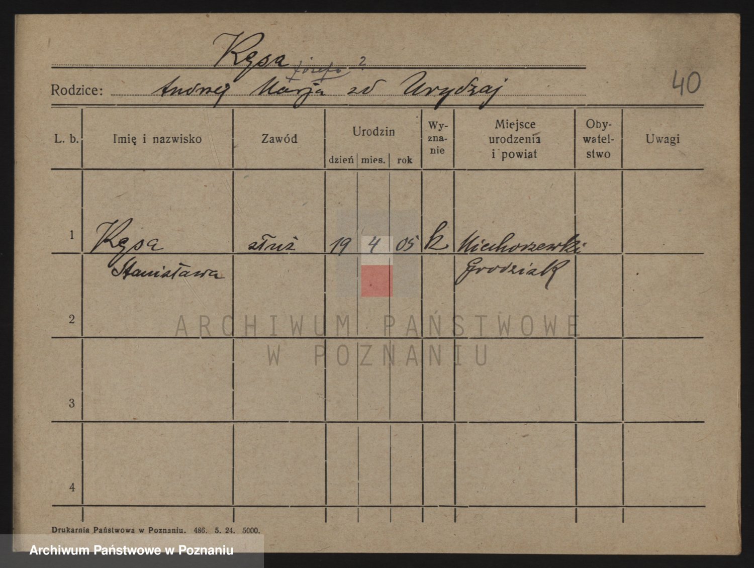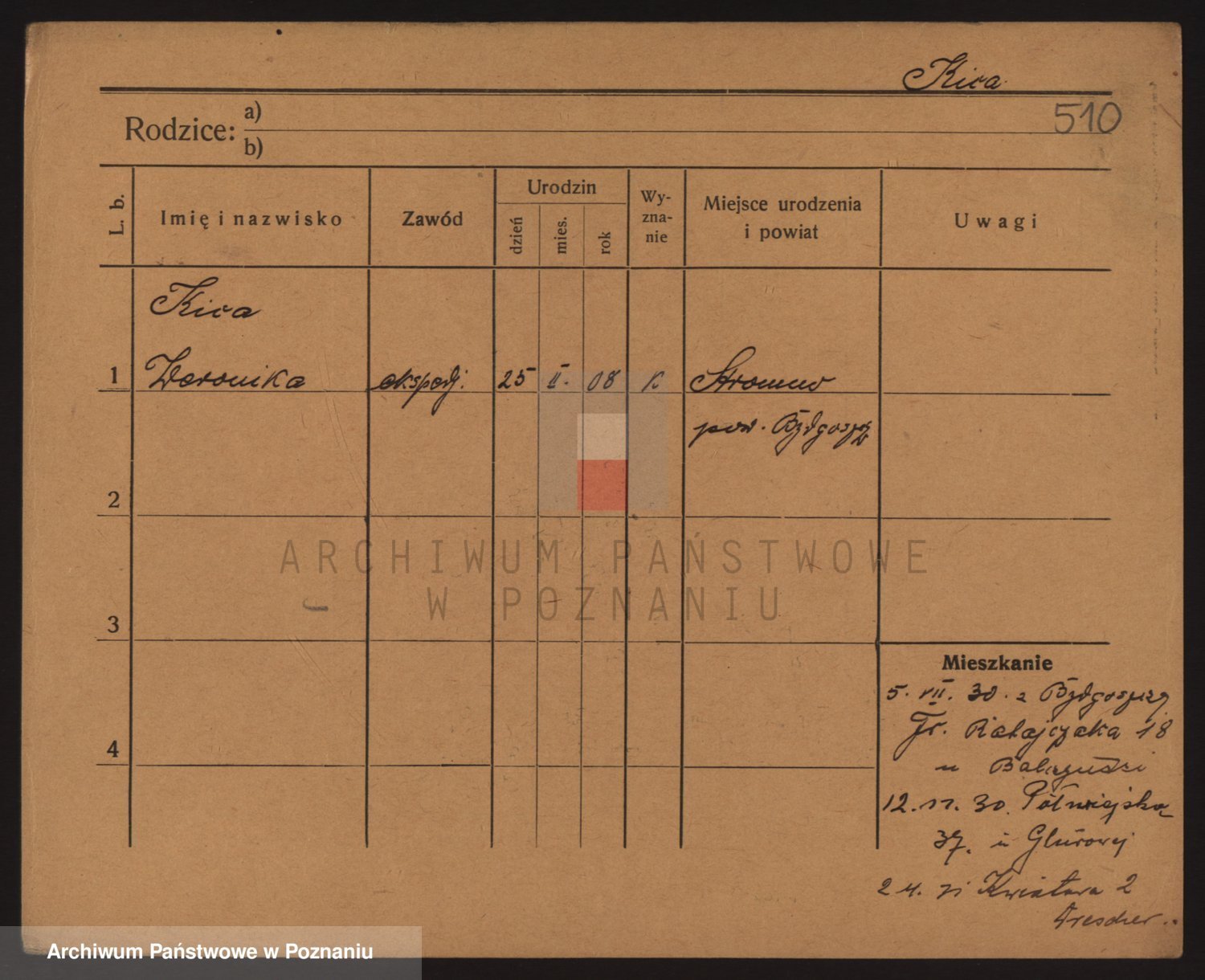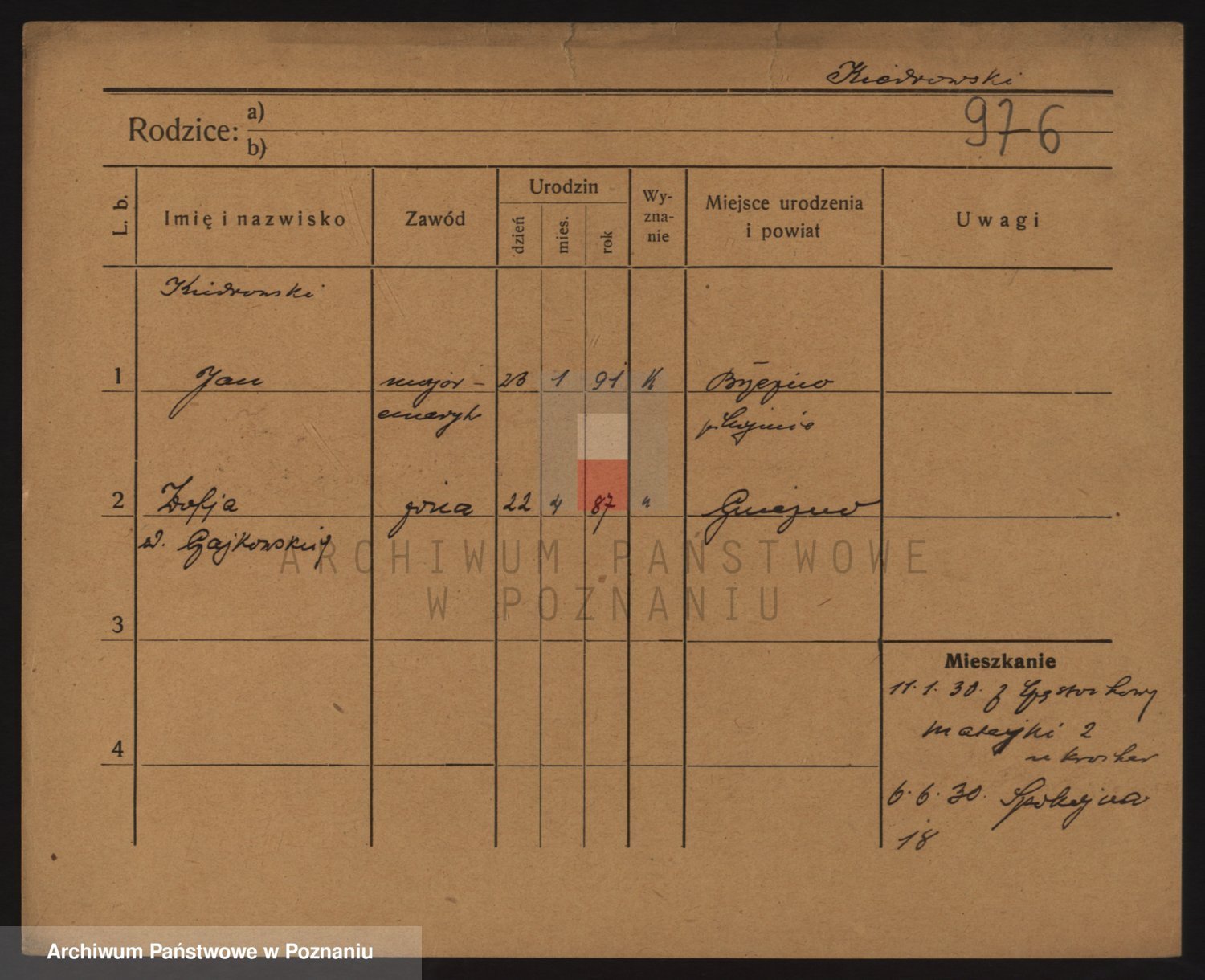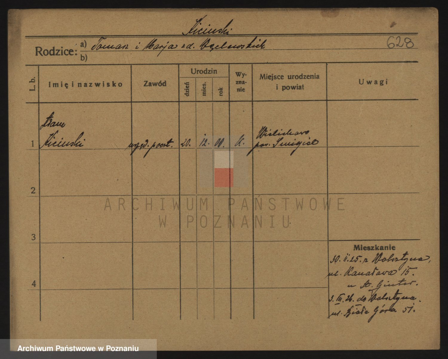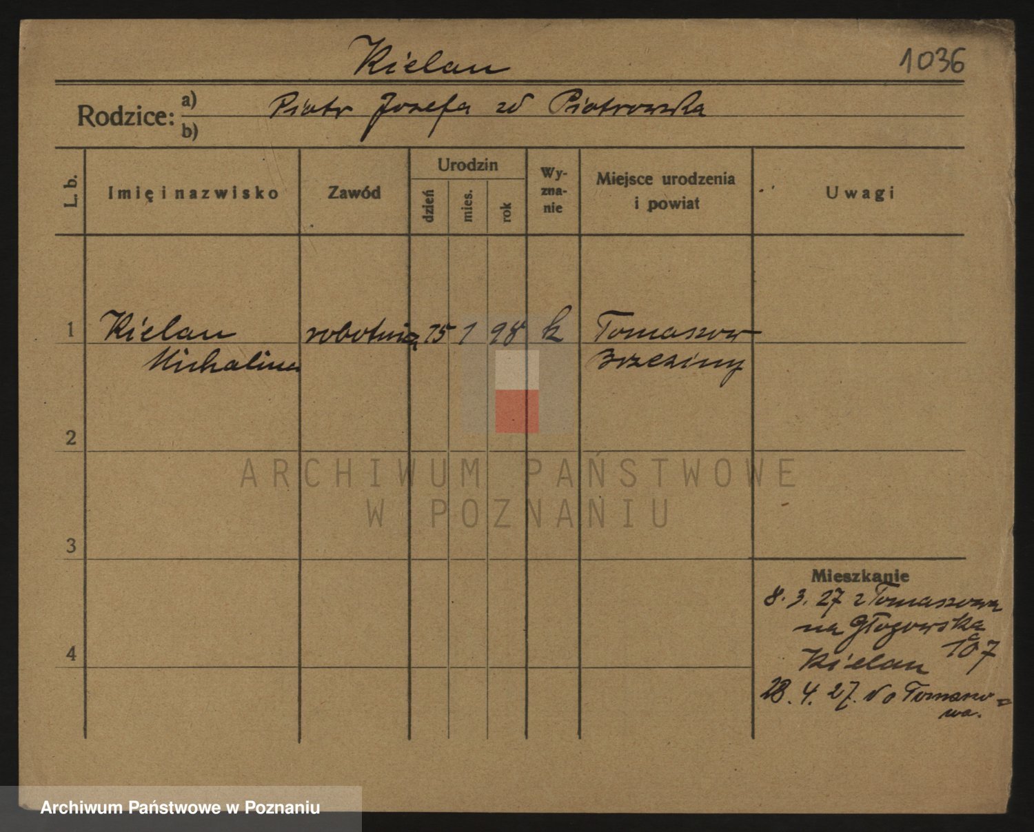 Podgląd karty osobowej dostępny jest po kliknięciu na nazwisko lub ikonkę karty. Można dokonywać powiększenia (ikony na górze) lub przechodzić między kolejnymi skanami (strzałki po bokach).