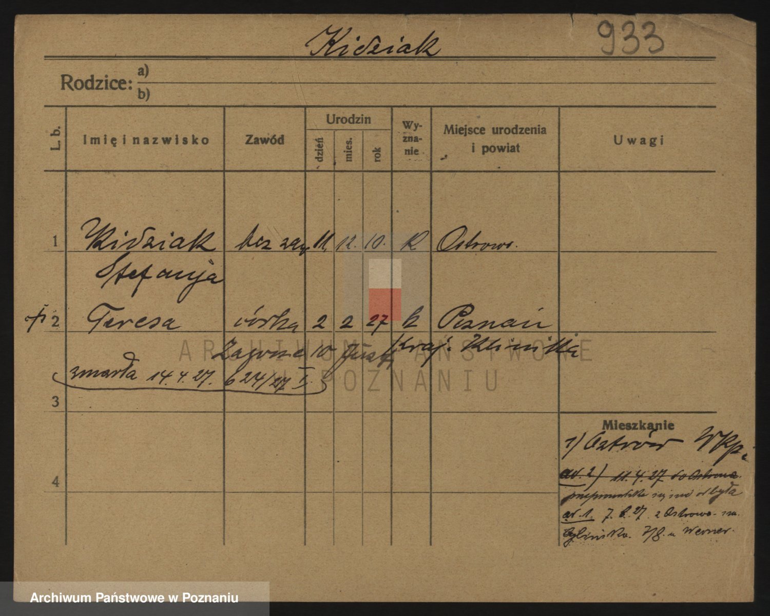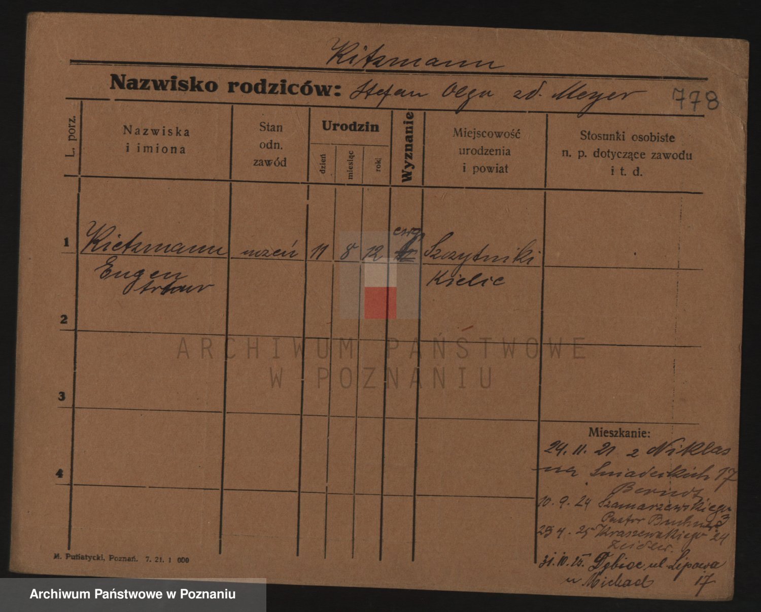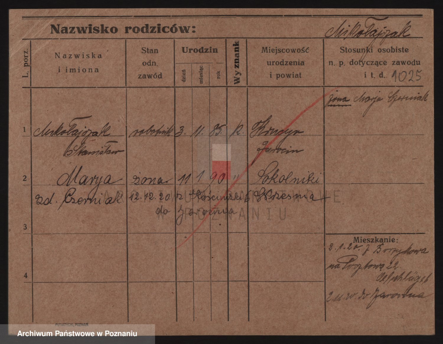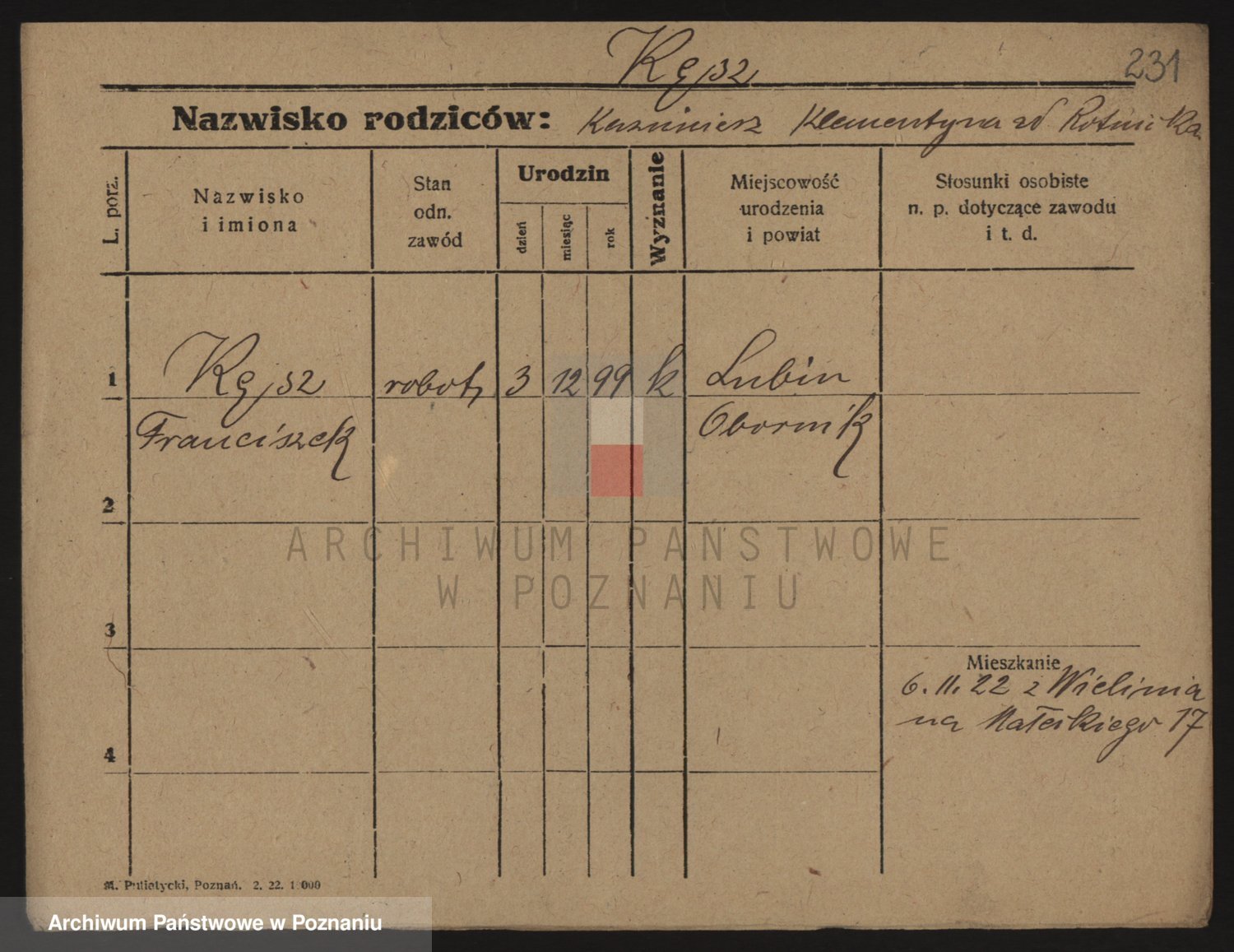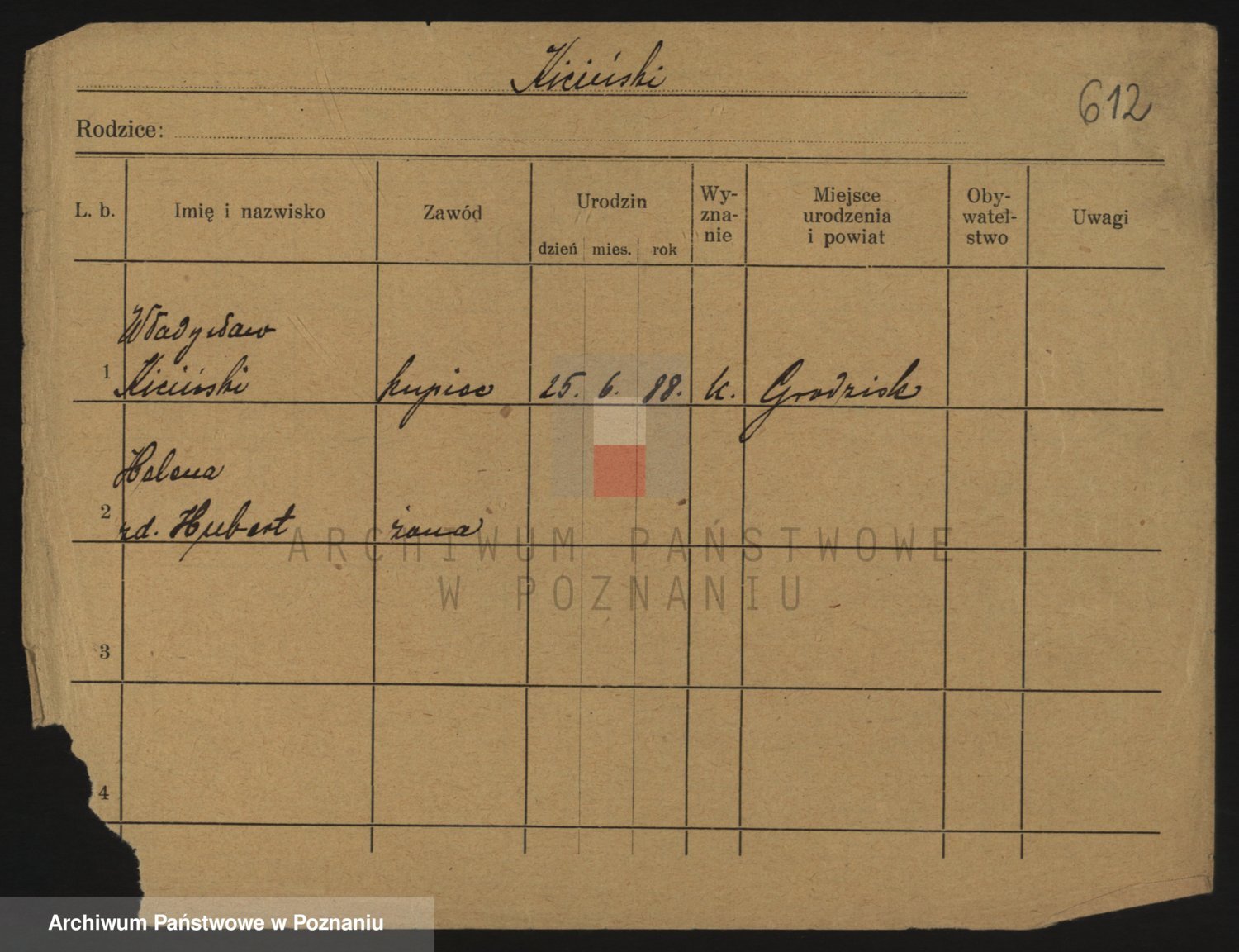 Podgląd karty osobowej dostępny jest po kliknięciu na nazwisko lub ikonkę karty. Można dokonywać powiększenia (ikony na górze) lub przechodzić między kolejnymi skanami (strzałki po bokach).