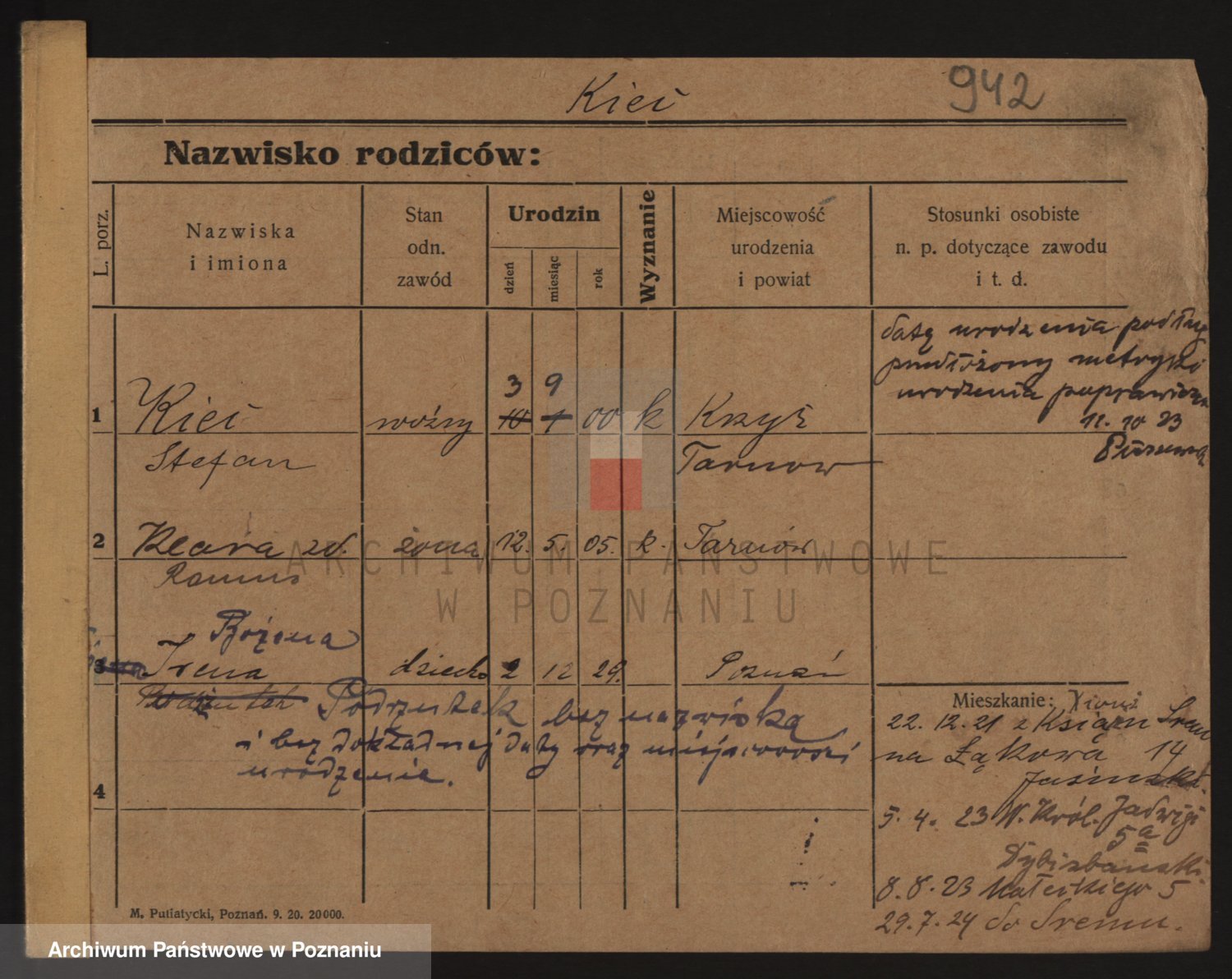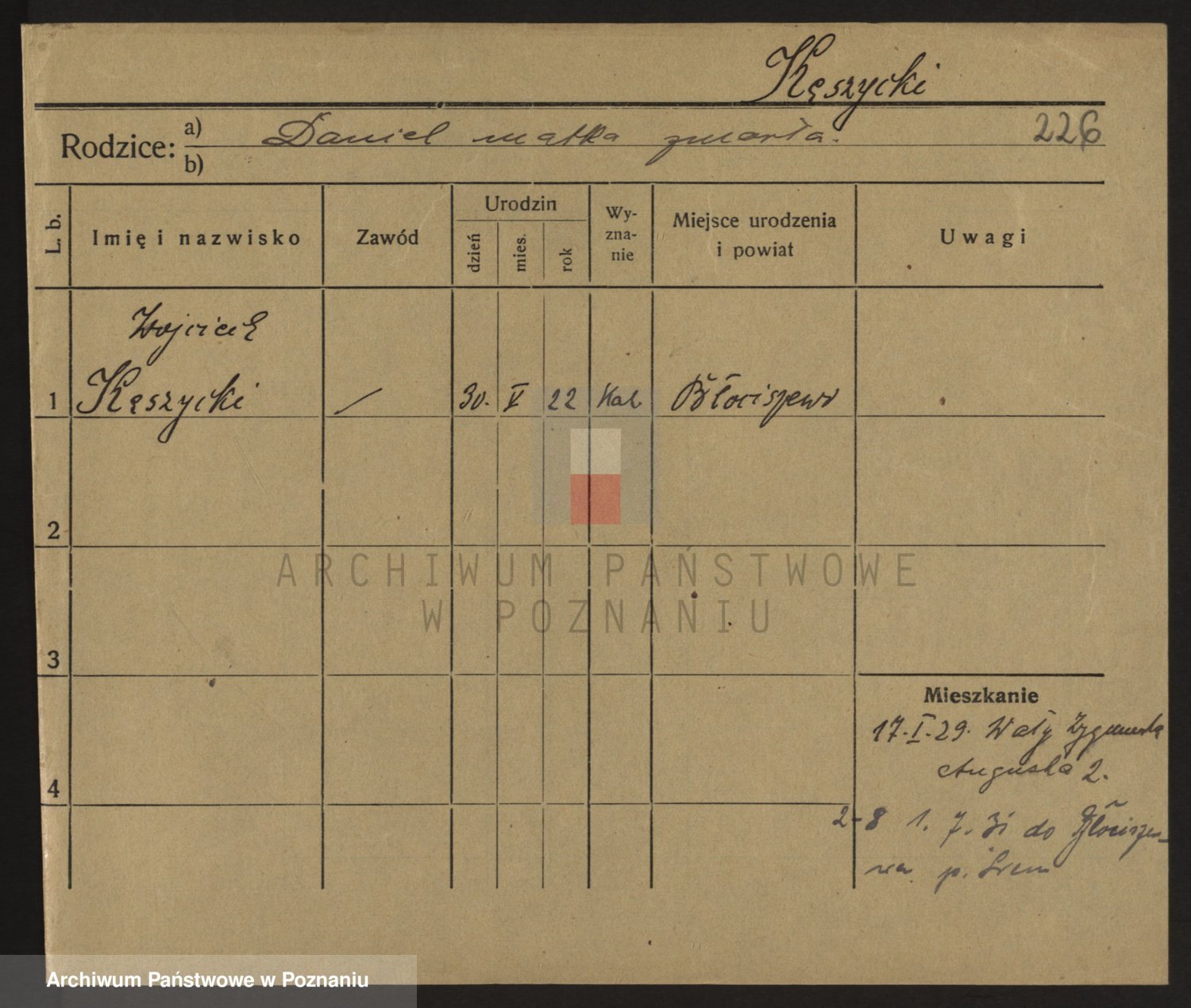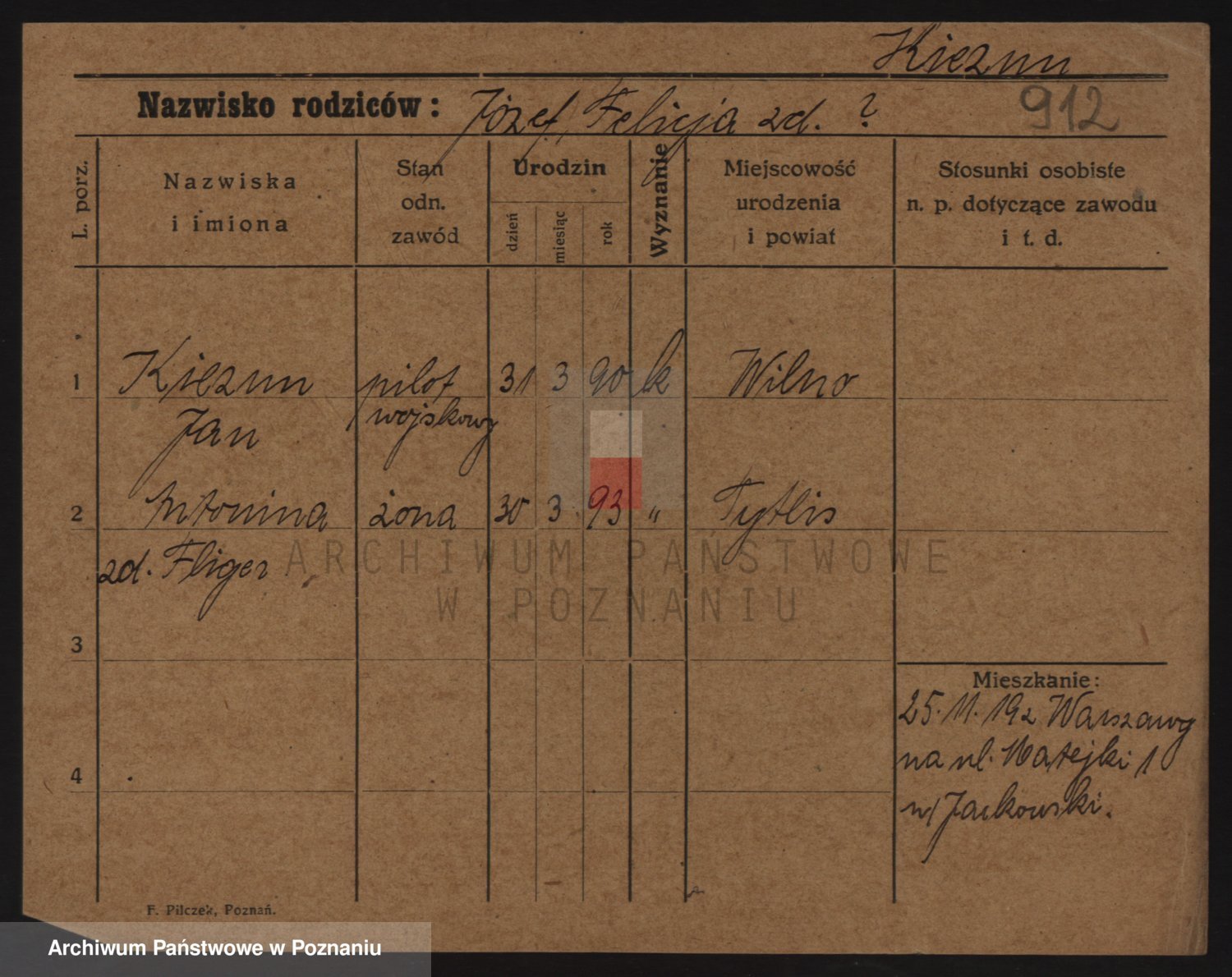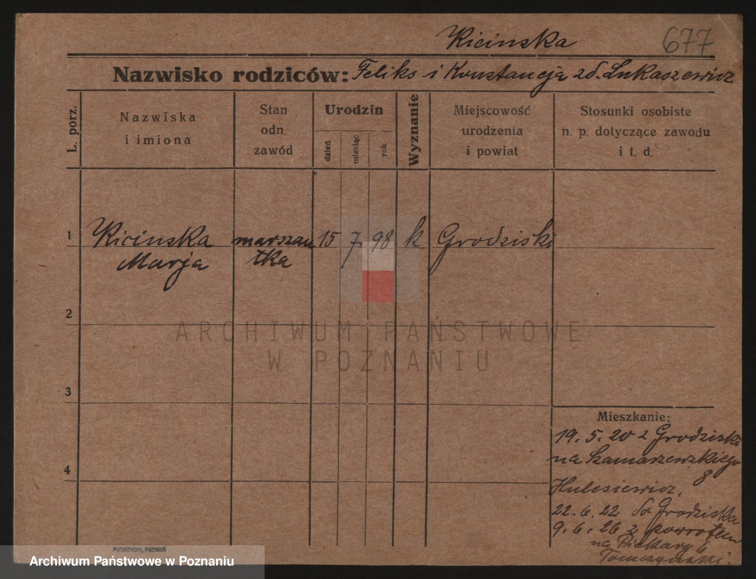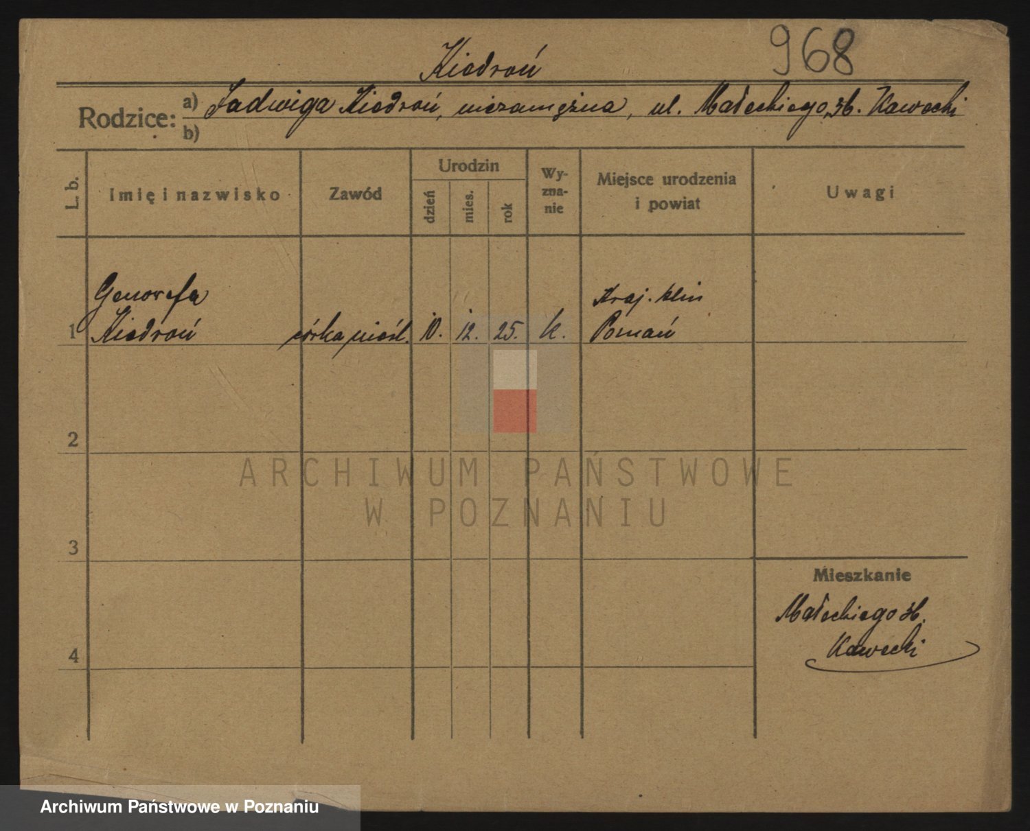 Podgląd karty osobowej dostępny jest po kliknięciu na nazwisko lub ikonkę karty. Można dokonywać powiększenia (ikony na górze) lub przechodzić między kolejnymi skanami (strzałki po bokach).
