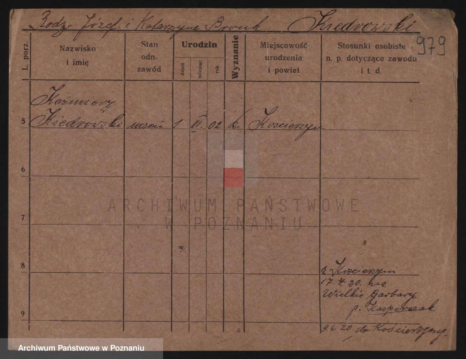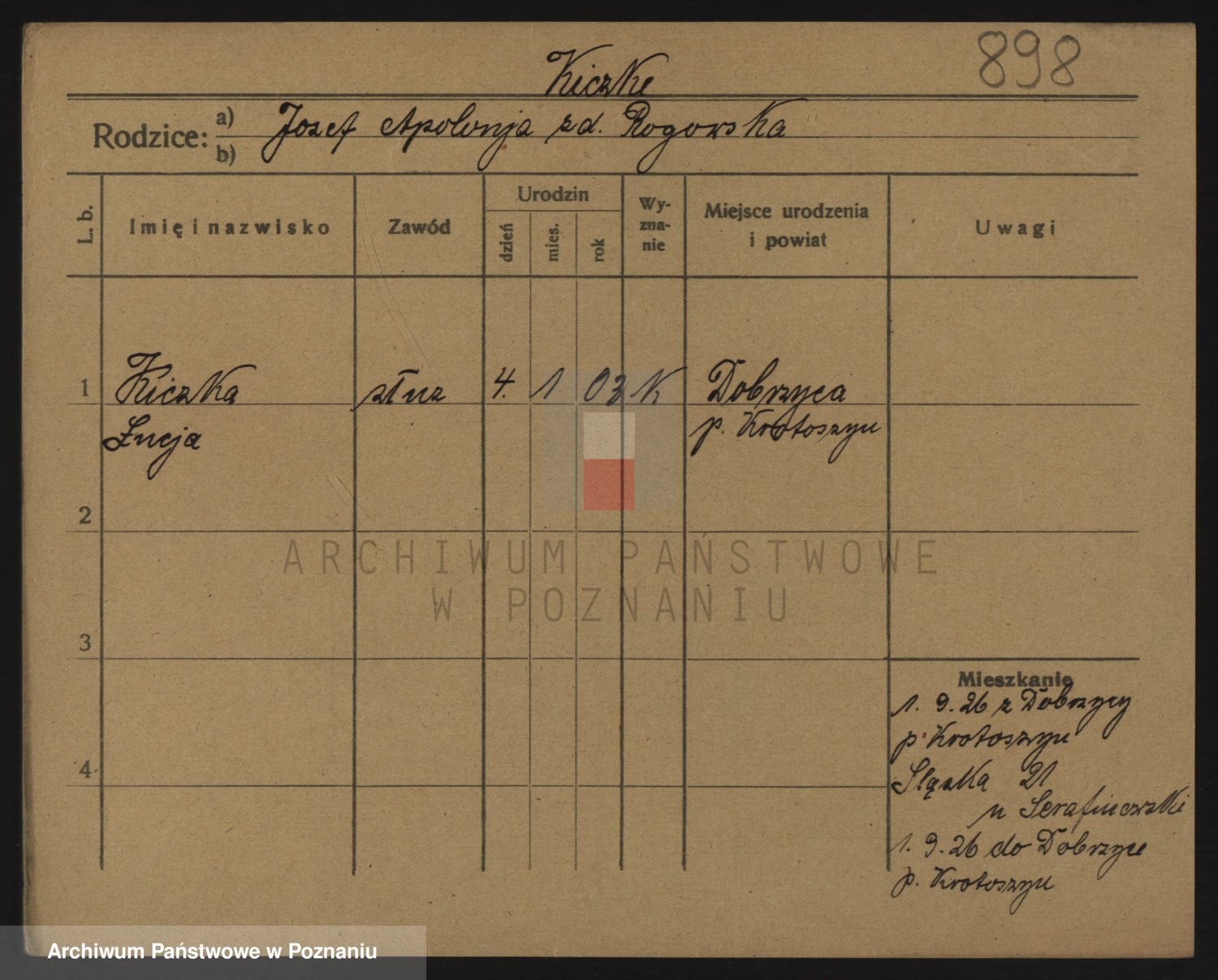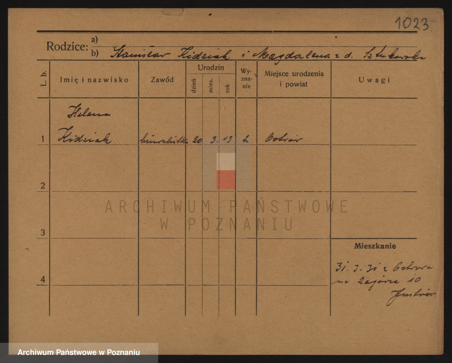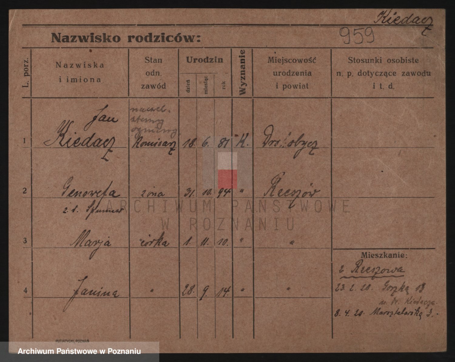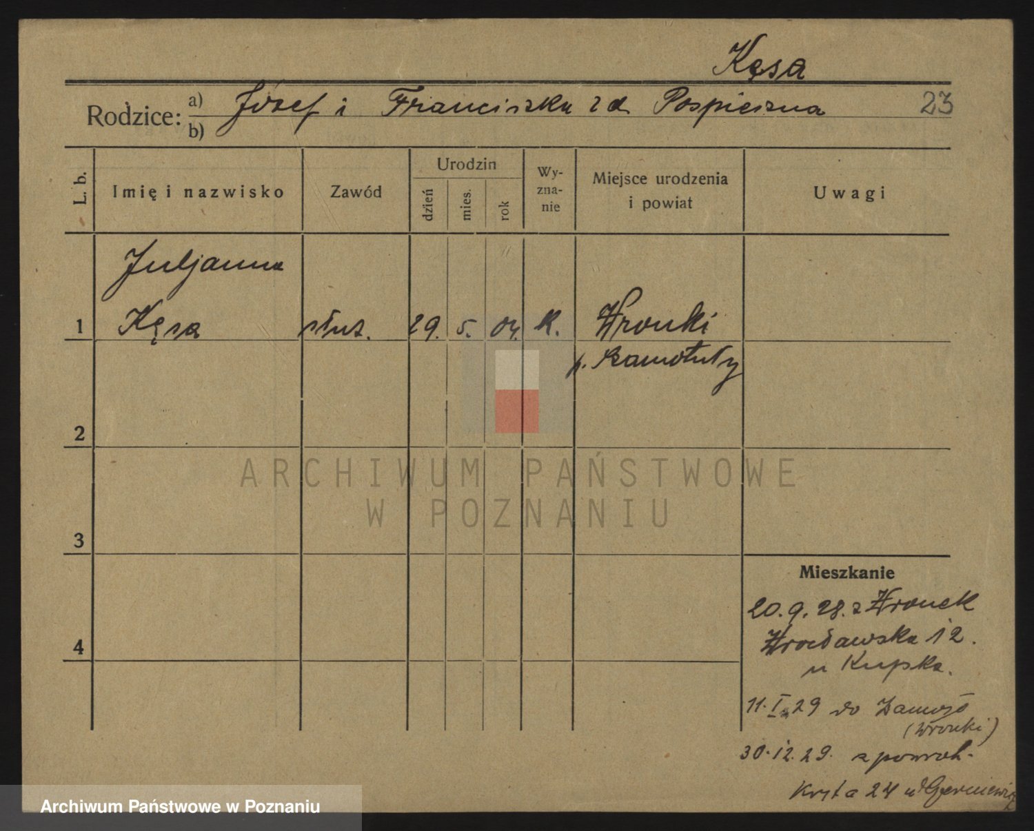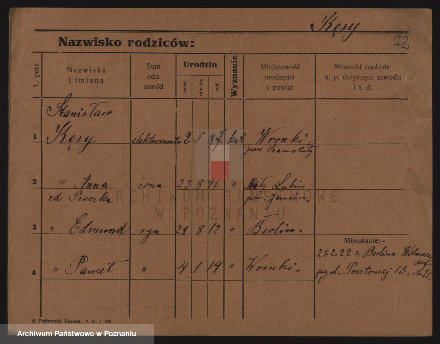 Podgląd karty osobowej dostępny jest po kliknięciu na nazwisko lub ikonkę karty. Można dokonywać powiększenia (ikony na górze) lub przechodzić między kolejnymi skanami (strzałki po bokach).