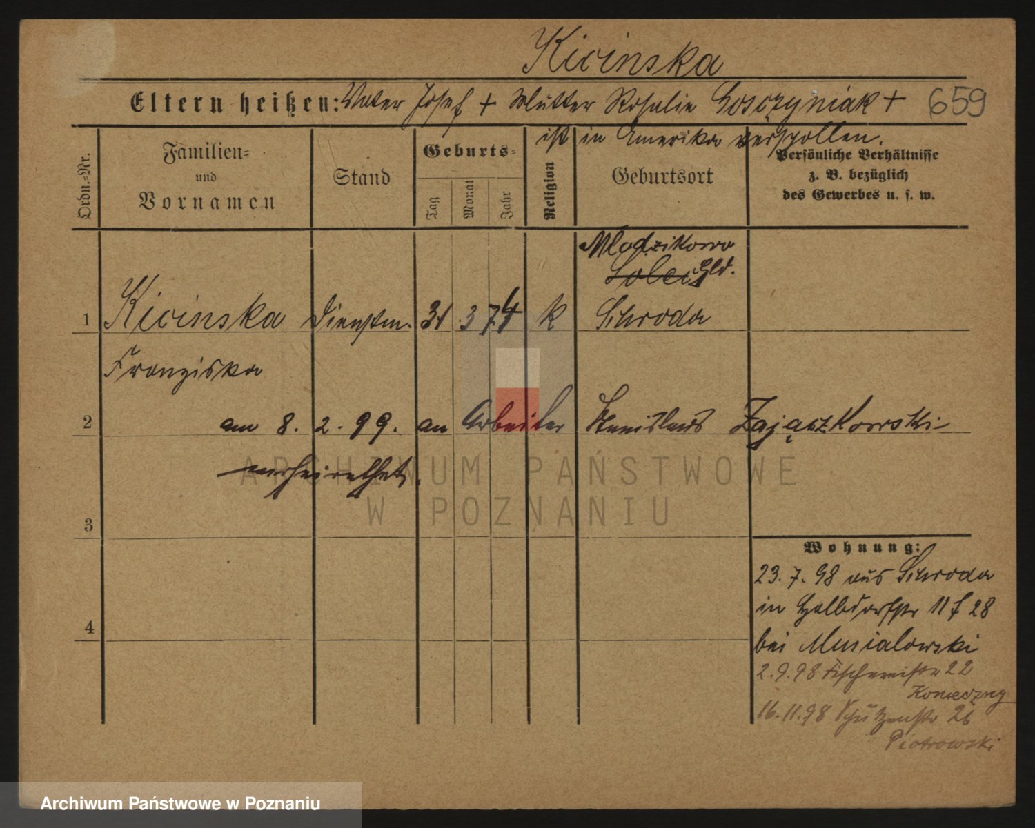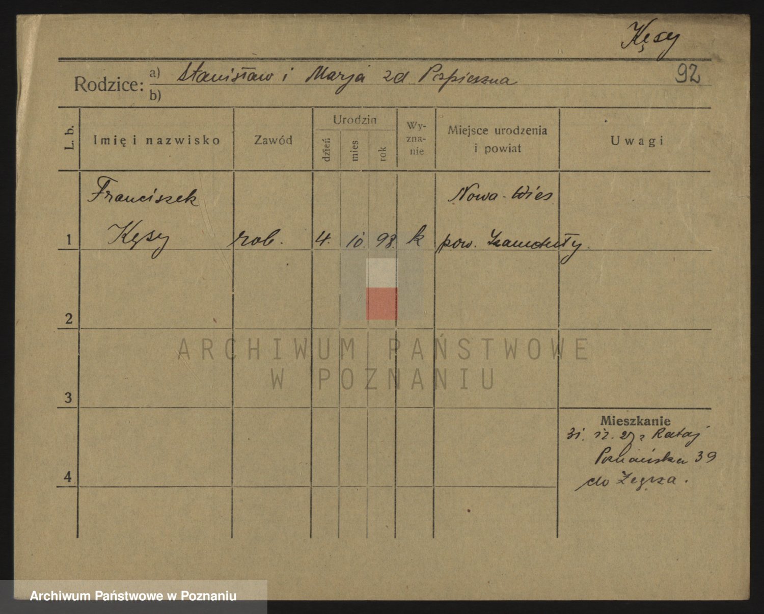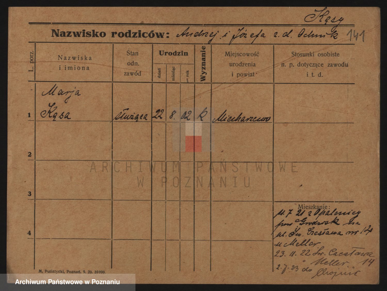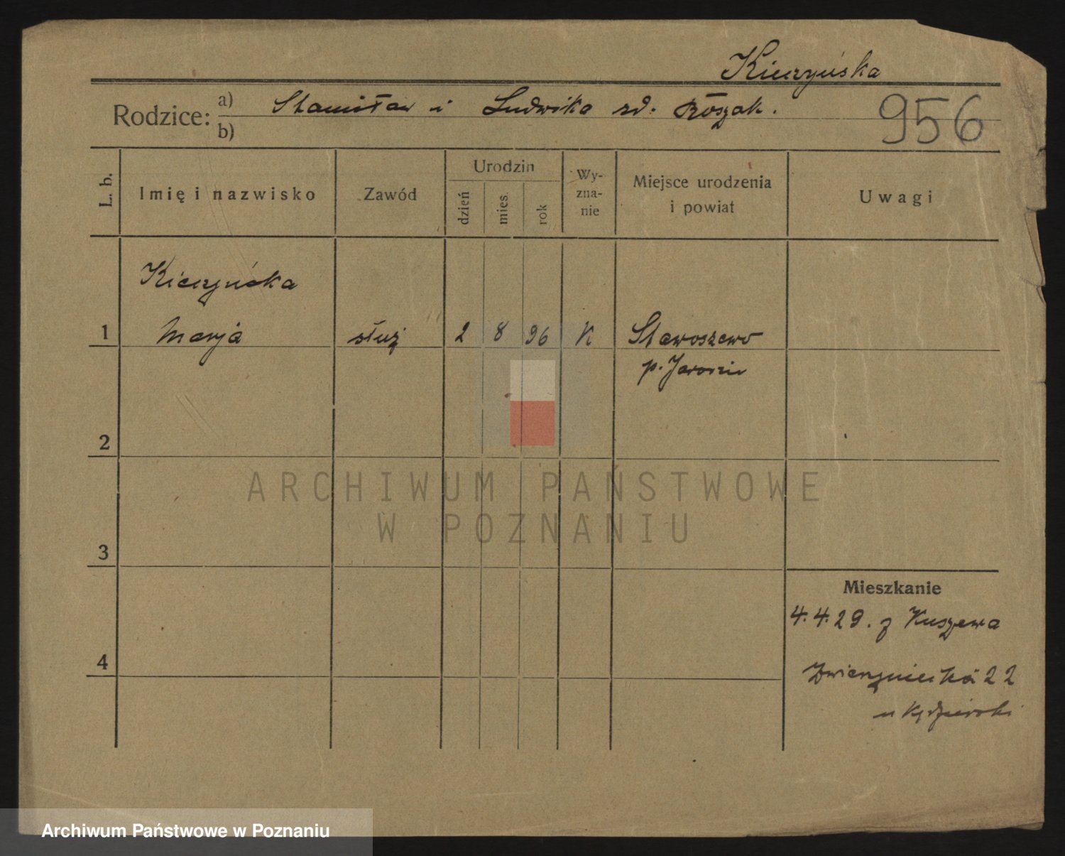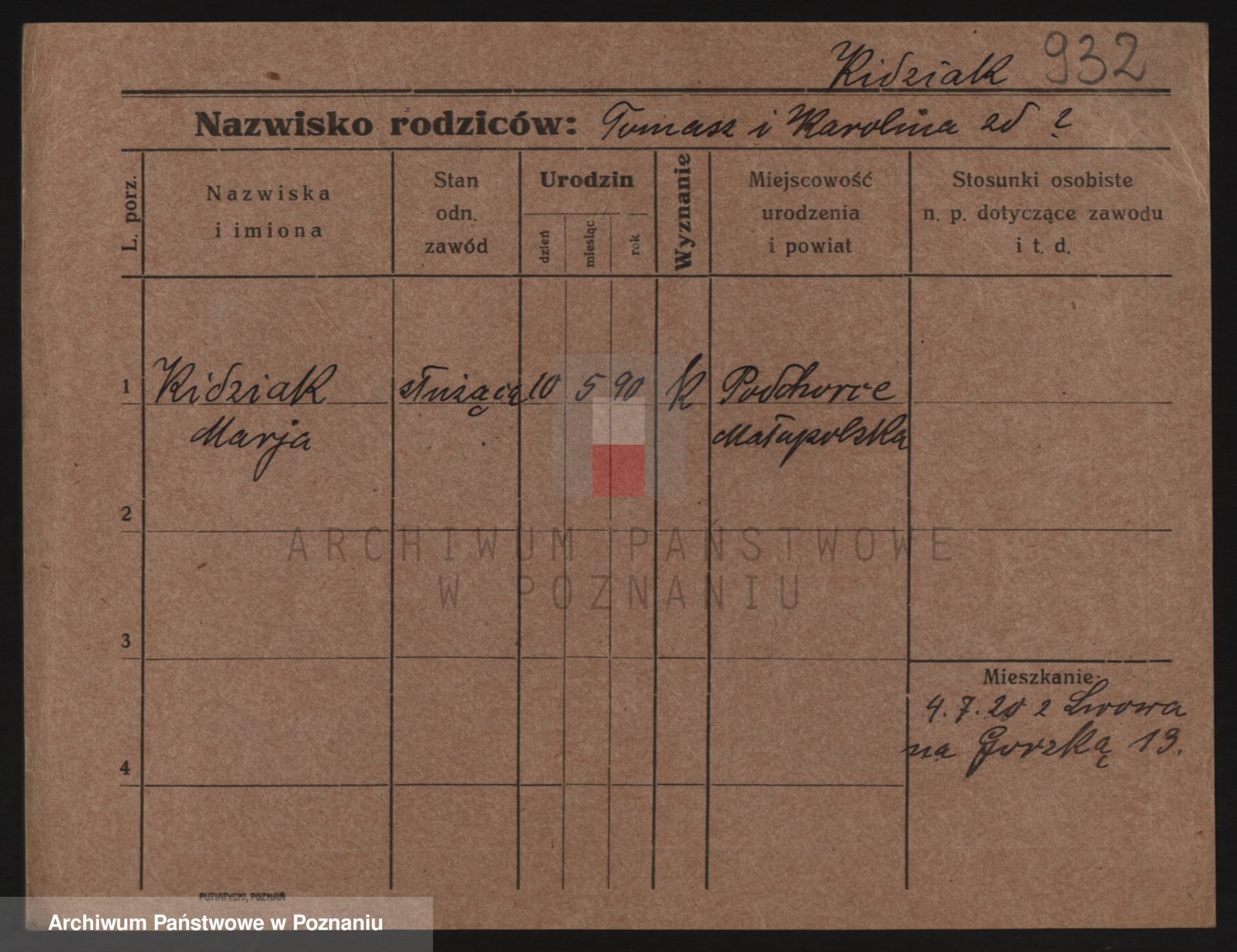 Podgląd karty osobowej dostępny jest po kliknięciu na nazwisko lub ikonkę karty. Można dokonywać powiększenia (ikony na górze) lub przechodzić między kolejnymi skanami (strzałki po bokach).
