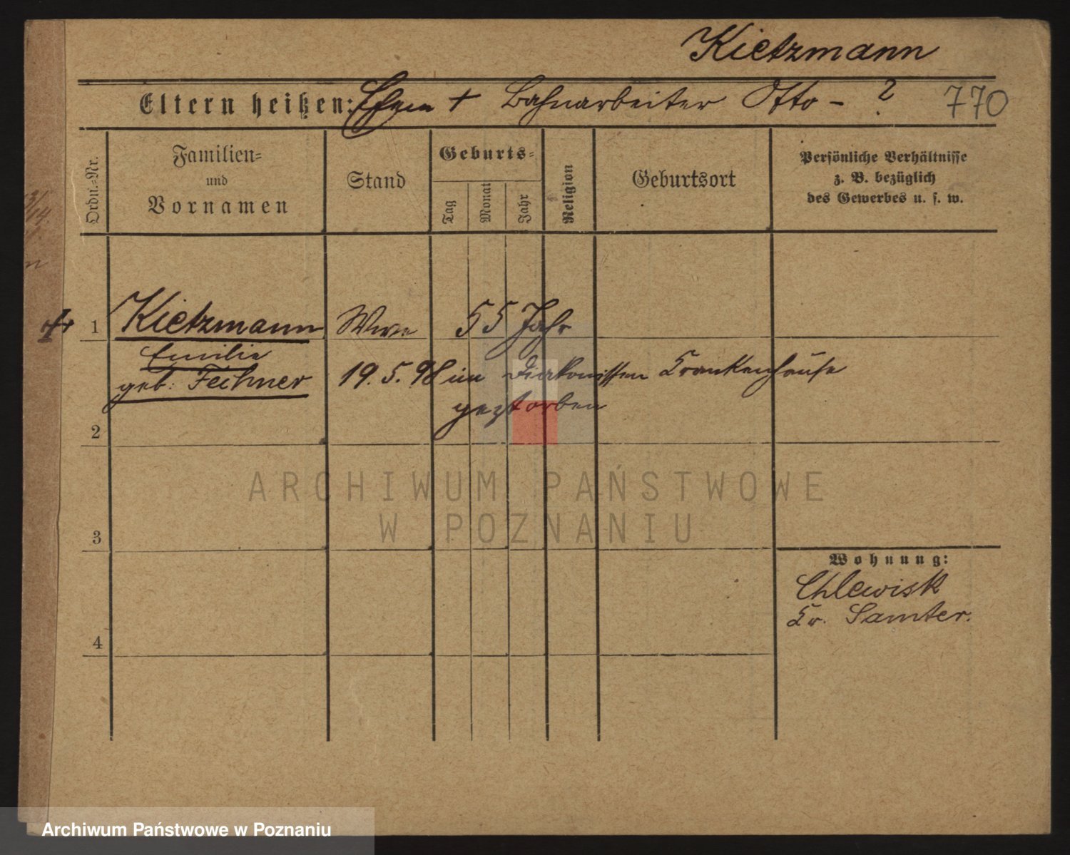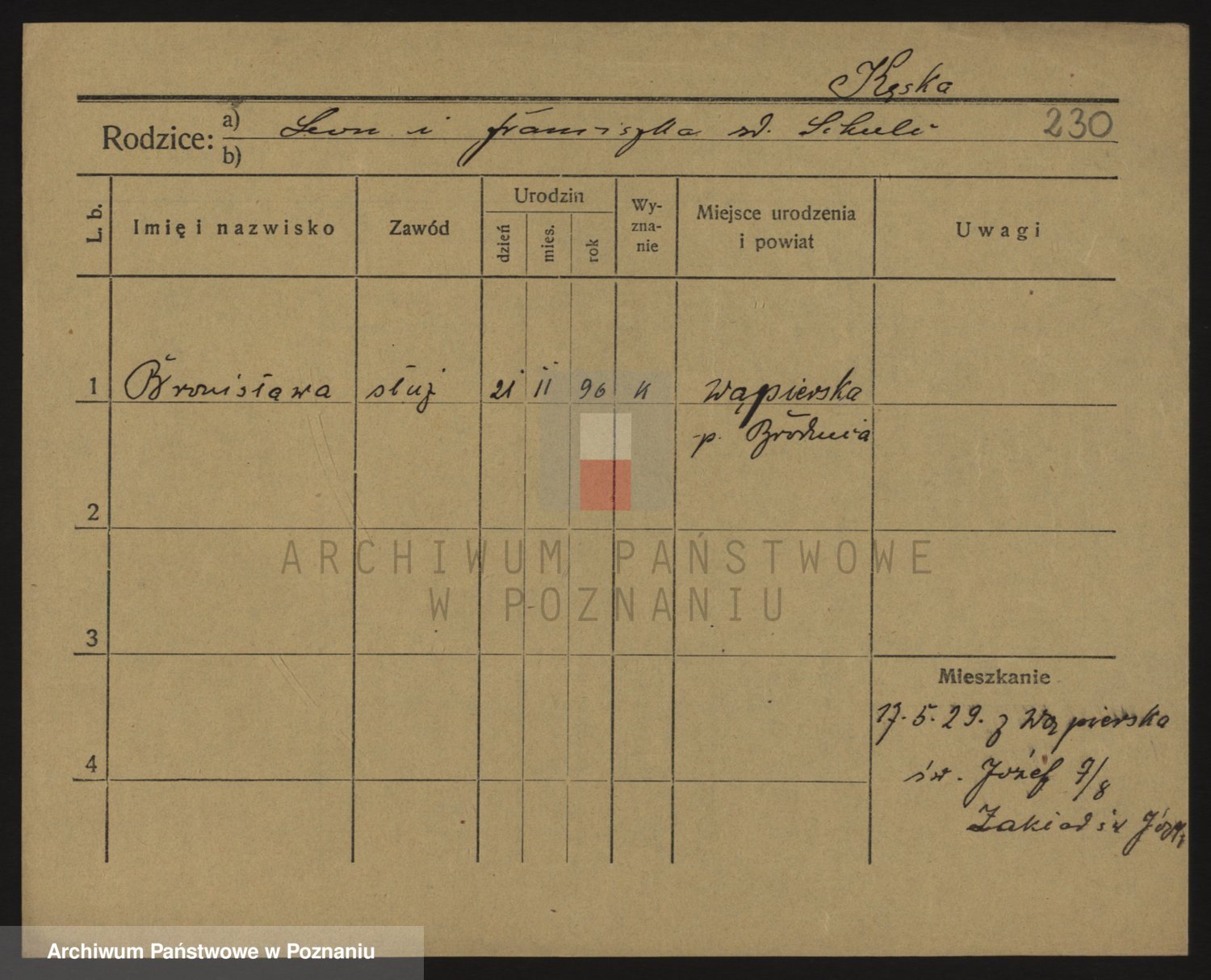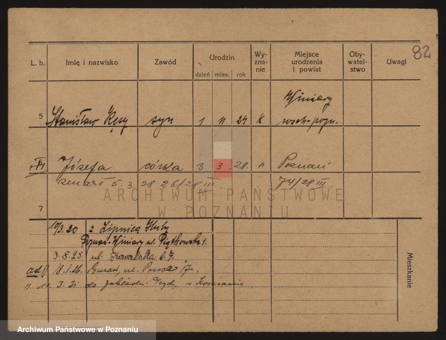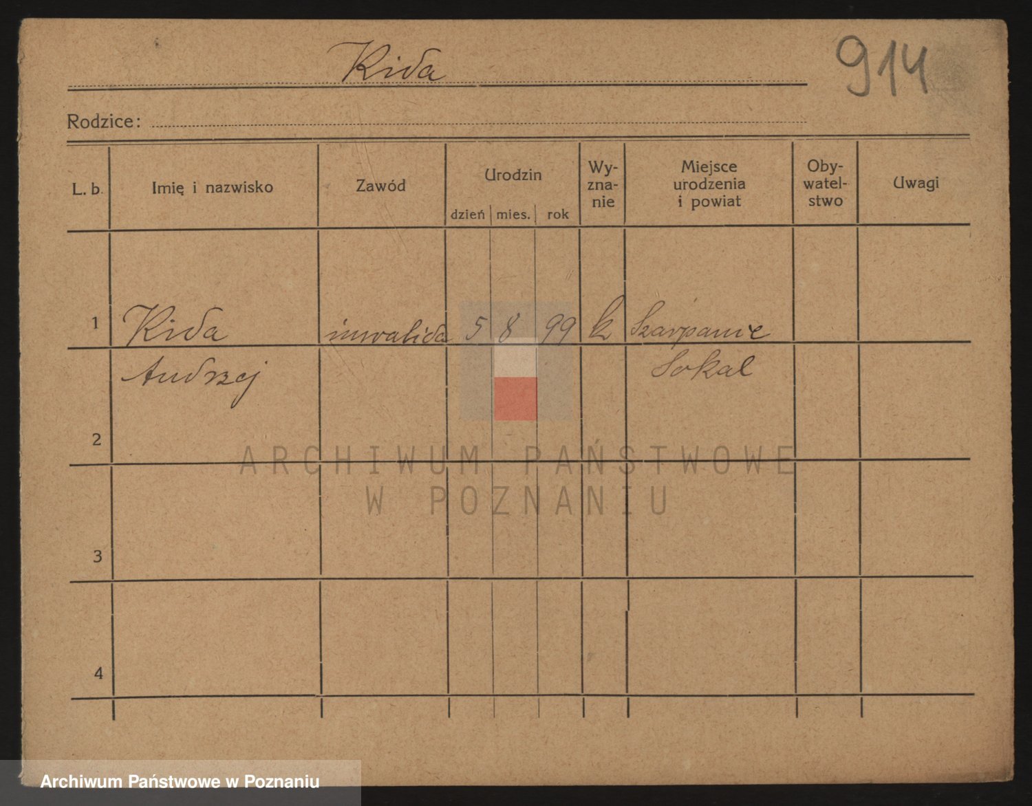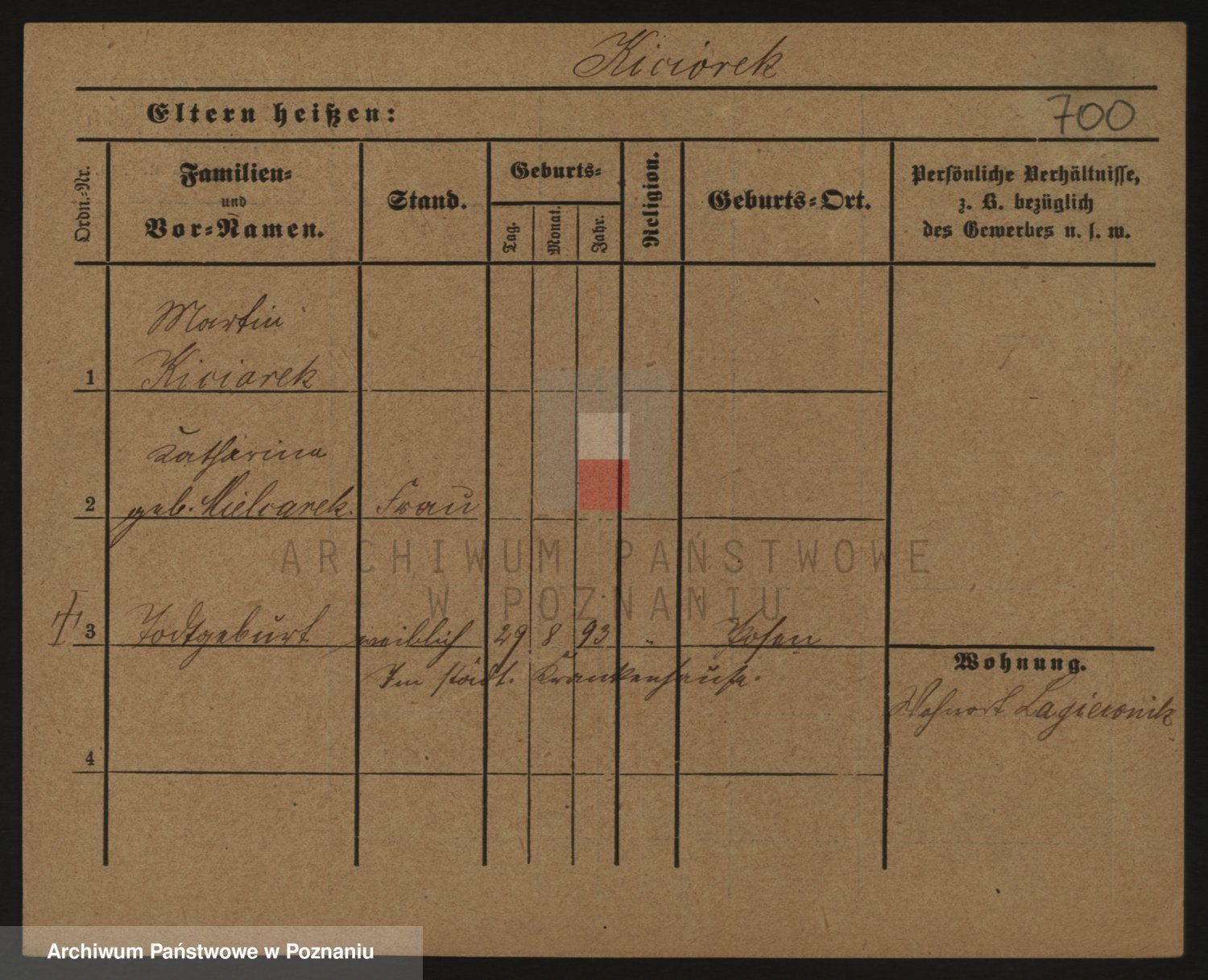 Podgląd karty osobowej dostępny jest po kliknięciu na nazwisko lub ikonkę karty. Można dokonywać powiększenia (ikony na górze) lub przechodzić między kolejnymi skanami (strzałki po bokach).