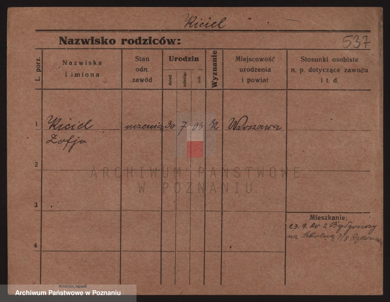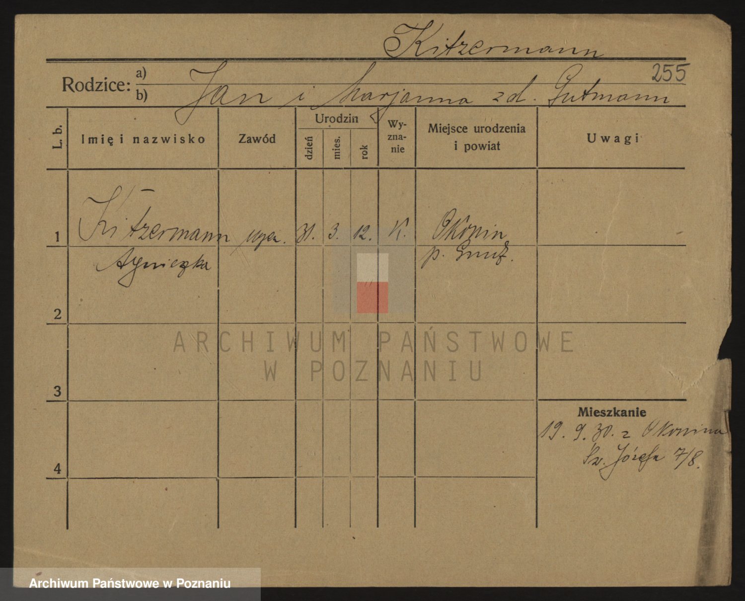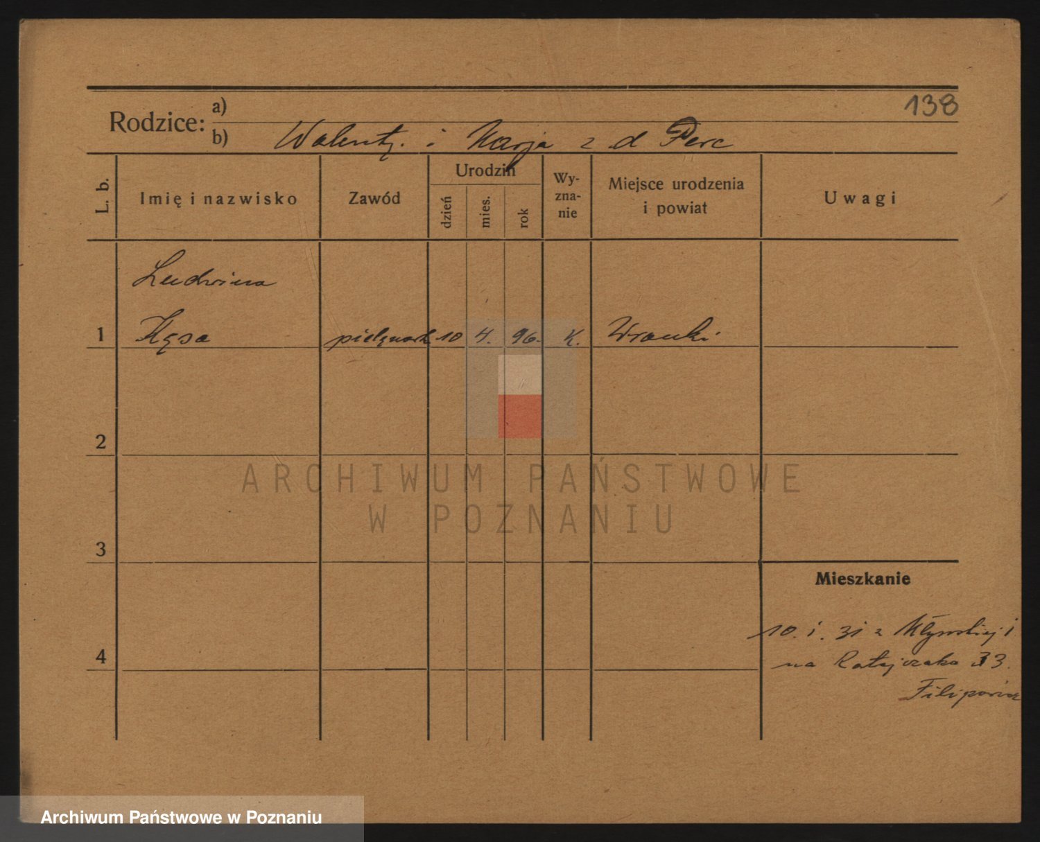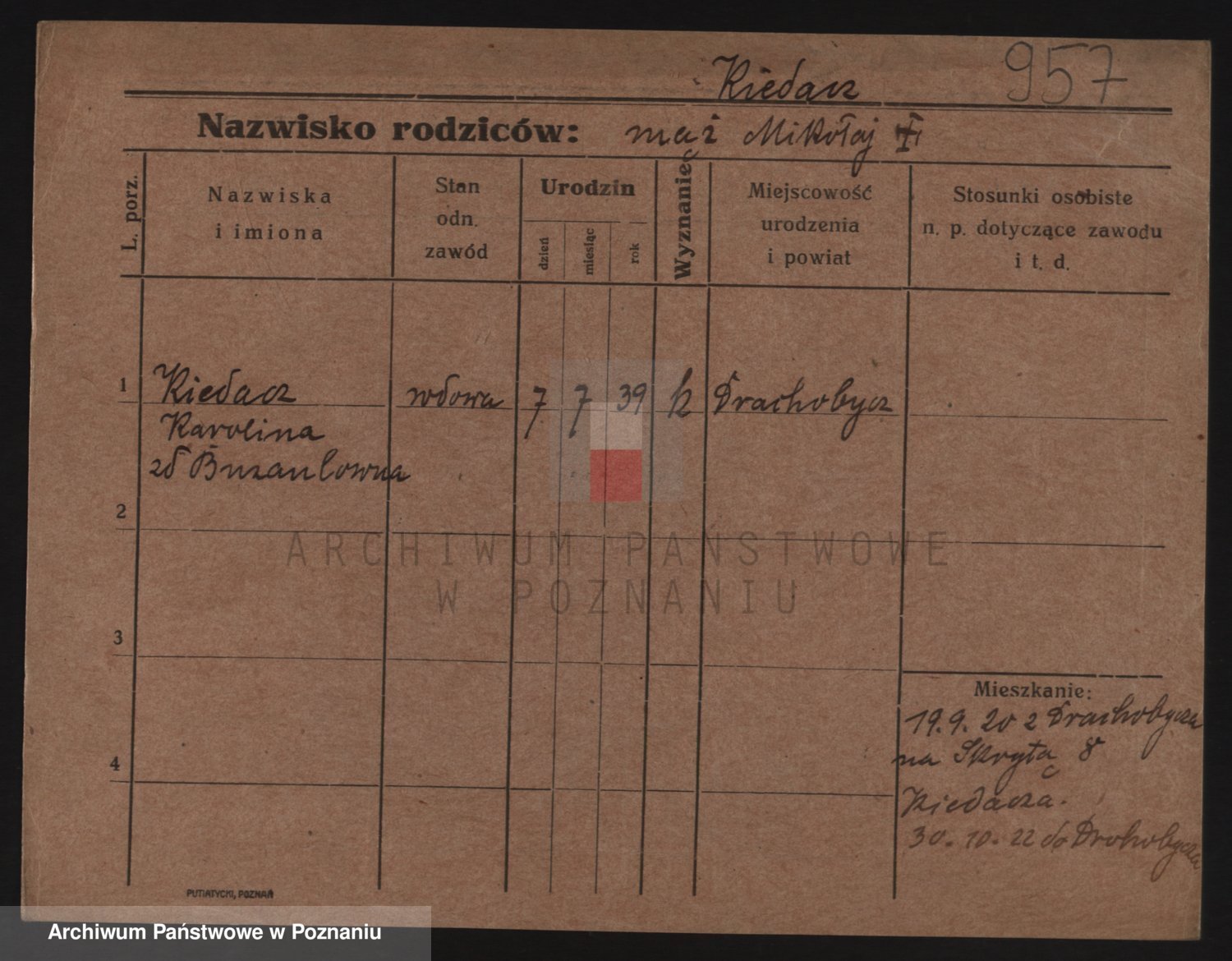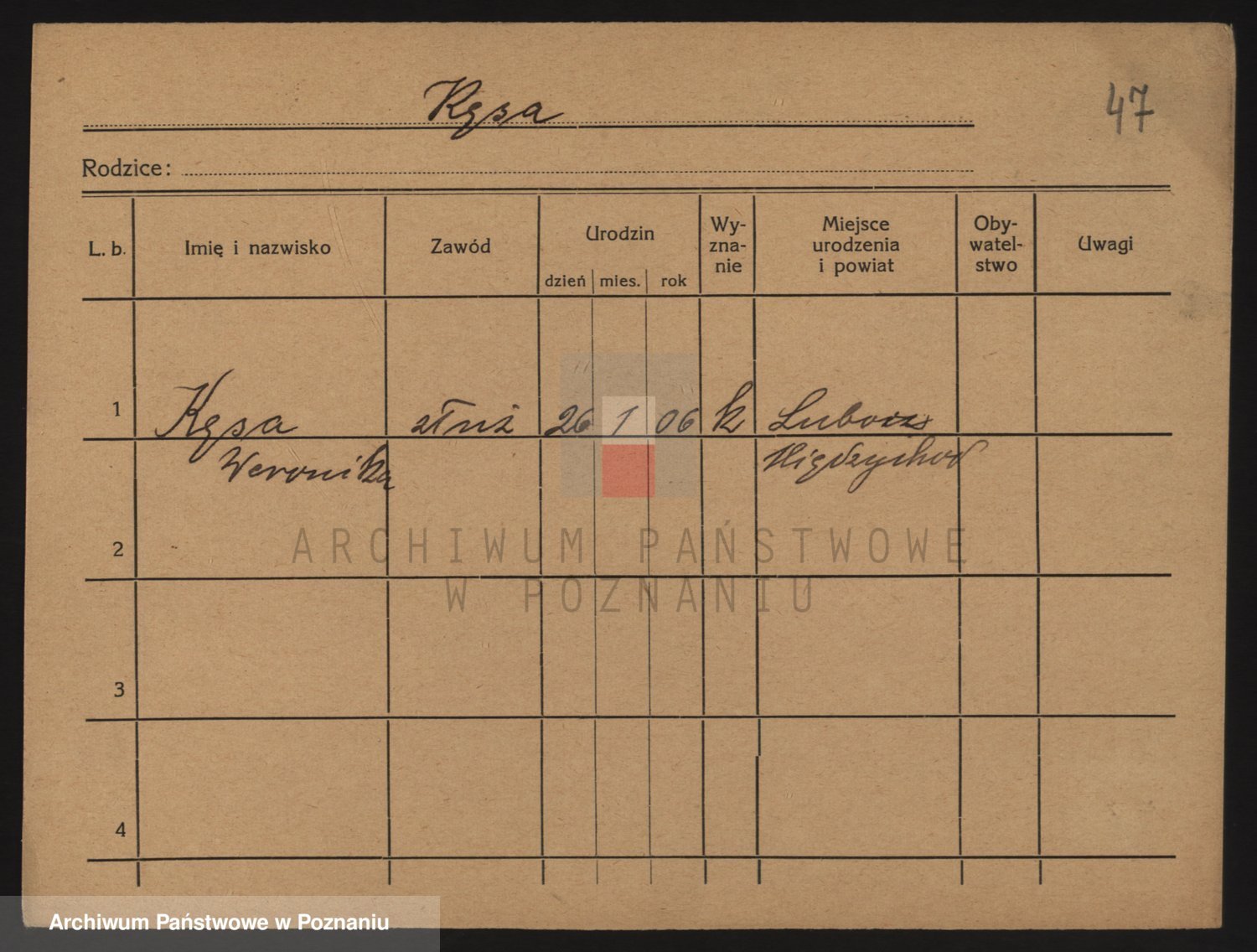Podgląd karty osobowej dostępny jest po kliknięciu na nazwisko lub ikonkę karty. Można dokonywać powiększenia (ikony na górze) lub przechodzić między kolejnymi skanami (strzałki po bokach).