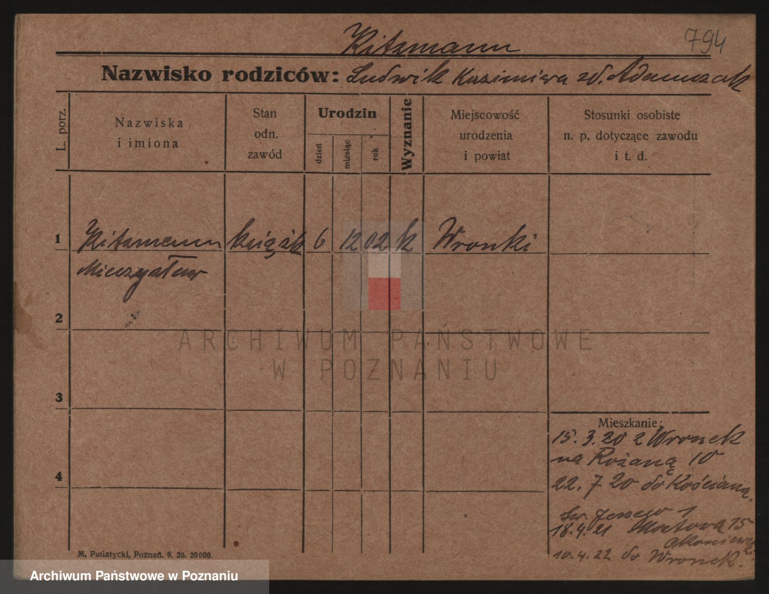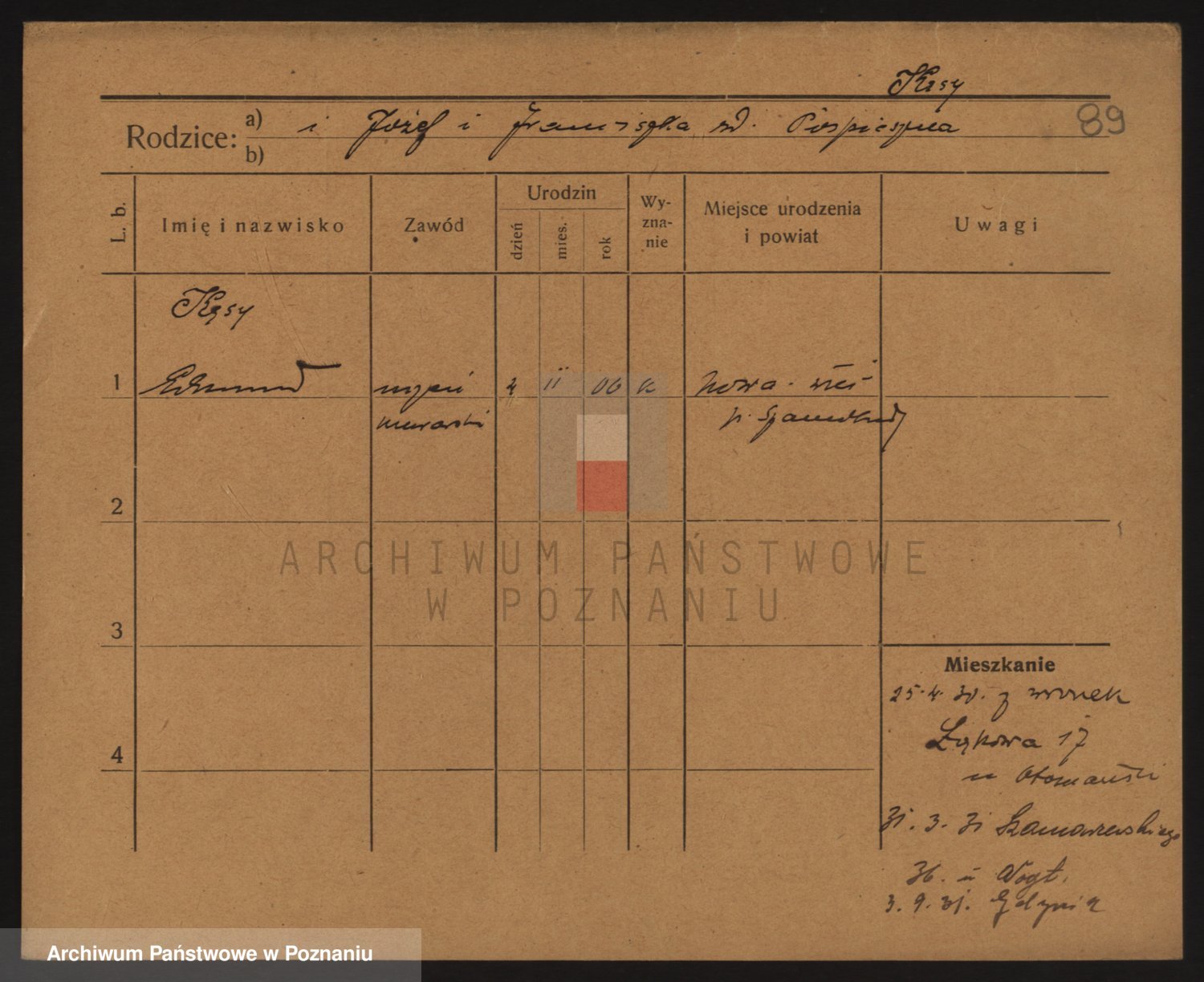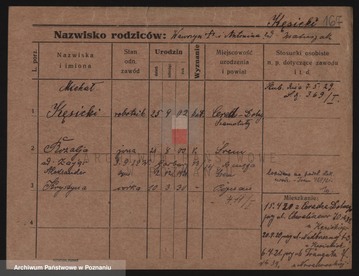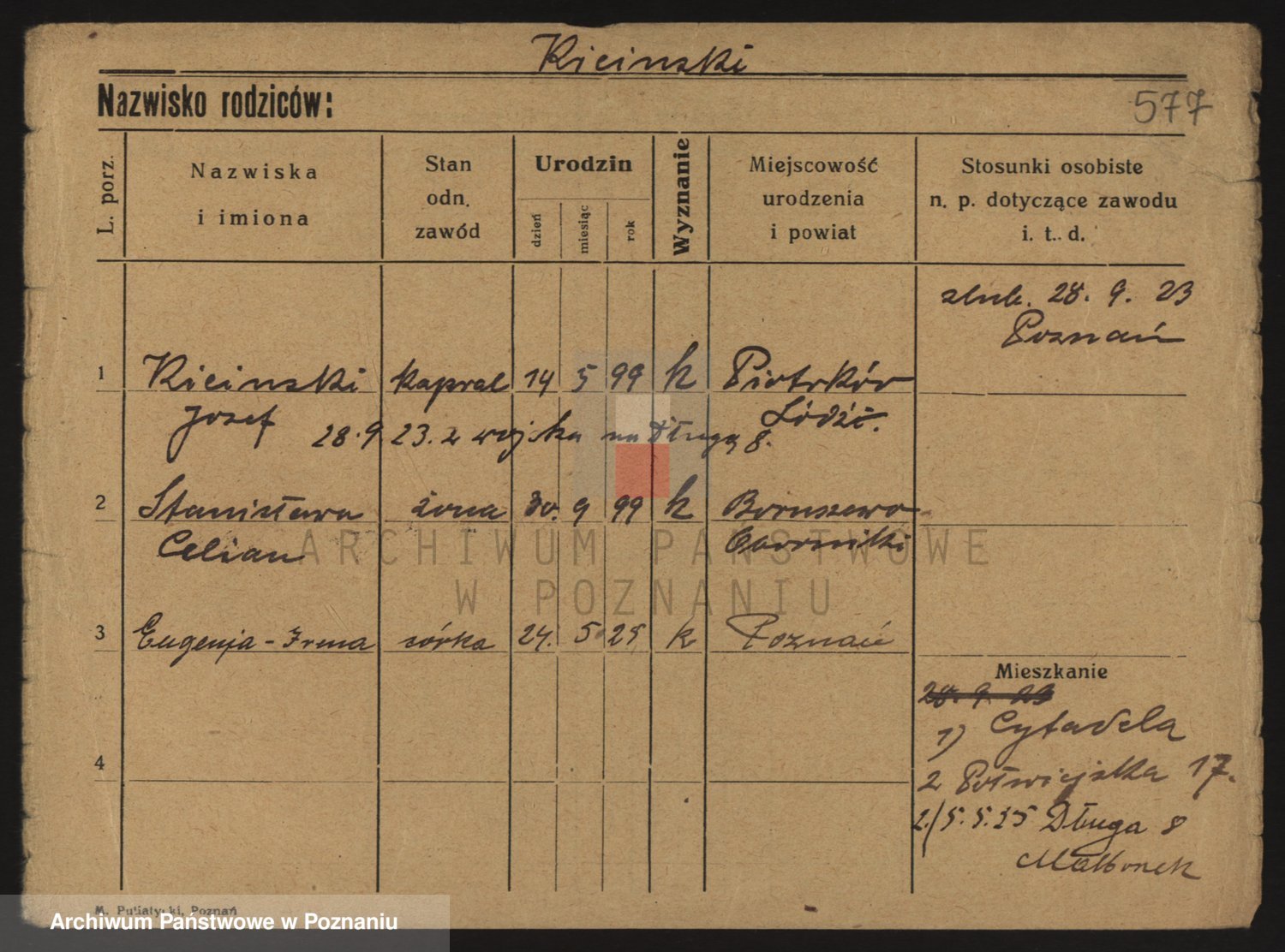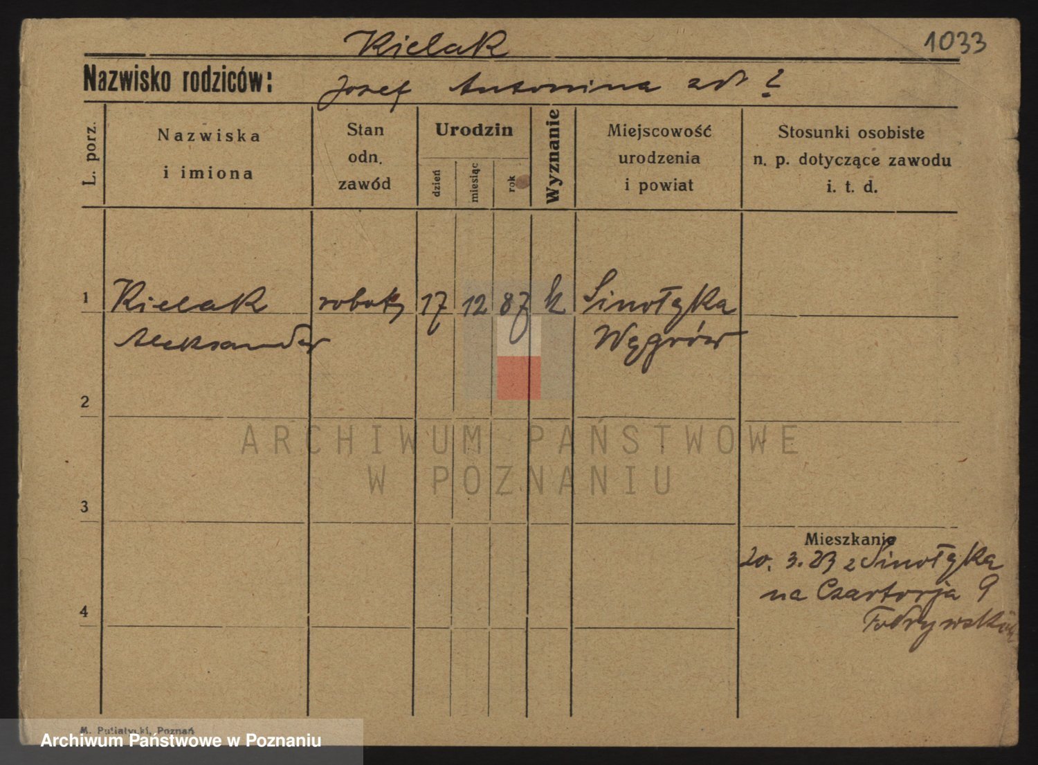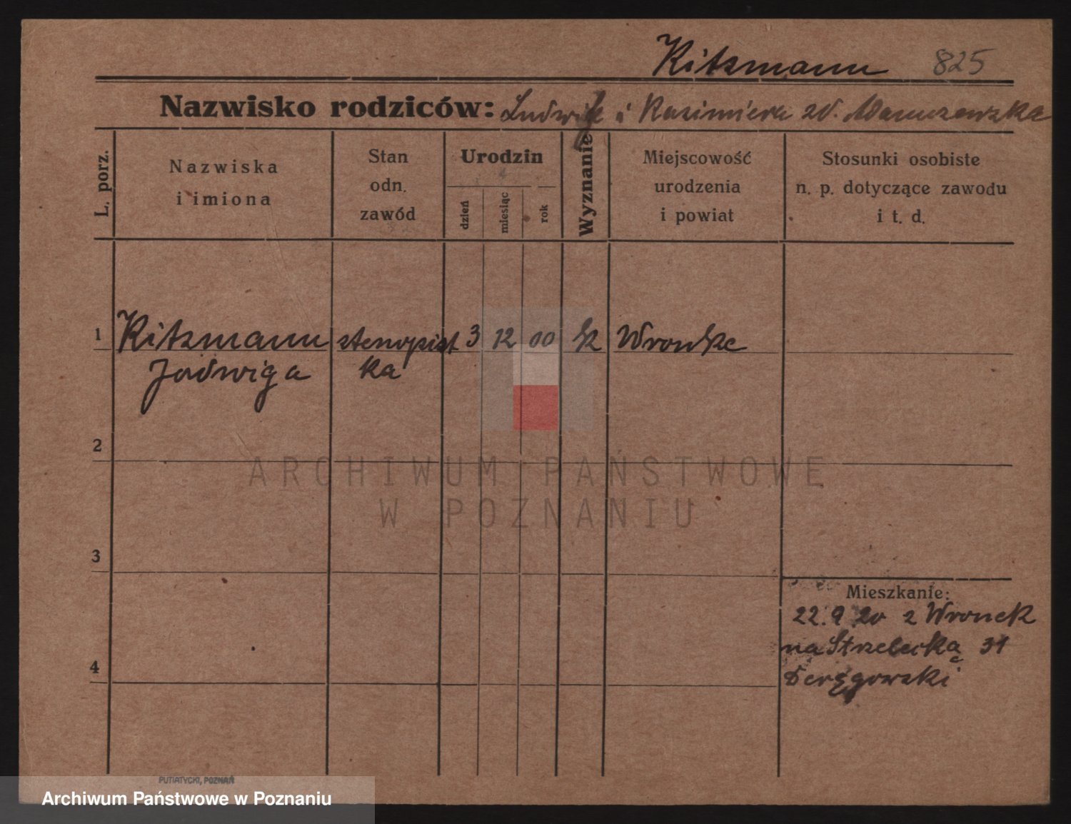 Podgląd karty osobowej dostępny jest po kliknięciu na nazwisko lub ikonkę karty. Można dokonywać powiększenia (ikony na górze) lub przechodzić między kolejnymi skanami (strzałki po bokach).