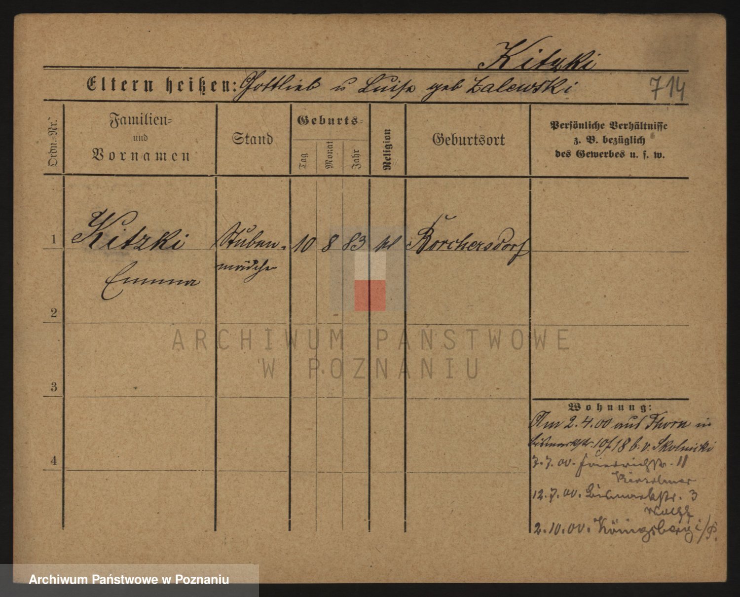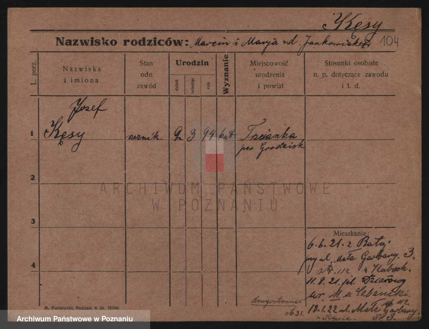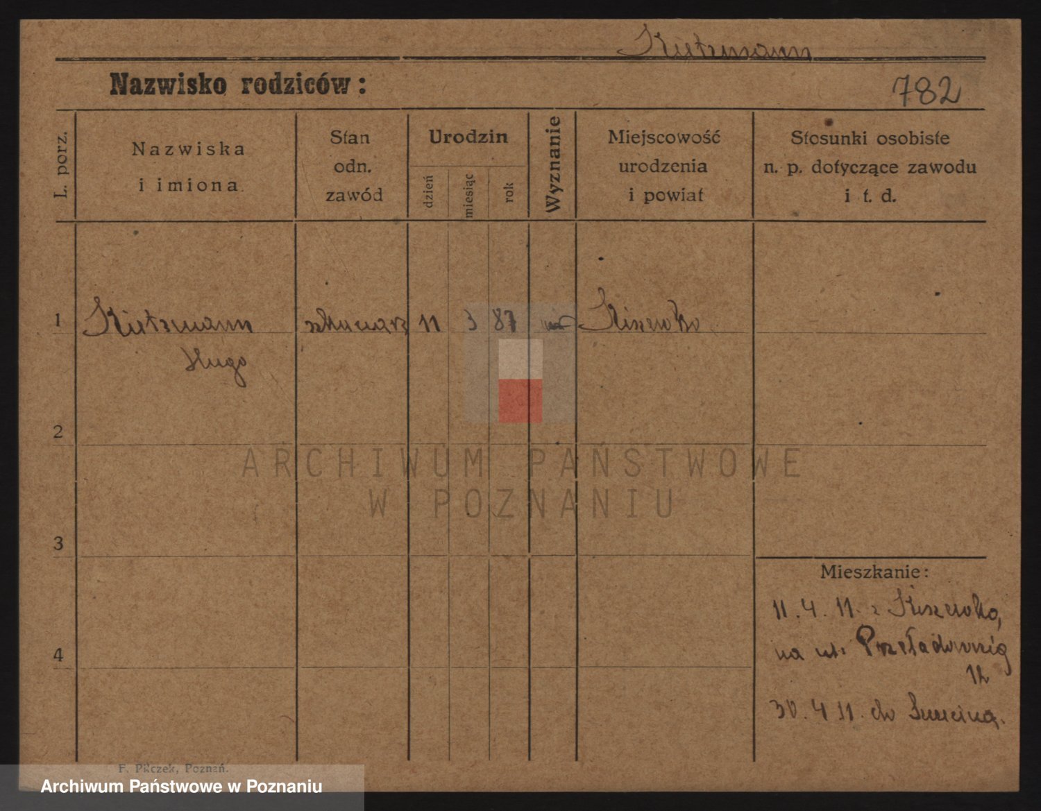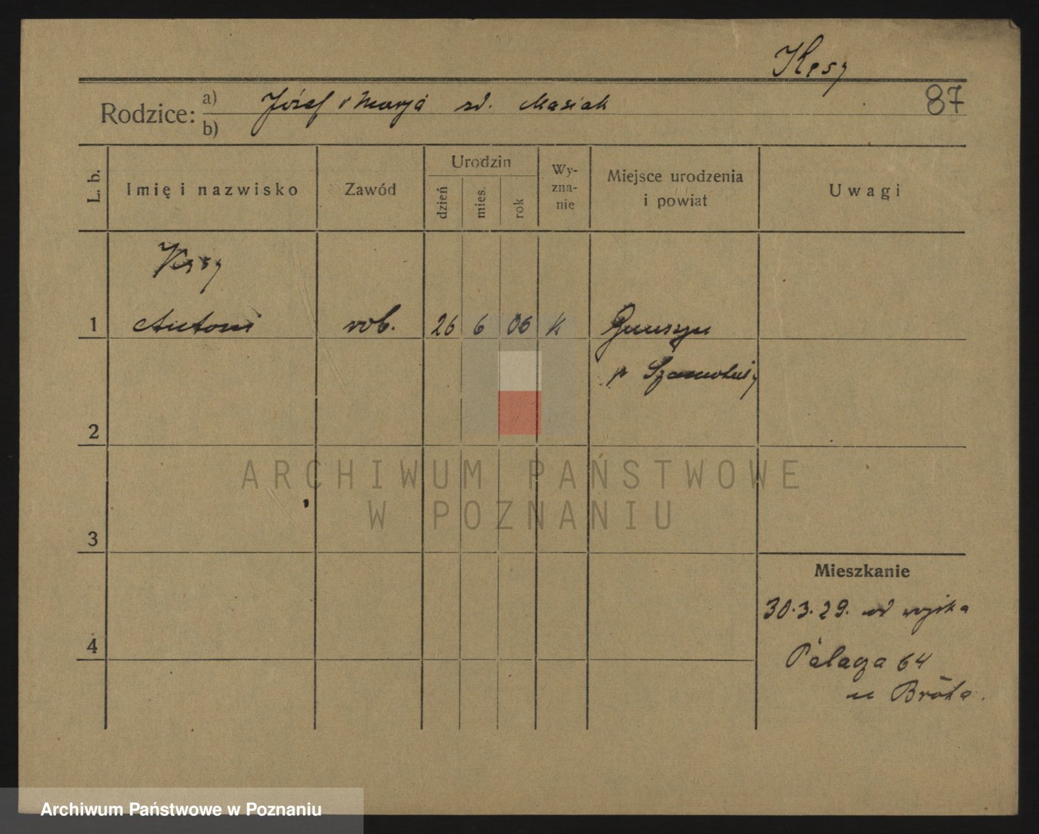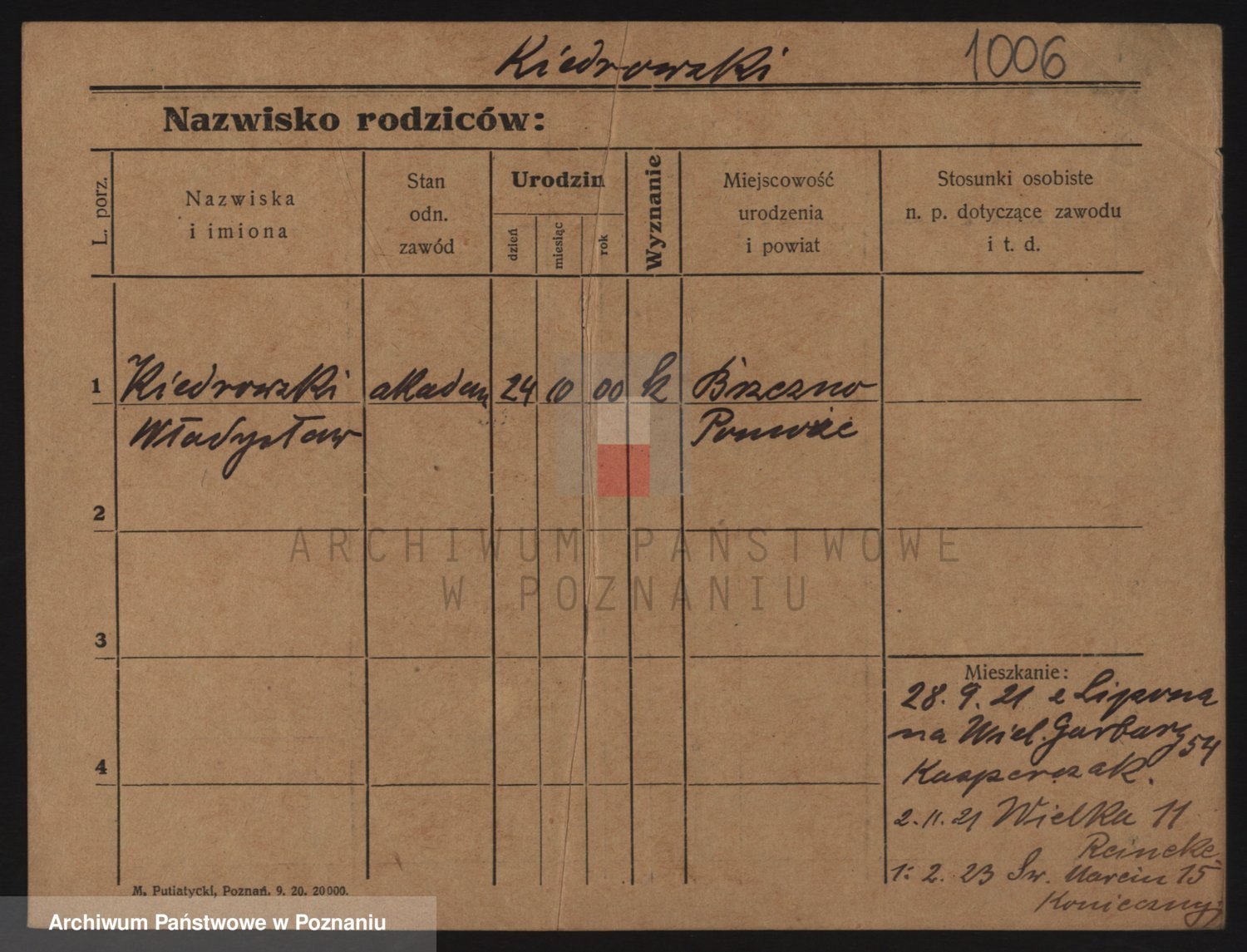 Podgląd karty osobowej dostępny jest po kliknięciu na nazwisko lub ikonkę karty. Można dokonywać powiększenia (ikony na górze) lub przechodzić między kolejnymi skanami (strzałki po bokach).